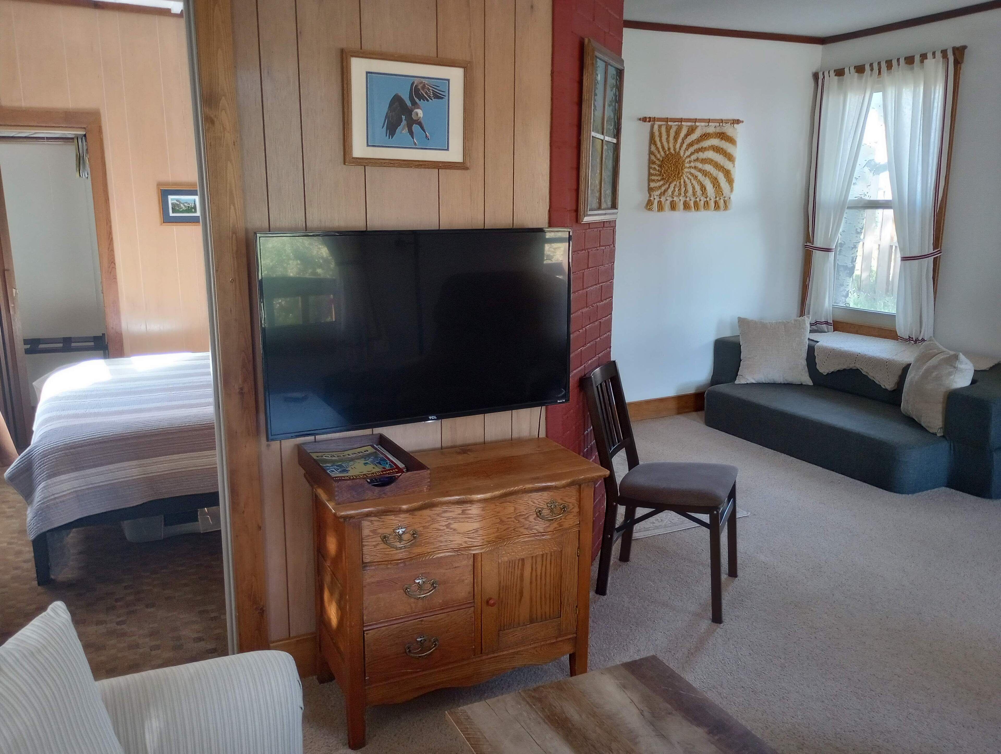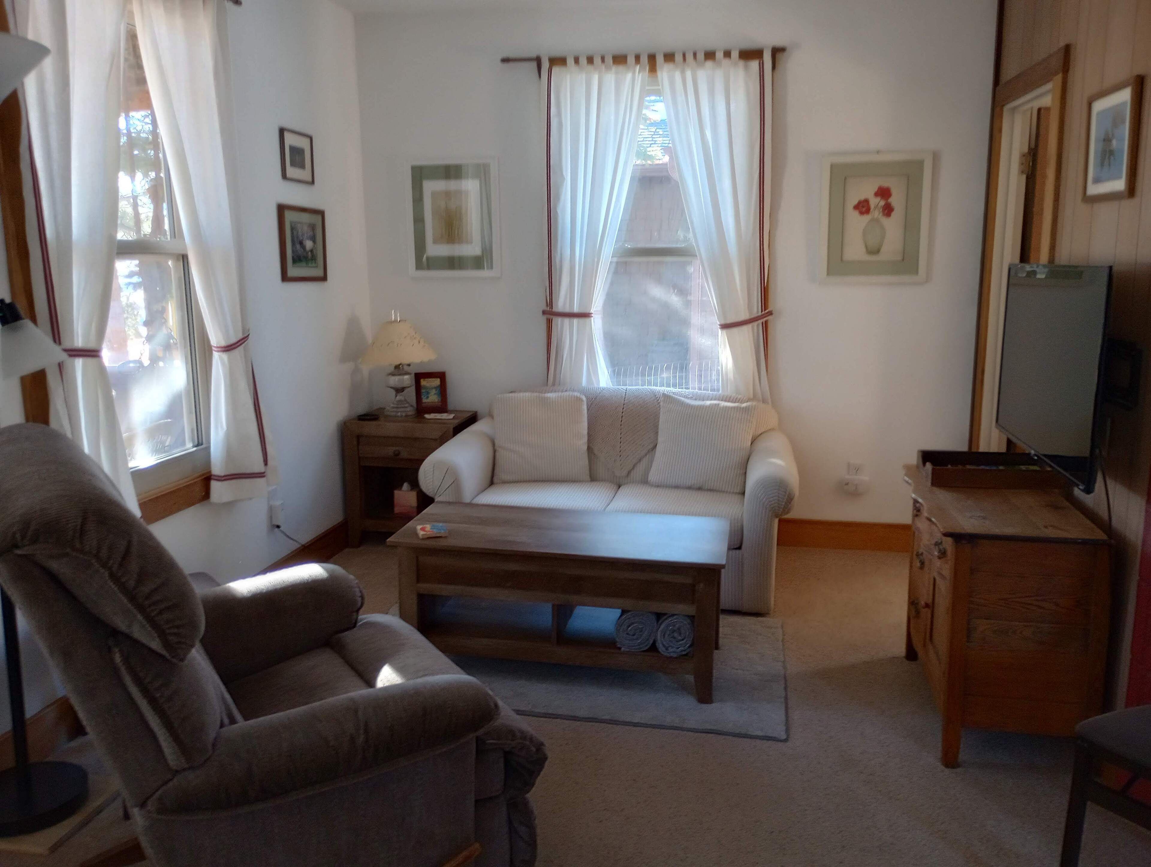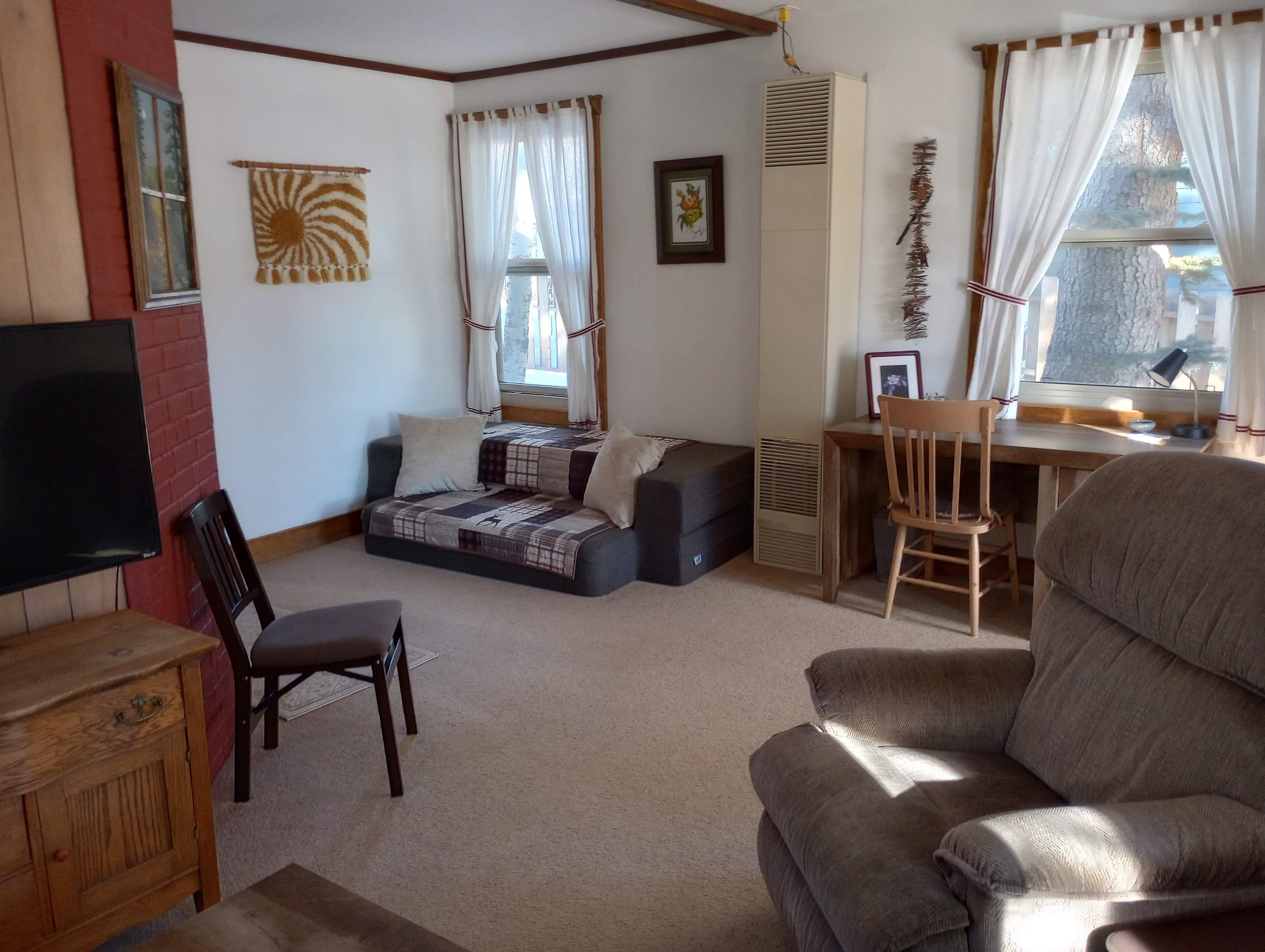 Cozy & Comfortable 1BD Cabin In Nederland ~ Walk to Downtown, Trails & RTD Bus Experience rustic mountain charm with modern convenience in this cozy 1BD, 1BA cabin located two blocks from town on a quiet dead-end street. South Facing with lots of light and a front porch overlooking downtown, enjoy stunning mountain views and a short walk to shops, restaurants, hiking/biking trails and the bus to Boulder/Eldora. Built in 1945, the cabin retains the personality of the old mining days with an authentic overall feel and some of the original furnishings. Check out the antique stove in the kitchen! Although small in square footage, the unique layout is ideal for creating some private space with the bedroom off the living room and the kitchen at the back of the house. The shaded backyard is accessible from the back door in the kitchen and has a patio with a picnic table and BBQ for outdoor dining. There is a Queen CouchBed in the living room for extra guests, fast WiFi, and a 42" Smart TV for login to your streaming channels. And, if you need a workspace, there is a desk with plugins for computers and USB chargers. The kitchen is stocked with the amenities that we hope will make your stay comfortable including basic cooking essentials (spices, sugar, oil, etc.), condiments, coffee, and tea. Bathroom amenities include linens, a hairdryer, shampoo, and conditioner. The cabin is located at the end of a quiet dead-end street and has private off-street parking for two cars.This one-of-a-kind space is yours to create “a home away from home”! Ideal for a quick getaway, extended stay, workcation or base for exploring the multitude of nearby outdoor activities available.