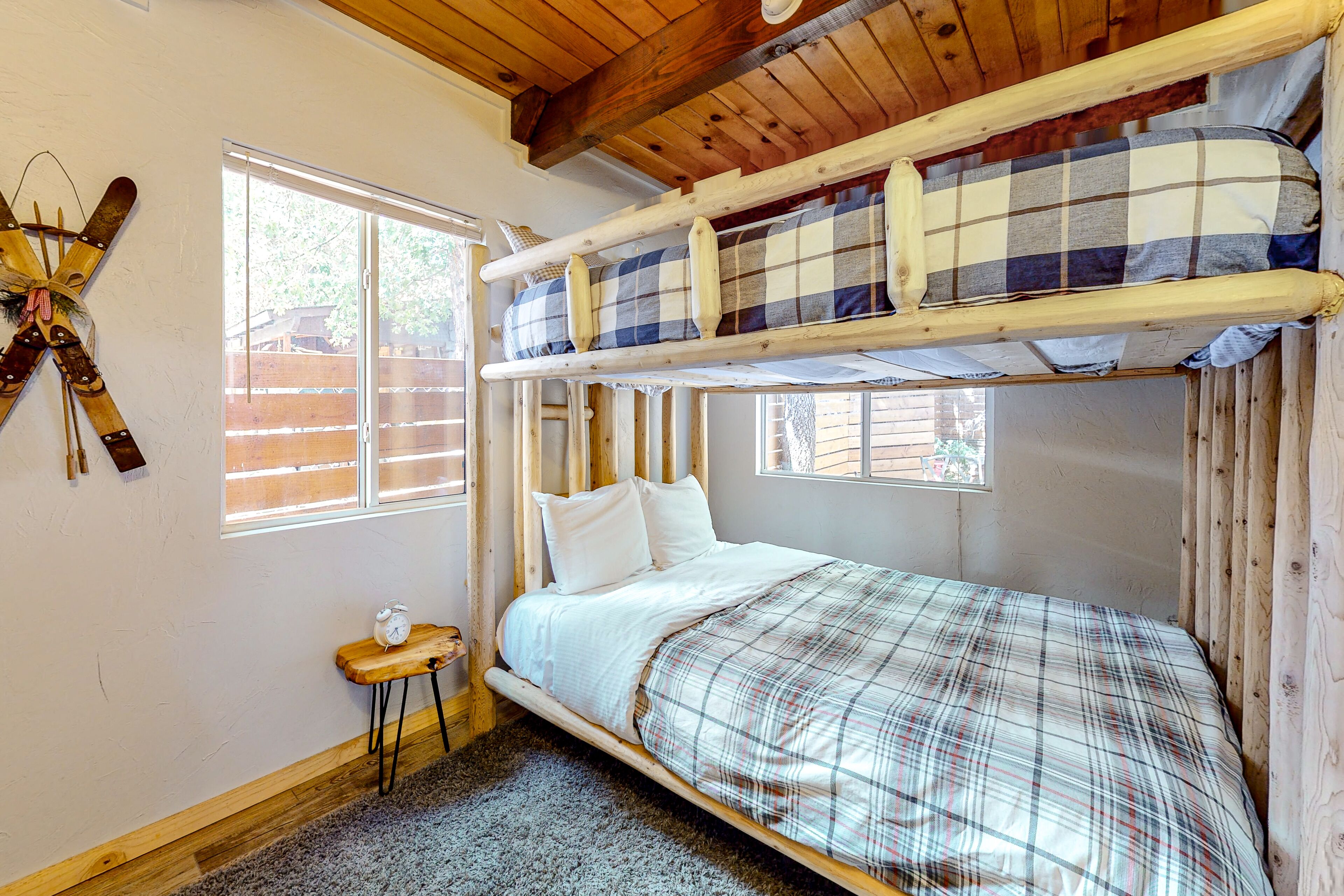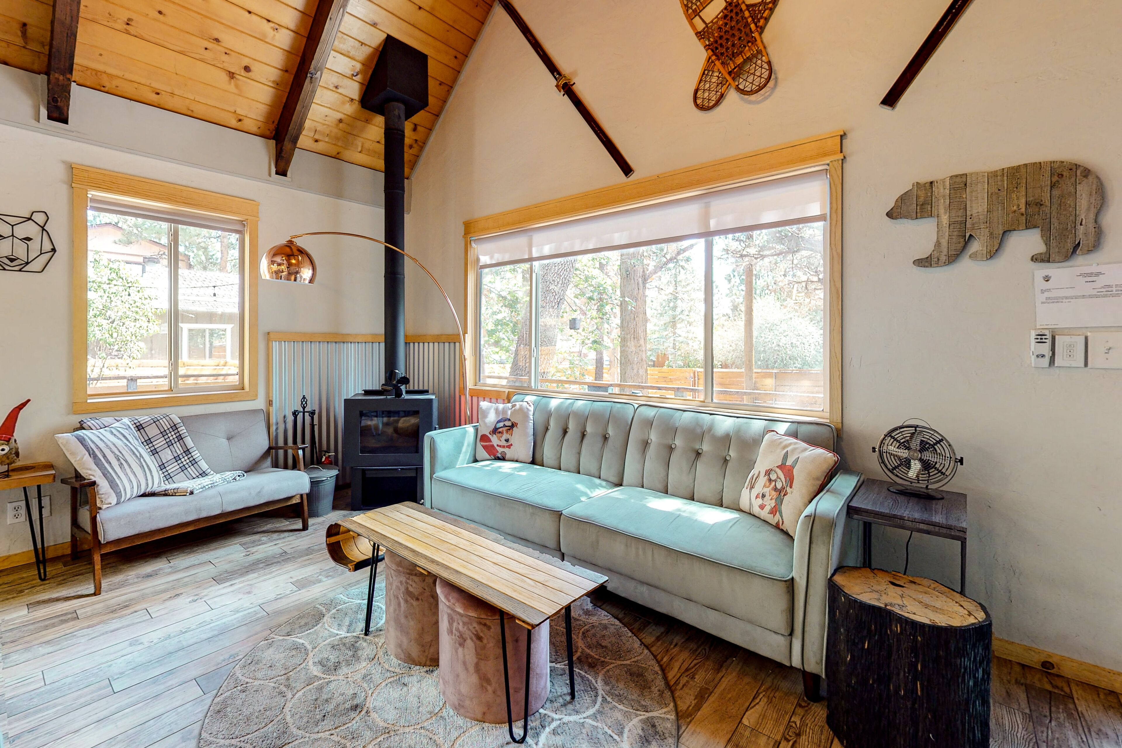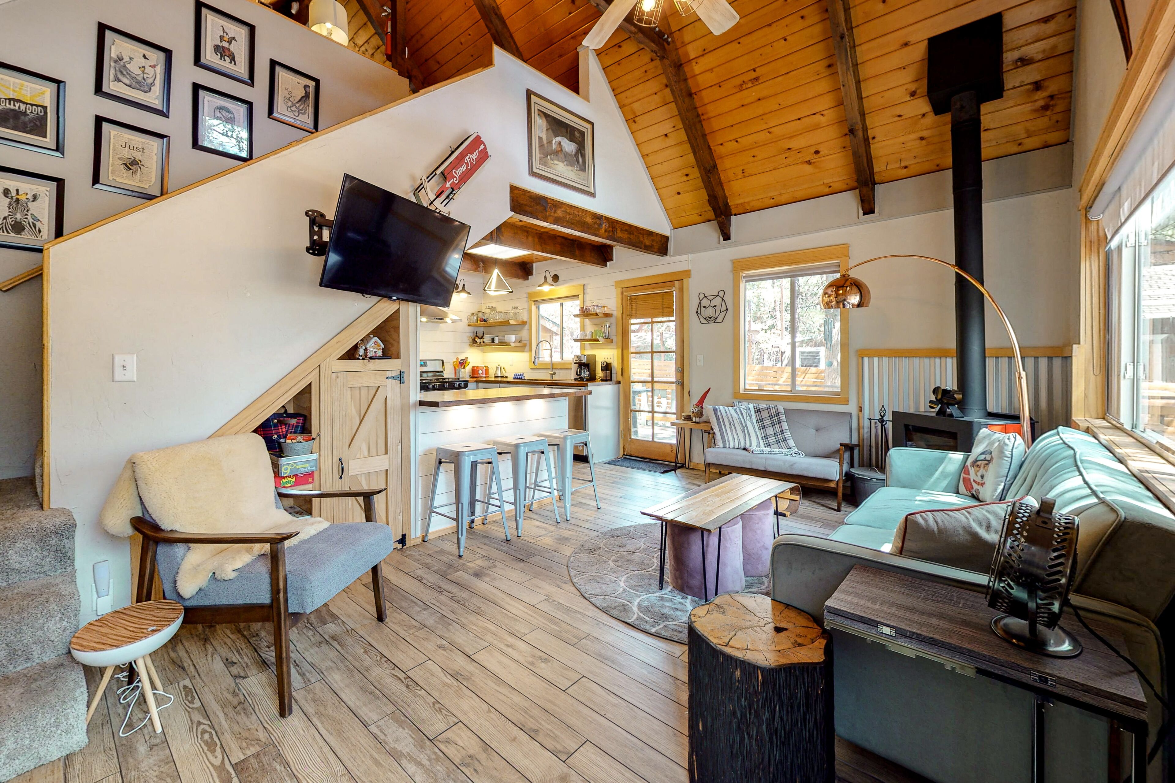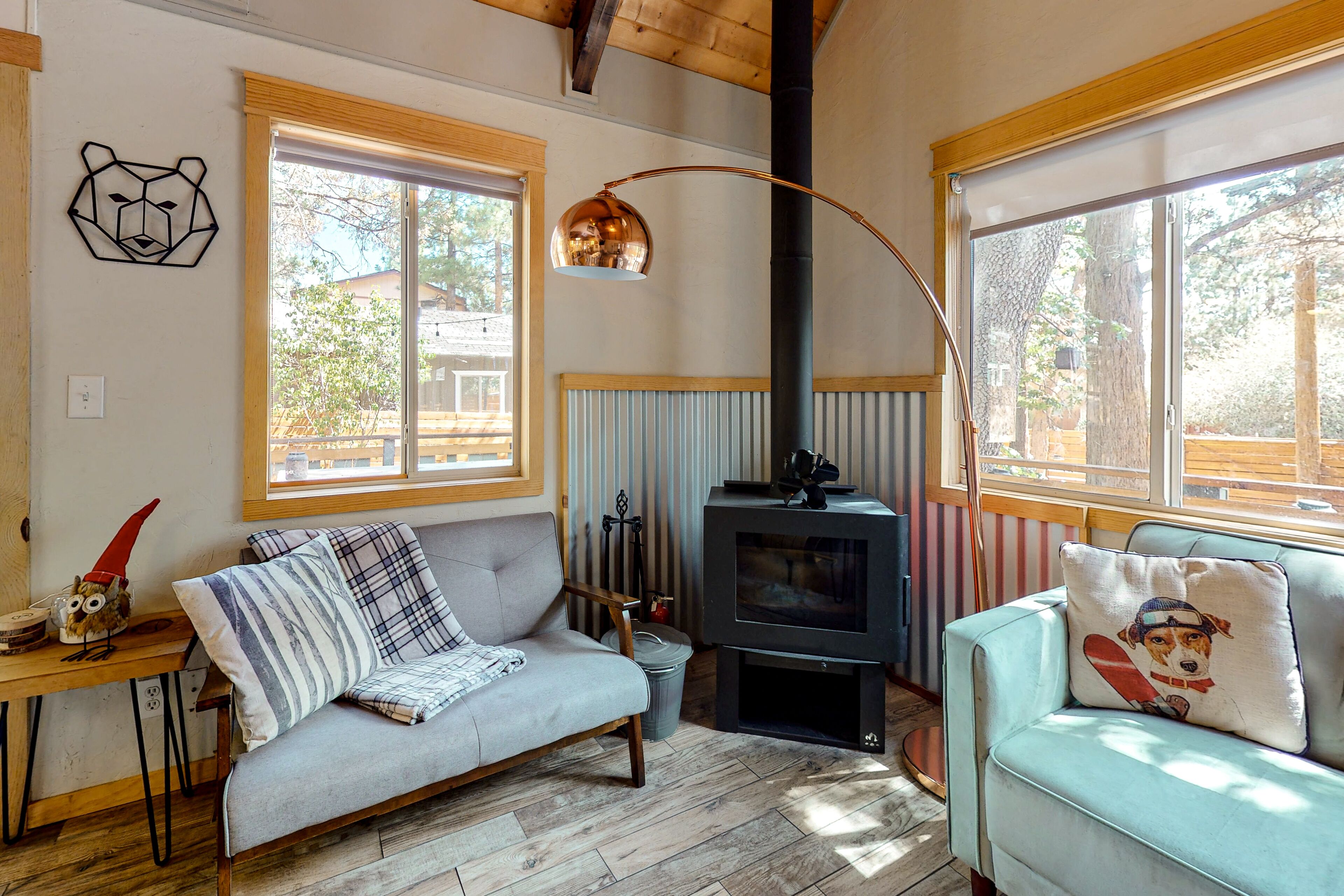 Peaceful All-Season Getaway with Firepit, Modern Upgrades: Near Lake & Slopes Spruce ManorOur calendar is updated in real-time & our nightly rates are accurately displayed. Simply enter your desired dates and click 'Book Now!'Situated in a quiet, wooded neighborhood near the lake, ski slopes, and hiking trails, a peaceful and modern all-season getaway awaits at this 2BR retreat. Highlights of this beautifully upgraded home include a sleek kitchen fit for feasts, chic decor throughout, and an enclosed backyard with a gas grill and alfresco dining. Enjoy year-round outdoor adventure on the ski slopes, hiking along trails, or heading out on the lake. Then return home to get cozy by the wood-burning stove or stargaze around the gas firepit. LIVING AREA Unwind into vacation mode on the sofa, love seat, and armchair in the living area. In the evening, settle in to enjoy favorite shows on the smart TV while enjoying the warm ambience of a wood-burning stove. KITCHEN & DINING Home chefs will love the well-equipped kitchen, outfitted with sleek hardwood countertops, a double basin sink, and a full suite of stainless steel appliances. Savor delicious meals at the kitchen bar with seating for four. BED & BATH This two-story home sleeps five guests in two bedrooms. Find comfort in the lofted upstairs master bedroom, featuring a plush queen bed, desk, and a smart TV. (This room is partially open to the living area below.) The guest bedroom is outfitted with a full-over-full bunk bed. The bathroom is configured with a tub/shower combination. OUTDOOR AREA & AMENITIES In the evening, sizzle steaks and veggies on the gas grill, then dine alfresco at the outdoor table for six on the wraparound deck. End the day stargazing around the gas firepit in the enclosed backyard. EXTRA PERKS & MORE DETAILS Complimentary Wi-Fi, an electric car charger (cable not provided), and driveway parking for two cars are available. Street parking is not permitted. This rental does not have air-conditioning. Quiet hours are 10pm-7am. Parties prohibited. No refunds due to eviction for noise disturbances, over-occupancy, or excess vehicles. THE LOCATION Discover dining, shopping, and entertainment options along West Big Bear Boulevard (2.5 miles) or in Big Bear Village (6 miles). Head out for fun-filled days on the slopes at Snow Summit (6.5 miles) or Bear Mountain (7 miles). Visit Big Bear Alpine Zoo, one of two alpine zoos in the country that specializes in the rehab and release of local alpine species (6.5 miles). Tee off at Bear Mountain Golf Course (7.5 miles). Family fun awaits at Magic Mountain, offering alpine slides, water slides, bobsled tracks, mini-golf, go-karts, and horseback rides (8 miles). Take a paddlewheel boat tour at Pine Knot Marina (7.5 miles). Find fishing charters and wakeboarding at Big Bear Marina (8 miles). Rent a kayak, paddleboard, or fishing boat at Pleasure Point Marina (10 miles).If you are bringing a dog on your trip, the pet fee is already included in your quote when selecting ‘Yes’ to pets. If you would like to add more dogs, please contact us. The pet fee is per stay and ranges between $150 and $200, depending on the bedroom count, and will apply for each additional dog.Parking notes: There is free parking available for 2 vehicles.This rental is located on floor 1.Please note: this home resides in a noise-sensitive area and the owners participate in our Good Neighbor protection program. Our smart home technology will alert our team if excessive decibel or occupancy levels are detected, allowing us to reach out directly with a reminder of maximum occupancy and quiet hours. This technology is privacy compliant, and only monitors the presence of decibels and devices-not any personal conversation or information. Thank you for supporting our efforts to be good neighbors!Damage waiver: The total cost of your reservation for this Property includes a nightly damage waiver fee, plus tax if applicable (the “Damage Waiver”). (A discount may be applied for stays of 28 nights or longer, if permitted.) The Damage Waiver covers you for up to $3,000 of accidental damage to the Property or its contents (such as furniture, fixtures, and appliances) as long as you report the incident to the host prior to checking out. The Damage Waiver fee eliminates the need for a traditional security deposit.More information can be downloaded from the "Rental Agreement" on the checkout page.Due to local laws or HOA requirements, guests must be at least 21 years of age to book. Guests under 21 must be accompanied by a parent or legal guardian for the duration of the reservation.
