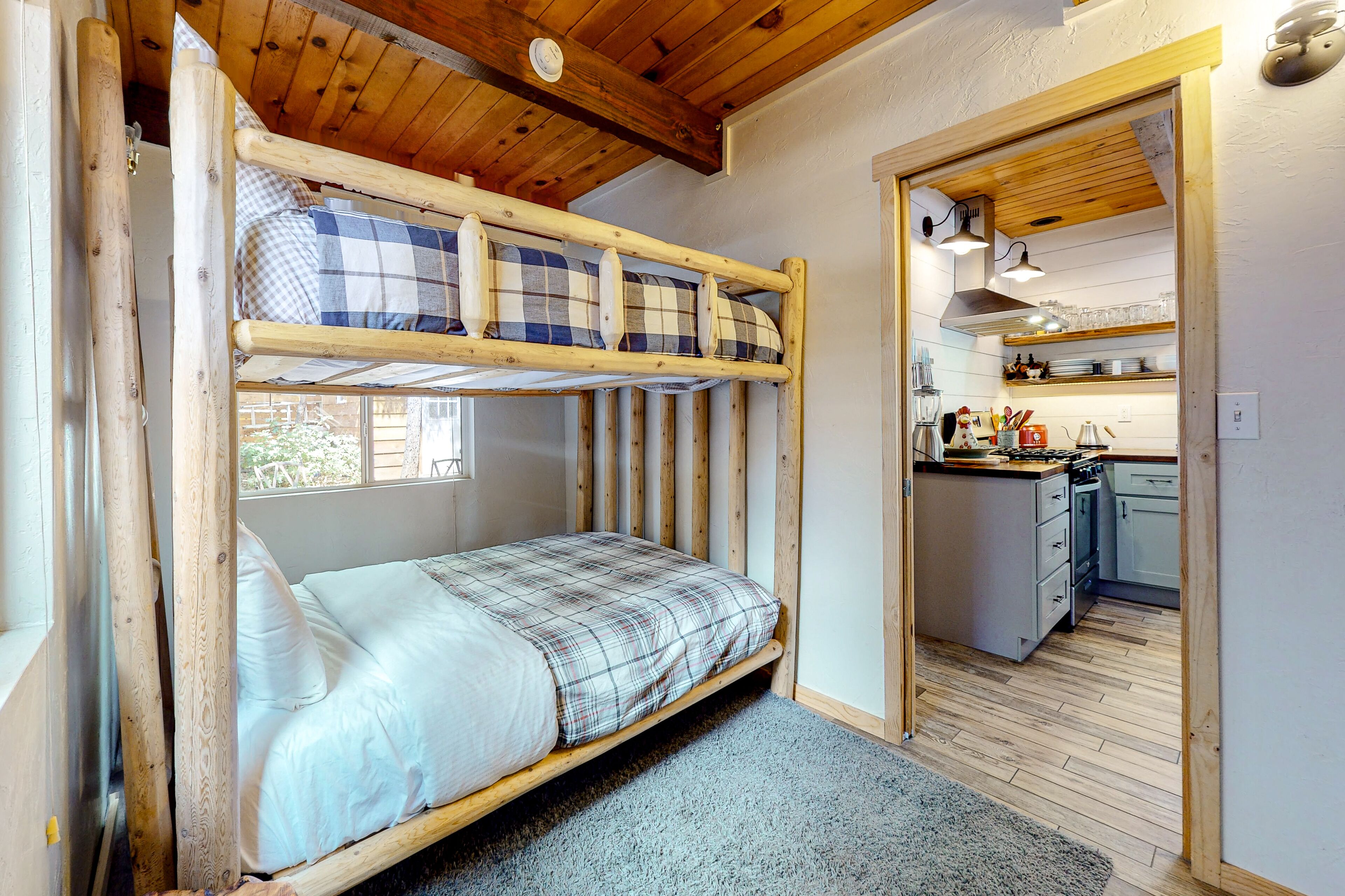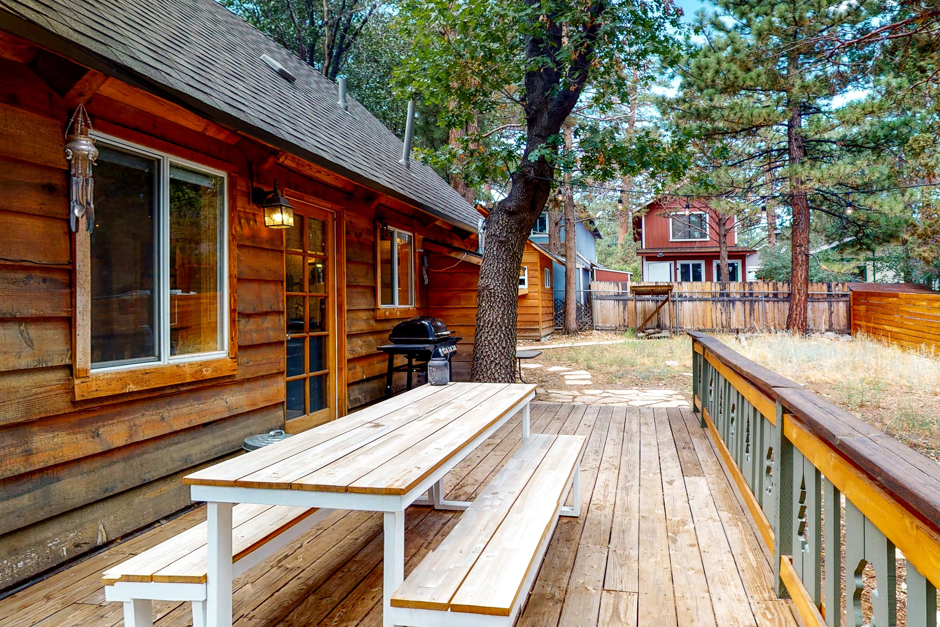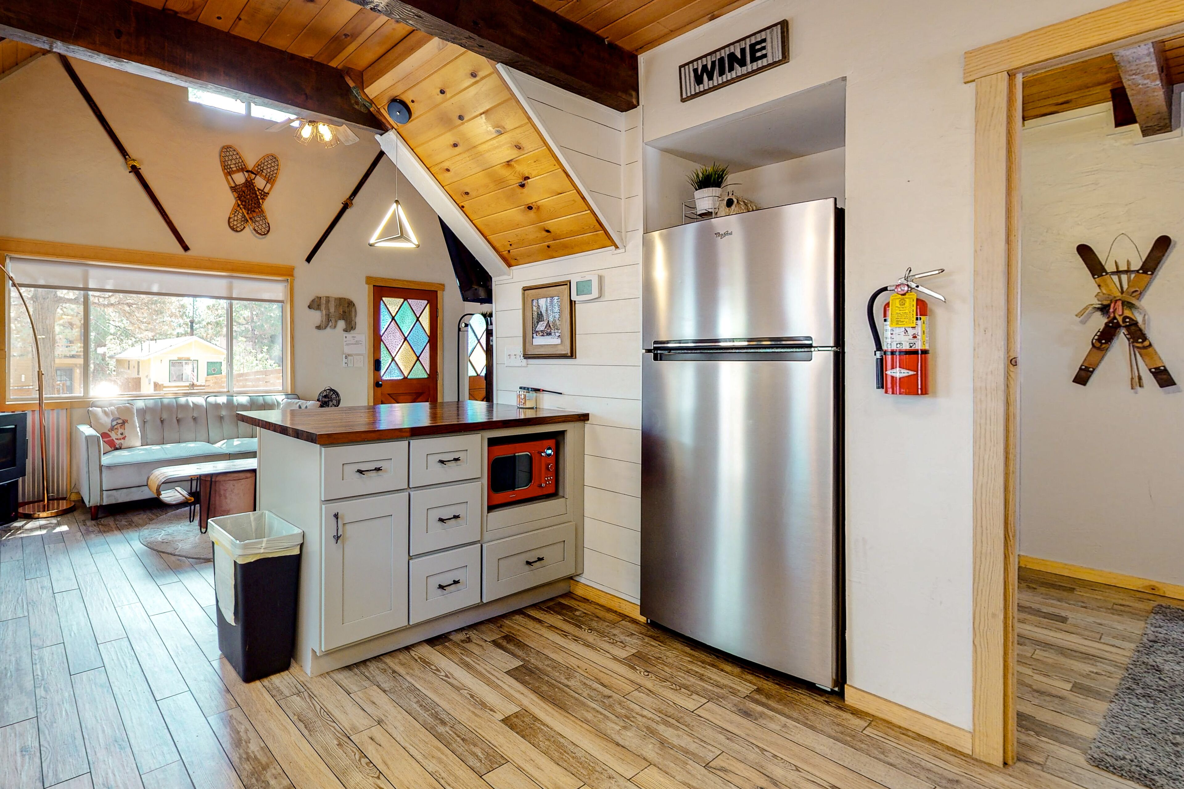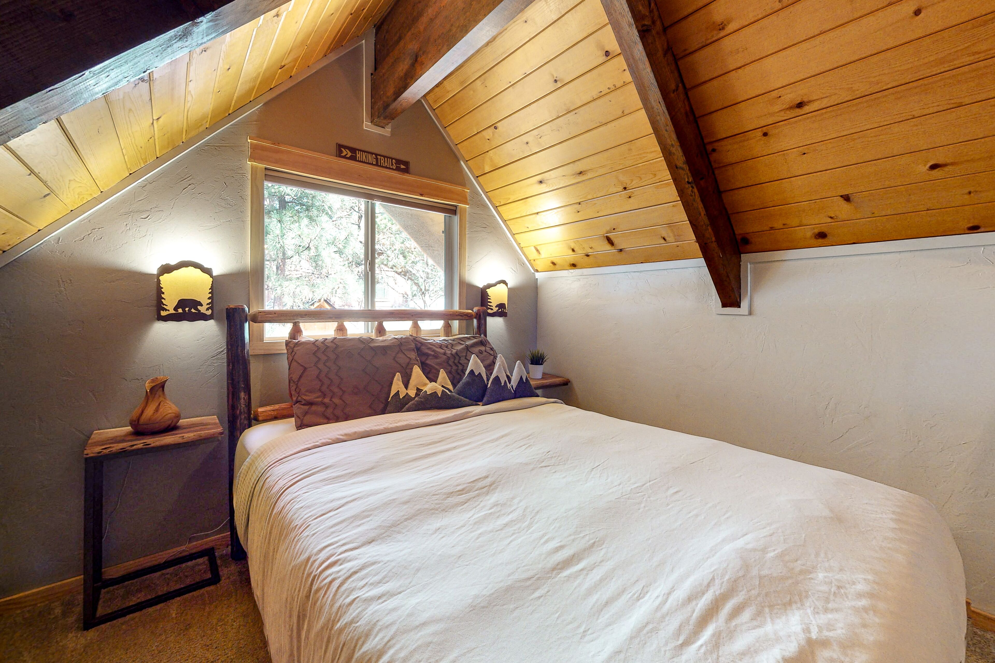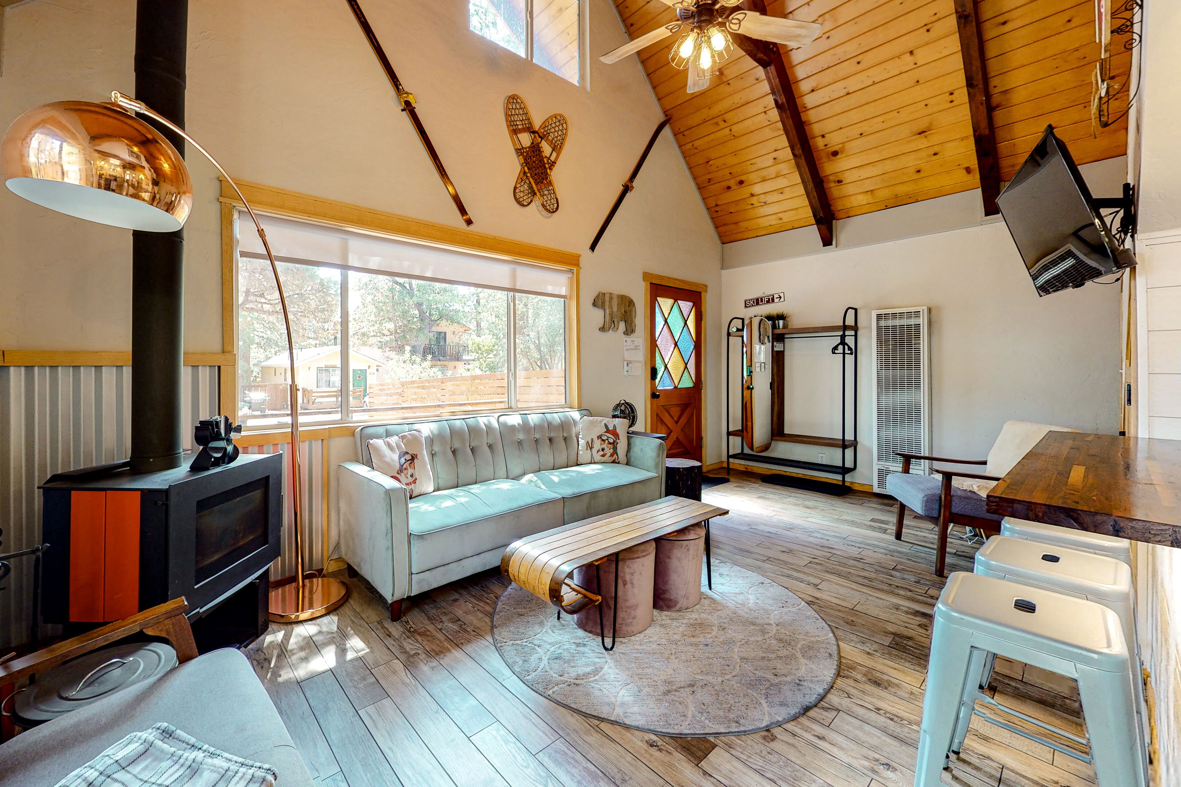 Peaceful All-Season Getaway with Firepit, Modern Upgrades: Near Lake & Slopes Spruce ManorOur calendar is updated in real-time & our nightly rates are accurately displayed. Simply enter your desired dates and click 'Book Now!'Situated in a quiet, wooded neighborhood near the lake, ski slopes, and hiking trails, a peaceful and modern all-season getaway awaits at this 2BR retreat. Highlights of this beautifully upgraded home include a sleek kitchen fit for feasts, chic decor throughout, and an enclosed backyard with a gas grill and alfresco dining. Enjoy year-round outdoor adventure on the ski slopes, hiking along trails, or heading out on the lake. Then return home to get cozy by the wood-burning stove or stargaze around the gas firepit. LIVING AREA Unwind into vacation mode on the sofa, love seat, and armchair in the living area. In the evening, settle in to enjoy favorite shows on the smart TV while enjoying the warm ambience of a wood-burning stove. KITCHEN & DINING Home chefs will love the well-equipped kitchen, outfitted with sleek hardwood countertops, a double basin sink, and a full suite of stainless steel appliances. Savor delicious meals at the kitchen bar with seating for four. BED & BATH This two-story home sleeps five guests in two bedrooms. Find comfort in the lofted upstairs master bedroom, featuring a plush queen bed, desk, and a smart TV. (This room is partially open to the living area below.) The guest bedroom is outfitted with a full-over-full bunk bed. The bathroom is configured with a tub/shower combination. OUTDOOR AREA & AMENITIES In the evening, sizzle steaks and veggies on the gas grill, then dine alfresco at the outdoor table for six on the wraparound deck. End the day stargazing around the gas firepit in the enclosed backyard. EXTRA PERKS & MORE DETAILS Complimentary Wi-Fi, an electric car charger (cable not provided), and driveway parking for two cars are available. Street parking is not permitted. This rental does not have air-conditioning. Quiet hours are 10pm-7am. Parties prohibited. No refunds due to eviction for noise disturbances, over-occupancy, or excess vehicles. THE LOCATION Discover dining, shopping, and entertainment options along West Big Bear Boulevard (2.5 miles) or in Big Bear Village (6 miles). Head out for fun-filled days on the slopes at Snow Summit (6.5 miles) or Bear Mountain (7 miles). Visit Big Bear Alpine Zoo, one of two alpine zoos in the country that specializes in the rehab and release of local alpine species (6.5 miles). Tee off at Bear Mountain Golf Course (7.5 miles). Family fun awaits at Magic Mountain, offering alpine slides, water slides, bobsled tracks, mini-golf, go-karts, and horseback rides (8 miles). Take a paddlewheel boat tour at Pine Knot Marina (7.5 miles). Find fishing charters and wakeboarding at Big Bear Marina (8 miles). Rent a kayak, paddleboard, or fishing boat at Pleasure Point Marina (10 miles).If you are bringing a dog on your trip, the pet fee is already included in your quote when selecting ‘Yes’ to pets. If you would like to add more dogs, please contact us. The pet fee is per stay and ranges between $150 and $200, depending on the bedroom count, and will apply for each additional dog.Parking notes: There is free parking available for 2 vehicles.This rental is located on floor 1.Please note: this home resides in a noise-sensitive area and the owners participate in our Good Neighbor protection program. Our smart home technology will alert our team if excessive decibel or occupancy levels are detected, allowing us to reach out directly with a reminder of maximum occupancy and quiet hours. This technology is privacy compliant, and only monitors the presence of decibels and devices-not any personal conversation or information. Thank you for supporting our efforts to be good neighbors!Damage waiver: The total cost of your reservation for this Property includes a nightly damage waiver fee, plus tax if applicable (the “Damage Waiver”). (A discount may be applied for stays of 28 nights or longer, if permitted.) The Damage Waiver covers you for up to $3,000 of accidental damage to the Property or its contents (such as furniture, fixtures, and appliances) as long as you report the incident to the host prior to checking out. The Damage Waiver fee eliminates the need for a traditional security deposit.More information can be downloaded from the "Rental Agreement" on the checkout page.Due to local laws or HOA requirements, guests must be at least 21 years of age to book. Guests under 21 must be accompanied by a parent or legal guardian for the duration of the reservation.