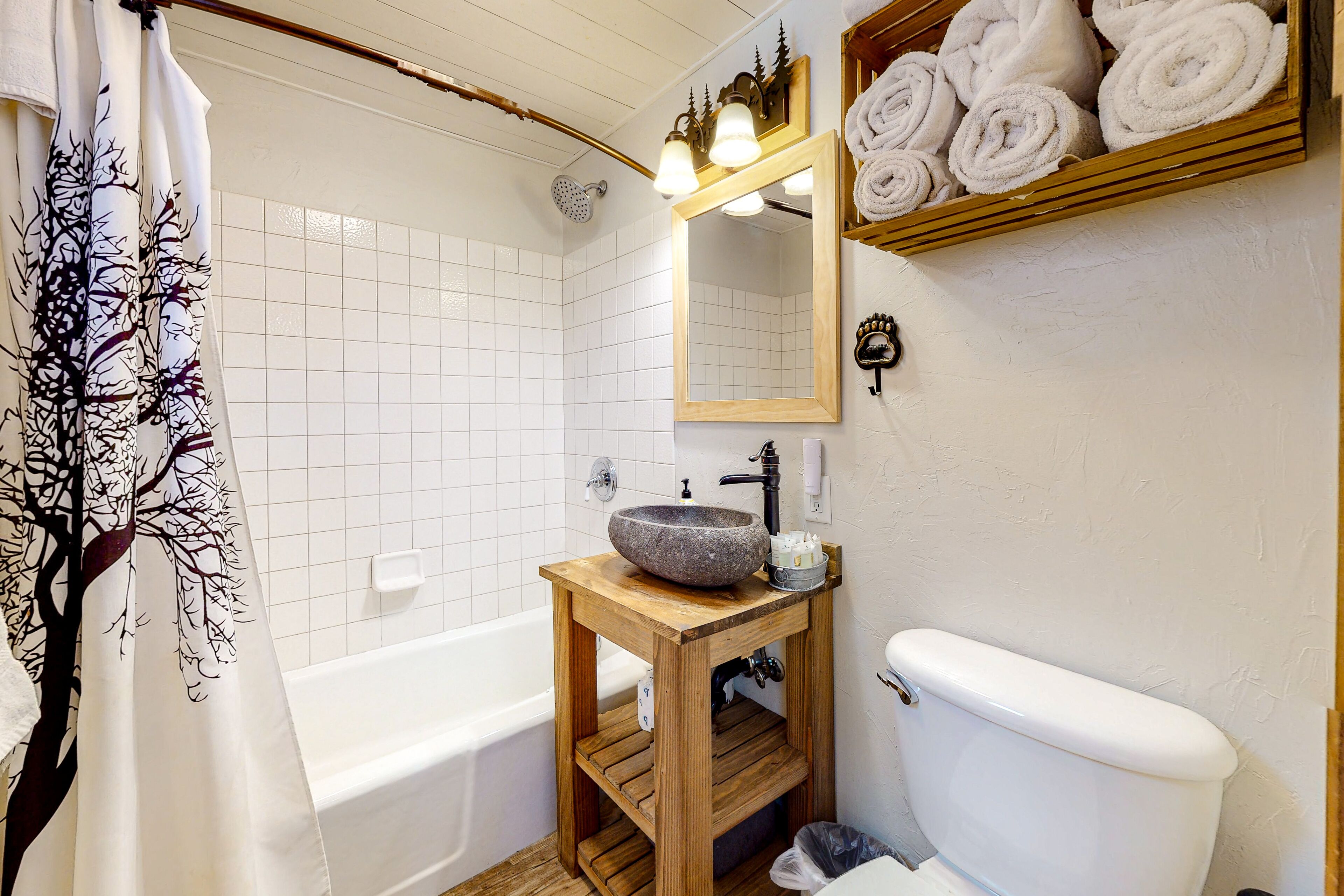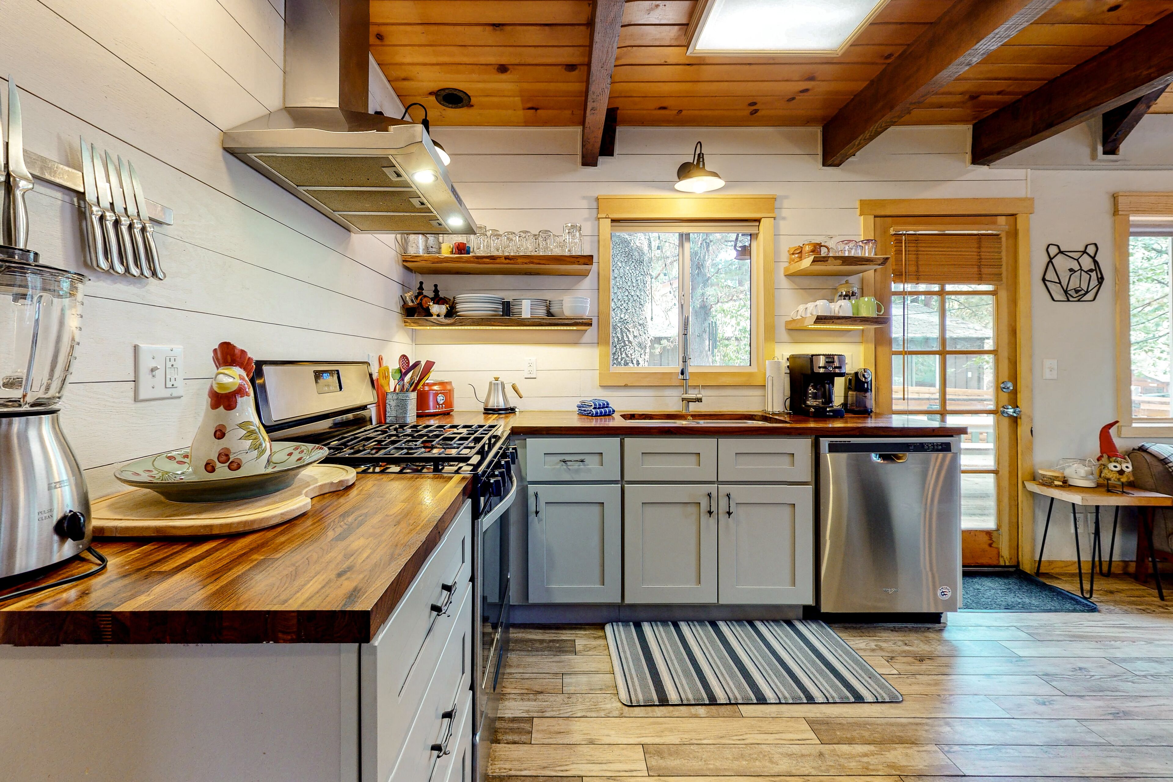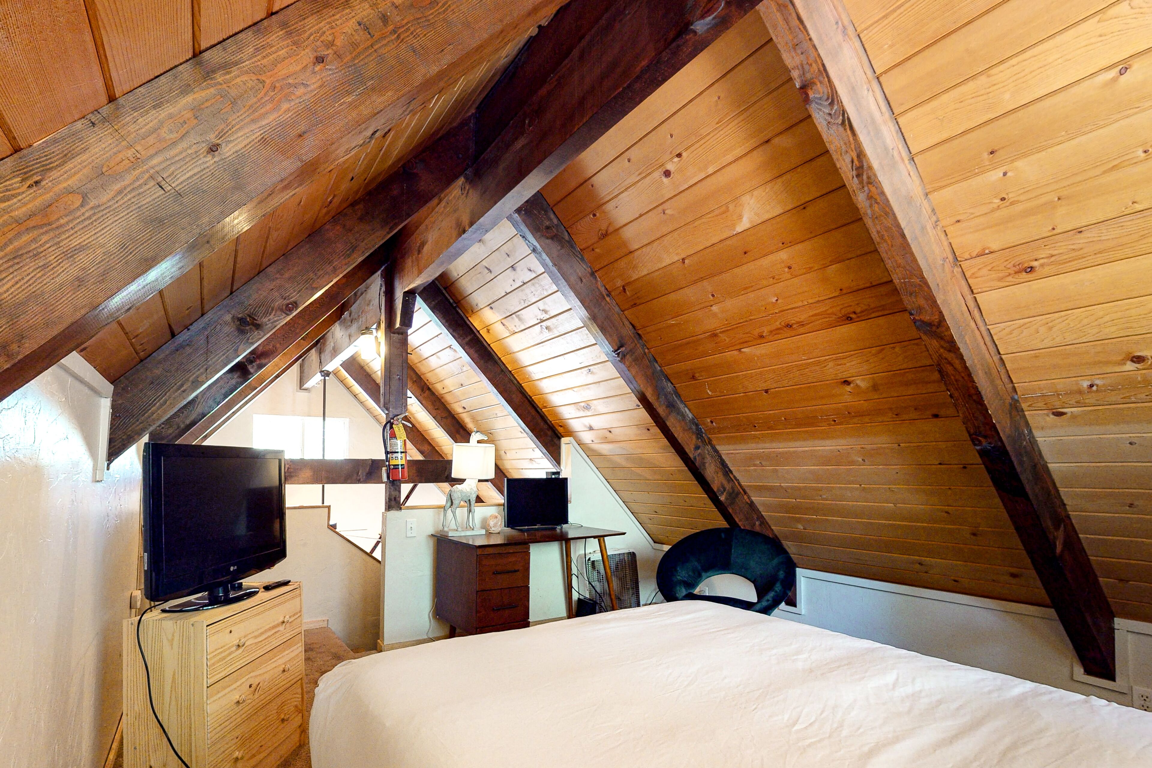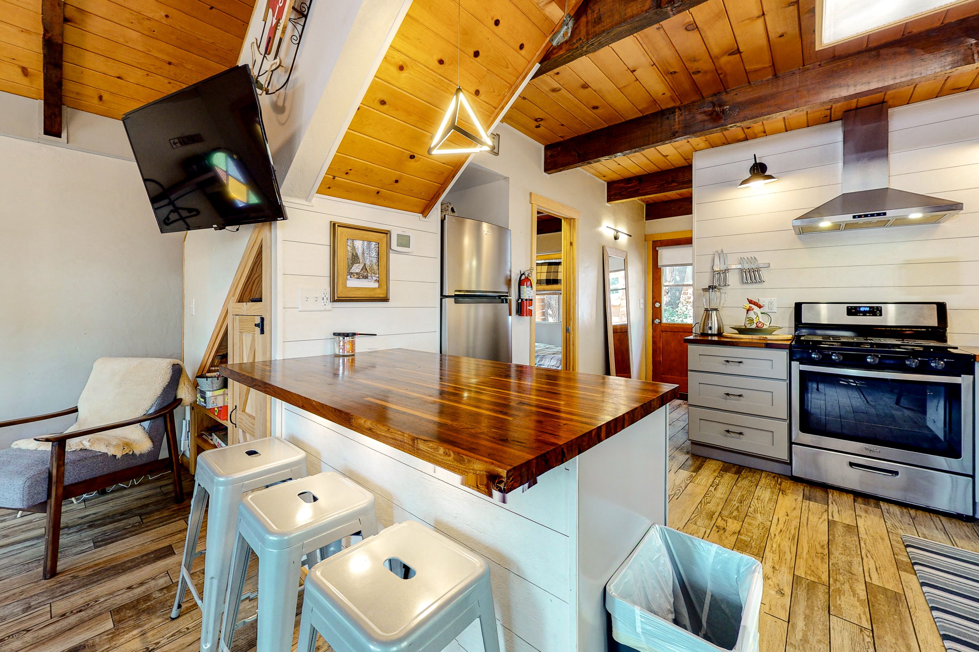 Peaceful All-Season Getaway with Firepit, Modern Upgrades: Near Lake & Slopes Spruce ManorOur calendar is updated in real-time & our nightly rates are accurately displayed. Simply enter your desired dates and click 'Book Now!'Situated in a quiet, wooded neighborhood near the lake, ski slopes, and hiking trails, a peaceful and modern all-season getaway awaits at this 2BR retreat. Highlights of this beautifully upgraded home include a sleek kitchen fit for feasts, chic decor throughout, and an enclosed backyard with a gas grill and alfresco dining. Enjoy year-round outdoor adventure on the ski slopes, hiking along trails, or heading out on the lake. Then return home to get cozy by the wood-burning stove or stargaze around the gas firepit. LIVING AREA Unwind into vacation mode on the sofa, love seat, and armchair in the living area. In the evening, settle in to enjoy favorite shows on the smart TV while enjoying the warm ambience of a wood-burning stove. KITCHEN & DINING Home chefs will love the well-equipped kitchen, outfitted with sleek hardwood countertops, a double basin sink, and a full suite of stainless steel appliances. Savor delicious meals at the kitchen bar with seating for four. BED & BATH This two-story home sleeps five guests in two bedrooms. Find comfort in the lofted upstairs master bedroom, featuring a plush queen bed, desk, and a smart TV. (This room is partially open to the living area below.) The guest bedroom is outfitted with a full-over-full bunk bed. The bathroom is configured with a tub/shower combination. OUTDOOR AREA & AMENITIES In the evening, sizzle steaks and veggies on the gas grill, then dine alfresco at the outdoor table for six on the wraparound deck. End the day stargazing around the gas firepit in the enclosed backyard. EXTRA PERKS & MORE DETAILS Complimentary Wi-Fi, an electric car charger (cable not provided), and driveway parking for two cars are available. Street parking is not permitted. This rental does not have air-conditioning. Quiet hours are 10pm-7am. Parties prohibited. No refunds due to eviction for noise disturbances, over-occupancy, or excess vehicles. THE LOCATION Discover dining, shopping, and entertainment options along West Big Bear Boulevard (2.5 miles) or in Big Bear Village (6 miles). Head out for fun-filled days on the slopes at Snow Summit (6.5 miles) or Bear Mountain (7 miles). Visit Big Bear Alpine Zoo, one of two alpine zoos in the country that specializes in the rehab and release of local alpine species (6.5 miles). Tee off at Bear Mountain Golf Course (7.5 miles). Family fun awaits at Magic Mountain, offering alpine slides, water slides, bobsled tracks, mini-golf, go-karts, and horseback rides (8 miles). Take a paddlewheel boat tour at Pine Knot Marina (7.5 miles). Find fishing charters and wakeboarding at Big Bear Marina (8 miles). Rent a kayak, paddleboard, or fishing boat at Pleasure Point Marina (10 miles).If you are bringing a dog on your trip, the pet fee is already included in your quote when selecting ‘Yes’ to pets. If you would like to add more dogs, please contact us. The pet fee is per stay and ranges between $150 and $200, depending on the bedroom count, and will apply for each additional dog.Parking notes: There is free parking available for 2 vehicles.This rental is located on floor 1.Please note: this home resides in a noise-sensitive area and the owners participate in our Good Neighbor protection program. Our smart home technology will alert our team if excessive decibel or occupancy levels are detected, allowing us to reach out directly with a reminder of maximum occupancy and quiet hours. This technology is privacy compliant, and only monitors the presence of decibels and devices-not any personal conversation or information. Thank you for supporting our efforts to be good neighbors!Damage waiver: The total cost of your reservation for this Property includes a nightly damage waiver fee, plus tax if applicable (the “Damage Waiver”). (A discount may be applied for stays of 28 nights or longer, if permitted.) The Damage Waiver covers you for up to $3,000 of accidental damage to the Property or its contents (such as furniture, fixtures, and appliances) as long as you report the incident to the host prior to checking out. The Damage Waiver fee eliminates the need for a traditional security deposit.More information can be downloaded from the "Rental Agreement" on the checkout page.Due to local laws or HOA requirements, guests must be at least 21 years of age to book. Guests under 21 must be accompanied by a parent or legal guardian for the duration of the reservation.
