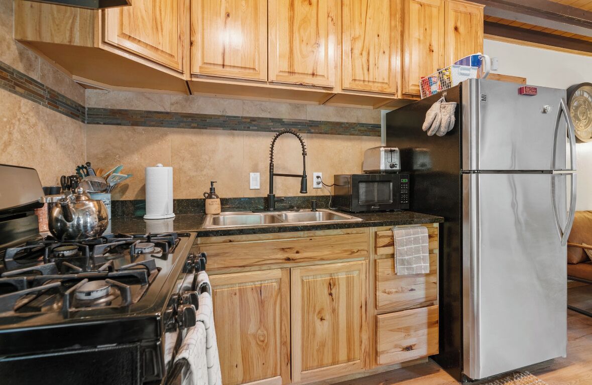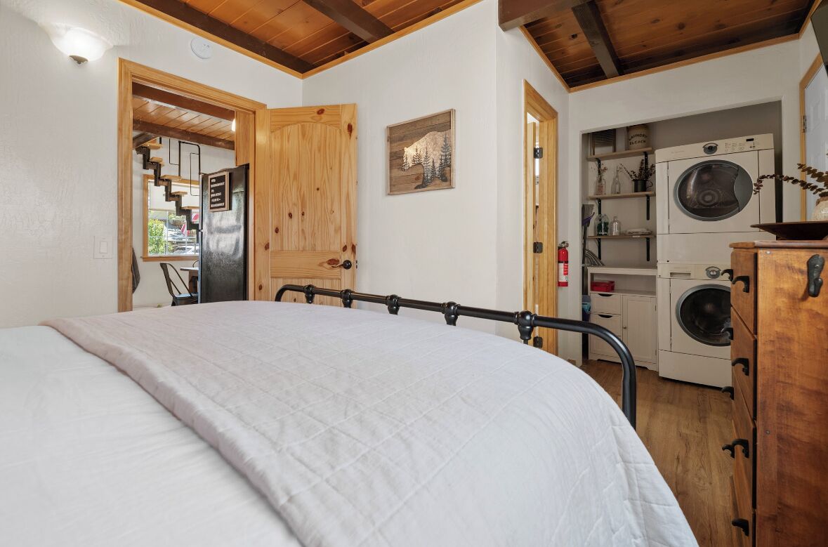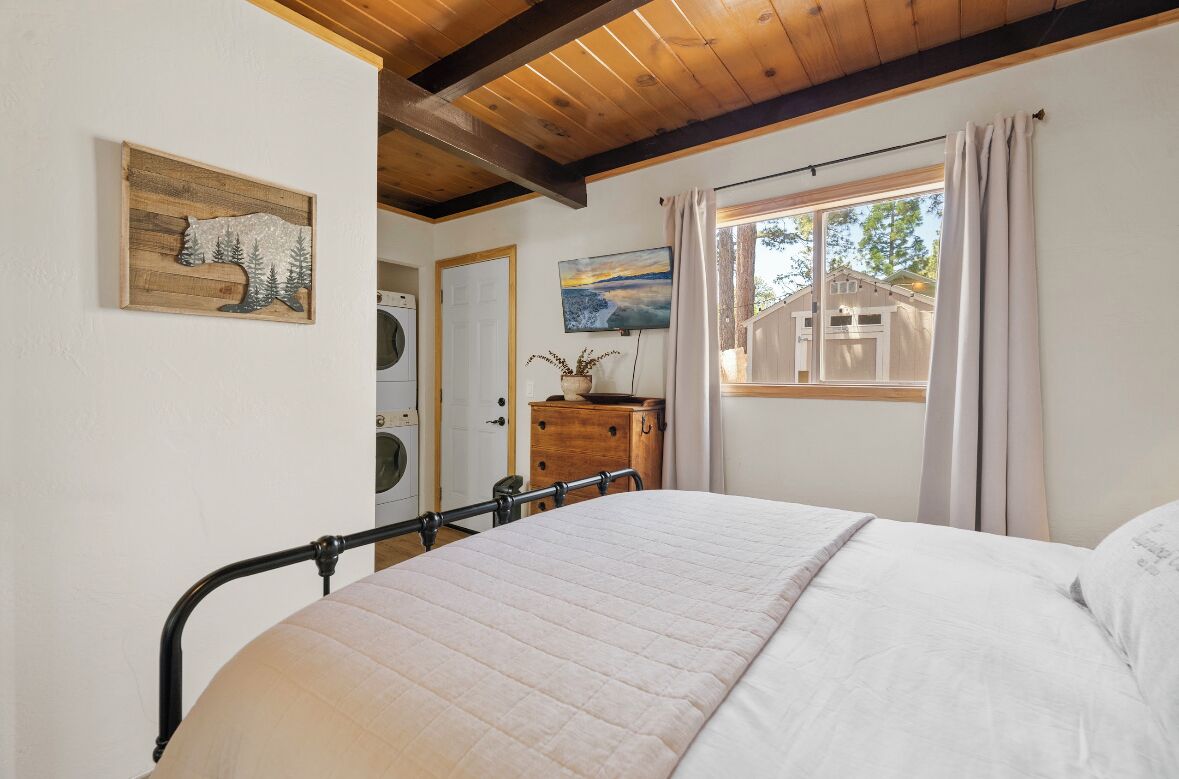 Cozy cabin in Big Bear Our home offers a one bedroom with queen bed downstairs, attached bathroom with washer & dryer, toddler pack and play is underneath the bed and available for your use. Kitchen is fully equipped with cooking supplies, place ware for the family (indoor and outdoor plates), coffee & tea station, and popcorn for everyone to enjoy. Full size fridge, stove, microwave & toaster are...