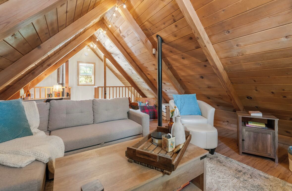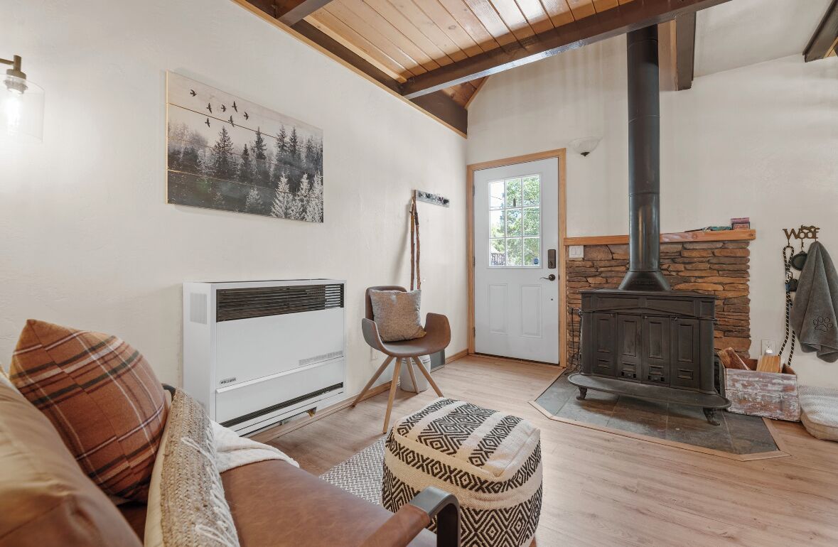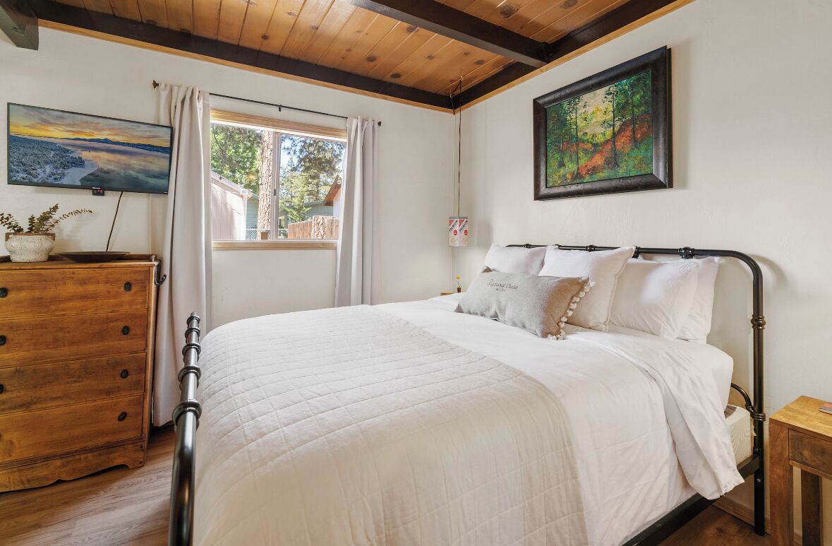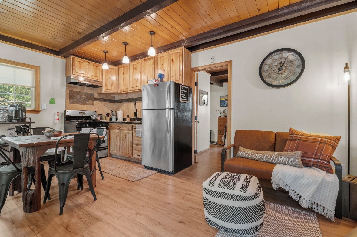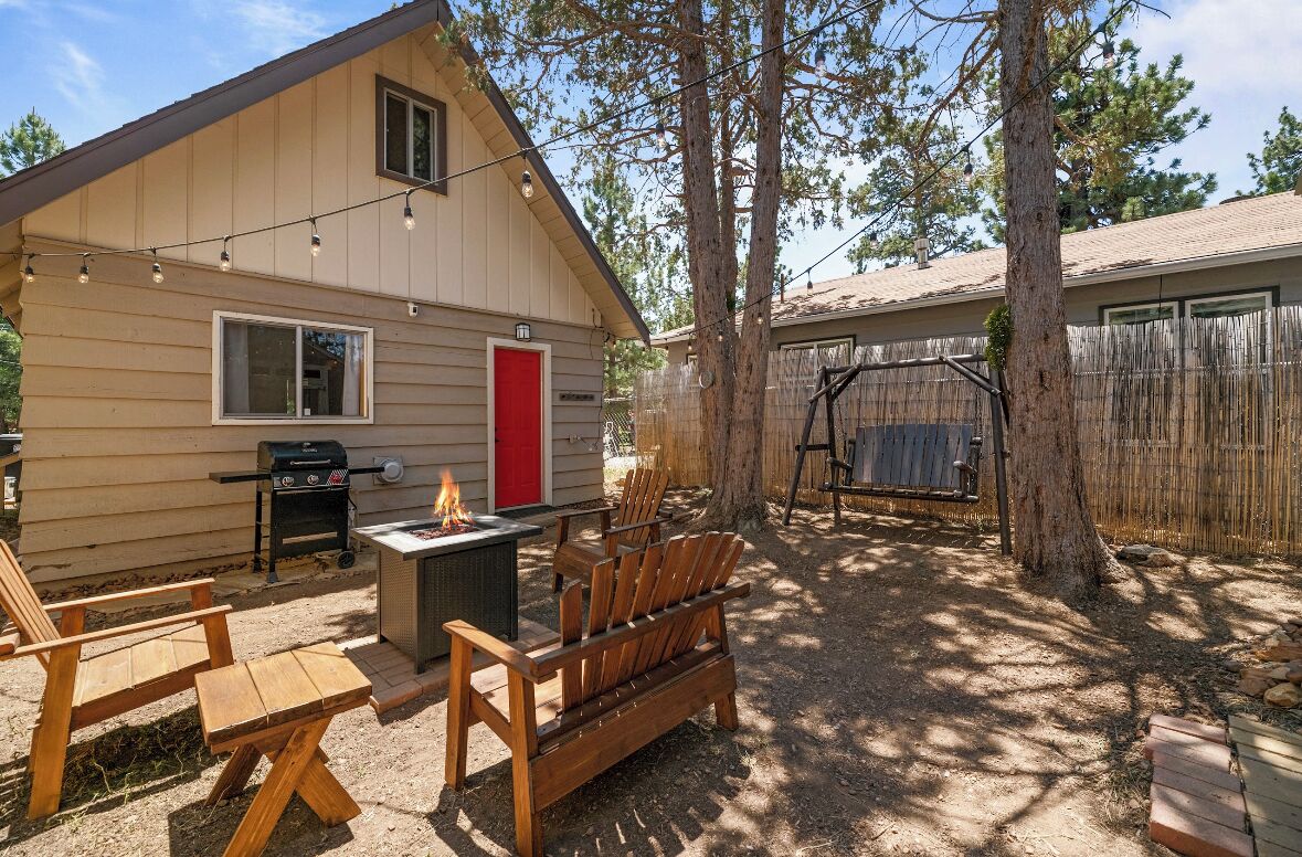 Cozy cabin in Big Bear Our home offers a one bedroom with queen bed downstairs, attached bathroom with washer & dryer, toddler pack and play is underneath the bed and available for your use. Kitchen is fully equipped with cooking supplies, place ware for the family (indoor and outdoor plates), coffee & tea station, and popcorn for everyone to enjoy. Full size fridge, stove, microwave & toaster are for your use. The loft upstairs is your entertainment room stocked with a kids corner, board games for the whole family and office area if you need to get a little work done. The living area has a Roku streaming tv and a futon/pullout couch perfect for your littles. Baby gate is located at the top of the staircase for safety. In the backyard you’ll enjoy a gas firepit with 4-person seating, a swing for two to enjoy your morning coffee or afternoon beverage and a gas bbq for afternoon grilling. Turn on the string lights at night for the perfect mountain vibe by the fire. Follow us on insta @thesugarloafchalet