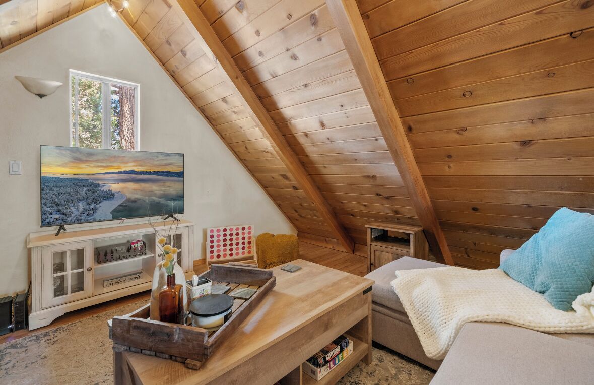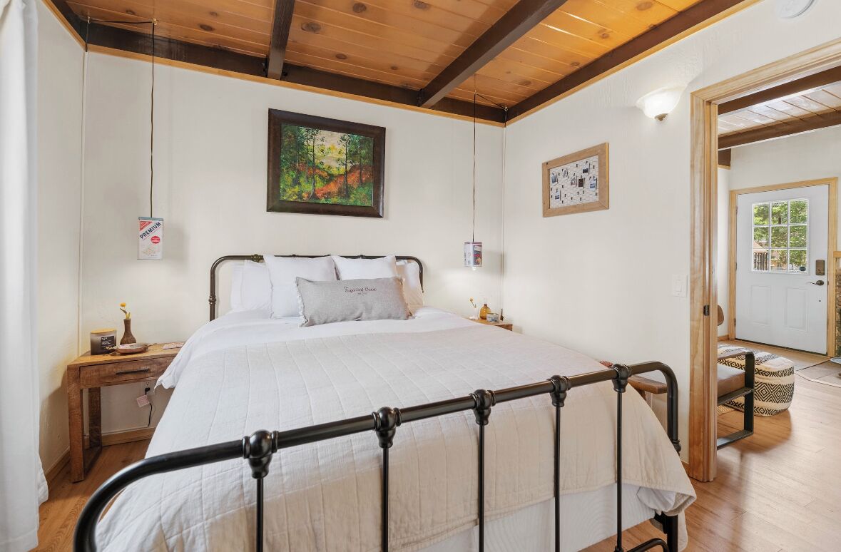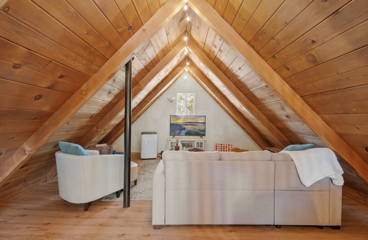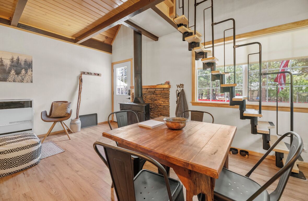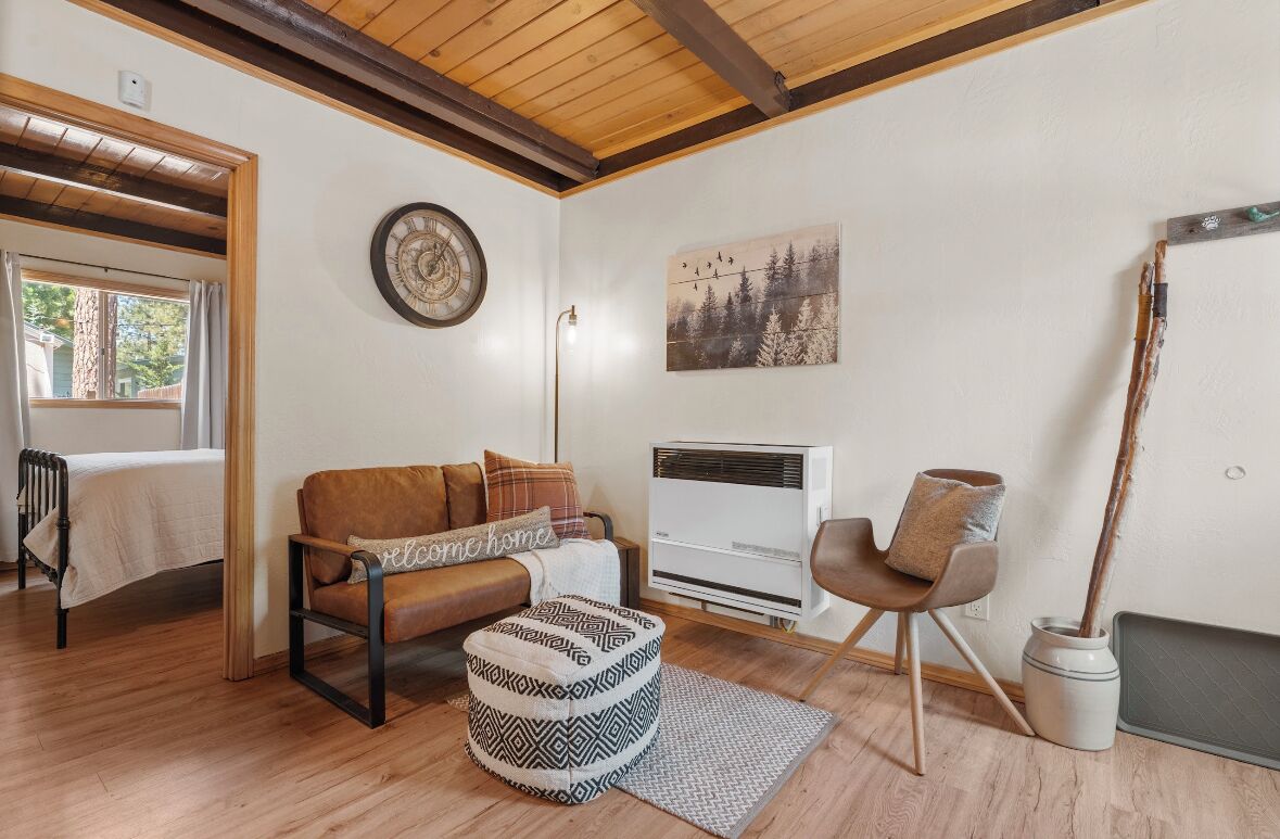 Cozy cabin in Big Bear Our home offers a one bedroom with queen bed downstairs, attached bathroom with washer & dryer, toddler pack and play is underneath the bed and available for your use. Kitchen is fully equipped with cooking supplies, place ware for the family (indoor and outdoor plates), coffee & tea station, and popcorn for everyone to enjoy. Full size fridge, stove, microwave & toaster are for your use. The loft upstairs is your entertainment room stocked with a kids corner, board games for the whole family and office area if you need to get a little work done. The living area has a Roku streaming tv and a futon/pullout couch perfect for your littles. Baby gate is located at the top of the staircase for safety. In the backyard you’ll enjoy a gas firepit with 4-person seating, a swing for two to enjoy your morning coffee or afternoon beverage and a gas bbq for afternoon grilling. Turn on the string lights at night for the perfect mountain vibe by the fire. Follow us on insta @thesugarloafchalet
