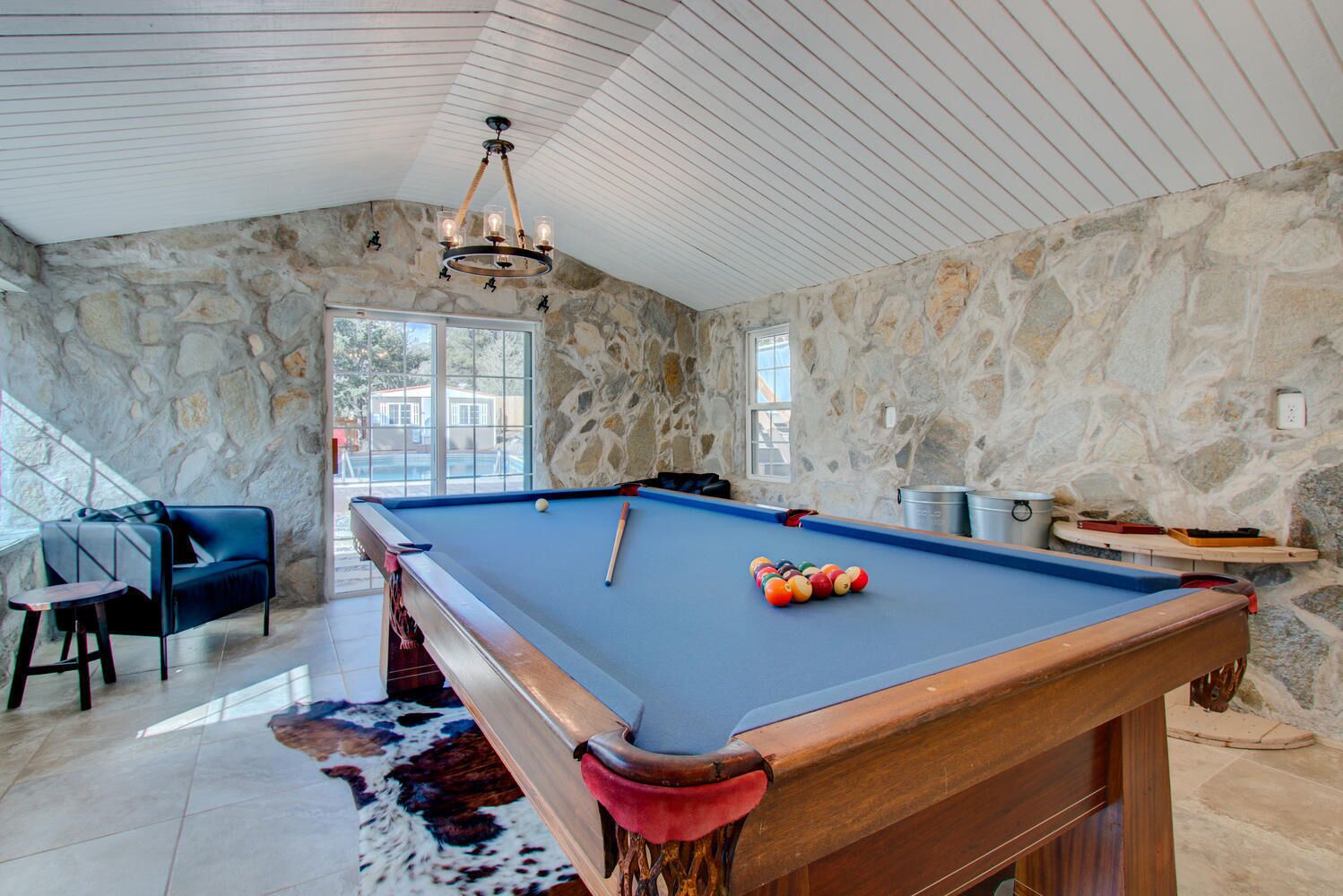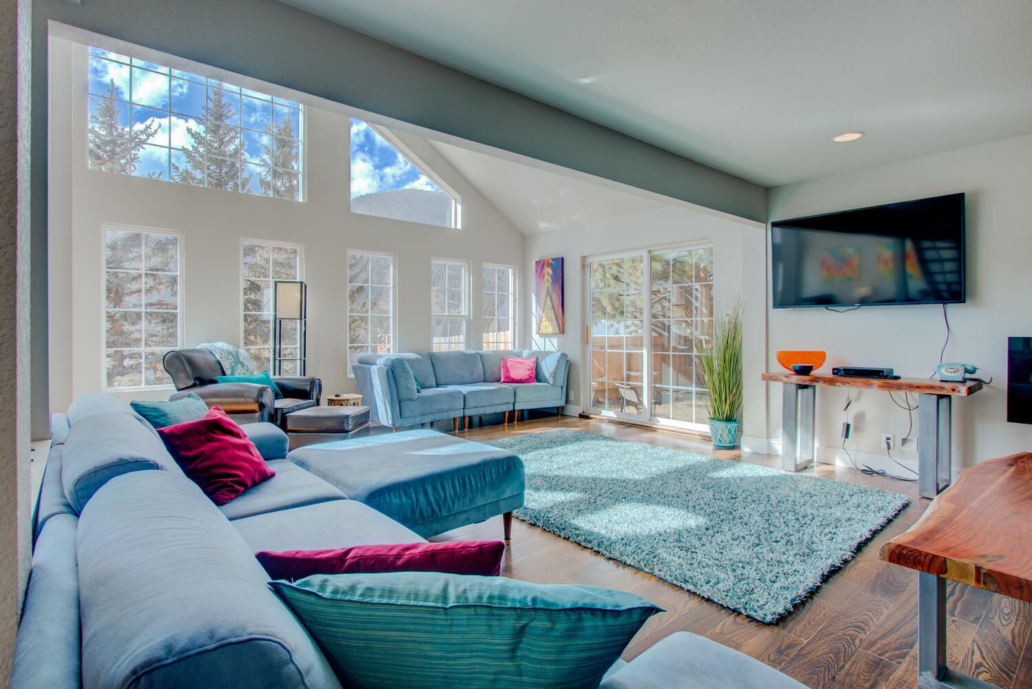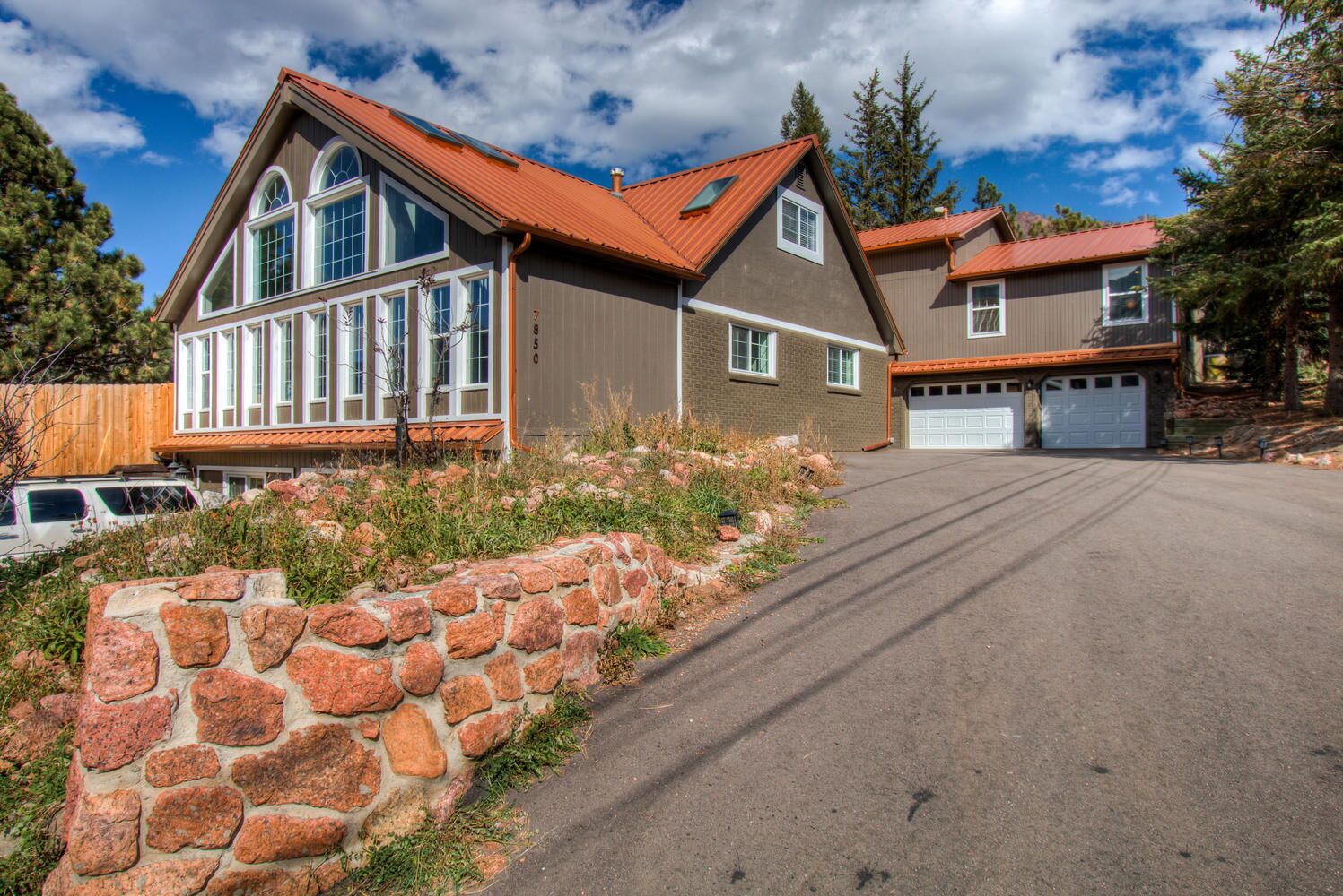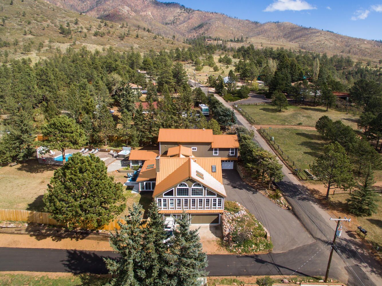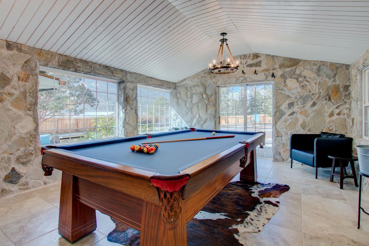 Colorado Spgs mountain luxury @base of Pikes Peak -private heated pool & hot tub The home: On the edge of Colorado Springs, Colorado, nestled between the two quaint, historic Colorado mountain towns of Manitou Springs and Woodland Park - this luxurious mountain house sits at 8200 ft at the base of Pikes Peak with quick access to endless unique local amenities, dining, and attractions. Forget about the chain restaurants, you’ll be captivated by the local cuisine and artisanship of the Rockies. Come home after a day of hiking, shopping, or scenic driving through the mountains just 2 minutes off the highway to a relaxing mountainside retreat in this unique 5600 sq ft Colorado custom "Rustic Sheek" home on over 1/2 an acre. It couldn’t be more ideal for large family vacations or reunions/gatherings of friends. The expansive living room boasts soaring windows & wall-to-wall mountain views. The kitchen is a chef’s dream with stainless steel appliances, 5 burner gas cook top, a large wine bottle cooler, gorgeous granite kitchen counters and your own coffee/tea bar. Enjoy family time together in the large theatre/game room with a brand new 58 inch flat screen, foos ball table, and a beautifully restored 110 year old pool table in the adjacent stone wall billiard room. This is the perfect place for adults to unwind with panoramic windows capturing Colorado’s outdoor beauty. Walk out to the open private fenced back yard and enjoy the jaw dropping views of the Rockies while you relax in the largest hot tub available. The expansive wood decking surrounding the outdoor heated pool allow you to entertain while you enjoy your backyard oasis and marvel at the majestic mountain views. Fun Fact: This property is rumoured to have once been a recording studio and mountain retreat for artists such as Led Zepplin, The Rolling Stones, Aerosmith, & Van Zant.Sleeping Accommodations: The main level bedroom is equipped with a queen size bed and an adjacent 3/4 bath. Up the floating stairs, the owner’s oasis includes a king size bed, a daybed and a glorious two person shower & soaking tub. There are 2 more bathrooms upstairs, one with a shower and one with a shower/tub. One other bedroom boasts a kids dream sleeping area - adults mind your head- but climb up a ladder up to a bridge crossing to a loft with a full size bedroom outfitted with a queen size bed. Below you will find an extra long full size bed. Also upstairs is another bedroom with a twin boat bed and pull out trundle. The 5th room has 2 more roomy full-size extra long adjustable beds where you can take in the beautiful mountain views from most windows, as well as an above the bed skylight: enjoy star gazing as you drift off to sleep! In the downstairs game room, a triple bunk bed is tucked away in the corner for those teens that like to fall asleep watching movies or playing games. If needing more bed space, there is an additional chair that converts nicely to a single bed for a child, as well as air mattresses available upon request. The game room downstairs also offers a triple bunk if needed, ideal for kids/teens. Community: Named for nearby waterfalls, Cascade beckons to visitors as the front door to Pikes Peak, the country's most visited mountain. We know you will love your stay in our scenic mountain town of Cascade, among these Pikes Peak foothills and just minutes from Colorado Springs. If you are looking for a mountain retreat centrally located yet not your average neighborhood home than this is the place. With numerous hiking trails right outside your door, and a prime locale for so many tourist attractions - it really is the perfect launching point for all the front range has to offer. Getting around: A short three minute drive will take you to the entrance to Pikes Peak Highway, and the famous amusement park the North Pole, (open May through December). The unheralded Wines of Colorado is walking distance from the house - a happening hot spot for creek side dining or wine tasting and a must do while you’re here. Ten minutes drive will put you in downtown Manitou Springs, where you can hunt for fountains in the quaint streets and sample underground natural spring water, known for its high mineral content. Here you will also find an abundance of shops and restaurants, a famous penny arcade, zip lining, and satisfy your sweet tooth with plenty of candy, chocolate shops and ice cream shops. Green Mountain Falls is only 5 minutes up the pass where you can have lunch and stroll along Gazebo Lake. Also within a 10 minute drive is the entrance to Cave Of the Winds and the famous towering red rocks of Garden of the Gods. The very happening downtown Colorado Springs is less than a 15 minutes drive. Only 25 minutes and you are at the South Gate to the renowned United States Air Force Academy. A short twenty minutes will take you to Cheyenne Mountain Zoo, recently named the 4th best zoo in North America, and countless other attractions in southern Colorado Springs. Keep heading west up the pass and discover Woodland Park - a charming mountain town, home to the famous Donut Mill, and the site of the Rocky Mountain Dinosaur Resource Center. Woodland Park is also home to Colorado Wolf Adventures and for a more relaxed evening, try one of the outstanding local breweries. If you come in the winter - day trips to world renowned ski slopes such as Breckenridge, are less than 2 hours away. Getting here: Fly in to the Colorado Springs Airport (COS) for a quick door to door transfer of only 30 minutes or take an hour and a half and drive the scenic route from Denver (DEN).