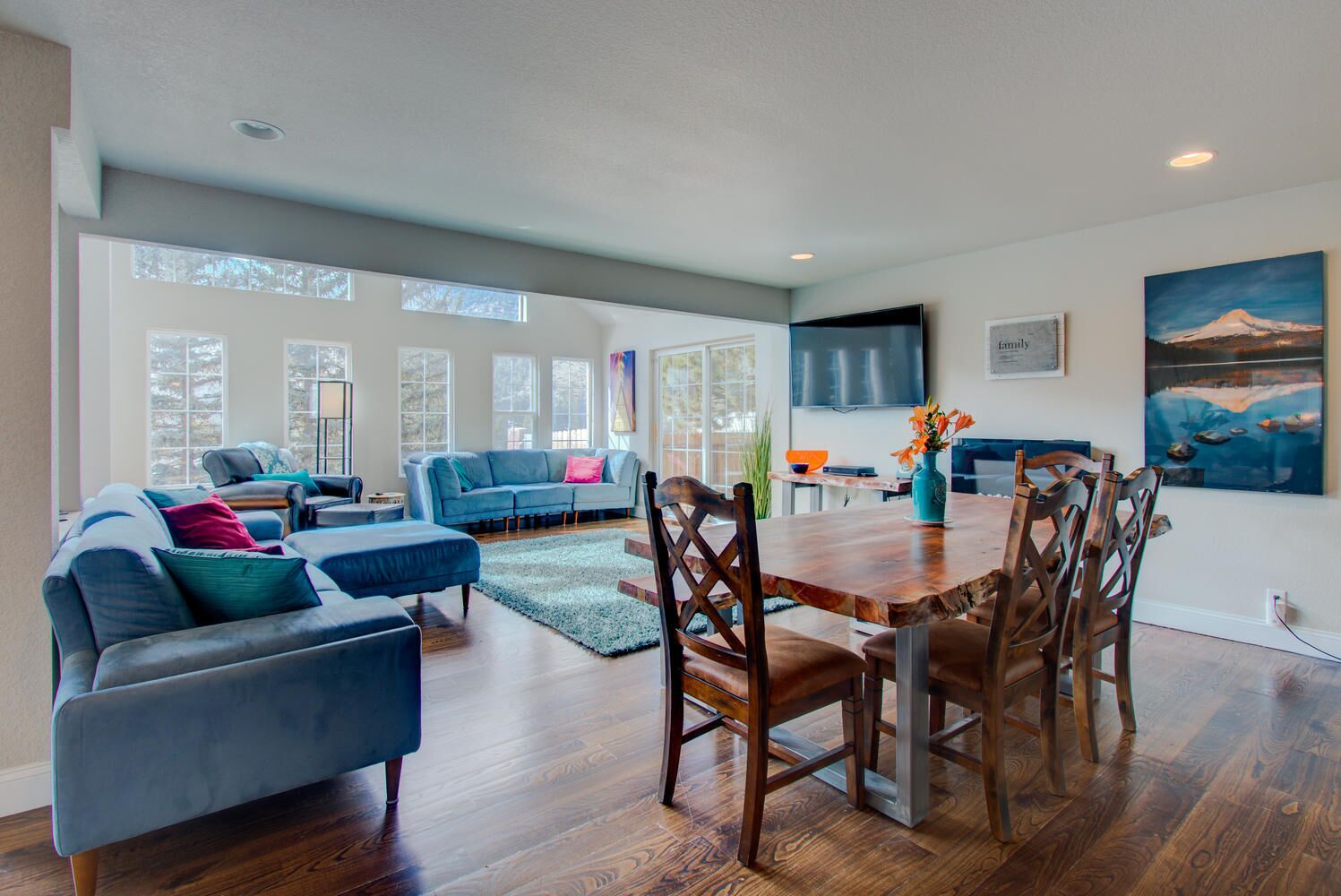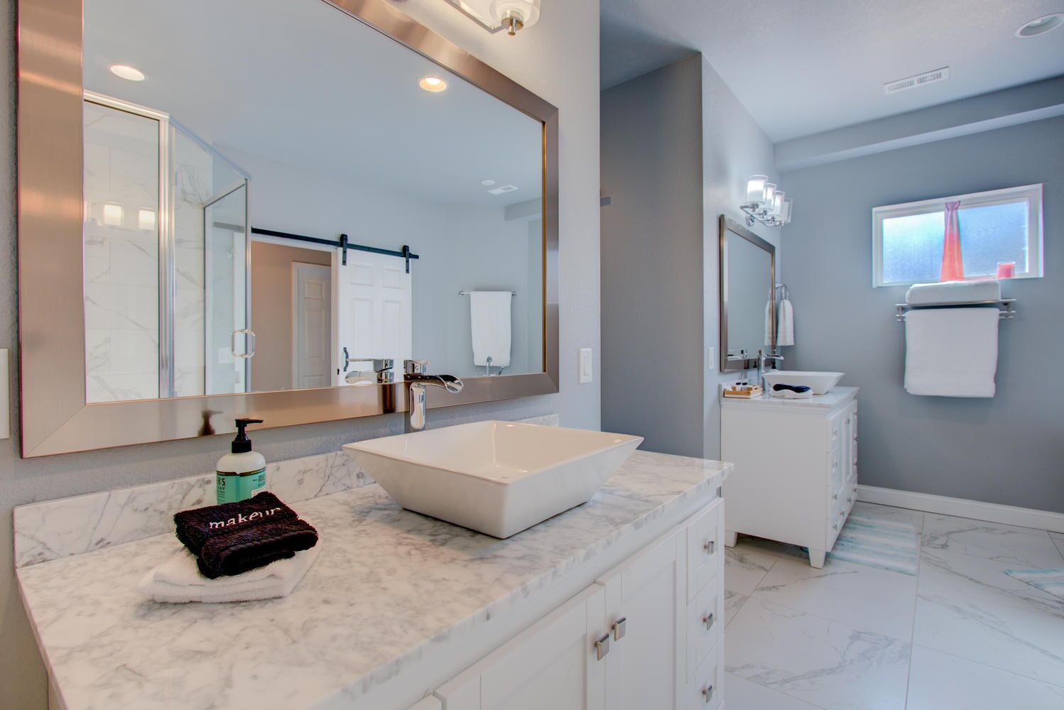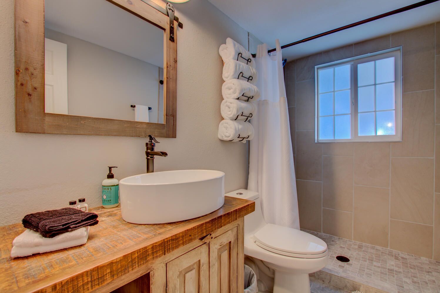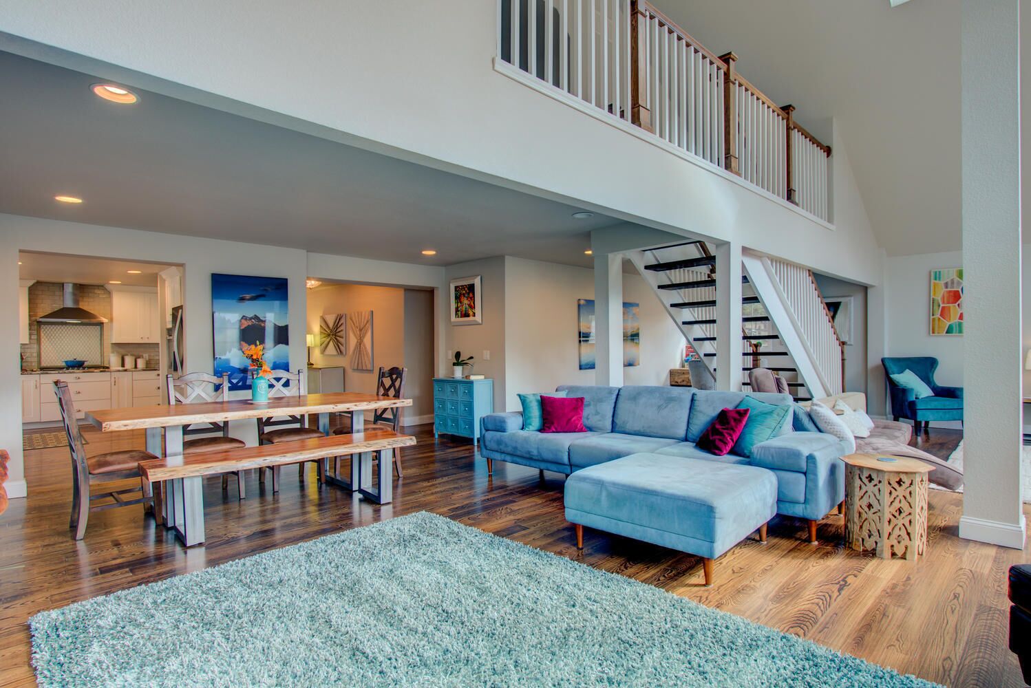 Colorado Spgs mountain luxury @base of Pikes Peak -private heated pool & hot tub The home: On the edge of Colorado Springs, Colorado, nestled between the two quaint, historic Colorado mountain towns of Manitou Springs and Woodland Park - this luxurious mountain house sits at 8200 ft at the base of Pikes Peak with quick access to endless unique local amenities, dining, and attractions. Forget about the chain restaurants, you’ll be captivated by the local cuisine and artisanship of the Rockies. Come home after a day of hiking, shopping, or scenic driving through the mountains just 2 minutes off the highway to a relaxing mountainside retreat in this unique 5600 sq ft Colorado custom "Rustic Sheek" home on over 1/2 an acre. It couldn’t be more ideal for large family vacations or reunions/gatherings of friends. The expansive living room boasts soaring windows & wall-to-wall mountain views. The kitchen is a chef’s dream with stainless steel appliances, 5 burner gas cook top, a large wine bottle cooler, gorgeous granite kitchen counters and your own coffee/tea bar. Enjoy family time together in the large theatre/game room with a brand new 58 inch flat screen, foos ball table, and a beautifully restored 110 year old pool table in the adjacent stone wall billiard room. This is the perfect place for adults to unwind with panoramic windows capturing Colorado’s outdoor beauty. Walk out to the open private fenced back yard and enjoy the jaw dropping views of the Rockies while you relax in the largest hot tub available. The expansive wood decking surrounding the outdoor heated pool allow you to entertain while you enjoy your backyard oasis and marvel at the majestic mountain views. Fun Fact: This property is rumoured to have once been a recording studio and mountain retreat for artists such as Led Zepplin, The Rolling Stones, Aerosmith, & Van Zant.Sleeping Accommodations: The main level bedroom is equipped with a queen size bed and an adjacent 3/4 bath. Up the floating stairs, the owner’s oasis includes a king size bed, a daybed and a glorious two person shower & soaking tub. There are 2 more bathrooms upstairs, one with a shower and one with a shower/tub. One other bedroom boasts a kids dream sleeping area - adults mind your head- but climb up a ladder up to a bridge crossing to a loft with a full size bedroom outfitted with a queen size bed. Below you will find an extra long full size bed. Also upstairs is another bedroom with a twin boat bed and pull out trundle. The 5th room has 2 more roomy full-size extra long adjustable beds where you can take in the beautiful mountain views from most windows, as well as an above the bed skylight: enjoy star gazing as you drift off to sleep! In the downstairs game room, a triple bunk bed is tucked away in the corner for those teens that like to fall asleep watching movies or playing games. If needing more bed space, there is an additional chair that converts nicely to a single bed for a child, as well as air mattresses available upon request. The game room downstairs also offers a triple bunk if needed, ideal for kids/teens. Community: Named for nearby waterfalls, Cascade beckons to visitors as the front door to Pikes Peak, the country's most visited mountain. We know you will love your stay in our scenic mountain town of Cascade, among these Pikes Peak foothills and just minutes from Colorado Springs. If you are looking for a mountain retreat centrally located yet not your average neighborhood home than this is the place. With numerous hiking trails right outside your door, and a prime locale for so many tourist attractions - it really is the perfect launching point for all the front range has to offer. Getting around: A short three minute drive will take you to the entrance to Pikes Peak Highway, and the famous amusement park the North Pole, (open May through December). The unheralded Wines of Colorado is walking distance from the house - a happening hot spot for creek side dining or wine tasting and a must do while you’re here. Ten minutes drive will put you in downtown Manitou Springs, where you can hunt for fountains in the quaint streets and sample underground natural spring water, known for its high mineral content. Here you will also find an abundance of shops and restaurants, a famous penny arcade, zip lining, and satisfy your sweet tooth with plenty of candy, chocolate shops and ice cream shops. Green Mountain Falls is only 5 minutes up the pass where you can have lunch and stroll along Gazebo Lake. Also within a 10 minute drive is the entrance to Cave Of the Winds and the famous towering red rocks of Garden of the Gods. The very happening downtown Colorado Springs is less than a 15 minutes drive. Only 25 minutes and you are at the South Gate to the renowned United States Air Force Academy. A short twenty minutes will take you to Cheyenne Mountain Zoo, recently named the 4th best zoo in North America, and countless other attractions in southern Colorado Springs. Keep heading west up the pass and discover Woodland Park - a charming mountain town, home to the famous Donut Mill, and the site of the Rocky Mountain Dinosaur Resource Center. Woodland Park is also home to Colorado Wolf Adventures and for a more relaxed evening, try one of the outstanding local breweries. If you come in the winter - day trips to world renowned ski slopes such as Breckenridge, are less than 2 hours away. Getting here: Fly in to the Colorado Springs Airport (COS) for a quick door to door transfer of only 30 minutes or take an hour and a half and drive the scenic route from Denver (DEN).