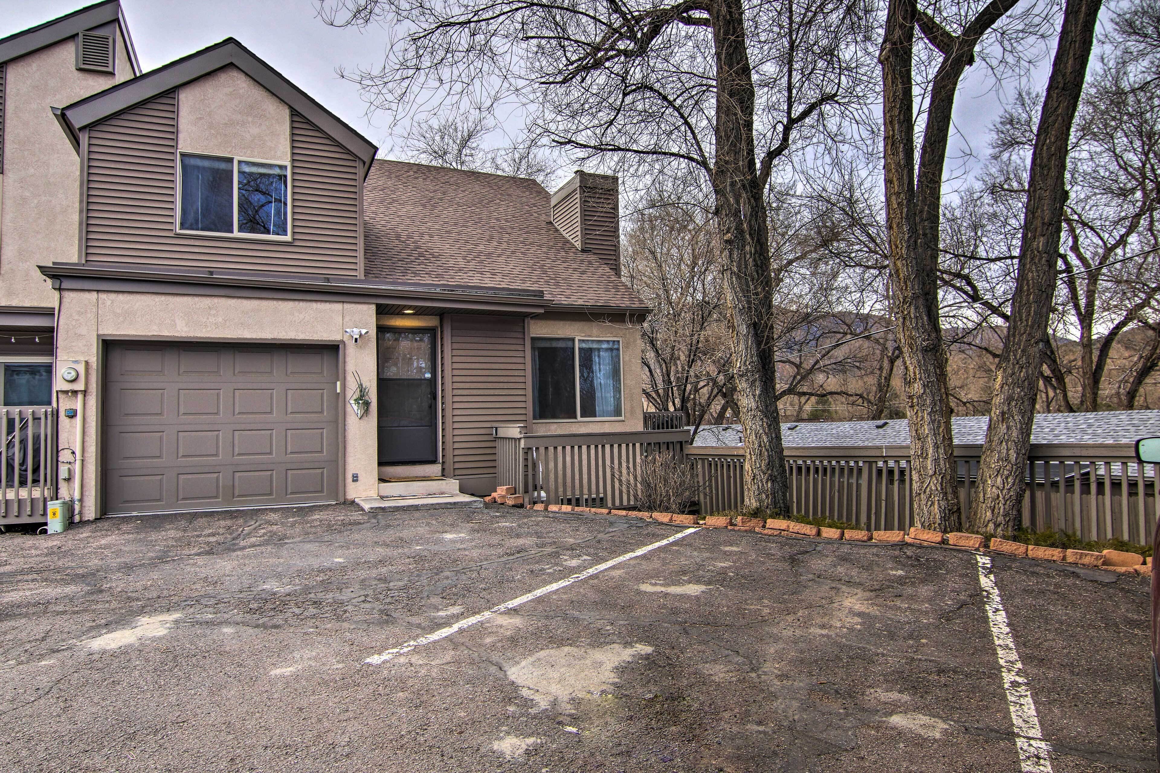 Manitou Springs Condo w/ Hammock + Mtn Views! Breathe in fresh mountain air from Pikes Peak, Cheyenne Mountain, San Isabel Forest, or Garden of the Gods, all set nearby when you stay at this Manitou Springs vacation rental. Perfect for a nature-filled getaway with family or friends, this condo provides Rocky Mountain views, steps to the Red Rock Canyon trail and Manitou Springs. With Colorado Springs 5 miles away and Denver nearby for a day trip, find yourself lost in an abundance of outdoor activity and relaxation at this spacious condo!-- THE PROPERTY --Outdoor Seating | Pikes Peak Views | 5 Miles to Colorado Springs | Home OfficeGather the family or a group of pals for a getaway in historic Manitou Springs to get outside, adventure, and soak in breathtaking sights. Bedroom 1: King Bed | Bedroom 2: Queen Bed | Bedroom 3: Twin Bunk Bed w/ Twin Trundle Bed | Living Room: Sleeper Sofa | Additional Sleeping: Pack ‘n PlayOUTDOOR LIVING: Gas grill, deck w/ outdoor dining, swinging hammockINDOOR LIVING: Flat-screen cable TVs, Smart TVs, Nintendo Switch dock, fireplace, dining room table, en-suite bathroom, vaulted ceilingsKITCHEN: Fully equipped, blender, coffee maker, high chair, breakfast barGENERAL: Free WiFi, washer & dryer, towels & linens, hair dryer, central A/C & heat, ceiling fansFAQ: Exterior security cameras (facing out), stairs to access, no bedrooms on ground floorPARKING: Driveway (3 vehicles), EV charger available (free level 2 (J 1772 plug))-- THE LOCATION --OUTDOOR ADVENTURE: Garden of the Gods (0.5 miles), Manitou Pool & Fitness Center (0.6 miles), Leaning Rock/Garden of the Gods (0.5 miles), Pikes Peak Access (2.1 miles), Manitou Incline (2.3 miles), Caves of the Winds Mountain Park (2.8 miles), Red Rock Canyon Trail (3.0 miles), Cheyenne Mountain (16.5 miles) THINGS TO SEE & DO: Downtown Manitou Springs (0.3 miles), Manitou Cliff Dwellings (1.6 miles), Pikes Peak Cog Railway (2.1 miles), Ghost Town Museum (3.0 miles), U.S. Olympic & Paralympic Museum (4.9 miles), Colorado Springs Pioneers Museum (5.1 miles), Pikes Peak (6.0 miles), The Broadmoor Hotel (6.6 miles), Cheyenne Mountain Zoo (8.1 miles), U.S. Air Force Academy (16.9 miles)BREWERIES + EATERIES: Manitou Brewing Company (1.1 miles), Phantom Canyon Brewing Company (5.0 miles), Oskar Blues Grill & Brew (5.5 miles), Bristol Brewing Company (5.9 miles), Rock Bottom Restaurant & Brewery (13.7 miles)DENVER (75.2 miles): Denver Botanic Gardens, Denver Art Museum, Denver Museum of Nature & Science, Denver Zoo, 16th Street Mall, Coors FieldAIRPORTS: Colorado Springs Airport (14.6 miles), Denver International Airport (86.9 miles)-- REST EASY WITH US --Evolve makes it easy to find and book properties you’ll never want to leave. You can relax knowing that our properties will always be ready for you and that we’ll answer the phone 24/7. Even better, if anything is off about your stay, we’ll make it right. You can count on our homes and our people to make you feel welcome--because we know what vacation means to you.-- POLICIES --- No smoking - No pets allowed- No events, parties or large gatherings - Must be at least 25 years old to book- Additional fees and taxes may apply- Photo ID may be required upon check-in- Please report any damages that occur to both the Guest Contact and Evolve- NOTE: Your safety matters. The property features exterior surveillance cameras on the home, facing out. They do not look into any interior spaces- NOTE: The property required stairs to access, and there are no bedrooms on the ground floor
