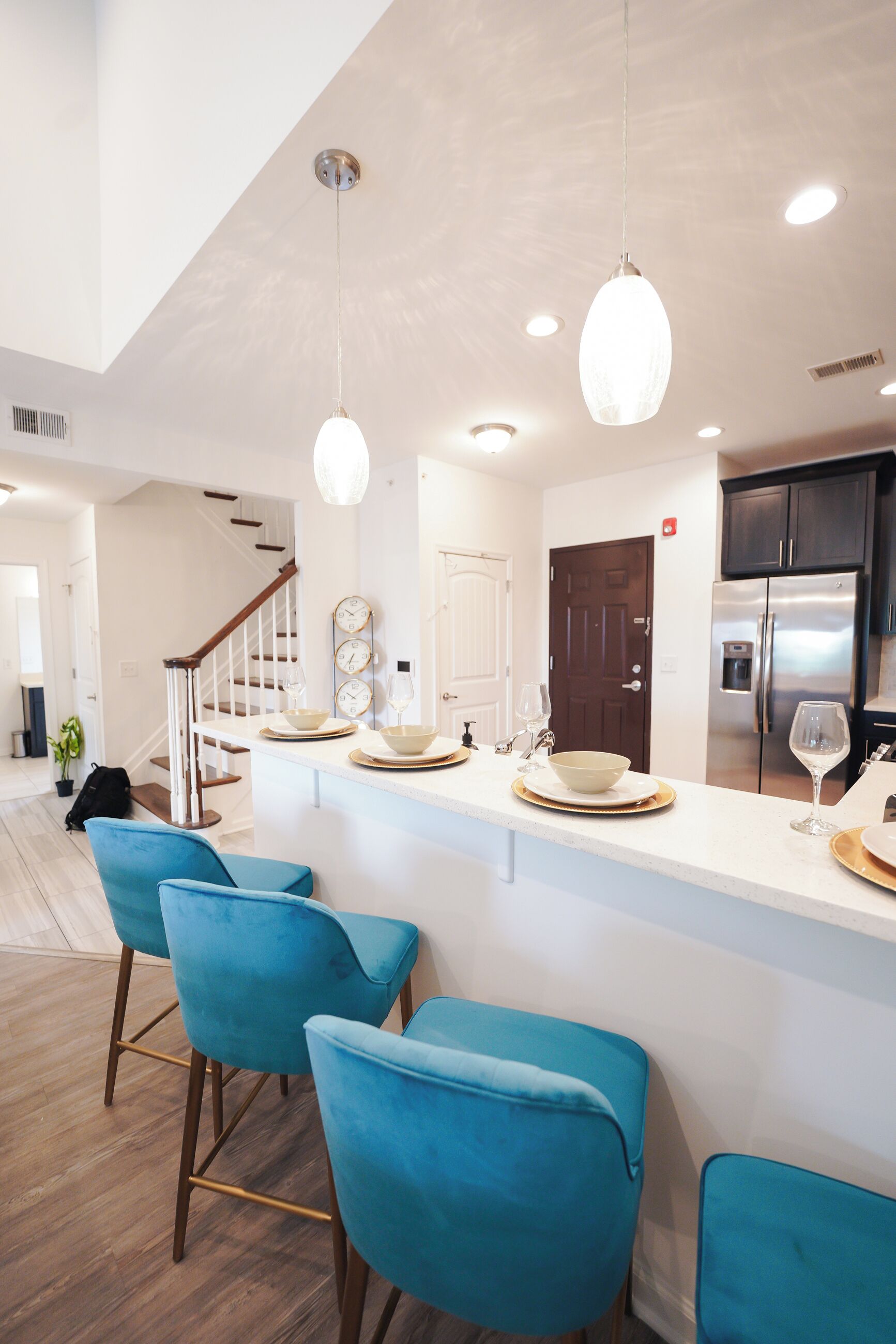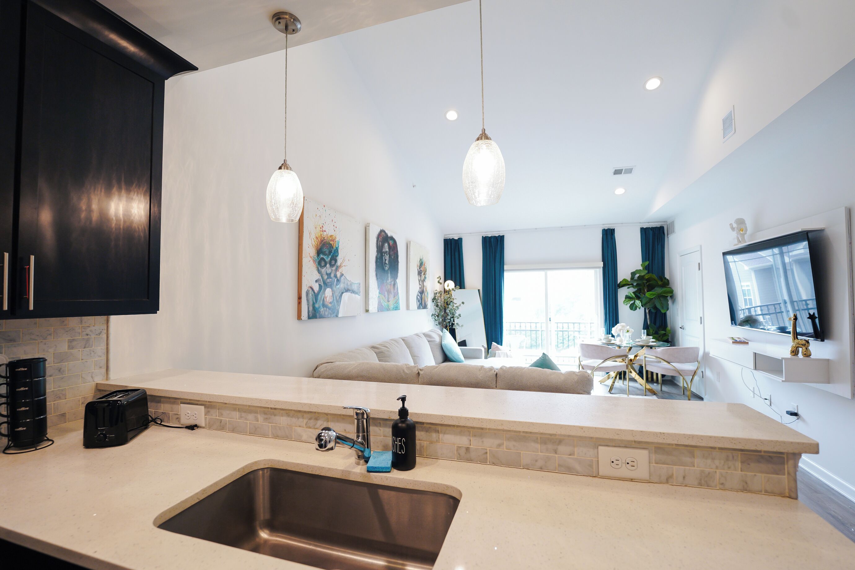 Posh Urban Loft Living: Your Stylish Downtown Experience Welcome to your vibrant urban oasis in the heart of the city! Nestled just moments away from the bustling downtown area and conveniently close to the train station, this two-level loft promises a stay that combines style, comfort, and convenience.As you step into this uniquely designed space, you'll be greeted by a burst of color and creativity. The loft is a testament to modern aesthetics with its open floor plan, high ceilings, and large windows that flood the space with natural light throughout the day. Every corner of the loft is thoughtfully curated with eclectic decor, blending contemporary elements with touches of artistic flair.The lower level invites you into a spacious living area where relaxation meets entertainment. Sink into the plush sofas adorned with vibrant cushions, perfect for unwinding after a day of exploring the city. Catch up on your favorite shows on the sleek flat-screen TV, or simply enjoy the ambiance created by the soft lighting and carefully chosen artwork adorning the walls.Adjacent to the living area is the fully equipped kitchen, a chef's delight boasting modern appliances and ample counter space. Whether you're preparing a quick breakfast before heading out or indulging in a leisurely dinner with friends, the kitchen caters to all your culinary needs. A stylish dining area with seating for four provides the ideal spot to savor your meals or gather for lively conversations.Climbing the stairs to the upper level, you'll discover the cozy sleeping quarters designed for ultimate comfort. The master bedroom features a plush queen-sized bed with luxurious linens, ensuring a restful night's sleep. A thoughtfully placed work desk offers a productive space for remote work or planning your next adventure in the city.The highlight of the loft is perhaps its vibrant personality reflected in every detail, from the colorful rugs to the handpicked decor pieces that add character and charm. Each room tells a story, inviting you to immerse yourself in its unique ambiance and atmosphere.For those seeking both relaxation and recreation, the loft's location is unbeatable. Step outside and find yourself surrounded by a myriad of dining options, trendy cafes, and local shops waiting to be explored. The nearby train station provides easy access to the city's iconic landmarks and attractions, making it a perfect base for both business travelers and tourists alike.After a day of sightseeing or meetings, retreat back to your sanctuary in the city. Whether you're lounging in the living area, preparing a meal in the kitchen, or enjoying a peaceful night's sleep in the comfortable bedroom, this loft offers everything you need for a memorable stay.Welcome to your colorful escape in the heart of the city—a place where modern design meets urban convenience. Book your stay today and experience the vibrant charm of this centrally located two-level loft firsthand. Your unforgettable urban adventure awaits!