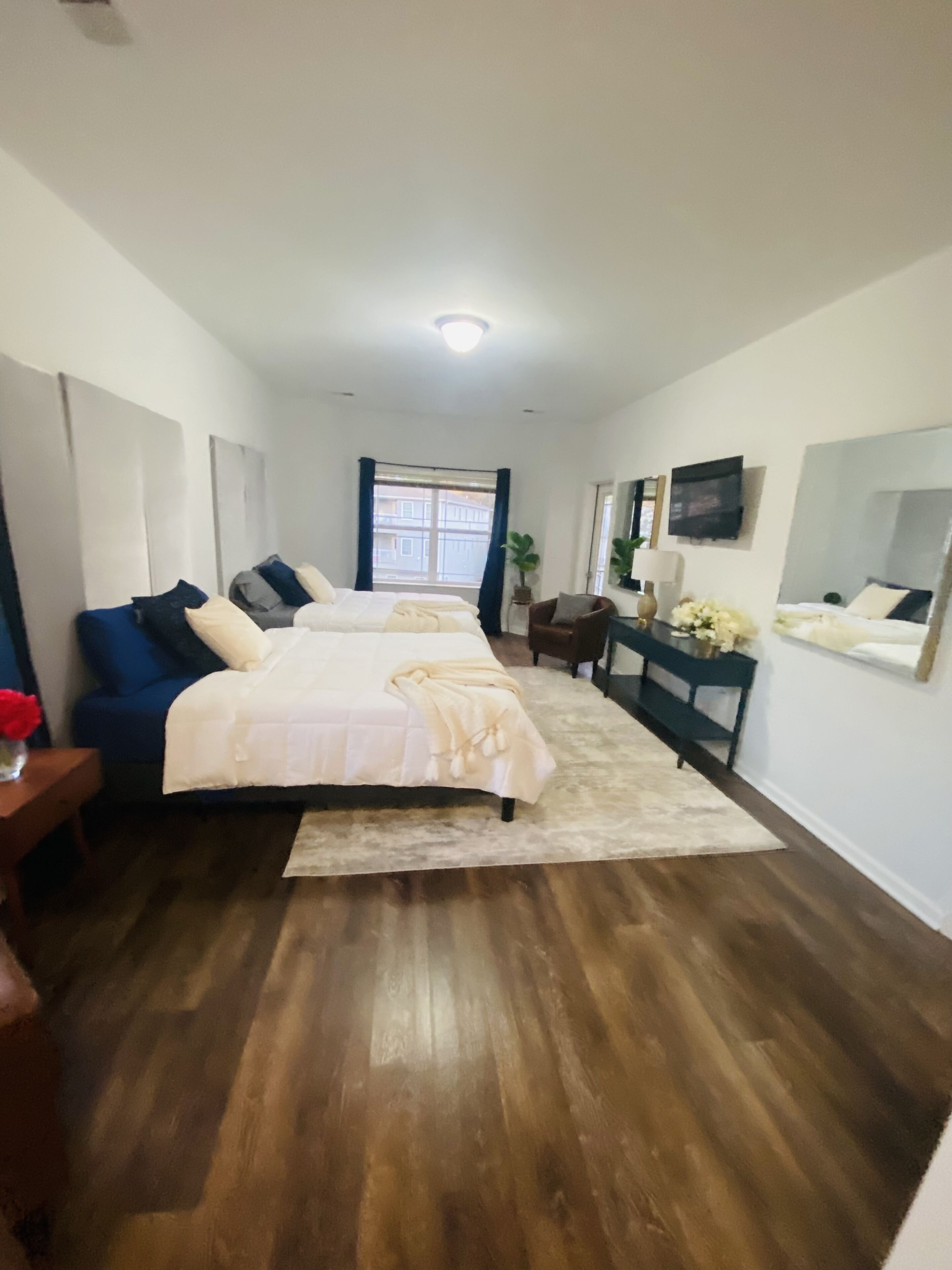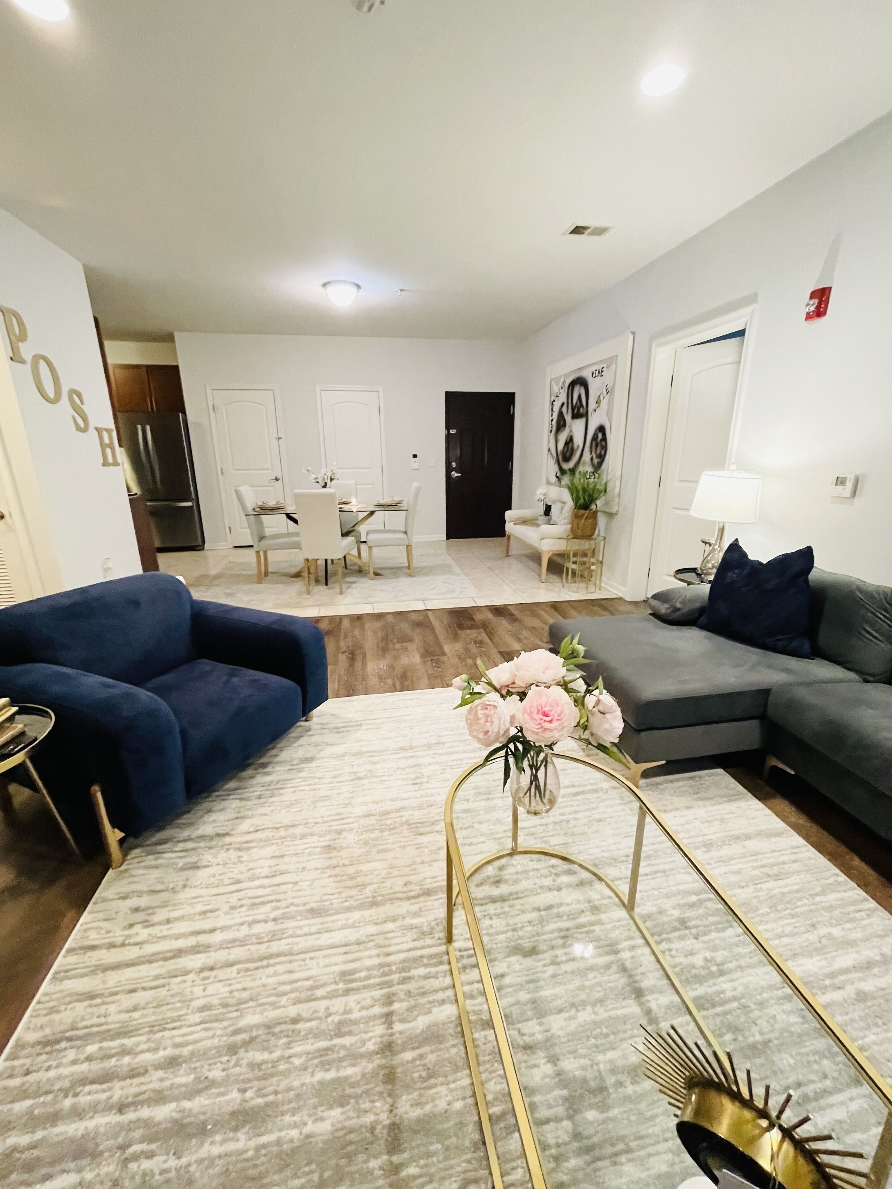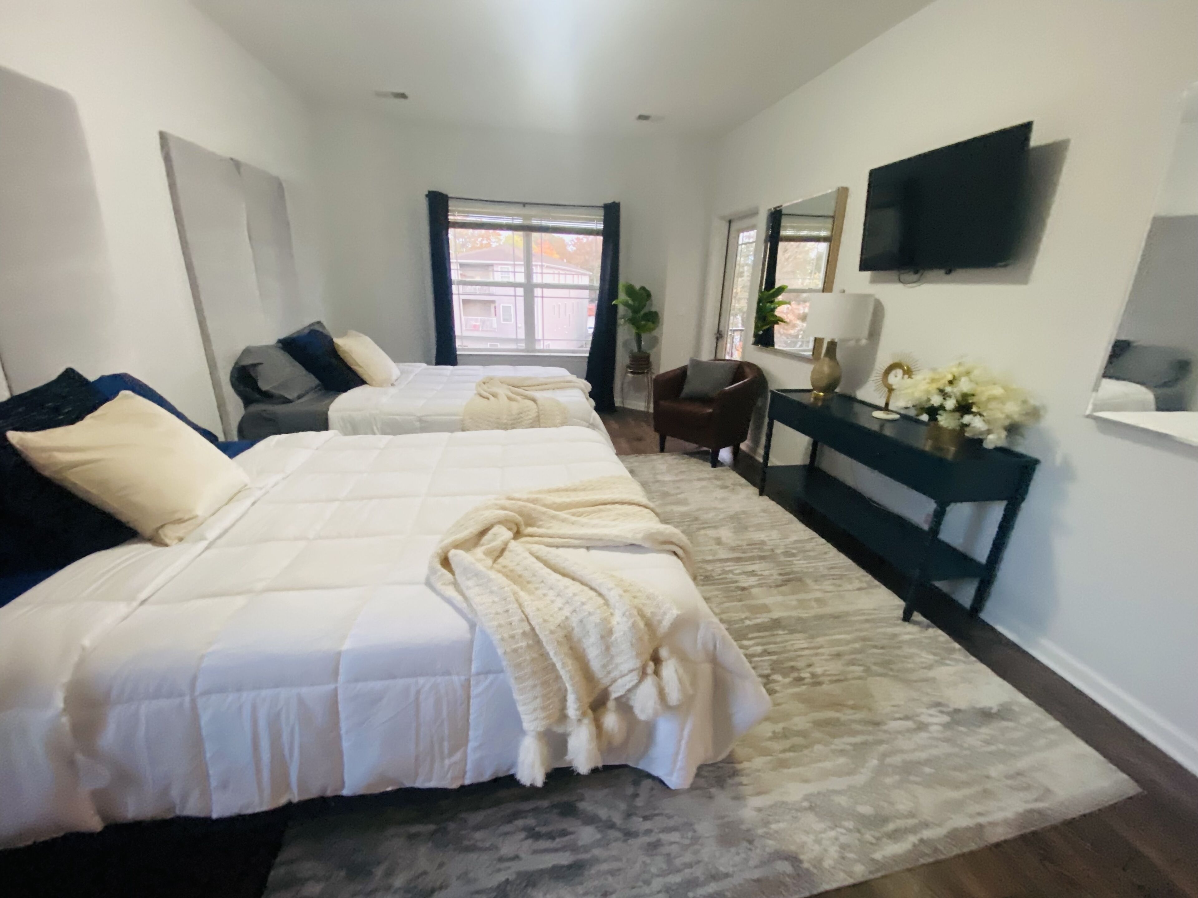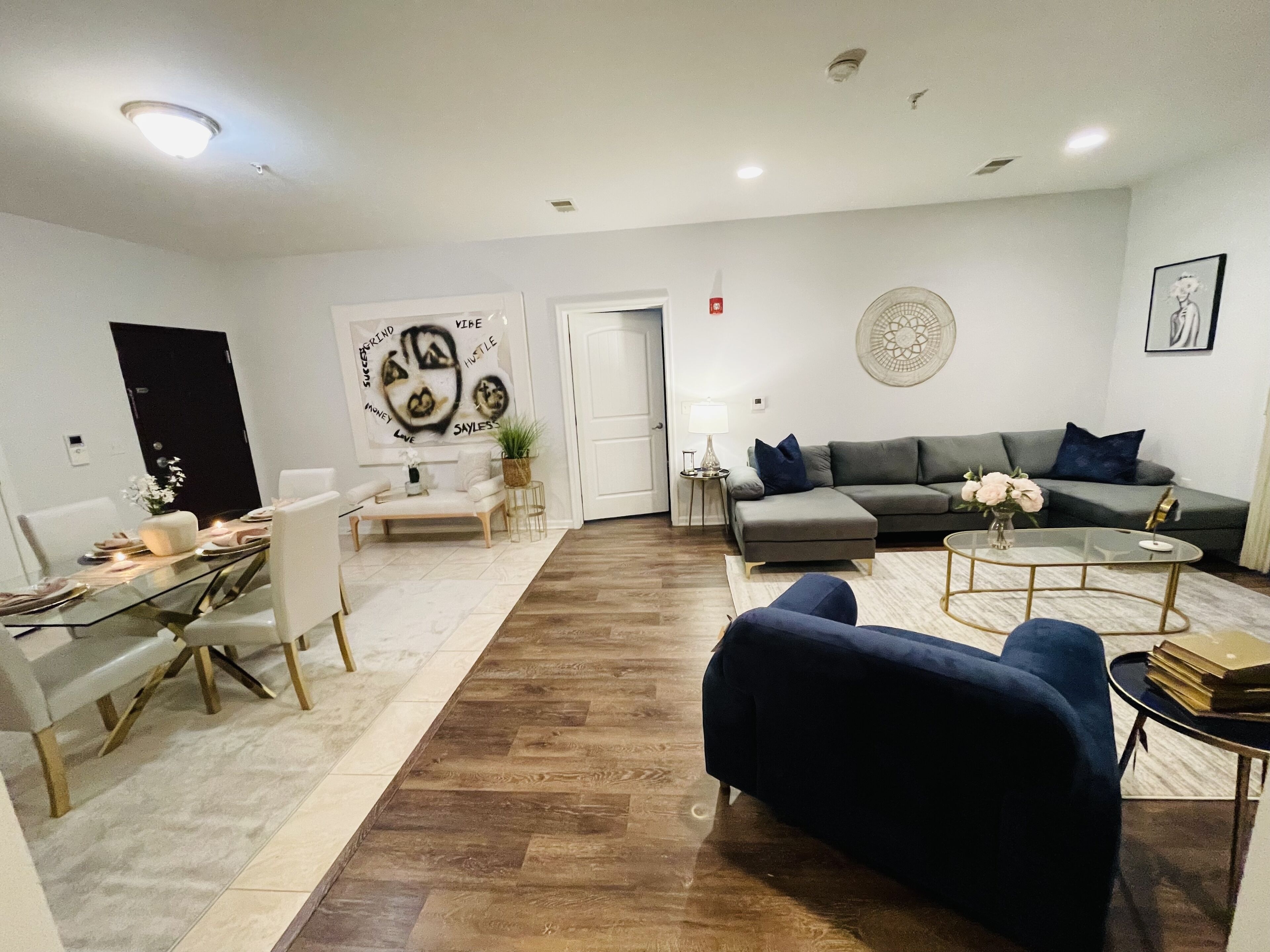 Posh Lux Condo Sleeps 6 Enjoy our spacious upscale condo one block away from the Elizabeth Train station.Centrally Located:Amenities: Balcony Garaged Parking Washer/Dryerhandicapped accesisble3 min from garden state parkway 20-30 min drive to NYC 8 min to Newark Airport 10 min to Jersey Gardens Mall2 min From Barcode Night Club20 min to American Dream Mall70" Smart tv’.+Balcony Free gated underground Parking High speed WIFIAll Kitchen & Bath Essentials (extra bed provide upon request only ) PETS UNDER 20 POUNDS ARE ALLOWED FOR A FEE