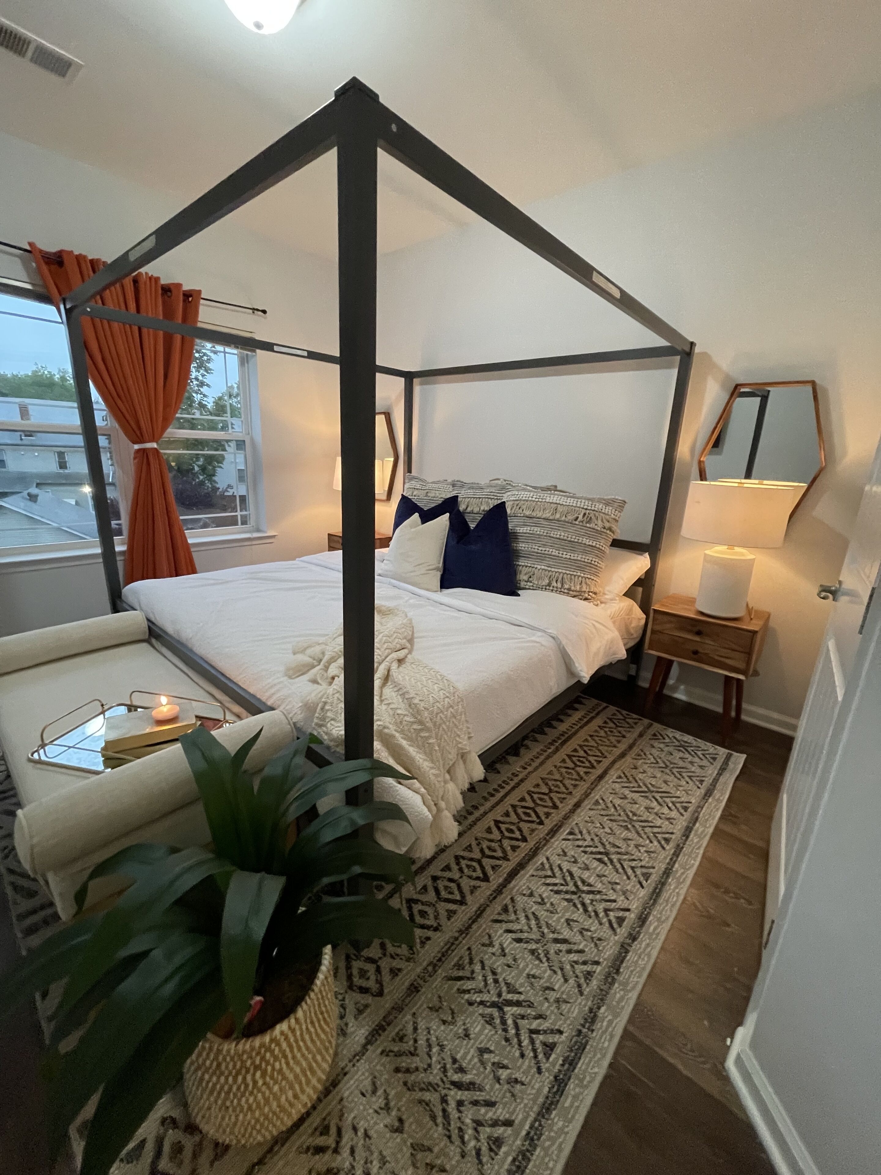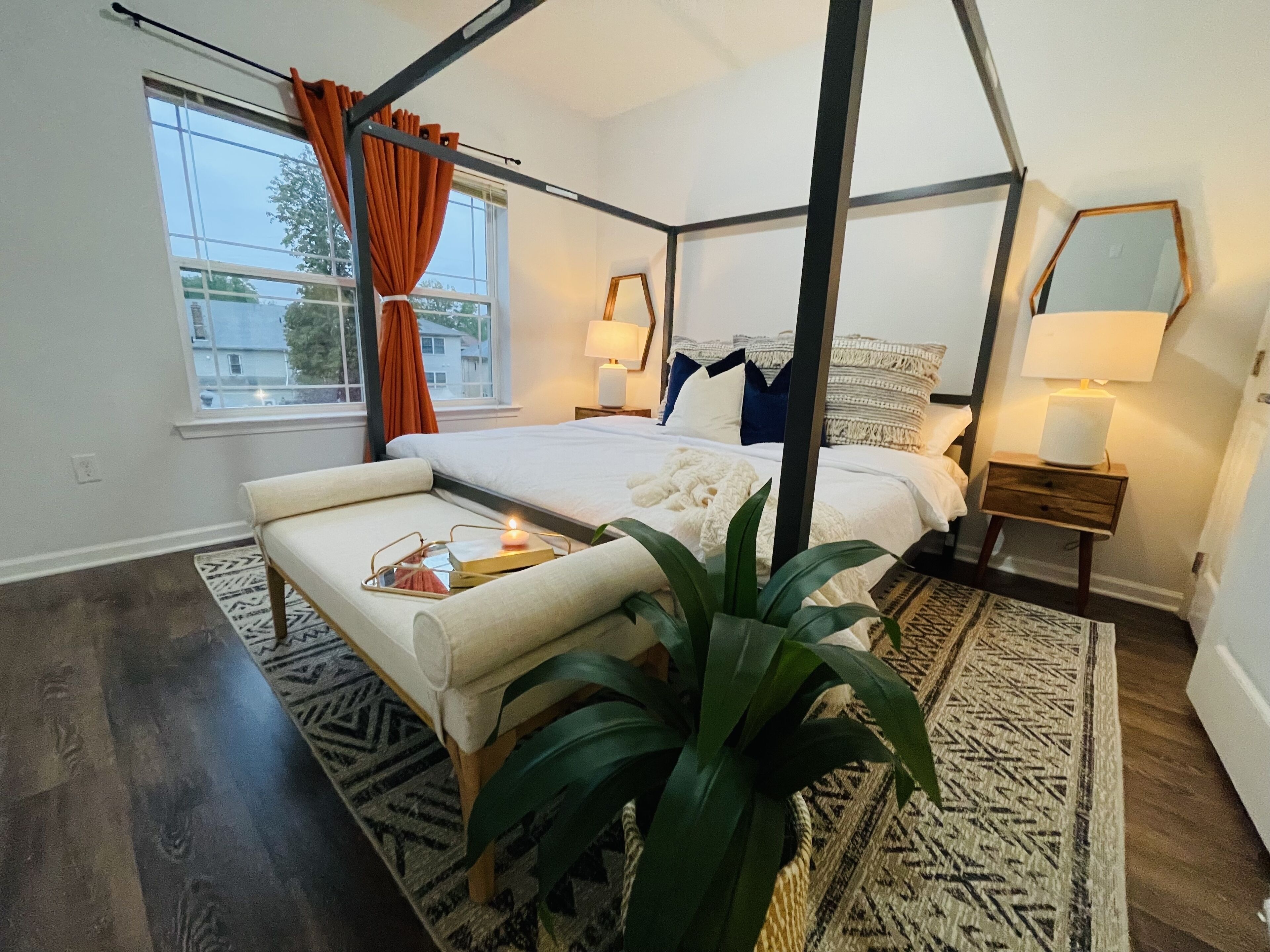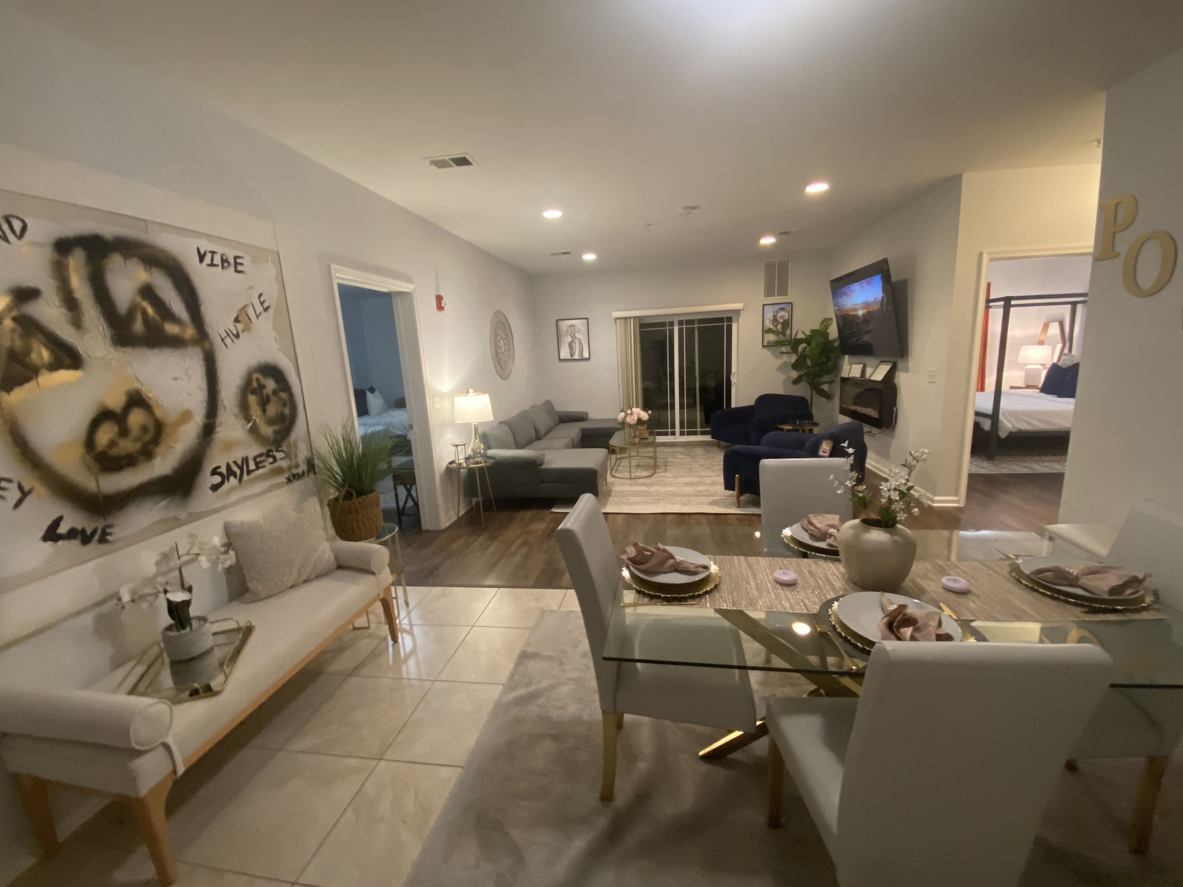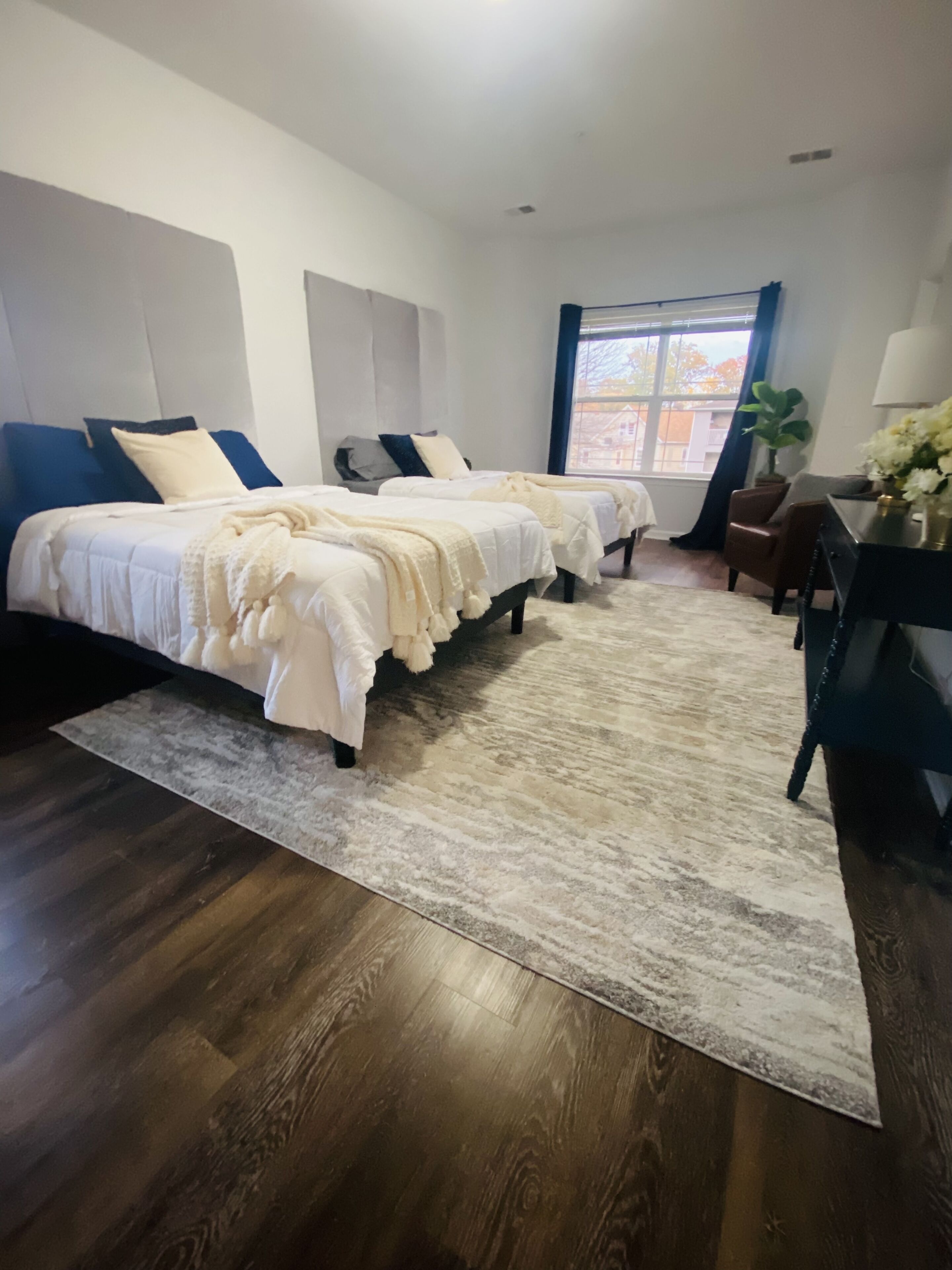 Posh Lux Condo Sleeps 6 Enjoy our spacious upscale condo one block away from the Elizabeth Train station.Centrally Located:Amenities: Balcony Garaged Parking Washer/Dryerhandicapped accesisble3 min from garden state parkway 20-30 min drive to NYC 8 min to Newark Airport 10 min to Jersey Gardens Mall2 min From Barcode Night Club20 min to American Dream Mall70" Smart tv’.+Balcony Free gated underground Parking High speed WIFIAll Kitchen & Bath Essentials (extra bed provide upon request only ) PETS UNDER 20 POUNDS ARE ALLOWED FOR A FEE
