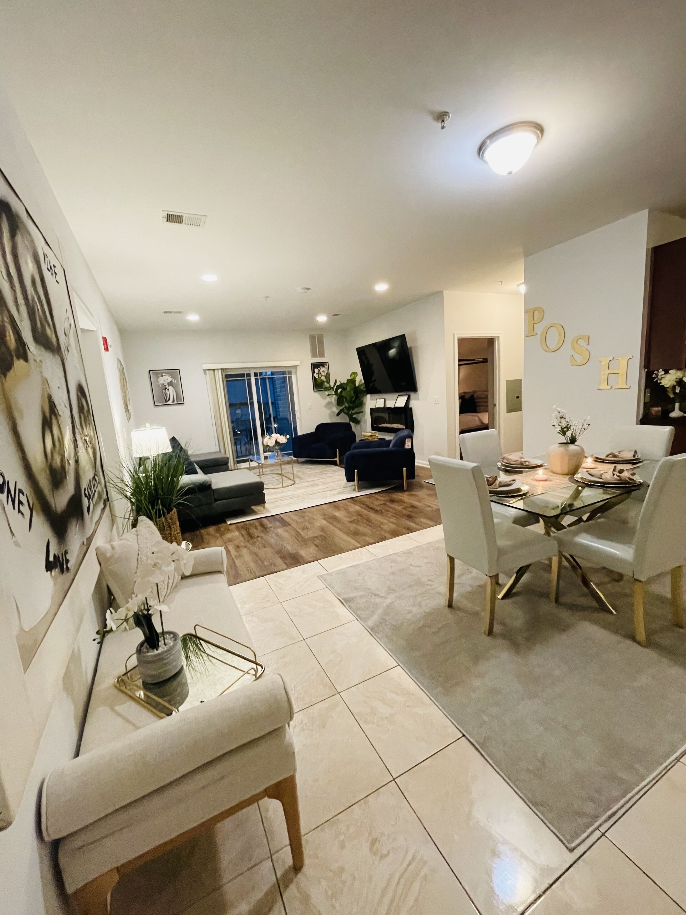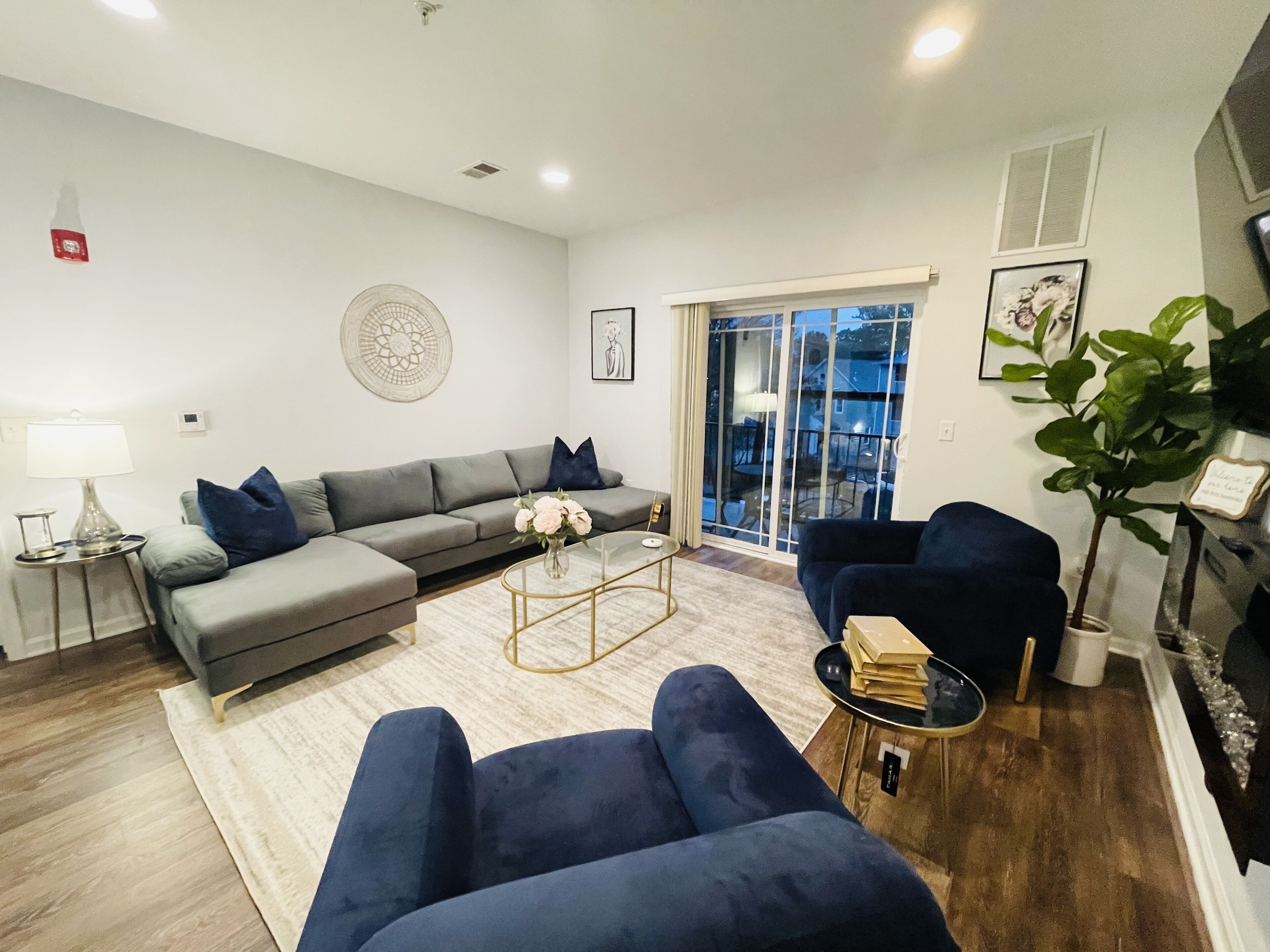 Posh Lux Condo Sleeps 6 Enjoy our spacious upscale condo one block away from the Elizabeth Train station.Centrally Located:Amenities: Balcony Garaged Parking Washer/Dryerhandicapped accesisble3 min from garden state parkway 20-30 min drive to NYC 8 min to Newark Airport 10 min to Jersey Gardens Mall2 min From Barcode Night Club20 min to American Dream Mall70" Smart tv’.+Balcony Free gated undergr...