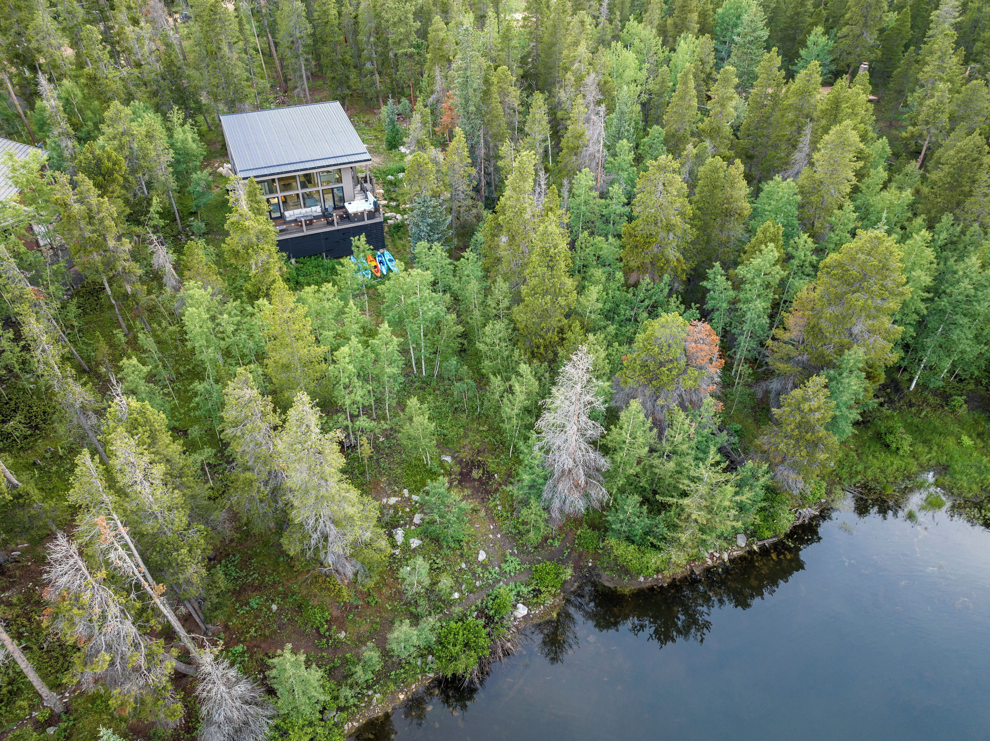 Lakefront Chalet! Views! Kayaking! Fishing! HotTub! @DoryLakeChalet Ask us about military discounts.Get ready to immerse yourself in the beauty of nature like never before! Our stunning mountain chalet offers the ultimate retreat for outdoor enthusiasts, with incredible opportunities to encounter local wildlife, stroll through picturesque community parks, and even cast a line at the serene lake where you'll enjoy exclusive fishing privileges.★★★★★ "This location is AMAZING! If you're thinking about choosing this spot, don't hesitate to BOOK IT! " - ThuyanYou will have access to a luxurious 7-person hot tub, offering the perfect oasis for relaxation and rejuvenation after a day of exploring the great outdoors. Soak in the bubbling waters and take in the breathtaking views surrounding you - it's the ultimate way to unwind and let all your worries fade away.★★★★★ "Awesome Place!!I did not want to leave.We had a great time paddling around the lake in the kayaks"-JoelWhether you're an avid nature lover or simply seeking a peaceful escape from the hustle and bustle of everyday life, our vacation home has something for everyone. So why wait? Book your stay today and experience the beauty of nature at your doorstep!The house is ideally located with easy highway access:- 25 miles to the Red Rocks Amphitheatre- 10 minutes to Golden Gate Canyon State Park- 10 minutes from downtown Black Hawk/Central City- 15 miles to Eldora ski resort- 15 minutes to Nederland- 30 miles to Boulder- 20 miles to Idaho Springs- 60 minutes drive to DenverJust 5mins drive to the Gilpin Community Center that has a heated pool, full gym, basketball courts, etc. All available to the public (see flyer in the pictures) and great fun for kids. ★★★★★ "Nothing short of 5 stars. This place was absolutely beautiful and clean in every regard. You won’t regret your stay here and you definitely won’t want to leave." - JoshuaThe house is set on a 1.2 acre lot for plenty of privacy while still not completely cut off civilization.★★ Video ★★Search for our highlight video on YT- "DoryLakeChalet walk through - Highlights"★★ Past Guests Experiences ★★ Find us on IG as @DoryLakeChalet to see past guests highlights★★★★★ "Eric’s place was amazing. Booked it for my mom’s birthday and she loved it. Really beautiful and peaceful. " - Sara★ Cameras ★The house has outdoor Ring cameras that will be deactivated upon your arrival. Please note that there are no cameras inside the house.1. Driveway2. Front Door3. Back Patio (HotTub location)4. Side of the house by the stairs leading to the patioWe also have an VRBO approved noise monitoring device inside the house.★★★★★ "This place is amazing with spectacular views! The interior is gorgeous and inviting. " - NIck★KITCHEN★The spacious kitchen has everything you need to prepare the perfect meal, including a gas stove, microwave, toaster and a coffee station. Cabinets stocked with a complete set of cookware, dinnerware and drinkware.★BEDS & BATHS★Designed for groups of 6, our chalet features 2 bedrooms, 2 full bathrooms and queen pullout sofa. Fully stocked with linens, towels, shampoo/conditioner and body soap.★Outdoor★ Just outside the kitchen you will have access to a large deck directly overlooking the lake. It comes with a natural gas BBQ, a gas fire pit and stylish outdoor lounging furniture.Just a few steps down, you will find yourself on the shore of Dory Lake surrounded by walking trails to enjoy the breathtaking and tranquil scenery. Get active and go kayaking or have a seat by the fire and enjoy a glass of your favorite beverage while surrounded by nature.★★★★★ "This place is a dream!! If you are even thinking about renting this place, just do yourself a favor and do it!" - Brittany★Community Recreation area★Less than a five minute walk from the property, you will find a community recreation area with a basketball court and baseball field, kids play structure and a community covered BBQ area.★RULES★Operating Permit #STR-22-153