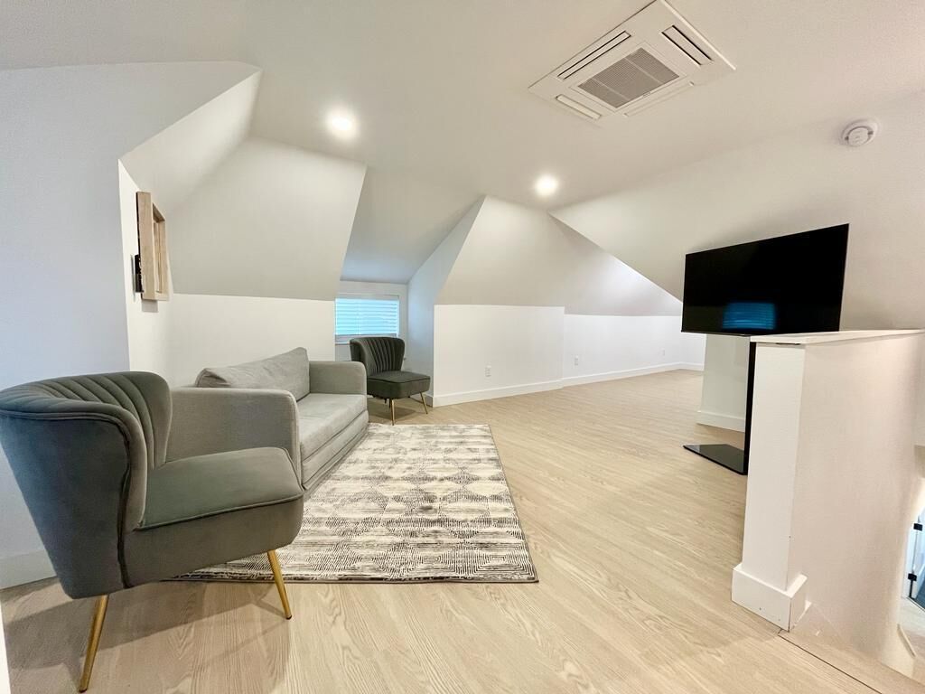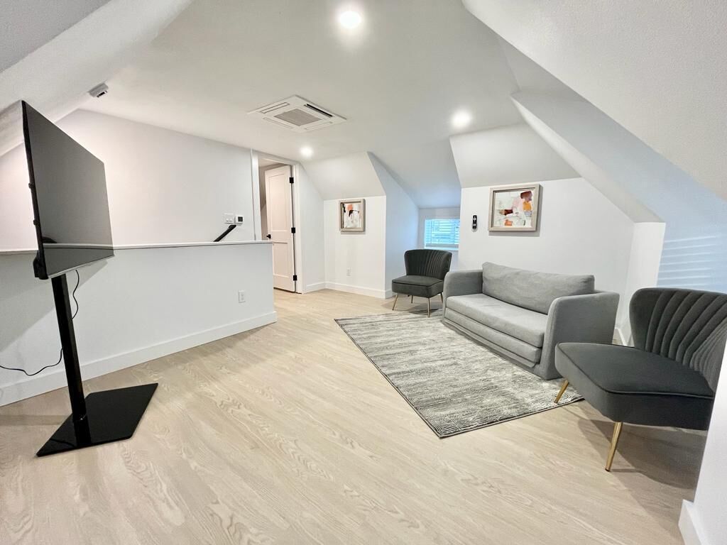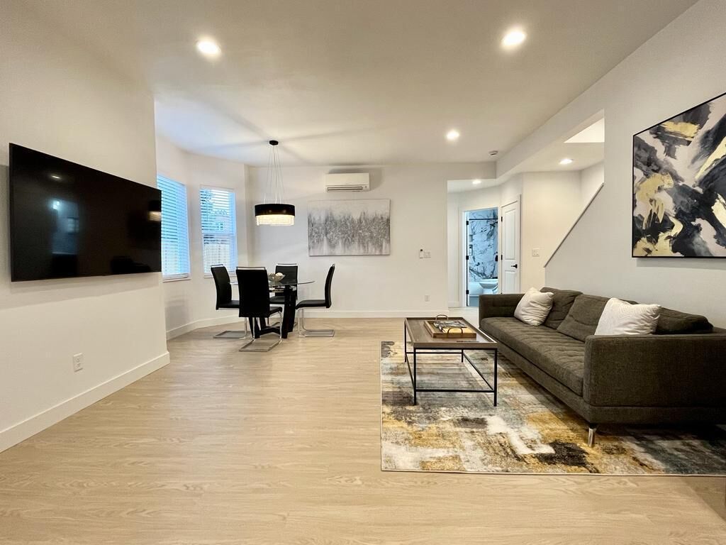 Insta-worthy! 2 Bedroom Fancy Townhouse Duplex Discover contemporary comfort in this urban retreat with AC and fast WIFI. You will not want to leave! We invite you into a stylish haven with modern and luxurious finishes and thoughtful design. The open-concept, high ceiling, living space and kitchen greets you at the front door. 1 Bedroom (King Bed) on ground level and the 2nd Bedroom (Full bed) upstairs. There is 2nd living room upstairs and a private office to work! Great location! Mins away from the mall, stores, restaurants, and highways!