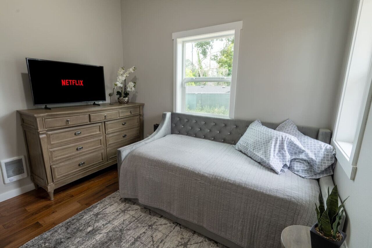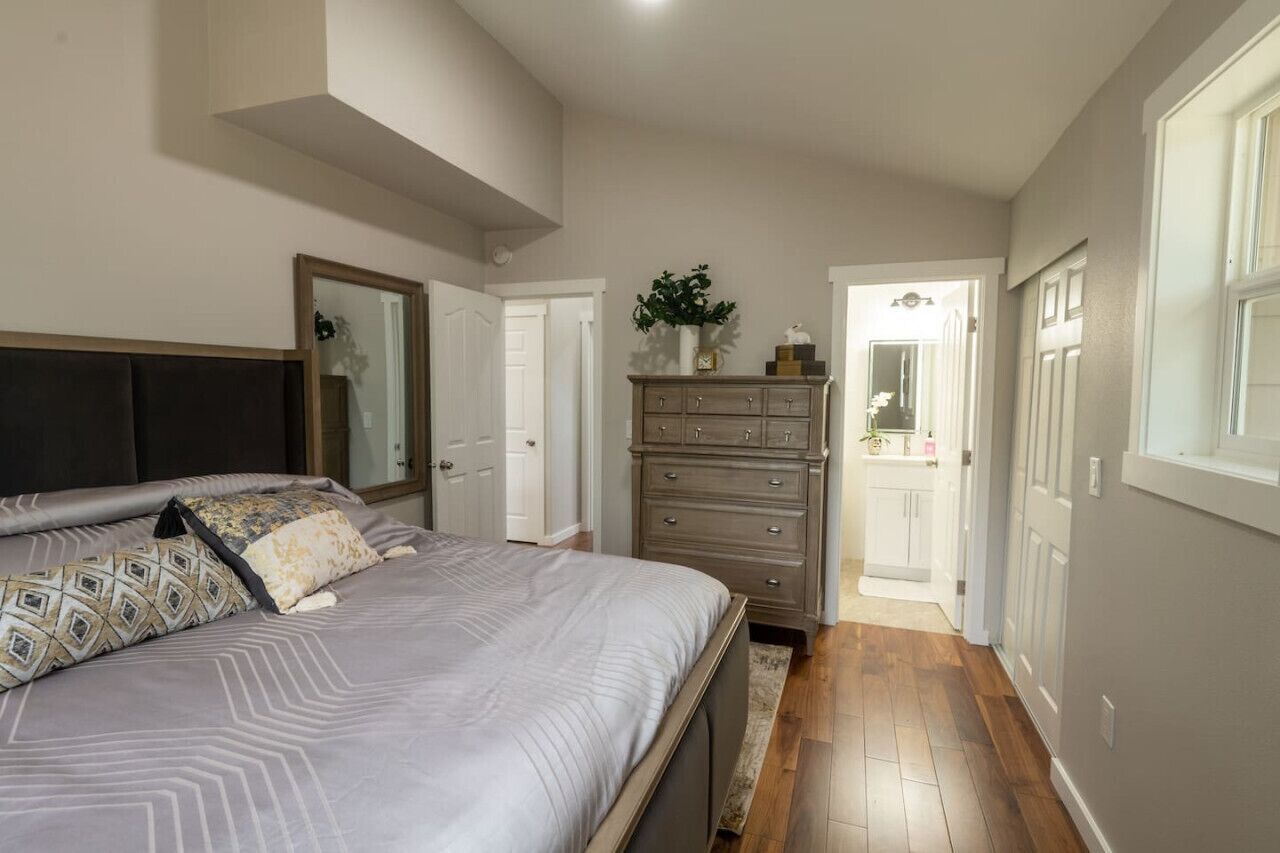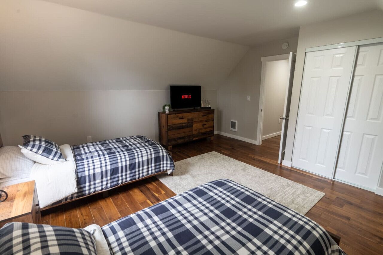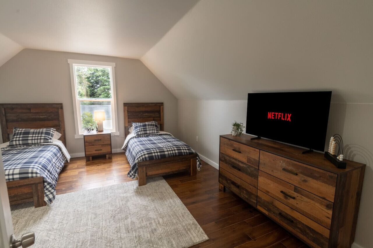 5-bedroom House in Parkland Welcome to this lovely house in Tacoma. With 5 bedrooms including 2 twin beds, 1 king bed, and 2 queen beds, this awesome property is perfect for larger groups. Enjoy the convenience of WiFi, iron, hair dryer, and a washing machine. The 3 bathrooms come equipped with a shower and hair dryer. It's easy to see why you'll be able to unwind at our place.