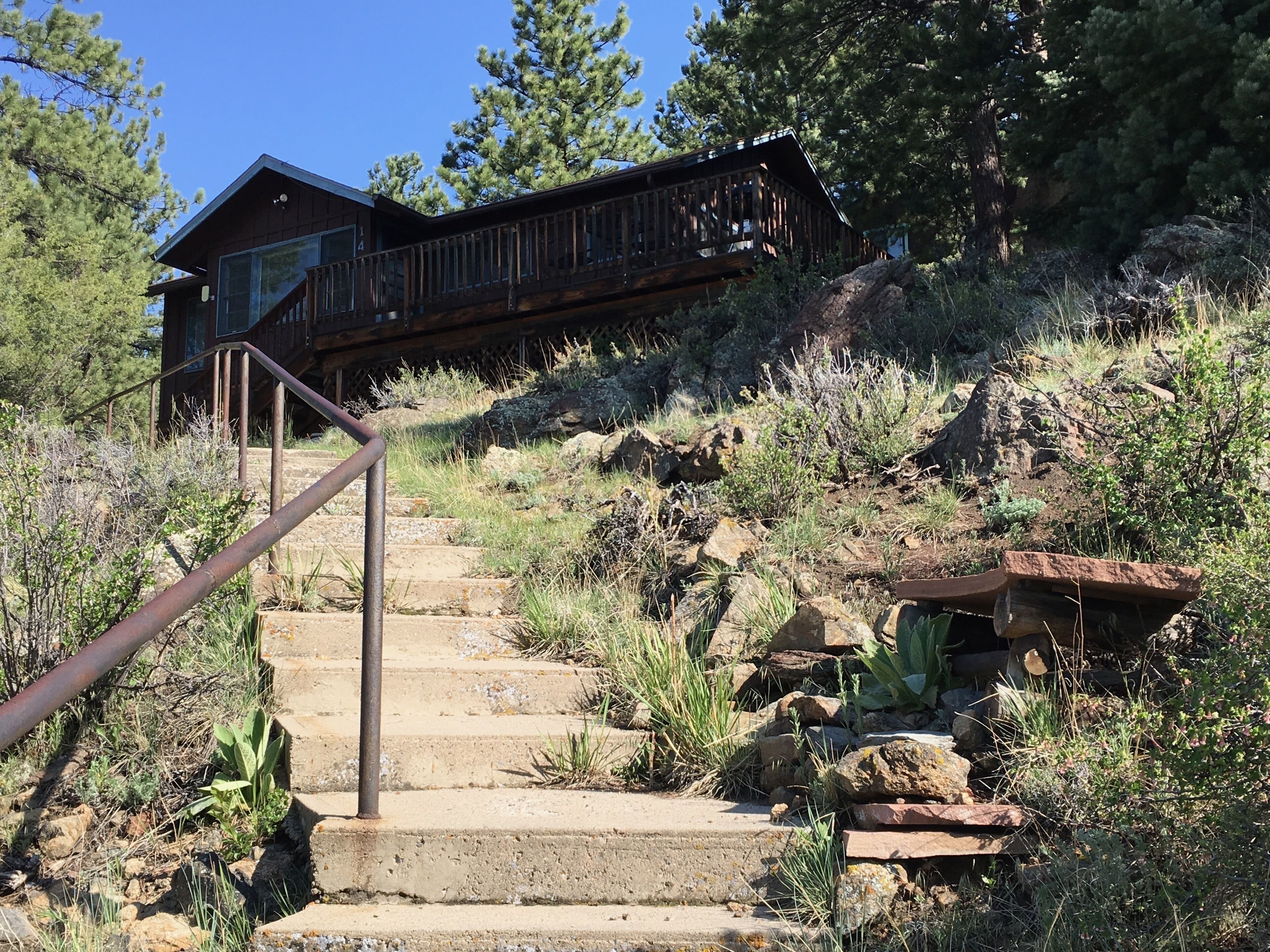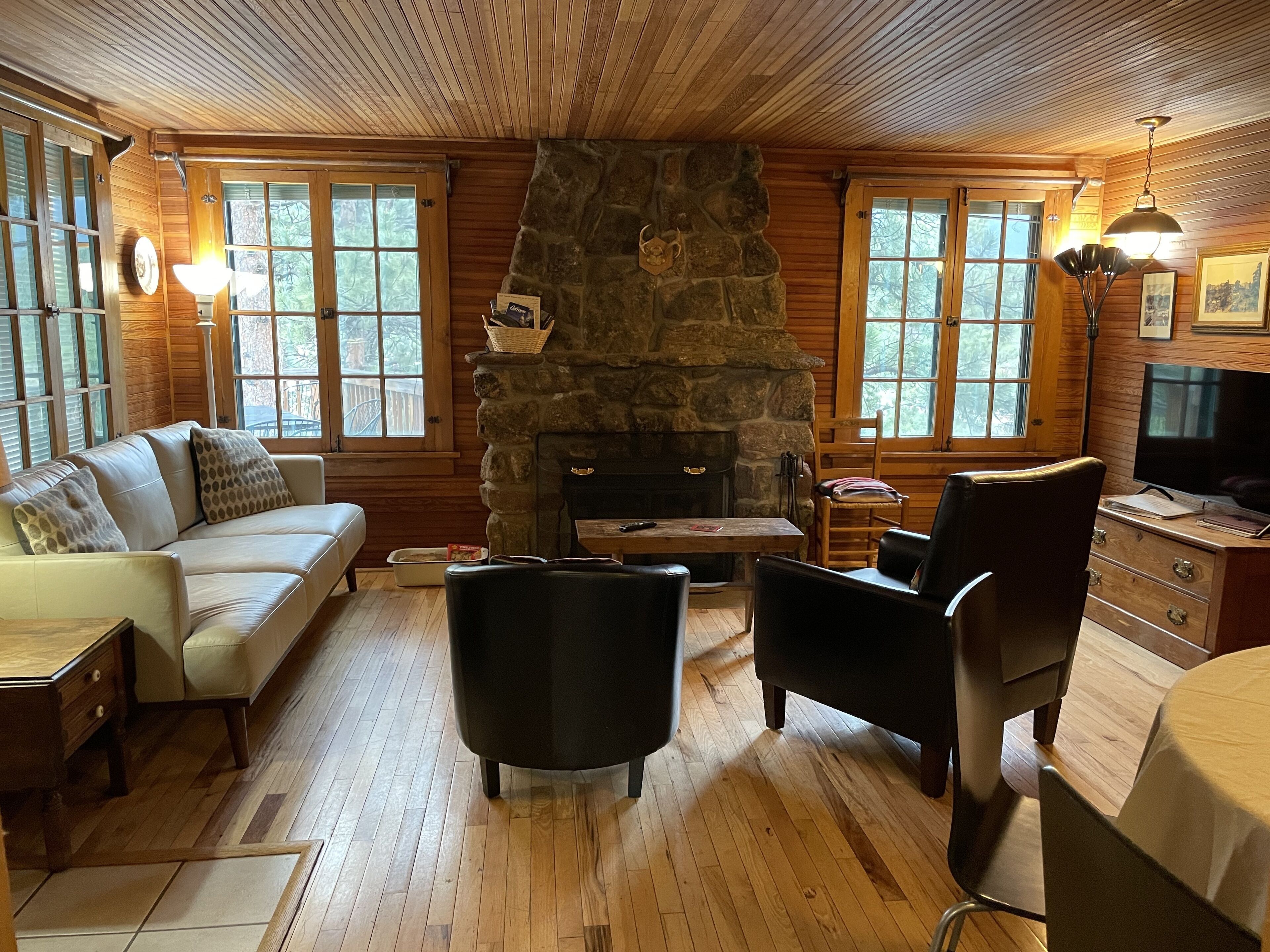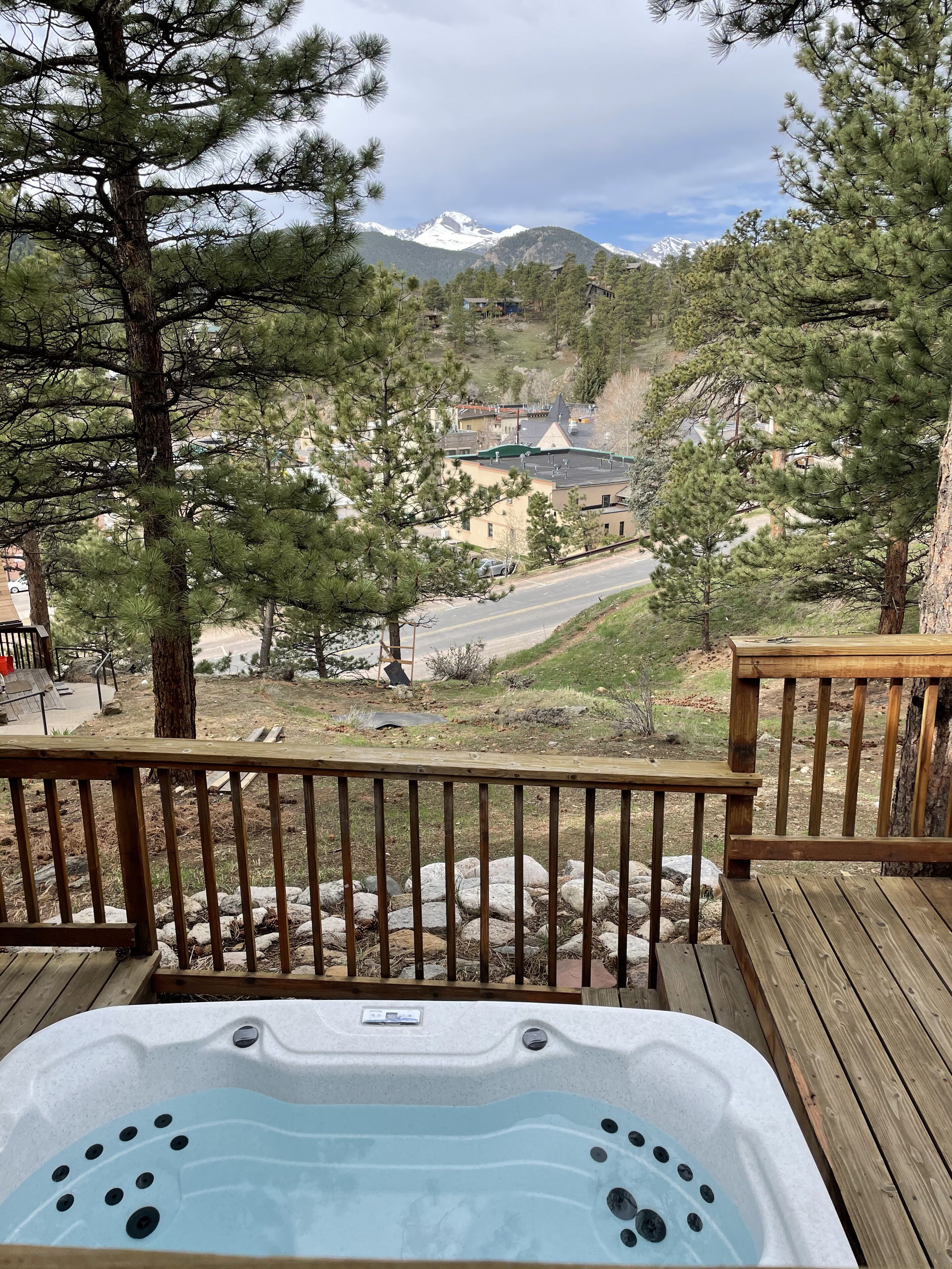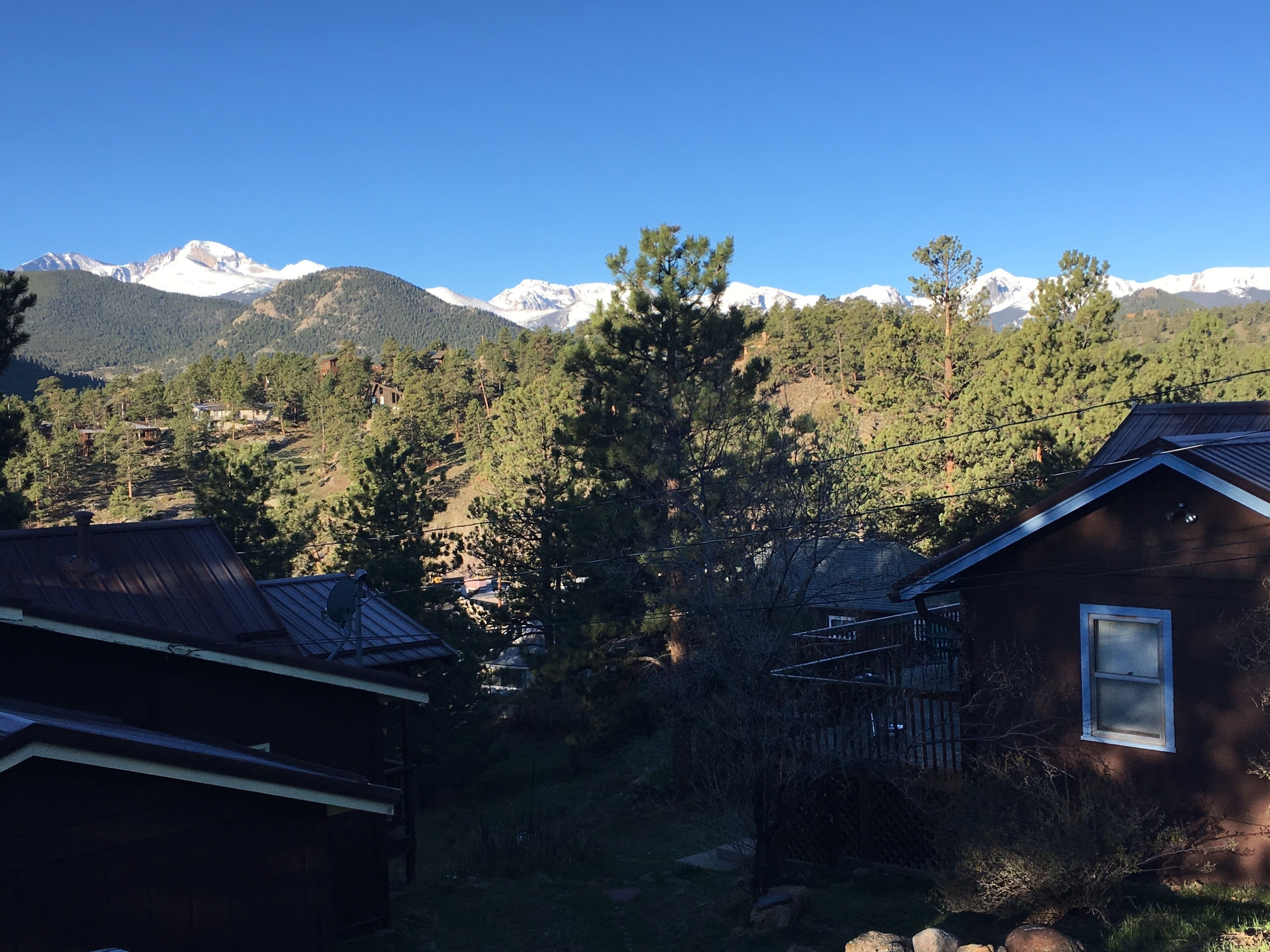 Longs Peak View, walk to downtown, historic charm Estes Park Registration # 3251 Please read our cancellation policy before booking. Purchase insurance for any unforeseen issues. NO PETS. Convenience is what you get with Mabel's Cabin at L.R. Taylor's Estes Park Cabins. Mabel's is located on a hill just above the downtown of Estes Park with private steps leading to the center of town. But get away from it all on your private, covered deck and enjoy the view of Longs Peak and the mountain range. So park your car and walk to restaurants and shopping. Mabel's is also just minutes away from the famous Rocky Mountain National Park. 2.5 miles to Beaver Meadows Visitor Center. 4 miles to Fall Creek Entrance. (so enjoy all that it has to offer) Originally built in the early 1900's by Mabel Van Hook, one of the four children of L.R. Taylor, to be her summer home and vacation spot. The cabin has been renovated to include all the modern conveniences, but still retains some of it's original charm.Mabel's has a beautiful space outdoors to roam with trees, rock out-croppings, deer, elk and chipmunks. The elk have their own path right beside the cabin and enjoy resting under the trees. Please look at photos. Parking is tight. NO RV's, trailers or extra long vehicles. There is a steep hill leading down to the parking. In the winter, we do have snow removal. However, if you get stuck removal will be at your own expense. Estes Park is the perfect vacation spot and there is something to do for everyone. You can rent this cabin year-round and enjoy the seasons of Colorado. If this does not satisfy you we have 3 other cabins at LR Taylor Cabins listed on VRBO. Egbert's Cabin VRBO #1471860Nell's Cabin VRBO #788667The Nutshell VRBO # 1717433Check them out!!Keywords: Vacation rental home, cottage, cabin, free wifi, internet.