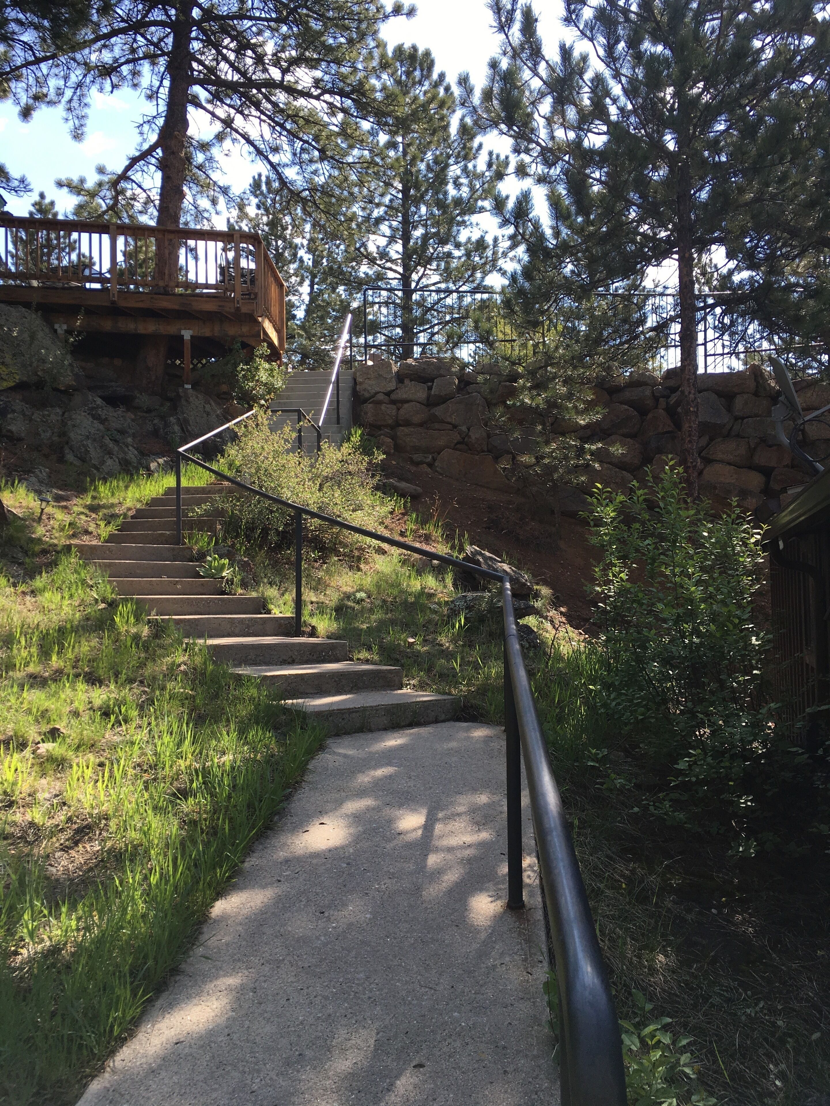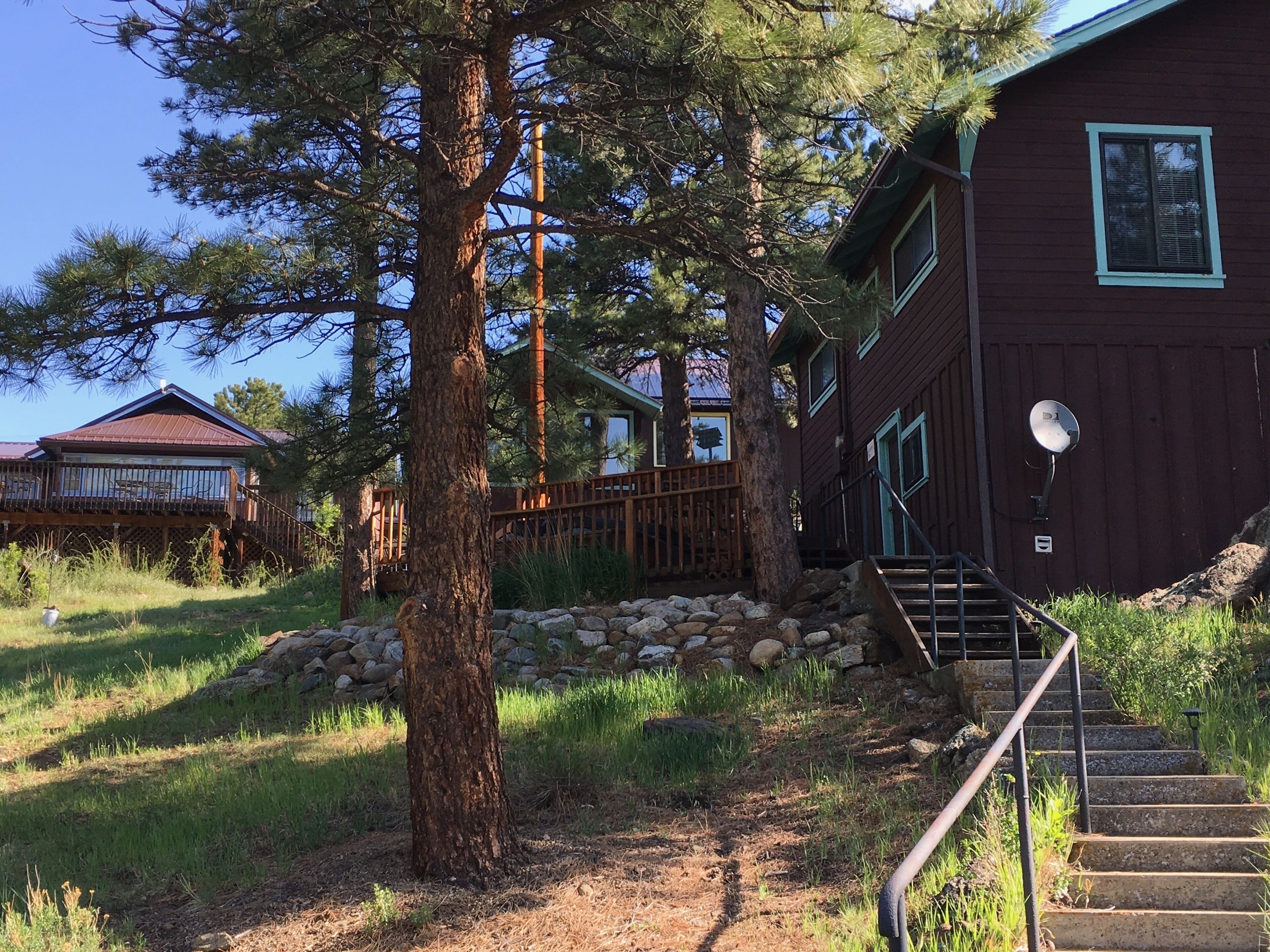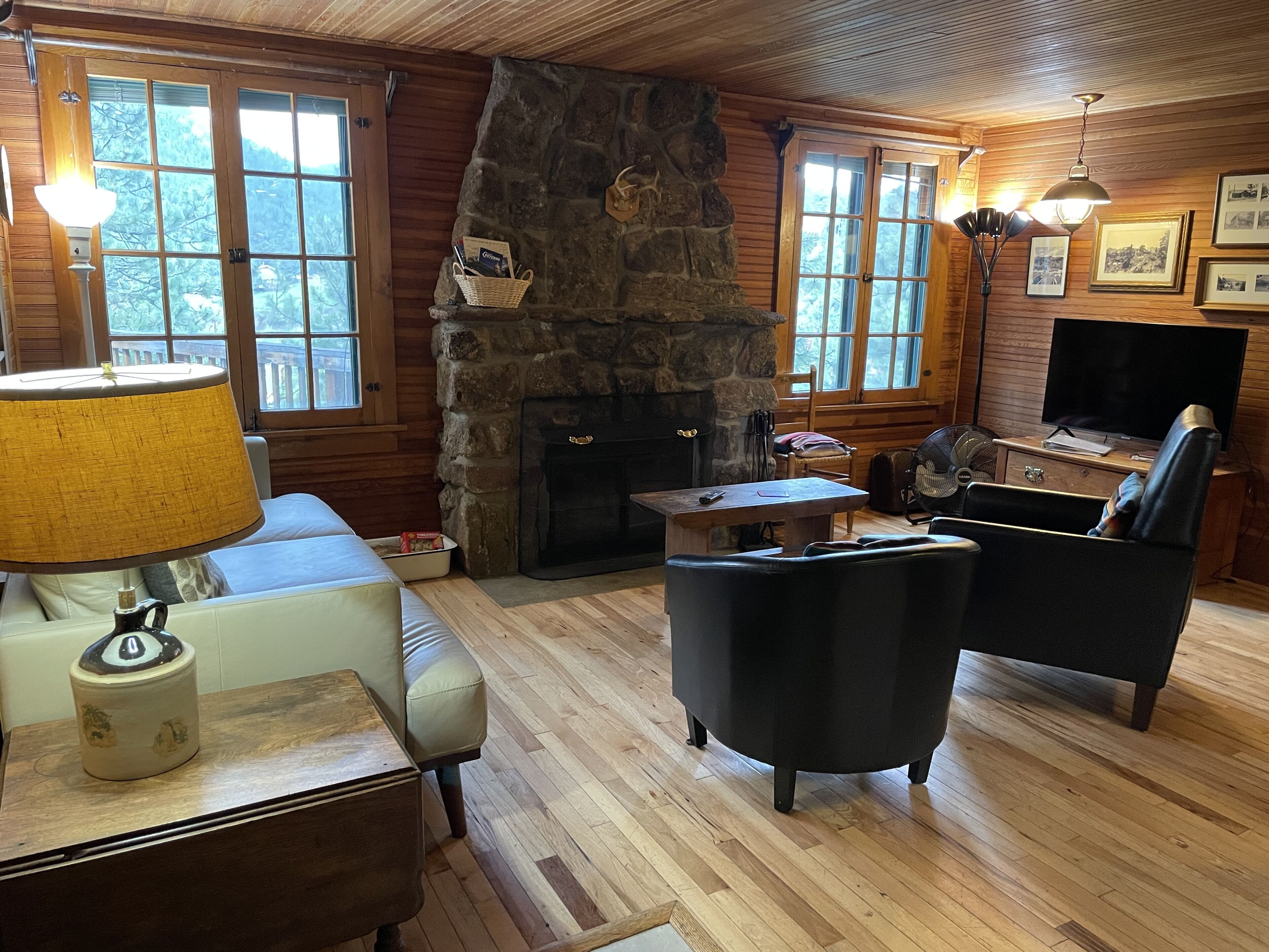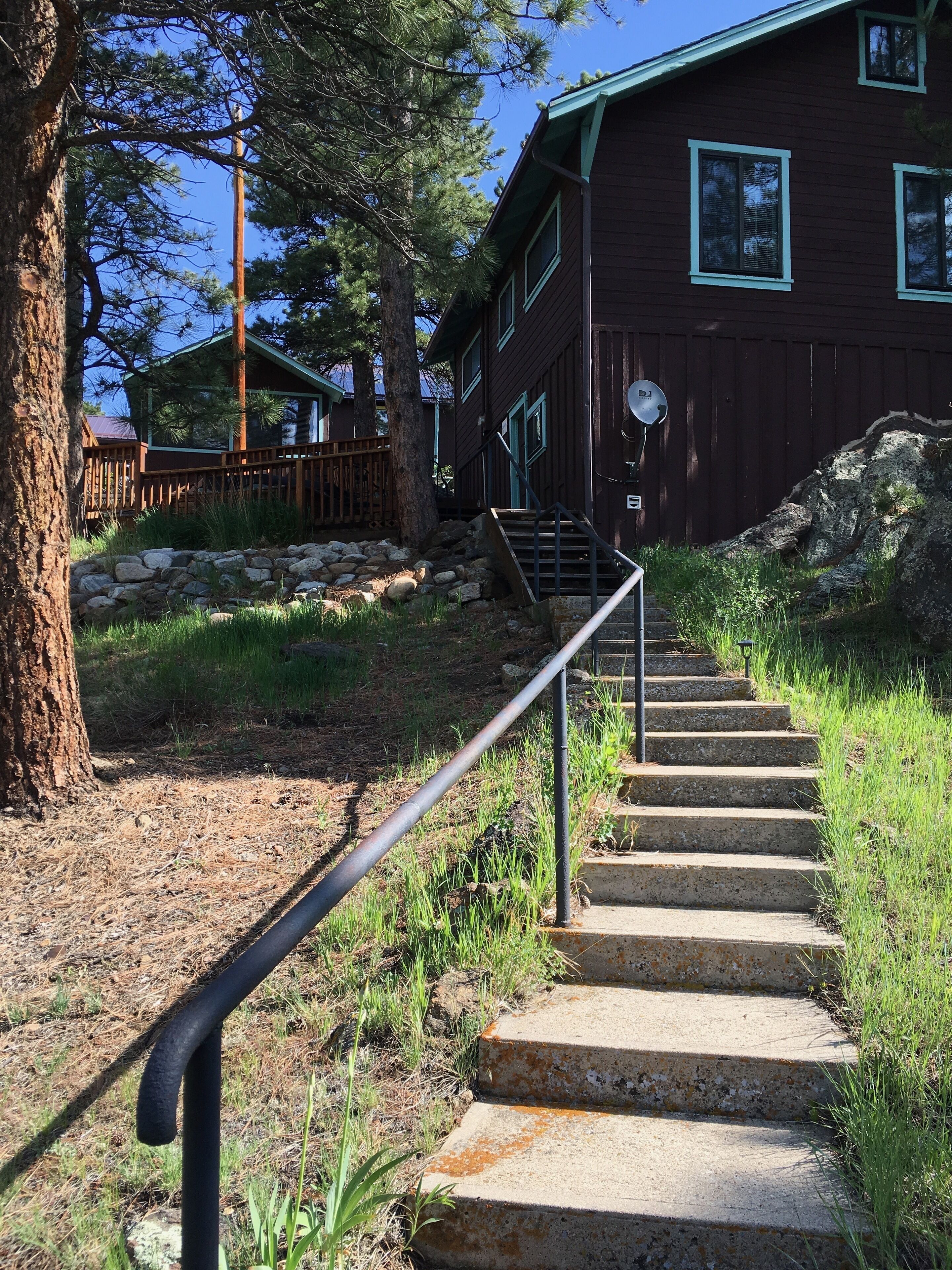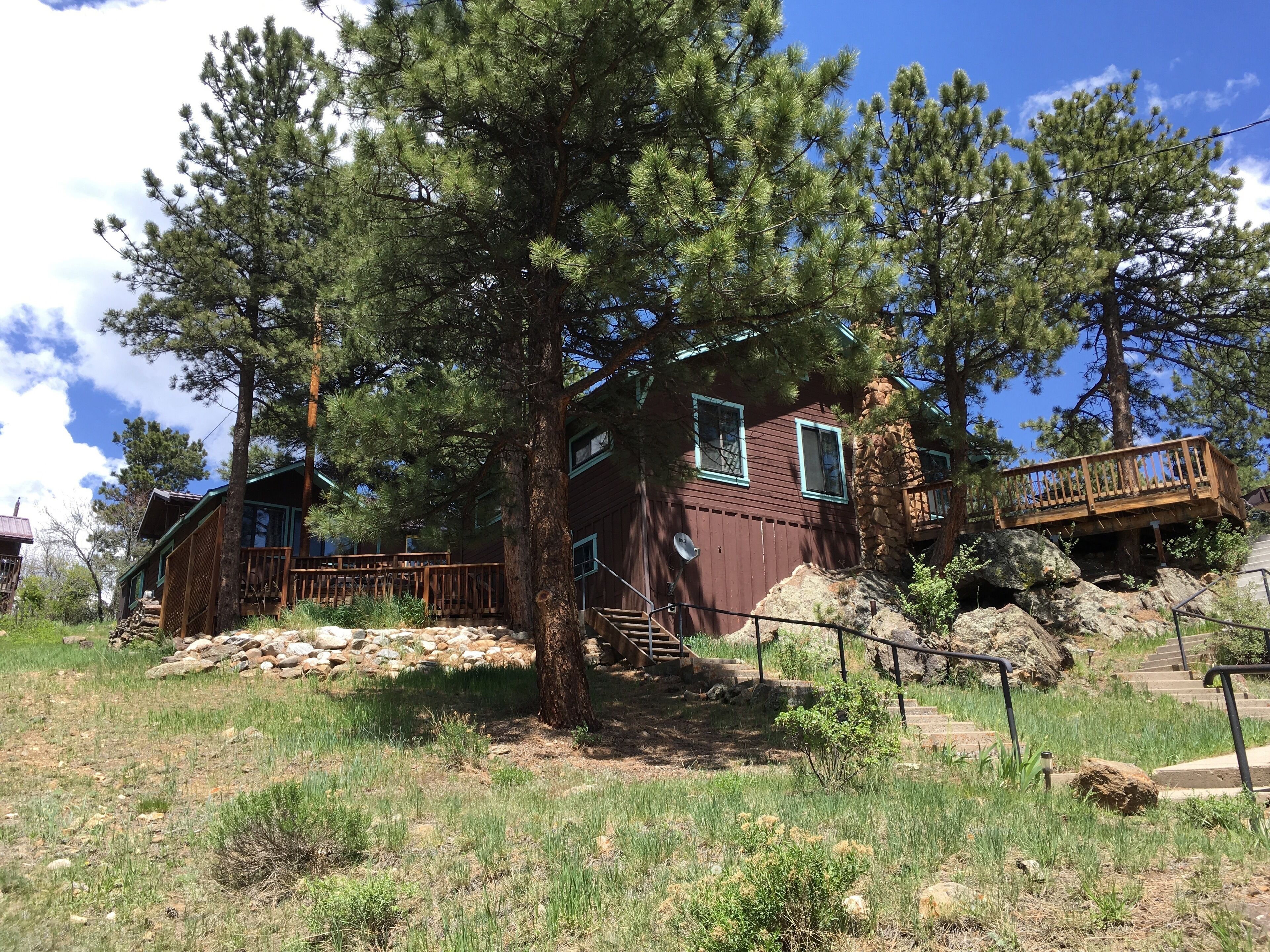 Longs Peak View, walk to downtown, historic charm Estes Park Registration # 3251 Please read our cancellation policy before booking. Purchase insurance for any unforeseen issues. NO PETS. Convenience is what you get with Mabel's Cabin at L.R. Taylor's Estes Park Cabins. Mabel's is located on a hill just above the downtown of Estes Park with private steps leading to the center of town. But get away from it all on your private, covered deck and enjoy the view of Longs Peak and the mountain range. So park your car and walk to restaurants and shopping. Mabel's is also just minutes away from the famous Rocky Mountain National Park. 2.5 miles to Beaver Meadows Visitor Center. 4 miles to Fall Creek Entrance. (so enjoy all that it has to offer) Originally built in the early 1900's by Mabel Van Hook, one of the four children of L.R. Taylor, to be her summer home and vacation spot. The cabin has been renovated to include all the modern conveniences, but still retains some of it's original charm.Mabel's has a beautiful space outdoors to roam with trees, rock out-croppings, deer, elk and chipmunks. The elk have their own path right beside the cabin and enjoy resting under the trees. Please look at photos. Parking is tight. NO RV's, trailers or extra long vehicles. There is a steep hill leading down to the parking. In the winter, we do have snow removal. However, if you get stuck removal will be at your own expense. Estes Park is the perfect vacation spot and there is something to do for everyone. You can rent this cabin year-round and enjoy the seasons of Colorado. If this does not satisfy you we have 3 other cabins at LR Taylor Cabins listed on VRBO. Egbert's Cabin VRBO #1471860Nell's Cabin VRBO #788667The Nutshell VRBO # 1717433Check them out!!Keywords: Vacation rental home, cottage, cabin, free wifi, internet.