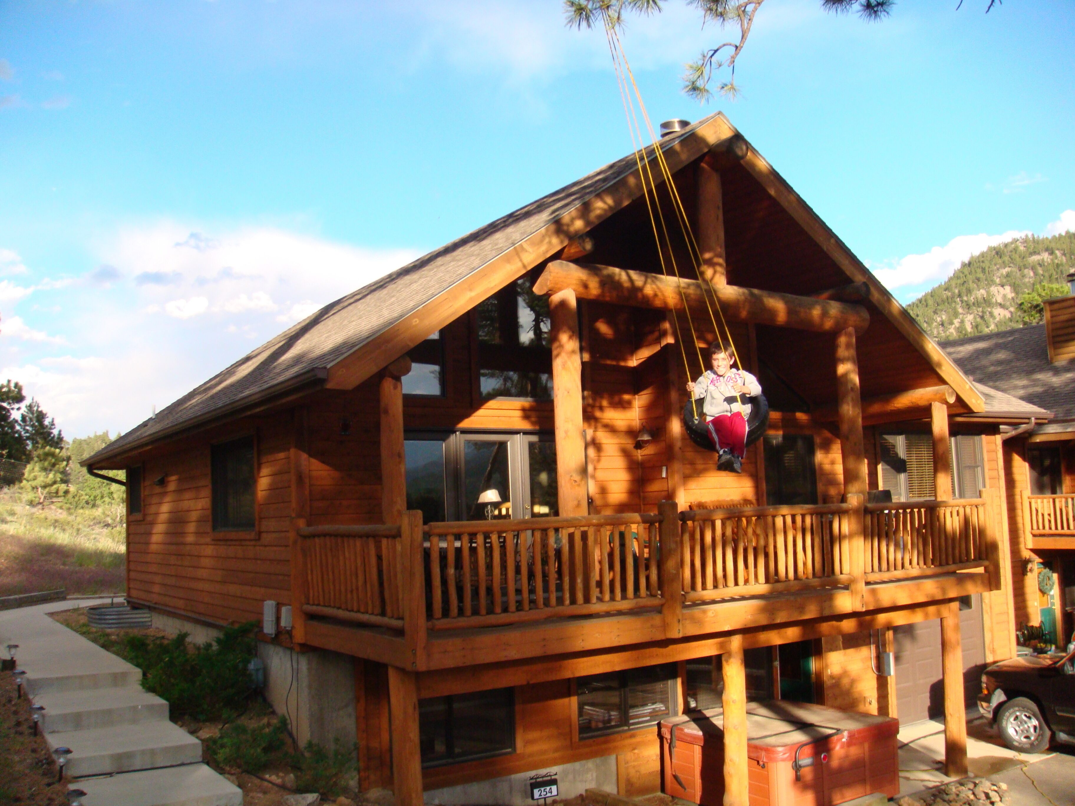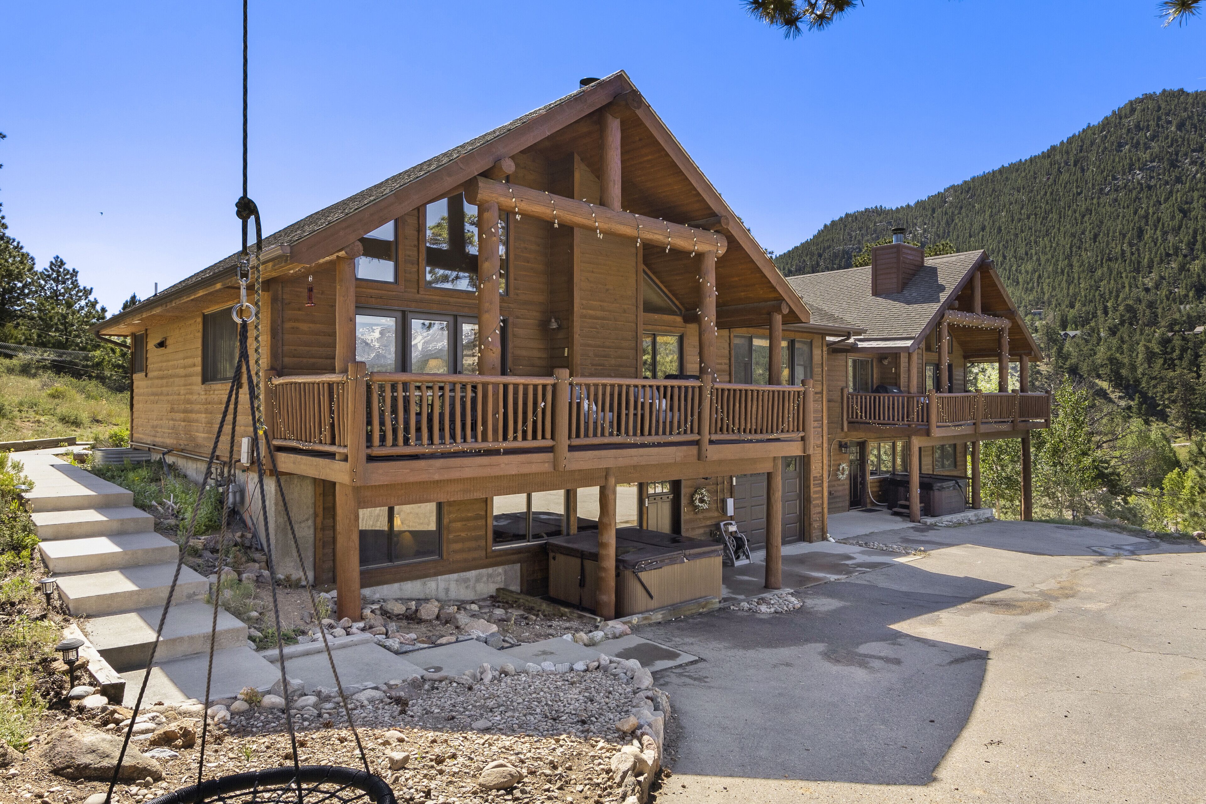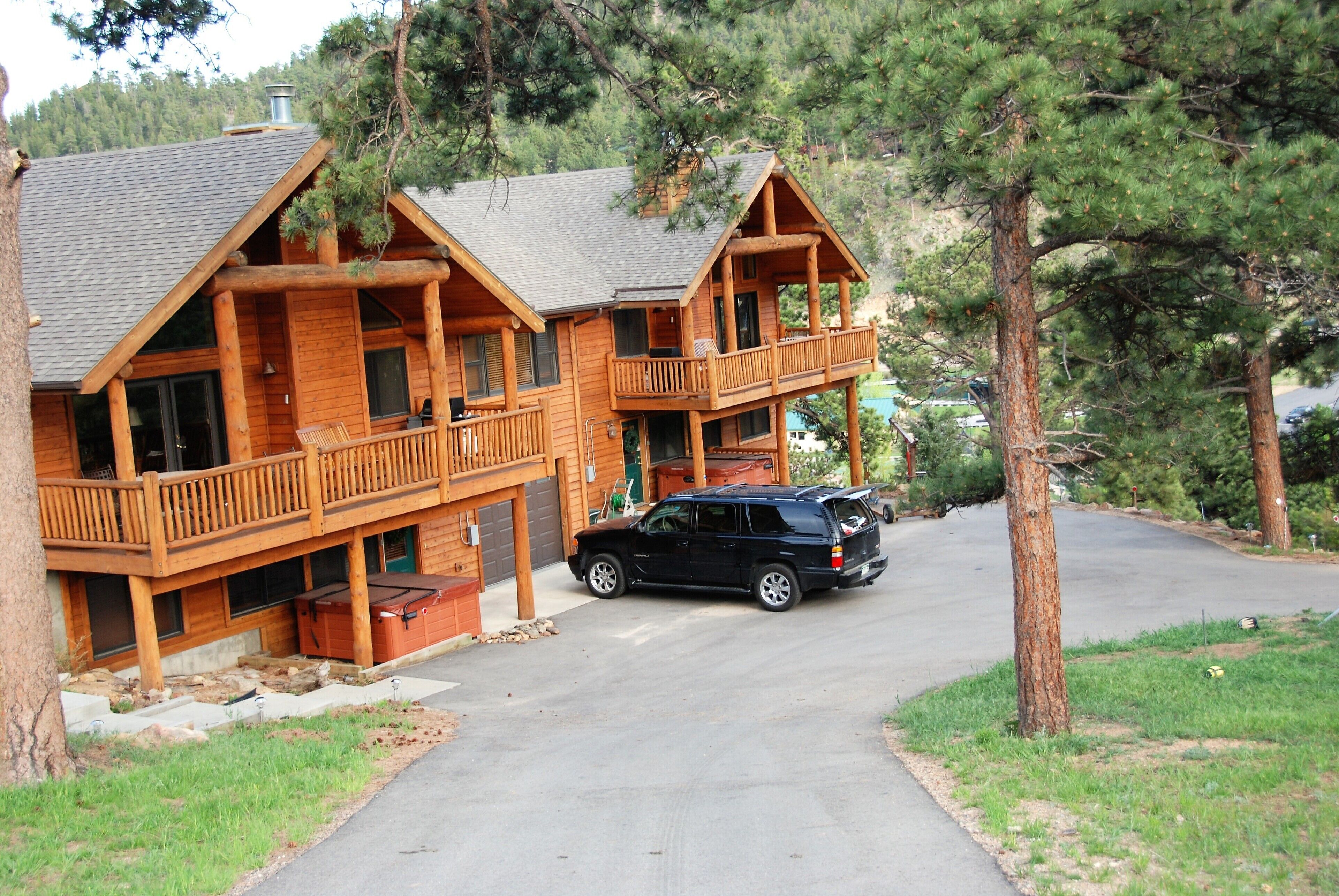 Luxurious Cabin with Mountain & River Views, Hot Tub, 2 blocks to downtown Wonderful cabin with four bedrooms. Completely remodeled by new owners. Beautiful leather furniture and Soft Luxurious bedding. two living rooms and 2.5 baths. New private Hot Tub. #3282Enjoy sitting on your front porch rocker looking over the Big Thompson river and breath taking views of the Rocky Mountains and longs peak. You are within walking distance (two blocks) from downtown shops, go-cart tracts, putt-putt golf, art galleries, Estes Park Brewery, wine bar and restaurants. Mom can check out all the shops in the village while Dad takes the SUV fishing, golfing, hiking or wildlife viewing in Rocky Mountain National Park, and still make it back for a steak on the grill.Come and enjoy this fabulous place to get away from the every day grind. What a perfect place to relax and have fun. Televisions and high speed internet are included, if you must.Please check out our other cabin right next door. You could rent both of them. VRBO# 813711Keywords: Home, cabin, cottage, estes park, hot tub, mountains, views, 4 bedroom, four bedrooms, Rock Mountain National Park, lodging, vacation, four bedroom, Stanley, festival, skiing, elk, moose, deer, RMNP