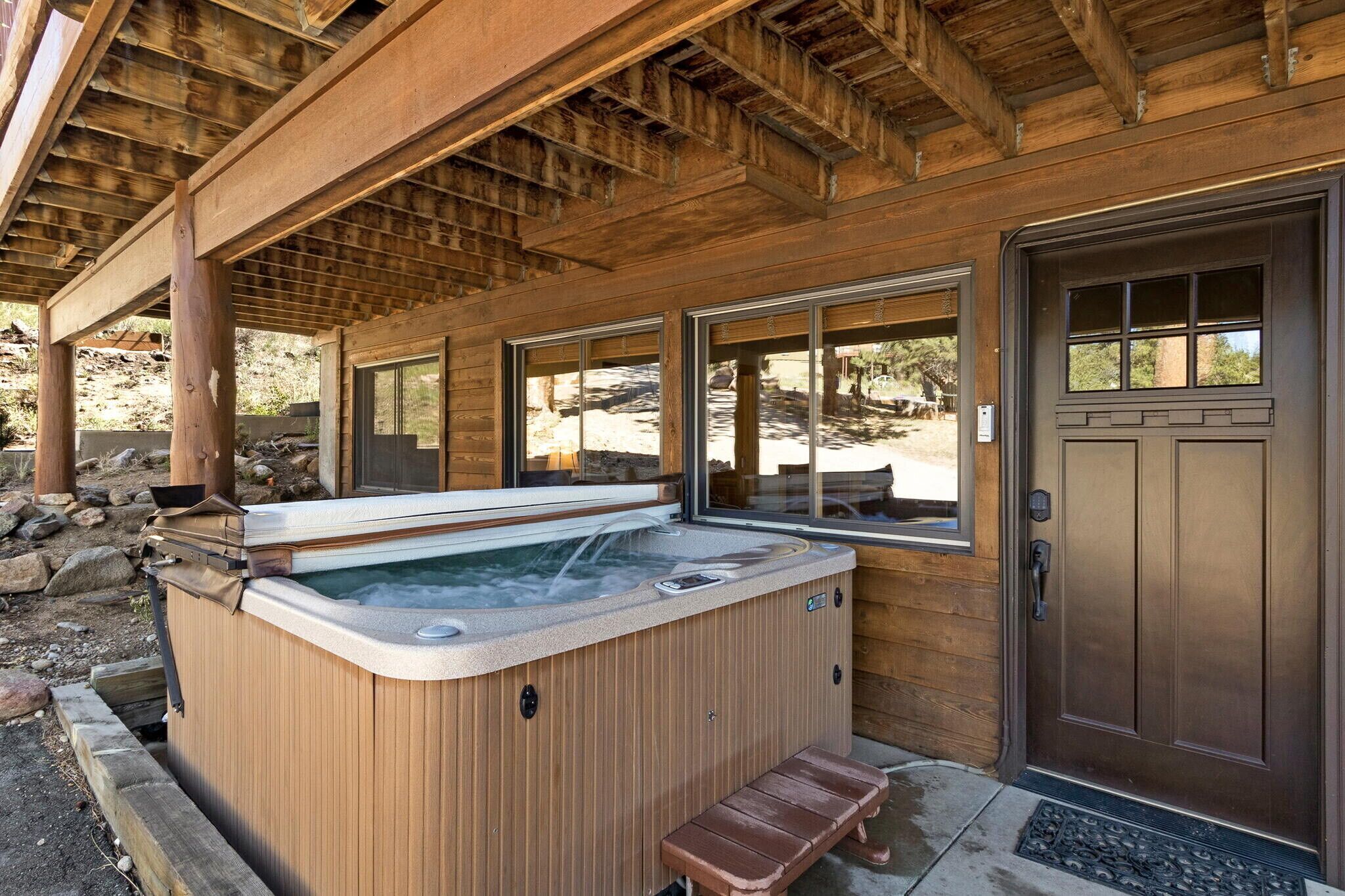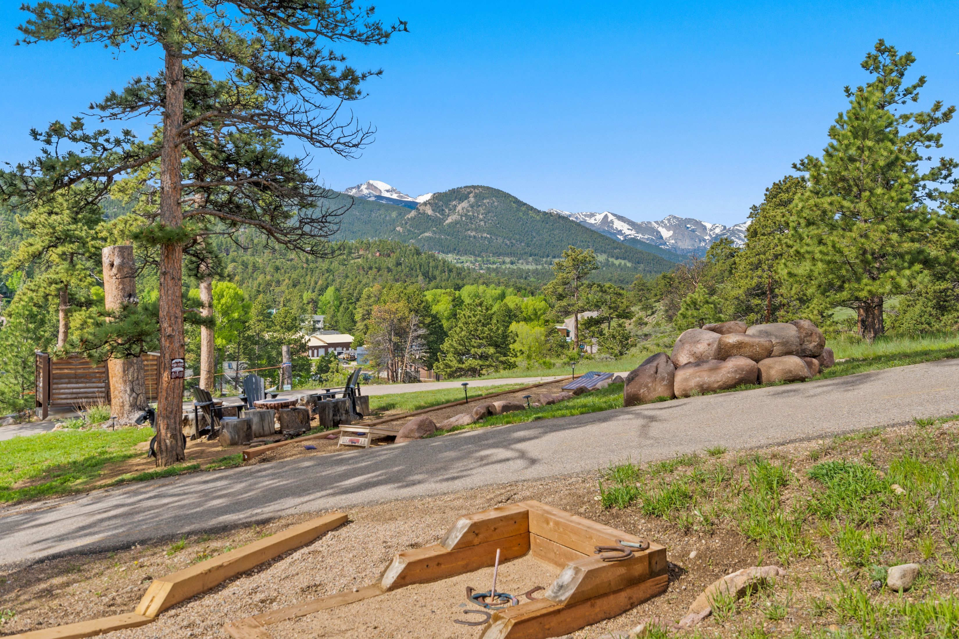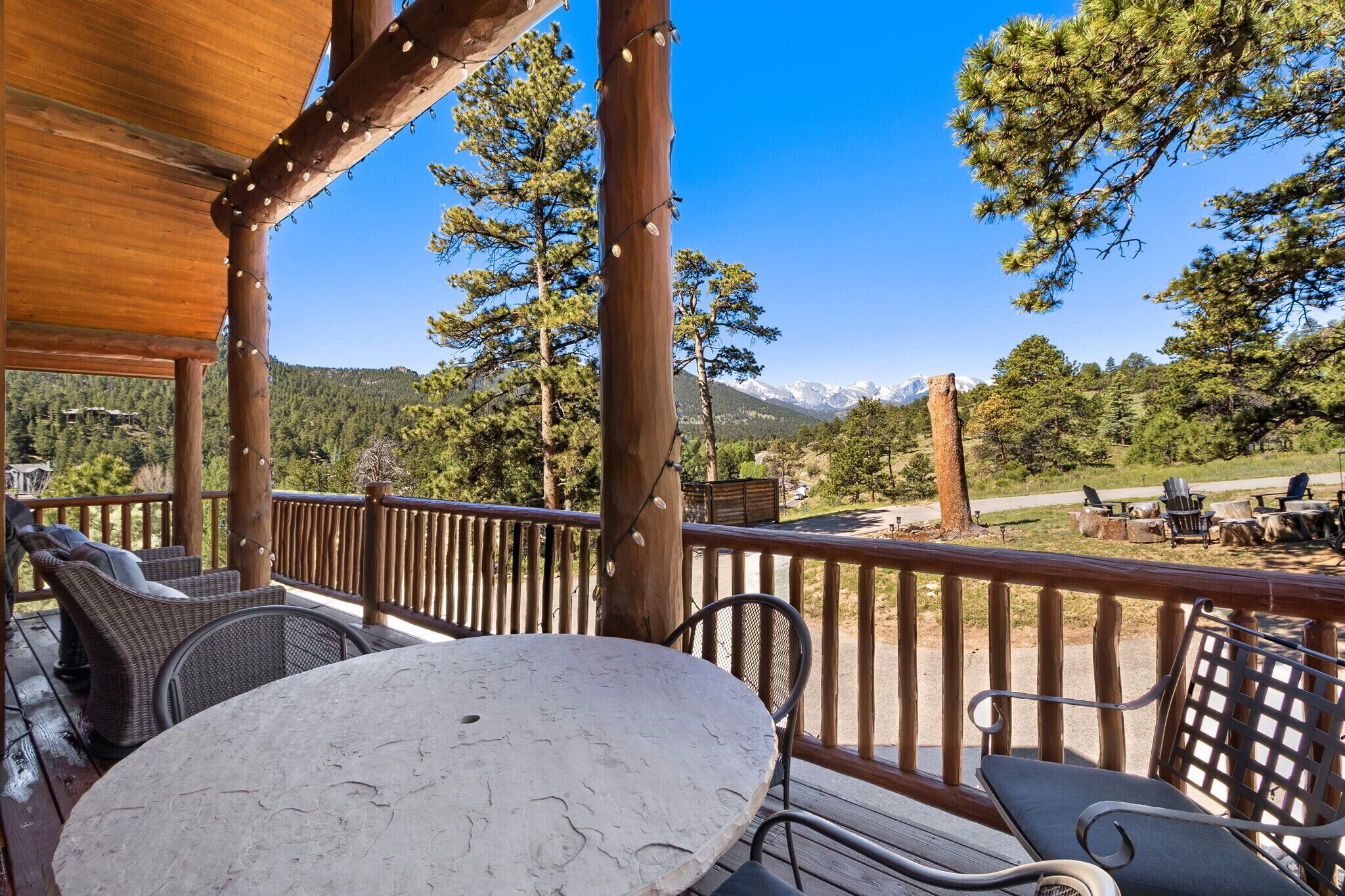 Luxurious Cabin with Mountain & River Views, Hot Tub, 2 blocks to downtown Wonderful cabin with four bedrooms. Completely remodeled by new owners. Beautiful leather furniture and Soft Luxurious bedding. two living rooms and 2.5 baths. New private Hot Tub. #3282Enjoy sitting on your front porch rocker looking over the Big Thompson river and breath taking views of the Rocky Mountains and longs pea...