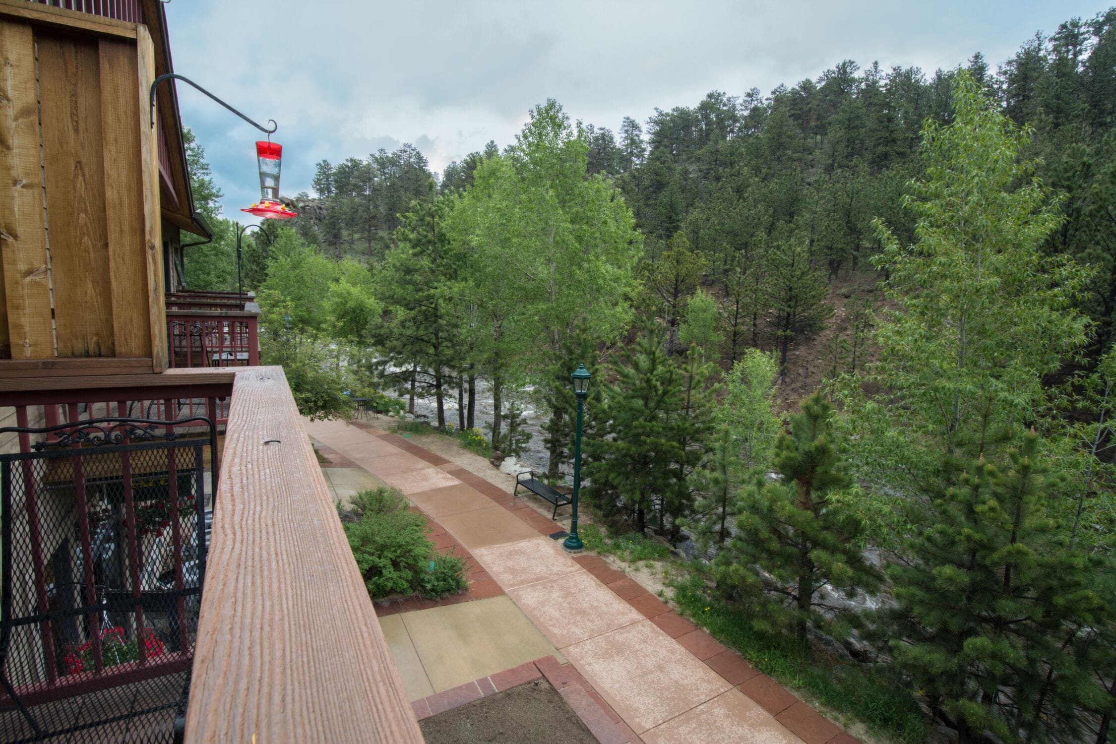 Spacious Luxury Downtown Riverfront Loft Condo. License #6027 Location, location, location! We are excited to welcome you to our little piece of Heaven in downtown Estes Park and to provide you with an exceptional vacation experience. This luxury riverfront loft condo is ideal and very popular for family vacations, reunions, wedding parties, multi-generational families, yet it offers the peace and quiet for a romantic couples get-a-way. Because of it's downtown location, it is within walking distance to restaurants, coffee shops, shopping, family activities, trails, golf and events in Bond Park. Easy seasonal access to shuttle service to Rocky Mountain National Park. Condo features modern furniture and fixtures, stainless steel appliances, granite counters, travertine tile--everything to make your stay relaxing. The Master bedroom is equipped with a queen bed with a private attached 3/4 bath. The 2nd bedroom has two queen beds. There are two sleeper sofas in the livings areas, one being brand new. We will happily provide a Pack 'n Play for your little one upon request. Games and books for evenings or rainy days.The fully stocked kitchen includes coffee, tea, paper goods and all the pots, pans, and dishes you may need. It features granite counter tops and stainless steel appliances. The bathrooms have granite counter tops, tiled bath enclosures with glass doors and we provide the shampoo, lotion and make-up remover towelettes. There is a small cooler for your picnic in the park, and a crock pot if you want a warm meal waiting for you when you return from a long hike. Ed's Cantina, a local Mexican food favorite and Kind Coffee are a stone's throw away if you prefer to have your meals or coffee prepared for you. Popular hummingbird feeder on the balcony provides hours of entertainment during the summer.Please plan to bring your own reusable water bottles. Estes Park has award-winning water, and we hope you'll enjoy it's freshness. In an effort to be environmentally friendly, we discourage you from purchasing water in single-use plastic bottles. We will be happy to answer any questions you have about the Estes Park area and the National Park, including local favorites, day trip suggestions, etc. Just give us a call before or during your stay.