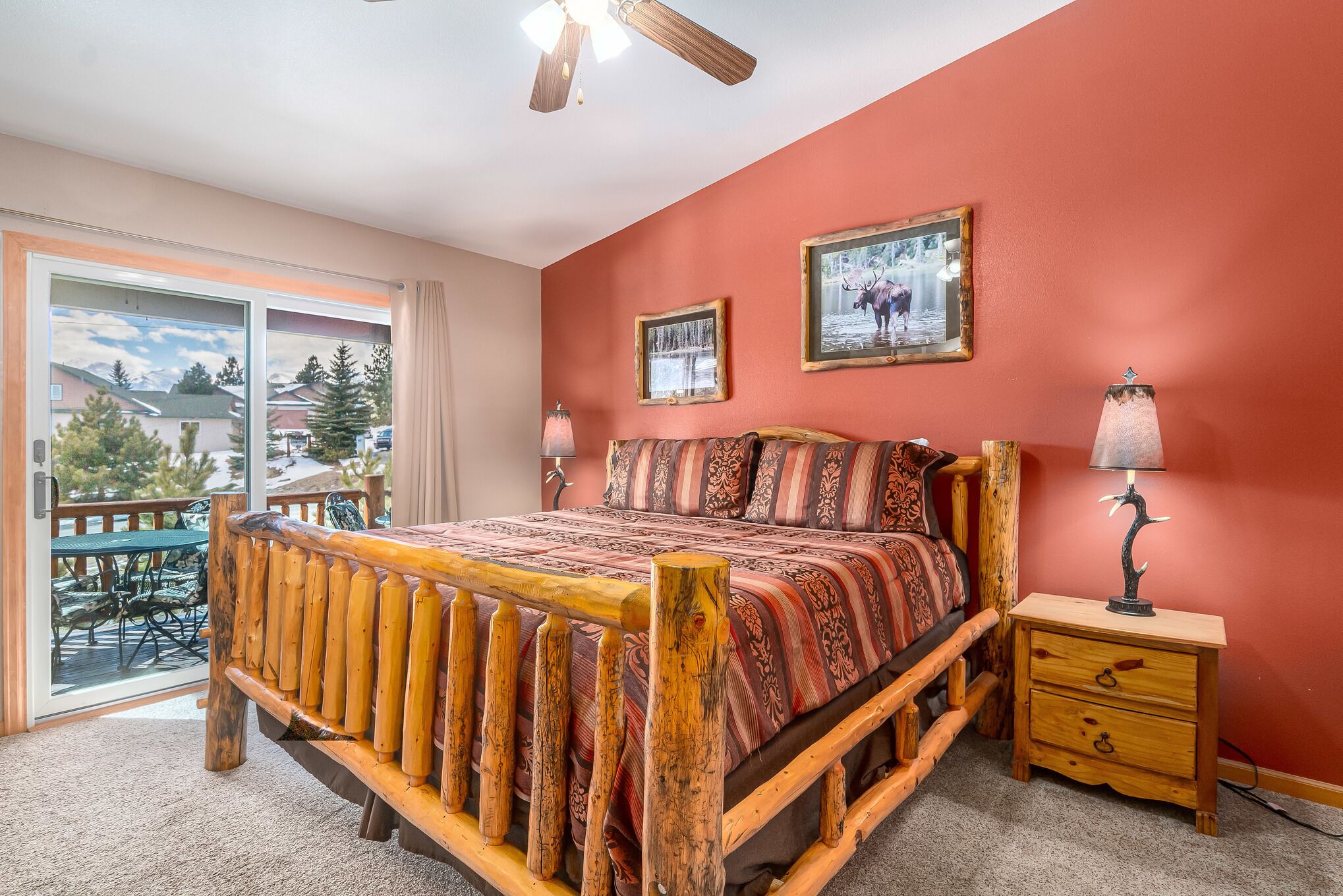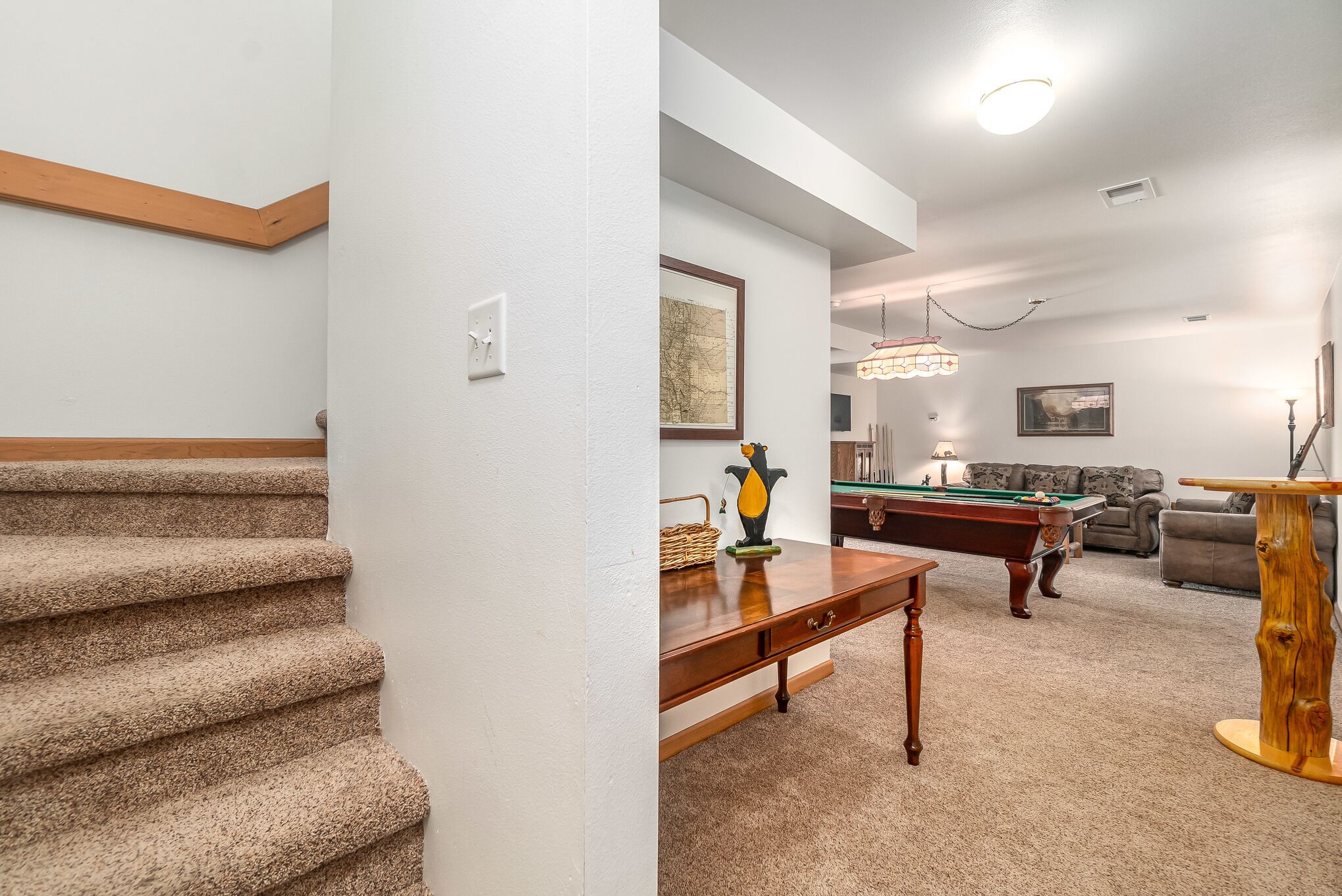Longs Peak Lodge; An Easy walk to downtown! #3221 #3221 Surrounded by tranquility, this luxury townhome is in the heart of Estes Park minutes from Rocky Mountain National Park. Gaze at the Continental Divide and Long's Peak (one of the highest peaks in Colorado) as you barbecue off the deck or just relax and allow the 'Mountain' motif to sweep you away - into the Vacation Zone!Only 5 minutes walking distance into downtown Estes Park, and a 5-minute traffic-free drive to the Black Canyon Inn or the Stanley Hotel! We're also just across the street from one of the stops for two different lines of the free shuttle service (available in the summer months).The Main Level Master bedroom has a king-sized new Purple mattress (Purple 3), separate deck access, double vanity master bath plus a jacuzzi tub, and separate TV. Spacious family room including TV, kitchen with refrigerator, dishwasher, electric range/oven, microwave, dining area, and laundry room (washer & dryer available to use) plus a half bath. The lower level has two additional bedrooms with queen-sized beds, both bedrooms have private entrances from the outside patio, one full jack & jill bath, and game room/rec room, including pool table, couches with queen-sized sleeper-sofa (memory foam mattress), and TV. Your stay includes free wireless high-speed internet access and Amazon Prime as well as basic cable.Large 2-car attached garage.See our comments in the guest book at the bottom of the page, we strive for happy guests!Keywords: Townhome, house, private home