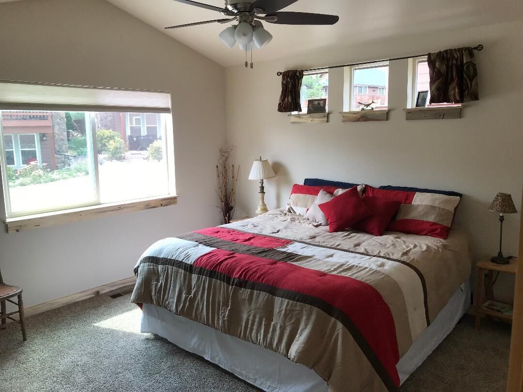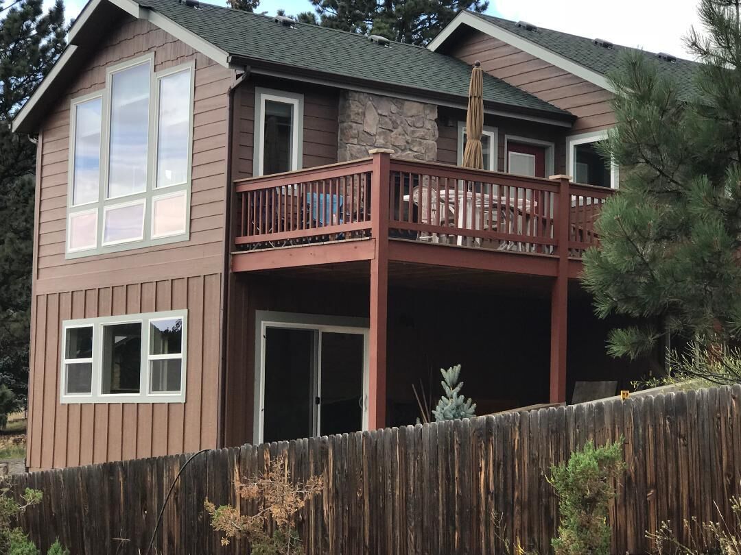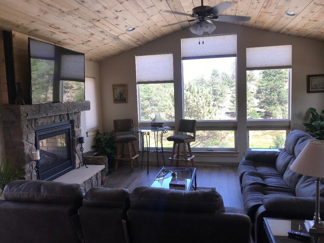 Walk to town # 3448 Spacious home with exceptional views from the deck including the Stanley Hotel. Walking distance to down town Estes Park. less than 2 blocks. Indoor/outdoor fireplace. Deluxe double jet 6 person hot tub. 65" TV in the living room, 48" TV in the master bedroom. WIFI, Netflix and Dish Network. Tiled quarts counters. Among the top rated views and locations in Estes Park.The Space:...