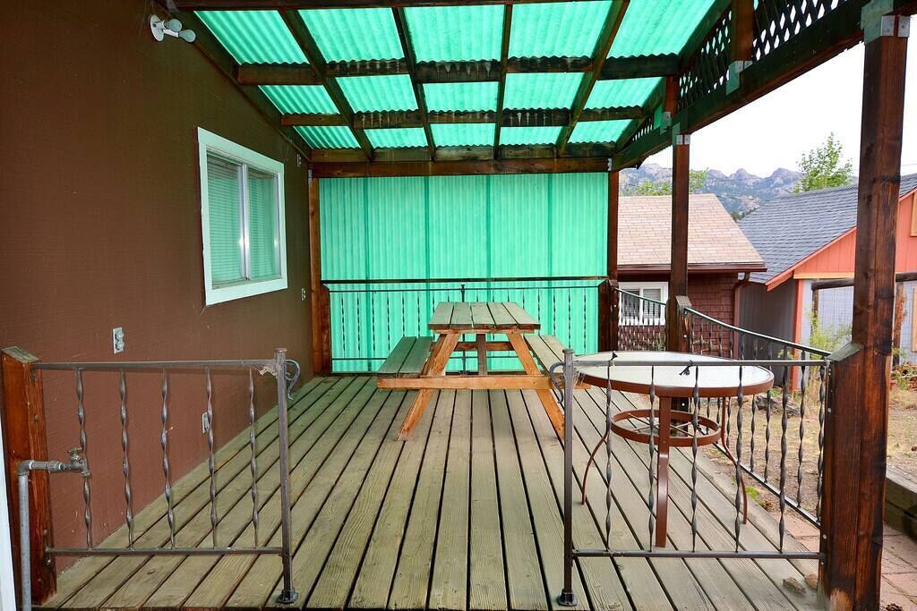 Bear Pause Cottage - 3 bedroom home - walk to town Vacation Rental Registration #3371Come and enjoy the peace and quiet from this serene mountain cottage located just a 5-minute walk from downtown. Bear Pause is located near the end of a cul-de-sac and has views ranging from Longs Peak to the Stanley Hotel, Twin Owls, and the Mummy Range.Upon entering this charming cottage, you will be greeted by the warm and inviting living room. The living room is large and has plenty of seating including 1 full-size sofa, 1 love seat, and 2 comfortable recliners. This space faces south to let in plenty of natural light. There is a flat-screen TV with cable TV service. The living room opens to the generous dining area that has seating for 6 guests. Be sure to check out the elk antler chandelier. The dining room opens to the large and functional kitchen. There are tons of counter space, lots of cabinets, and everything you need to cook a great meal.The master bedroom is accessed through the living room and provides a private retreat with en suite 3/4 bath and queen-sized bed. The second bedroom is off the dining room and has a full-sized bed. The third bedroom features a twin over full bunk bed.Bear Pause has three different outdoor spaces to enjoy. There is a comfortable large seating area in front of the house with views to Longs Peak and the Stanley Hotel. Perched above the large seating area is a comfortable wood bench with great views. Last, but not least, is the covered picnic area for shelter from the occasional afternoon shower. BEDROOM 1 – MASTER BEDROOM – KING BED BEDROOM 2 – QUEEN BED BEDROOM 3 – TWIN OVER FULL BUNK BED BATHROOM 1 – MASTER BATHROOM – EN SUITE- 3/4 BATHROOM – SHOWER ONLY, SINK, TOILET BATHROOM 2 – FULL BATHROOM – TUB/SHOWER COMBO, SINK, TOILET KITCHEN – GLASS TOP RANGE/OVEN, MICROWAVE, DISHWASHER, REFRIGERATOR,COFFEE POT - DRIP, CROCK POT,TOASTER OVEN TV – FLAT SCREEN IN MAIN LIVING AREA, CABLE TV SERVICE EXTRAS-WASHER/DRYER,IRON & IRONING BOARD,HAIR DRYER If you’re in the mood for a stroll through town, the downtown area of Estes Park is a short walk away. You’ll find yourself with a wealth of options from delightful treats like ice cream cones or a refreshing beer, and the ideal souvenir to remember your stay by. Downtown Estes Park is a treasure trove of inviting shops and an array of restaurants, ensuring you have a multitude of choices at your fingertips.Rocky Mountain National Park is a stunning natural expanse located in Colorado, USA. It's renowned for its majestic mountain peaks, alpine lakes, diverse wildlife, and varied ecosystems. The park boasts breathtaking landscapes, with towering peaks, including Longs Peak, at over 14,000 feet, and a range of environments from montane forests to subalpine and alpine tundra.Rocky Mountain National Park offers numerous hiking trails catering to different skill levels, allowing visitors to explore its natural beauty. Trail Ridge Road provides stunning vistas and access to various hiking spots. The park is dotted with serene lakes like Bear Lake, Sprague Lake, and the dreamlike reflections in the water make for picturesque scenes. Rivers and streams flow through the park, providing opportunities for fishing and rafting.The park's beauty changes throughout the year, offering different experiences in each season. Spring brings wildflowers, summer offers ideal hiking weather, fall showcases vibrant foliage, and winter transforms the park into a winter wonderland for snowshoeing and cross-country skiing.It's a haven for nature enthusiasts, outdoor adventurers, and anyone seeking to immerse themselves in the beauty of the Rocky Mountains.