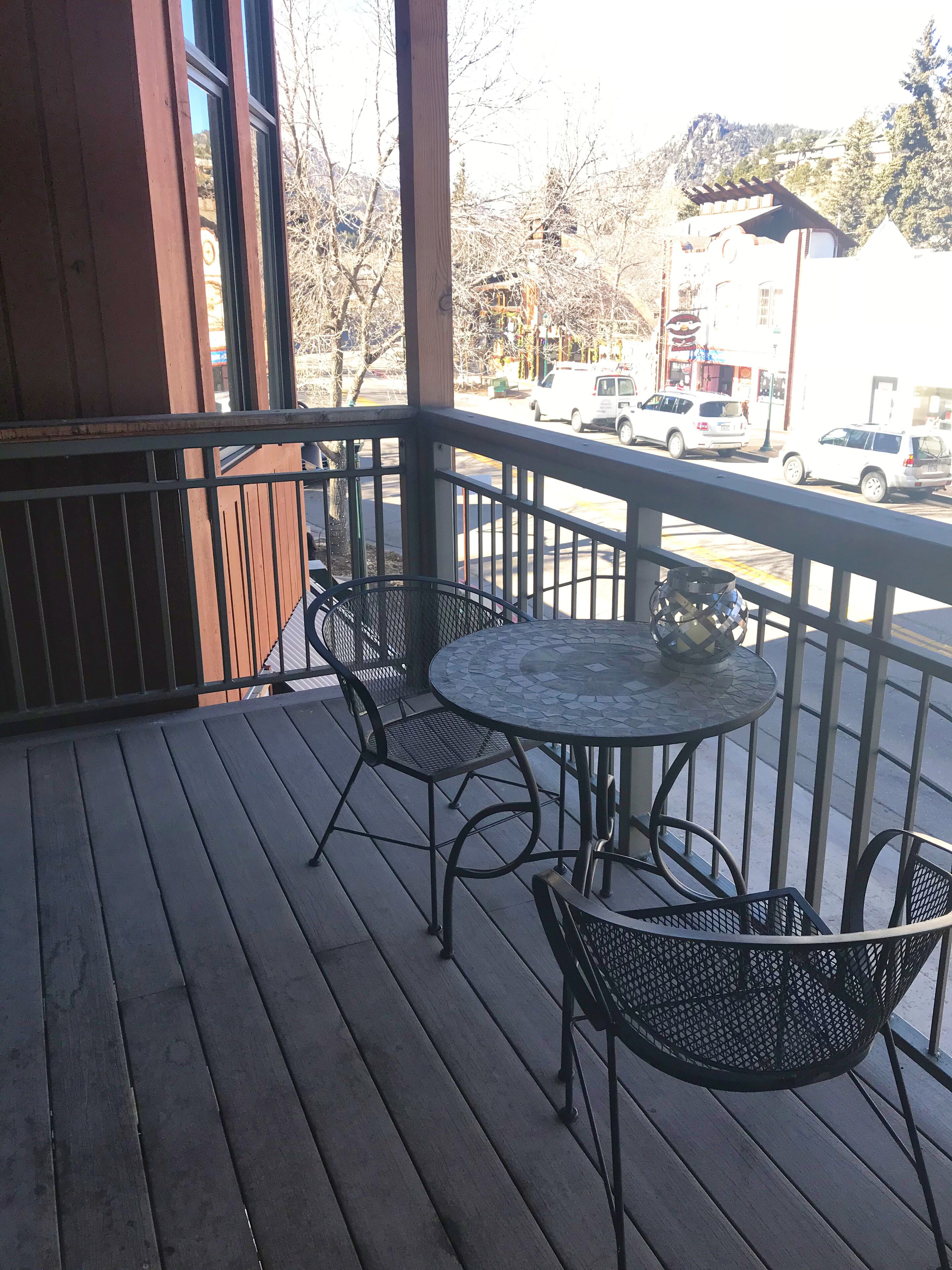 Downtown Luxury Loft- We still have limited availability for summer and fall! (License #6114) Have it all! Walk to shops and galleries on 'main street' (Elkhorn Avenue) and The Riverwalk. In just minutes, play a round of golf or head into Rocky Mountain National Park for unparalleled hiking, fishing or horseback riding. Finish the day with dinner at any number of restaurants downtown, a concert at Performance Park (on the river) and walk home. People watch from your private balcony overlooking the whole downtown.This high-end loft in the heart of town has soaring ceilings, gas fireplace, full bath with an enormous walk-in shower, expanded kitchen with high end appliances and private deck overlooking the Main Street. Even though you are in the middle of it all, you will feel miles away while relaxing in this quiet, modern, luxury unit. Living, dining and separate sitting areas all part of an open, sunny space. Escape to the Mountains! Just an hour and a half drive northwest of Denver, Estes Park offers numerous festivals, restaurants, art galleries, shopping, golf, tennis, music venues, museums and historic properties such as the grand Stanley Hotel. Hike some of the 350 miles of hiking trails in Rocky Mountain National Park covering the most easily accessible, pristine mountains in the United States or drive Trail Ridge Road over the Continental Divide, the highest continuous paved road in the U.S. Keywords: Modern, open, luxury, loft, downtown, walkable, green, pet friendly, riverwalk, convenient, full kitchen, high end appliances.