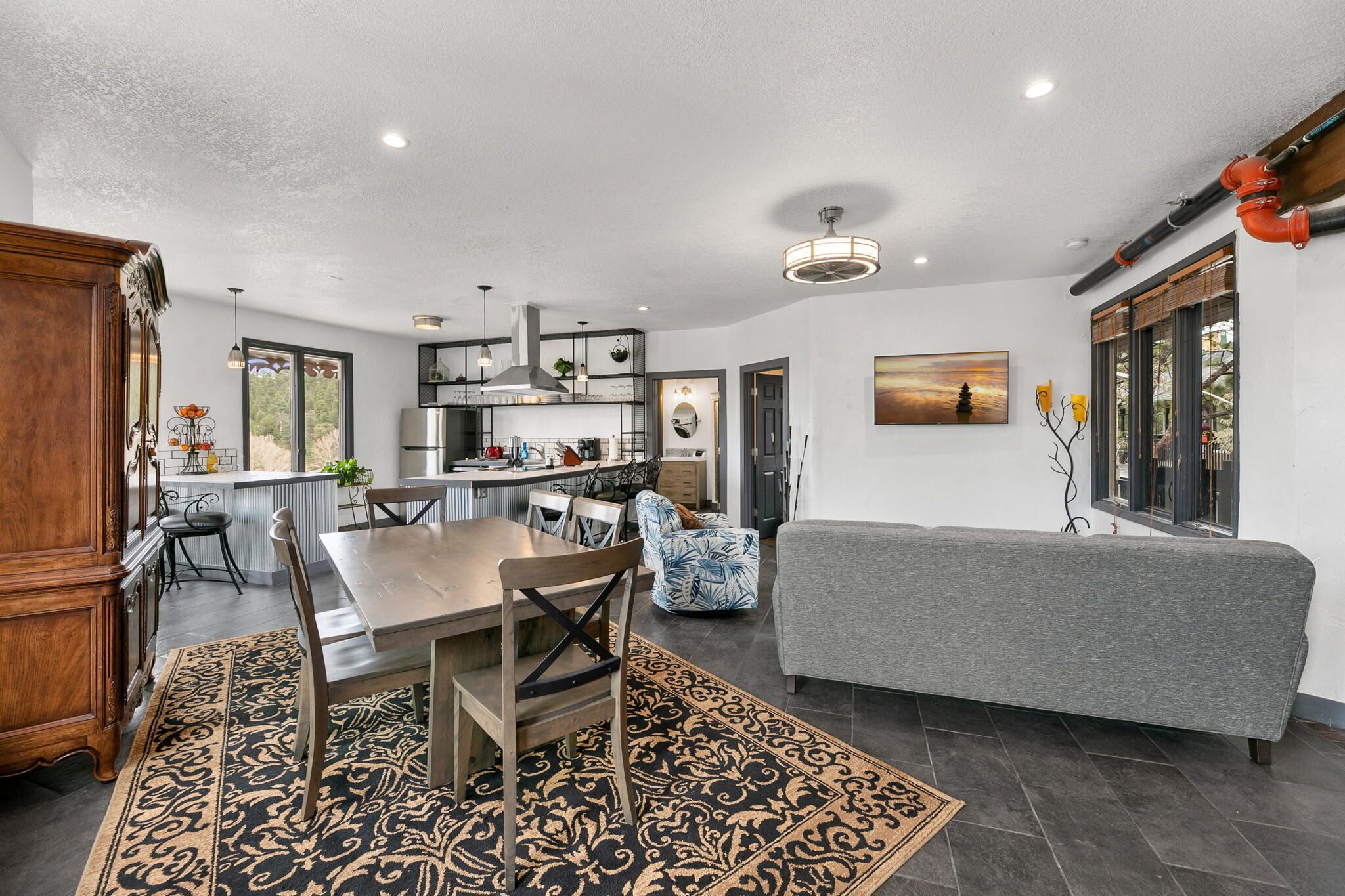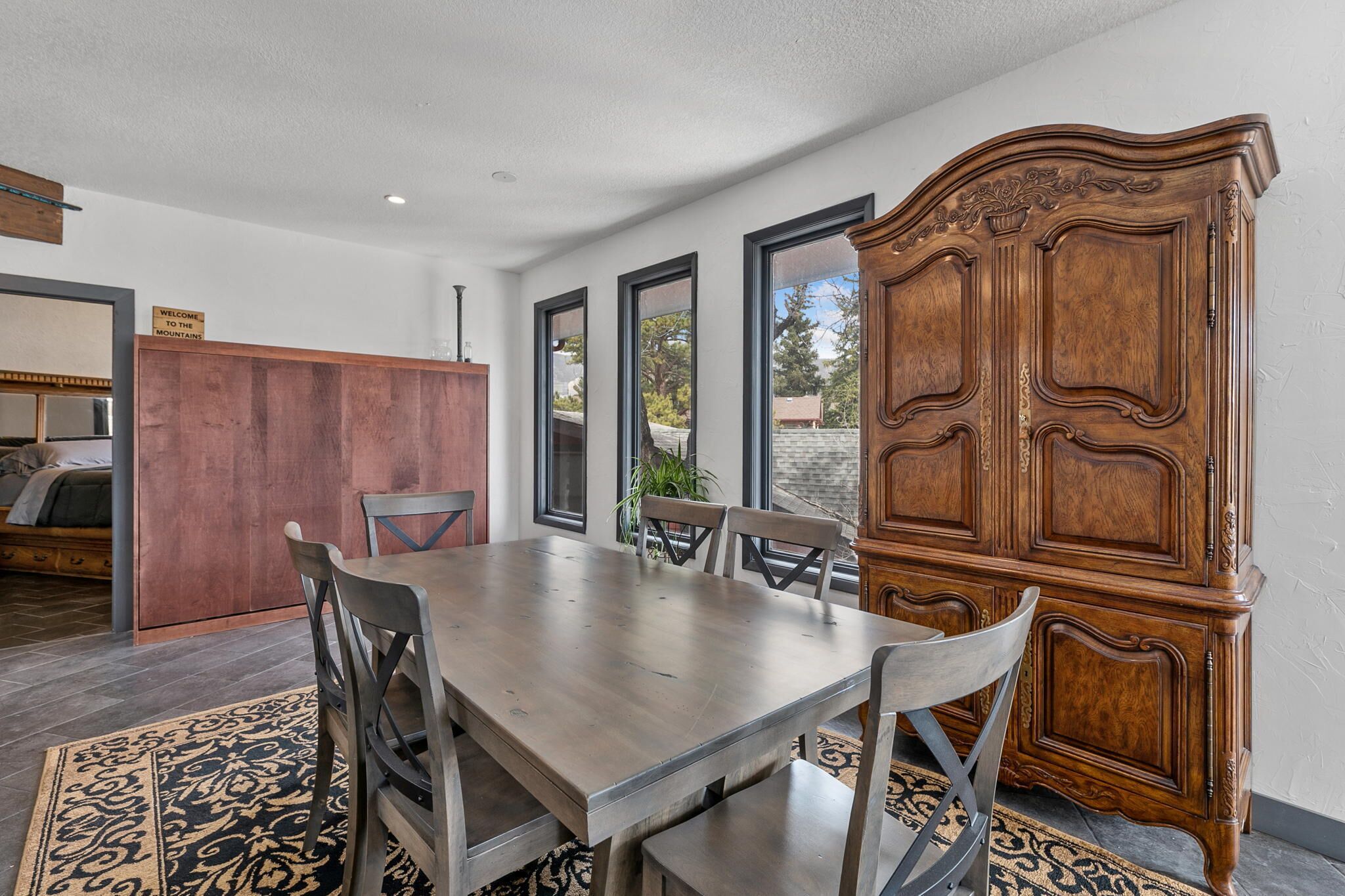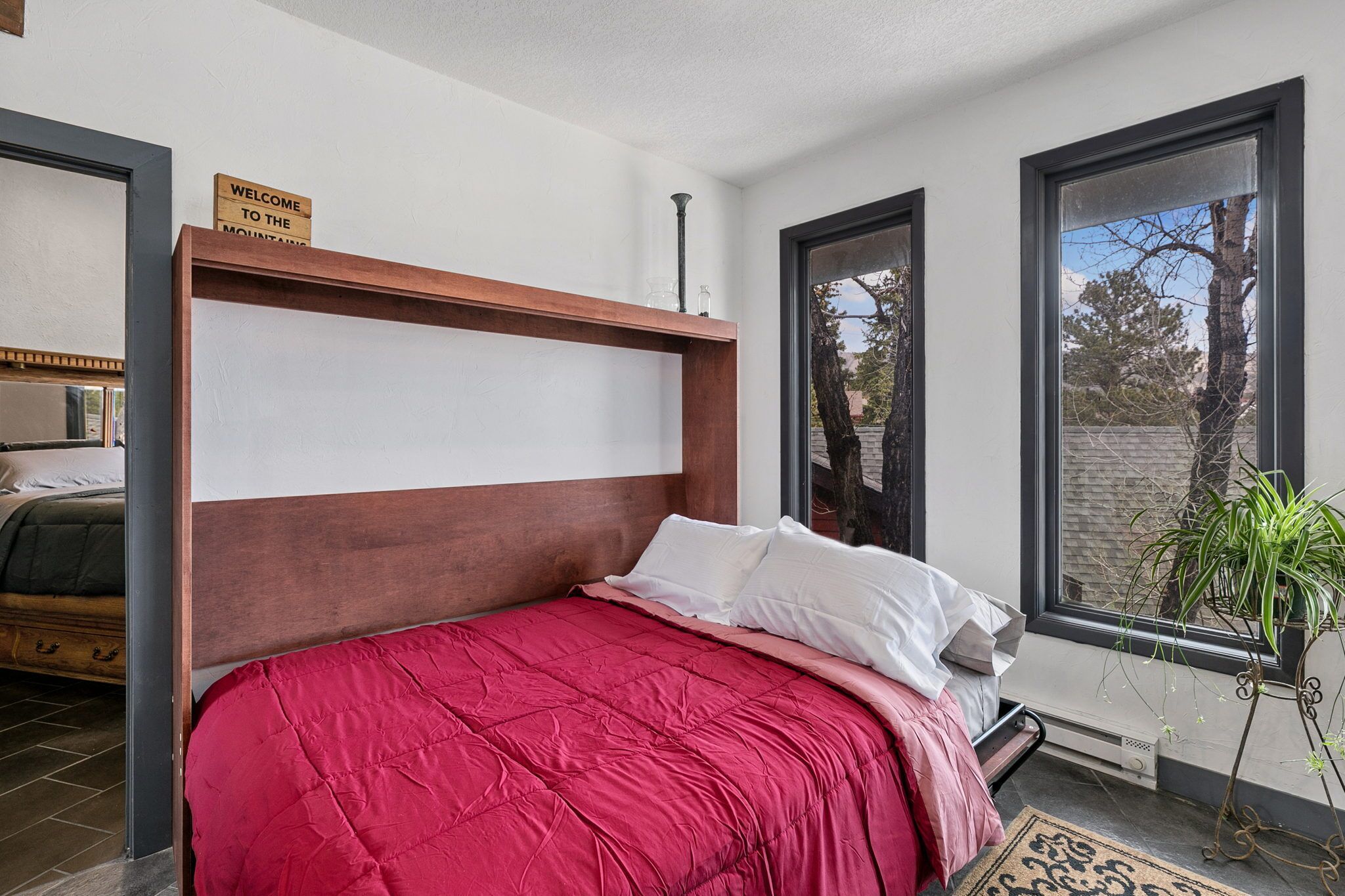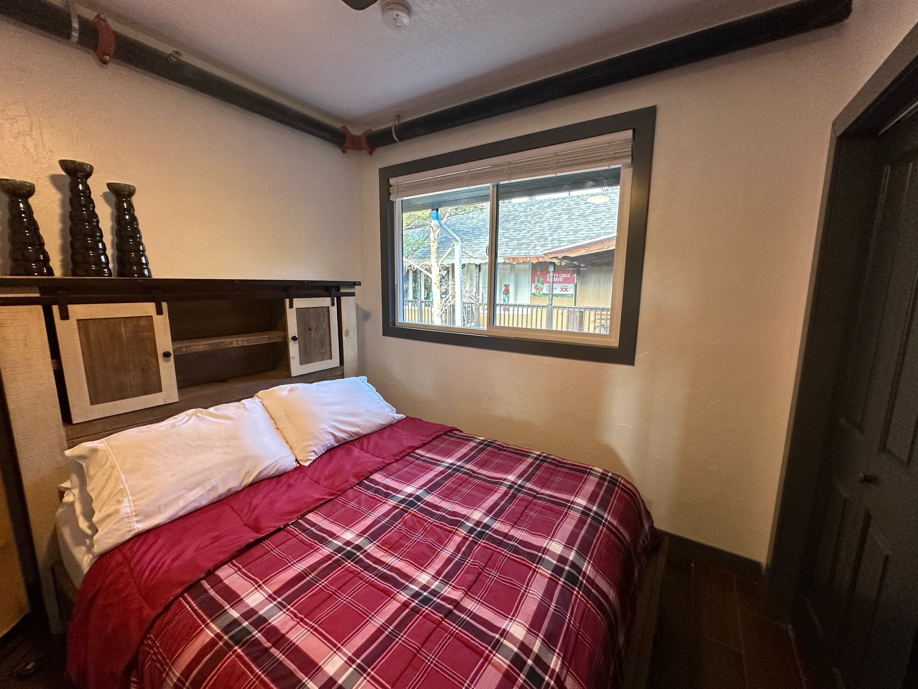 Luxury Downtown Estes Park 2 Bedroom Flat Lic #6075 Located in Downtown Estes Park the Gateway to the Rocky Mountain National Park just a short drive from Denver Colorado. Be sure to visit the on site La-Cabana Rooftop Patio. The Overlook Flat is within walking distance of numerous shop's and other restaurants. Experience the beautiful mountain scenery and catch a gorgeous view of The Stanley Hotel. Complete with 2 bedrooms that can accommodate up to 6 guests, 1 large bathroom with a front loading washer/dryer for your convenience. In planning your trip we are inly able to issue 1 parking permit per vacation rental for our private parking lot.
