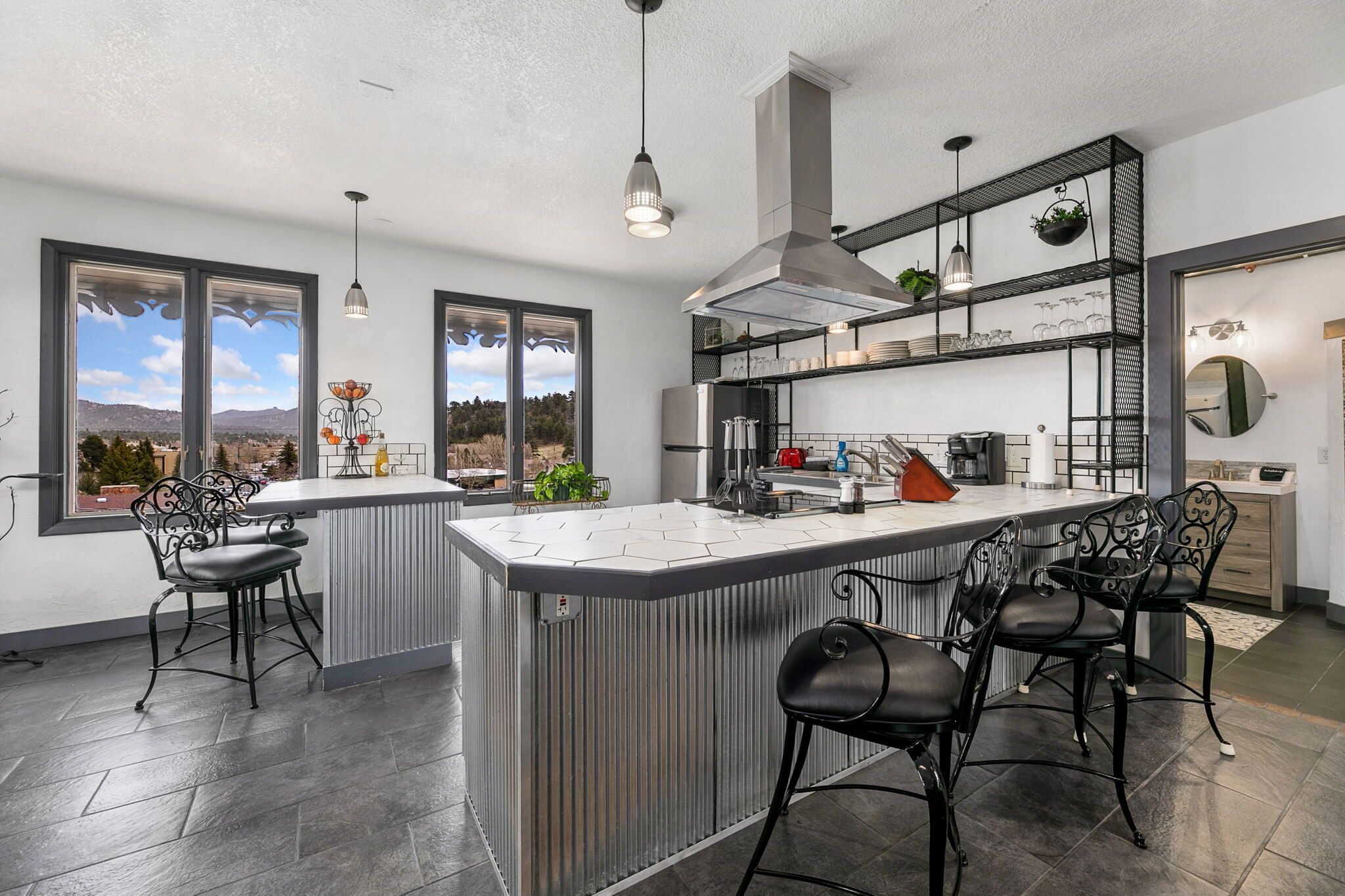 Luxury Downtown Estes Park 2 Bedroom Flat Lic #6075 Located in Downtown Estes Park the Gateway to the Rocky Mountain National Park just a short drive from Denver Colorado. Be sure to visit the on site La-Cabana Rooftop Patio. The Overlook Flat is within walking distance of numerous shop's and other restaurants. Experience the beautiful mountain scenery and catch a gorgeous view of The Stanley Hot...