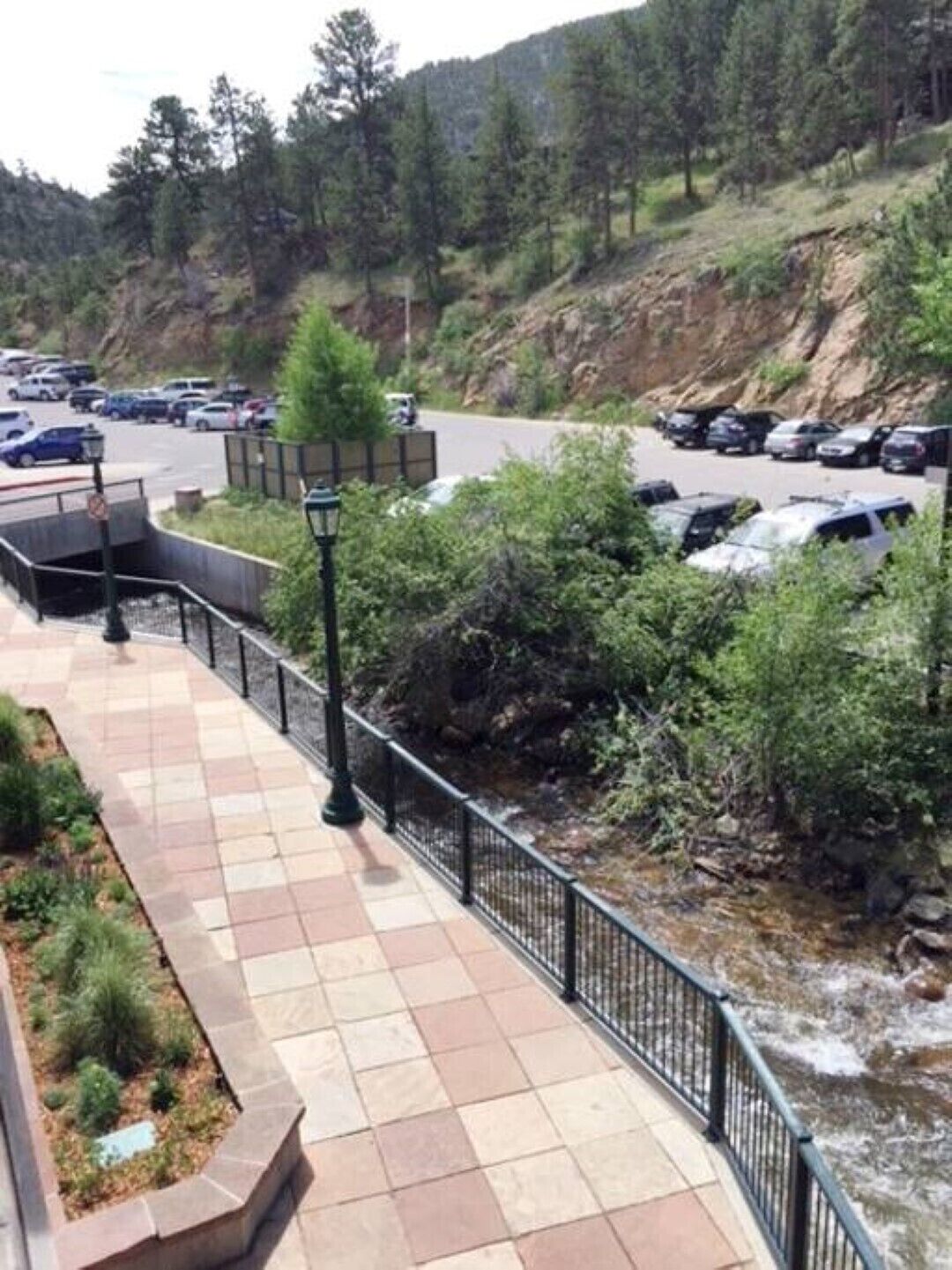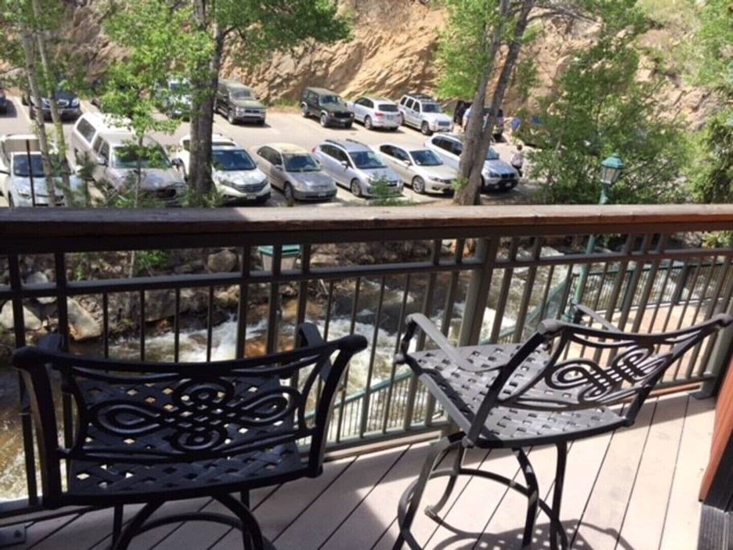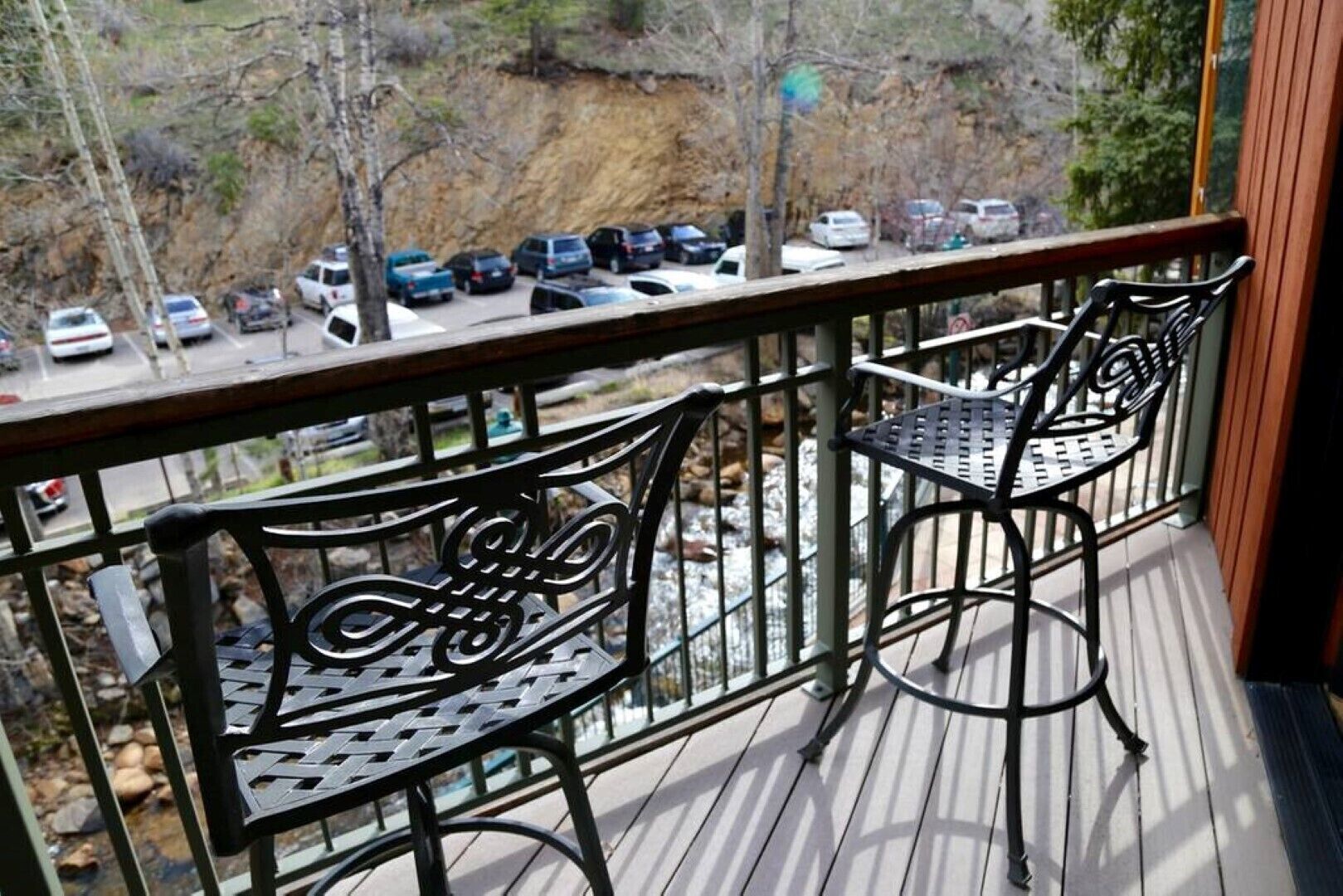 Downtown Corner Luxury Loft on the Riverwalk - King Bed! Short term rental registration number 6171. Get away from it all in the mountains of Estes Park with luxury and the convenience of a downtown location. The loft is right on the Riverwalk and main street; you'll be able to walk to shops, restaurants and art galleries on the main street of Estes Park and you're close to all the outdoor activities of RMNP and the surrounding areas.The spaceThis luxurious loft in the heart of town has 11 foot ceilings, a warm gas fireplace, sky lights, full bath with an enormous jacuzzi tub, granite counter tops and a private deck overlooking the river walk. You'll find that this loft is very quiet with a peaceful with a view of a hillside, you will feel miles away while relaxing in this quiet gem and if you're lucky you'll watch a herd of elk walking by on the hillside. Living, dining and kitchen are all part of an open, sunny space. Be sure to open the windows so you can hear the river rushing by! Our guests love the luxurious jacuzzi bathtub as well. The building is secure & safe with a few cute shops right below.Estes Park offers numerous festivals, restaurants, art galleries, shopping, golf, tennis, music venues, museums and historic properties such as the grand Stanley Hotel. Rocky Mountain National Park is only a few miles up the road and has 350 miles of hiking trails covering the most easily accessible, pristine mountains in the United States. Hiking, biking, horseback riding are all available in the park or you can drive Trail Ridge Road over the Continental Divide.
