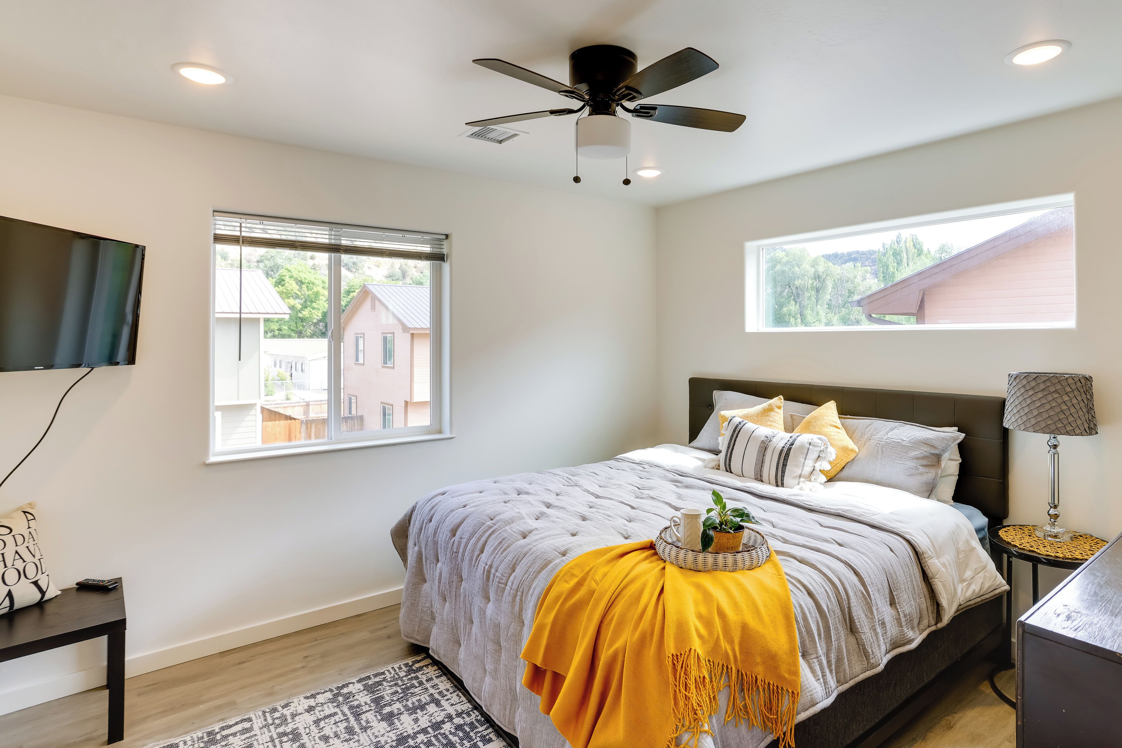 Dolores Townhome w/ Mountain Views: Near River! The ultimate mountain retreat awaits at this charming 3-bedroom, 2.5-bath vacation rental in Dolores, CO! Boasting a quiet location with quick access to the Dolores River, this townhome offers the perfect destination for nature enthusiasts. Go hiking in the San Juan National Forest, explore the cliff dwellers at Mesa Verde National Park, or take a scenic drive to Durango. After your adventures, prepare a delicious meal in the fully equipped kitchen and dine al fresco on your private patio.-- THE PROPERTY --On-Site Parking | Keyless Entry | Near Hiking, Biking & FishingBedroom 1: King Bed | Bedroom 2: Queen Bed | Bedroom 3: Twin Bed | Living Room: Sleeper Sofa | Additional Sleeping: Pack ‘n PlayOUTDOOR LIVING: Private patio, dining area, expansive mountain viewsINDOOR LIVING: 2 Smart TVs, TV, Netflix connection & local channels, 4-person dining tableKITCHEN: Cooking basics, refrigerator, microwave, stove/oven, dishwasher, dishware & flatware, coffee maker & coffee pot, coffee provided, ice maker, toaster, water filterGENERAL: Free WiFi, linens/towels, central A/C & heating, in-unit washer/dryer, hair dryer, hangers, iron/board, trash bags/paper towels, complimentary toiletries, laundry detergent providedFAQ: Quiet hours (after 10:00 PM), 2 steps required to enter, all bedrooms on 2nd floor, 1 exterior security camera (facing out)PARKING: Driveway (2 vehicles), free street parking (first-come, first-served)-- THE LOCATION --EXPLORE NATURE: Dolores River (walking distance), Dolores City Park (0.2 miles), San Juan National Forest (5 miles), Boggy Draw Mountain Bike Trail (8 miles), McPhee Recreation Area (10 miles), Phil's World Bike Trail (20 miles), Mancos State Park (24 miles)HISTORIC SITES: Canyons Of The Ancients Visitor Center & Museum (4 miles), Canyons of the Ancients National Monument (4 miles), Mesa Verde National Park (19 miles), Chapin Mesa Archaeological Museum (39 miles), Four Corners Monument (52 miles)DURANGO (~47 miles): Durango Adventures and Zipline Tours, Flexible Flyers Rafting, Durango & Silverton Narrow Gauge Railroad & Museum, Durango Arts Center, Fort Lewis College, The Powerhouse - Science Center/MakerLabAIRPORT: Durango-La Plata County Airport (61 miles)-- REST EASY WITH US --Evolve makes it easy to find and book properties you’ll never want to leave. You can relax knowing that our properties will always be ready for you and that we’ll answer the phone 24/7. Even better, if anything is off about your stay, we’ll make it right. You can count on our homes and our people to make you feel welcome--because we know what vacation means to you.-- POLICIES --- No smoking- No pets allowed- No events, parties, or large gatherings- Must be at least 25 years old to book- Additional fees and taxes may apply- Photo ID may be required upon check-in- NOTE: Please observe quiet hours after 10:00 PM- NOTE: The property requires 2 steps to enter and additional stairs to access all bedrooms- NOTE: Your safety matters. This property features 1 exterior security camera located at the front door facing the front outdoor entry. It does not look into any interior spaces. The camera records video and sound when activated by motion. It will record when it first senses motion and 30 seconds after the last motion is detected
