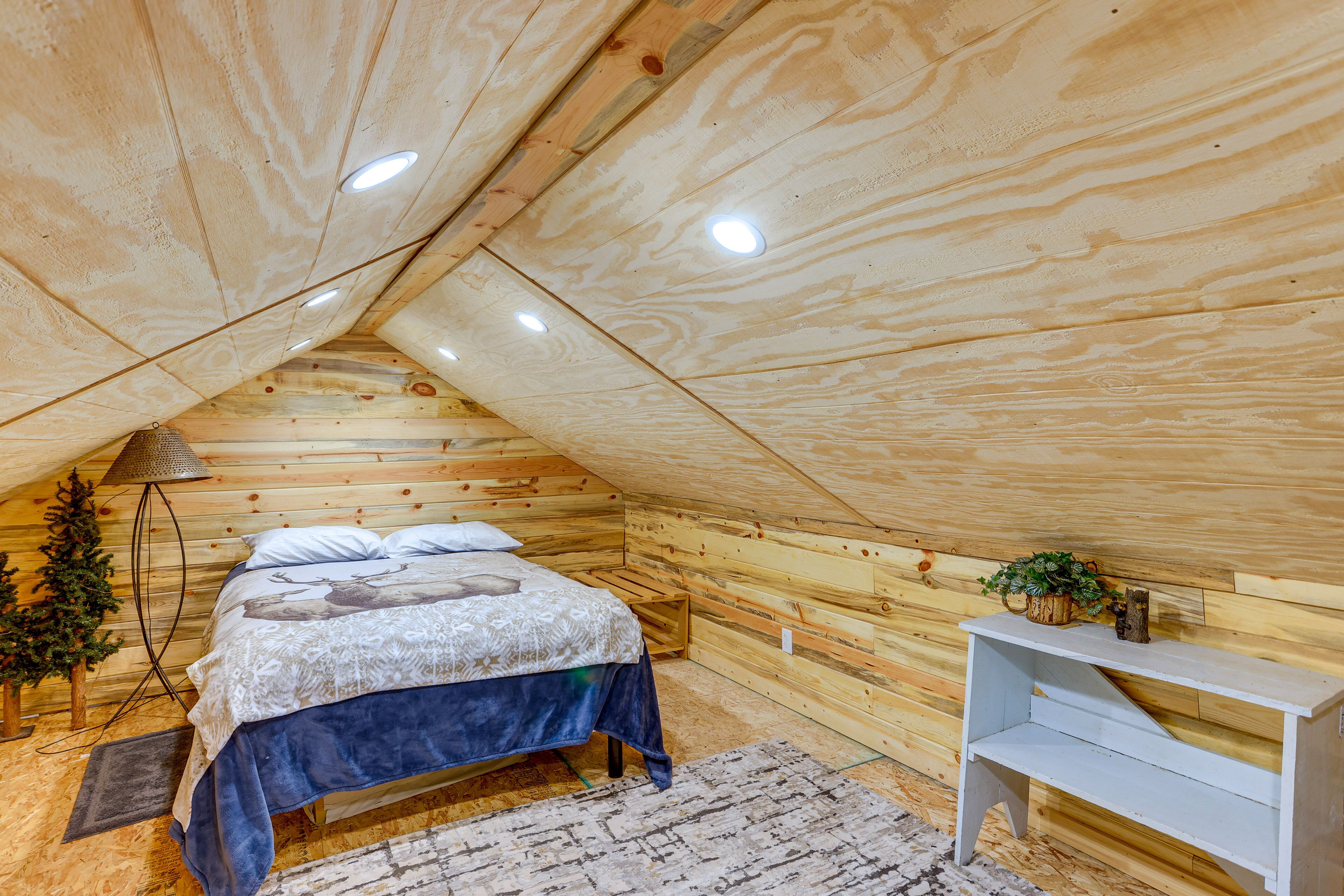 Rustic Home in Dolores: Hunting, Fishing & More! Break into the backcountry at this Dolores vacation rental! With 1 bedroom and 2 baths, this off-the-grid base camp is perfect for outdoorsmen. Big-game hunting and wildlife viewing can be accessed from the on-site double-track trail, which leads straight into the dense ponderosa pines of the San Juan National Forest. Behind the property, the trout-laden Dolores River boasts catch-and-release fishing. In between excursions, refuel back home with a warm meal, in-unit laundry, and board games.-- THE PROPERTY --Dolores River Access | Row Boats Provided | Hiking Trail Access On-Site | Free WiFiBedroom (Loft): 3 Queen BedsMAIN FEATURES: Dining table, piano, board gamesKITCHEN: Dishwasher, coffee maker, toaster, fridge, stove & oven, microwave, dishware/flatware, trash bags/paper towels, cooking basicsGENERAL: Washer & dryer, detergent, towels/linensFAQ: No A/C, homeowner on-site, no fence before river, limited cell serviceACCESSIBILITY: 2-story home, step-free entry, bedroom on 2nd floorPARKING: Driveway (6 vehicles)-- THE LOCATION --SEE & DO: Dolores Railroad Museum/Galloping Goose Historical Society (30 miles), Dolores River Brewery (30 miles), Canyons of the Ancients Visitor Center & Museum (34 miles), Canyons of the Ancients National Monument (34 miles), Mesa Verde National Park (46 miles)EXPLORE OUTDOORS: Dolores City Park (30 miles), McPhee Reservoir - docks, marina, boat rentals, paddle boards (43 miles), Phil's World Bike Trail (43 miles), Mancos State Park (53 miles)DURANGO (~77 miles): Durango Adventures and Zipline Tours, Flexible Flyers Rafting, Durango & Silverton Narrow Gauge Railroad & Museum, Durango Arts Center, Fort Lewis College, The Powerhouse - Science Center/MakerLabAIRPORT: Durango-La Plata County Airport (90 miles)-- REST EASY WITH US --Evolve makes it easy to find and book properties you’ll never want to leave. You can relax knowing that our properties will always be ready for you and that we’ll answer the phone 24/7. Even better, if anything is off about your stay, we’ll make it right. You can count on our homes and our people to make you feel welcome--because we know what vacation means to you.-- POLICIES --- No smoking - No pets allowed- No events, parties, or large gatherings - Must be at least 25 years old to book- Additional fees and taxes may apply- Photo ID may be required upon check-in- NOTE: The property does not have air conditioning- NOTE: The homeowner occasionally lives on-site, in a separate unit with a separate entrance, and may be present during your stay- NOTE: This property may not be suitable for young children due to the unfenced river access- NOTE: The property does have cell phone service, but it may be spotty since the property is located in a rural area. Please check with your provider to confirm your service quality- NOTE: While this 2-story home features a step-free entrance, the bedroom is located on the 2nd floor and requires stairs