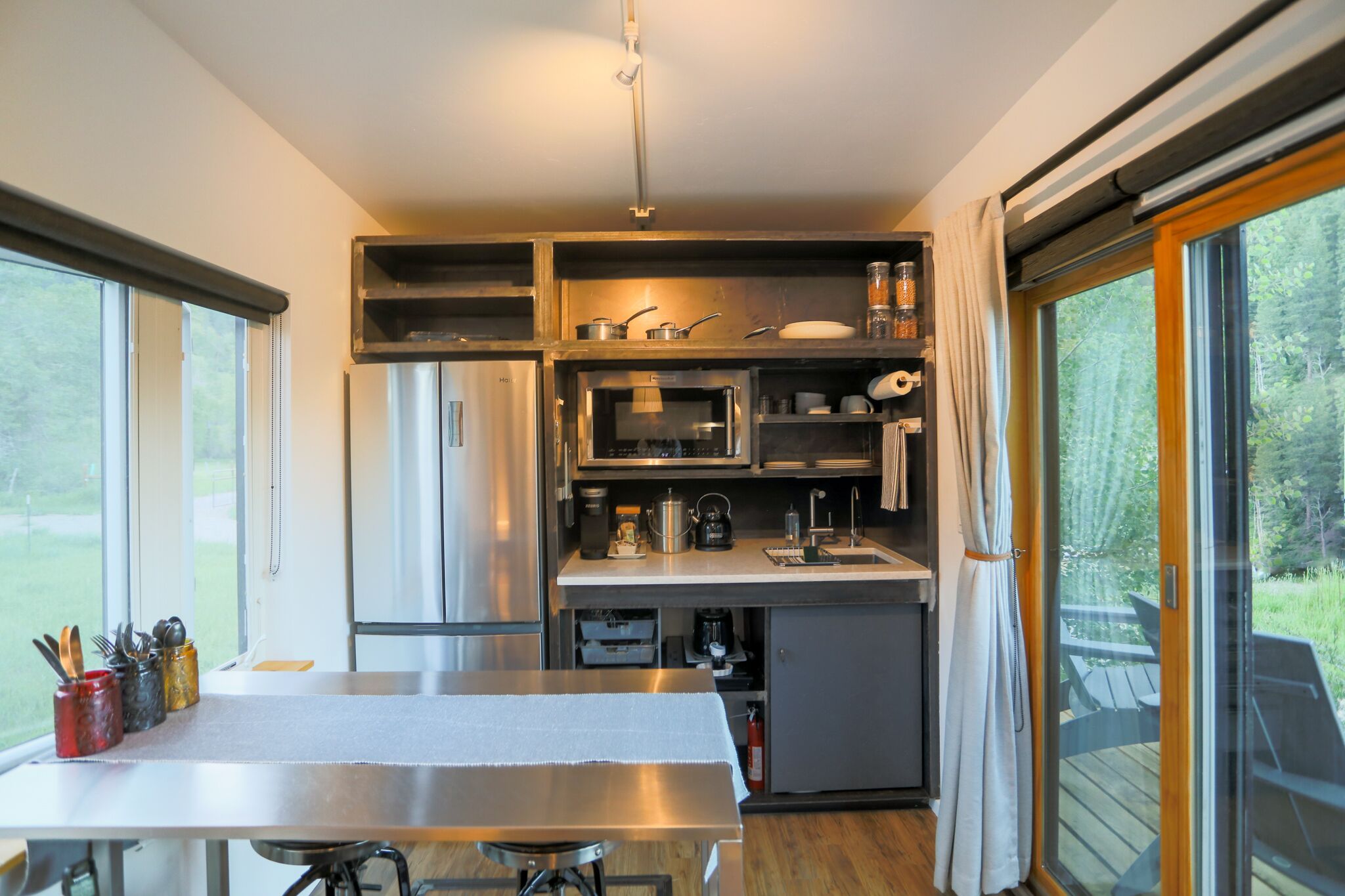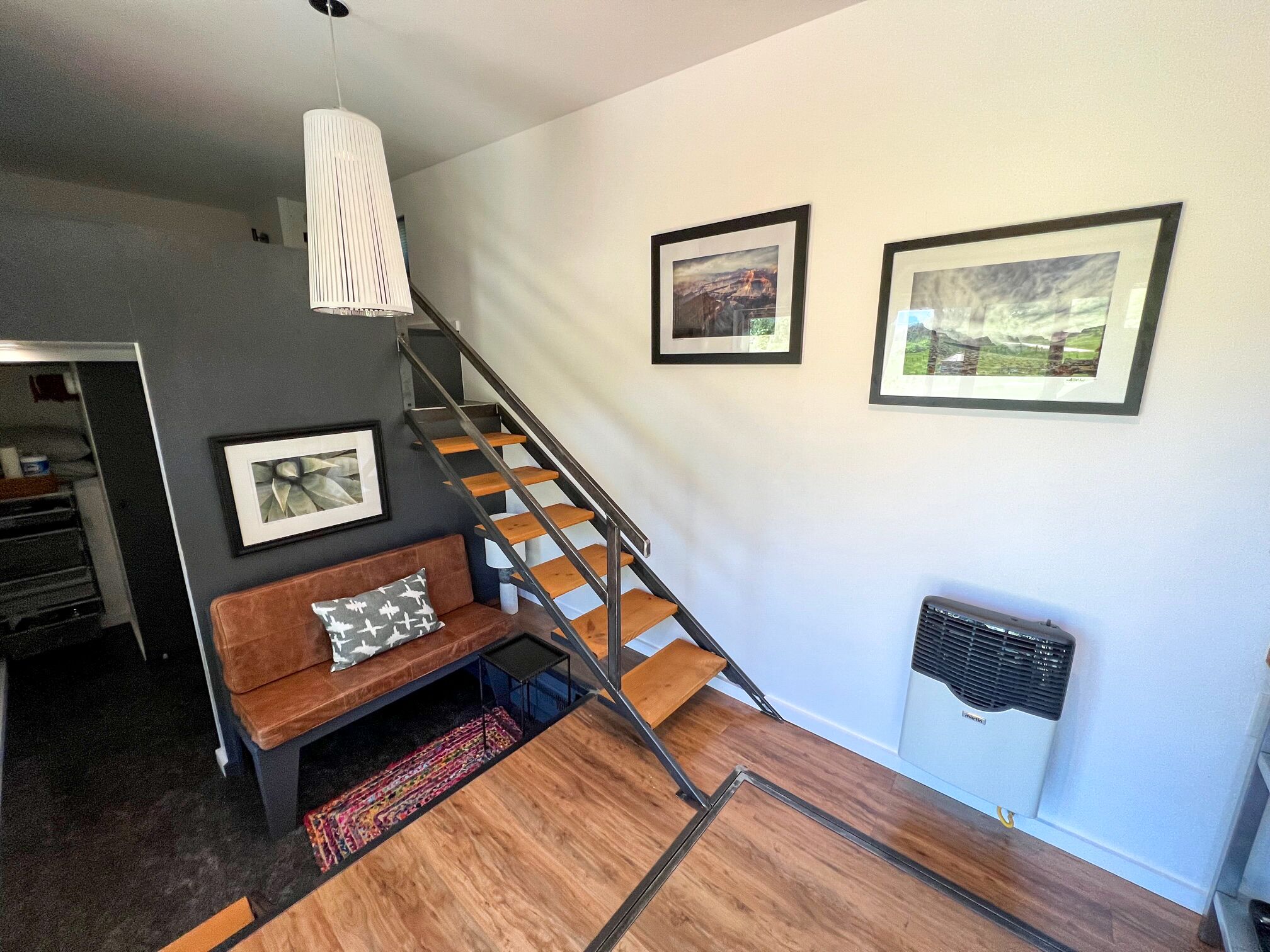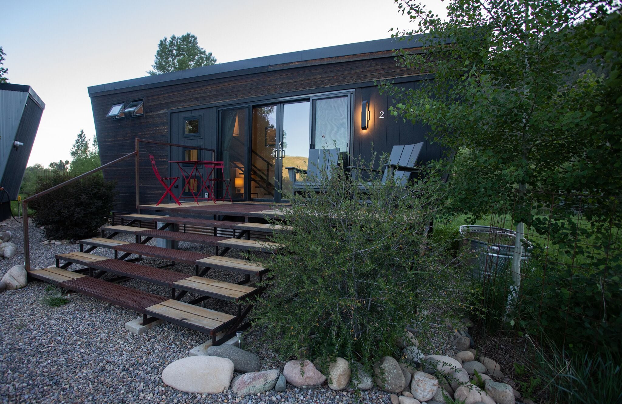 Celestial Sights in a Tiny House Getaway - Unit 2 Leave the hustle and bustle behind as you enter a realm where simplicity reigns supreme. This little gem has everything you need and nothing you don't, giving you the freedom to fully soak in the breathtaking beauty of the mountains. Listing is for one of two tiny houses on the same property. Tucked inside San Juan Nat'l Forest, 15 minutes to Bear Creek Trail. A 20 minute drive from Dolores, have the idyllic backcountry vacation of your dreams with views of the mountains in every direction.Listing is for Unit 2 only. If you'd like to book both houses, just reach out and we'll show you where to find the listing.Say “see you later” to all the buzzing distractions: no cell service or televisions here though high-speed internet keeps you connected even as you embrace the serenity of nature. Our tiny homes are the perfect place to unwind and escape city life for a while.Luxury meets small space wizardry in these modern, sleek tiny houses. The interior is carefully curated to create a tranquil space that puts your mind at ease. Our fully stocked kitchen makes the most of every nook and cranny, supplying everything you need without the clutter. Full fridge, convection oven/microwave, 2 portable electric burners, all the pots, pans, and cooking utensils you need, Keurig, and electric tea kettle.The living area features a 2 seater leather chair, small coffee table, kitchen island with 2 stools for dining or working. Full bathroom features a beautifully tiled shower, flushing toilet, and a sink. Loft bed sleeps two lucky souls who aren’t afraid to embrace their inner minimalists. Sliding glass door lets the space expand onto the porch where you can breathe in that fresh mountain air. Keep an eye out for birds, deer, fox, and other playful critters that pass by our dwelling. When the sun sets, experience the sky like you’ve never seen it before. With virtually no light pollution, the night sky reveals its true magnificence, unveiling a tapestry of twinkling stars that will leave you breathless.So pack light, bring your adventurous spirit, and get ready to immerse yourself in the wonders of nature in our little slice of heaven. It’s time to surrender to the mountains.-**There is another tiny house that may be rented out by other guests. Houses share a long driveway, a walkway, and the outdoor space. We ask that you respect the privacy of your neighbors.Property has not been tested for Radon