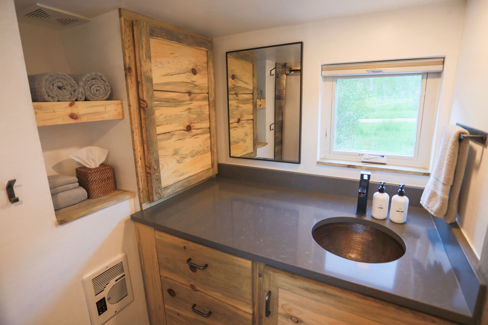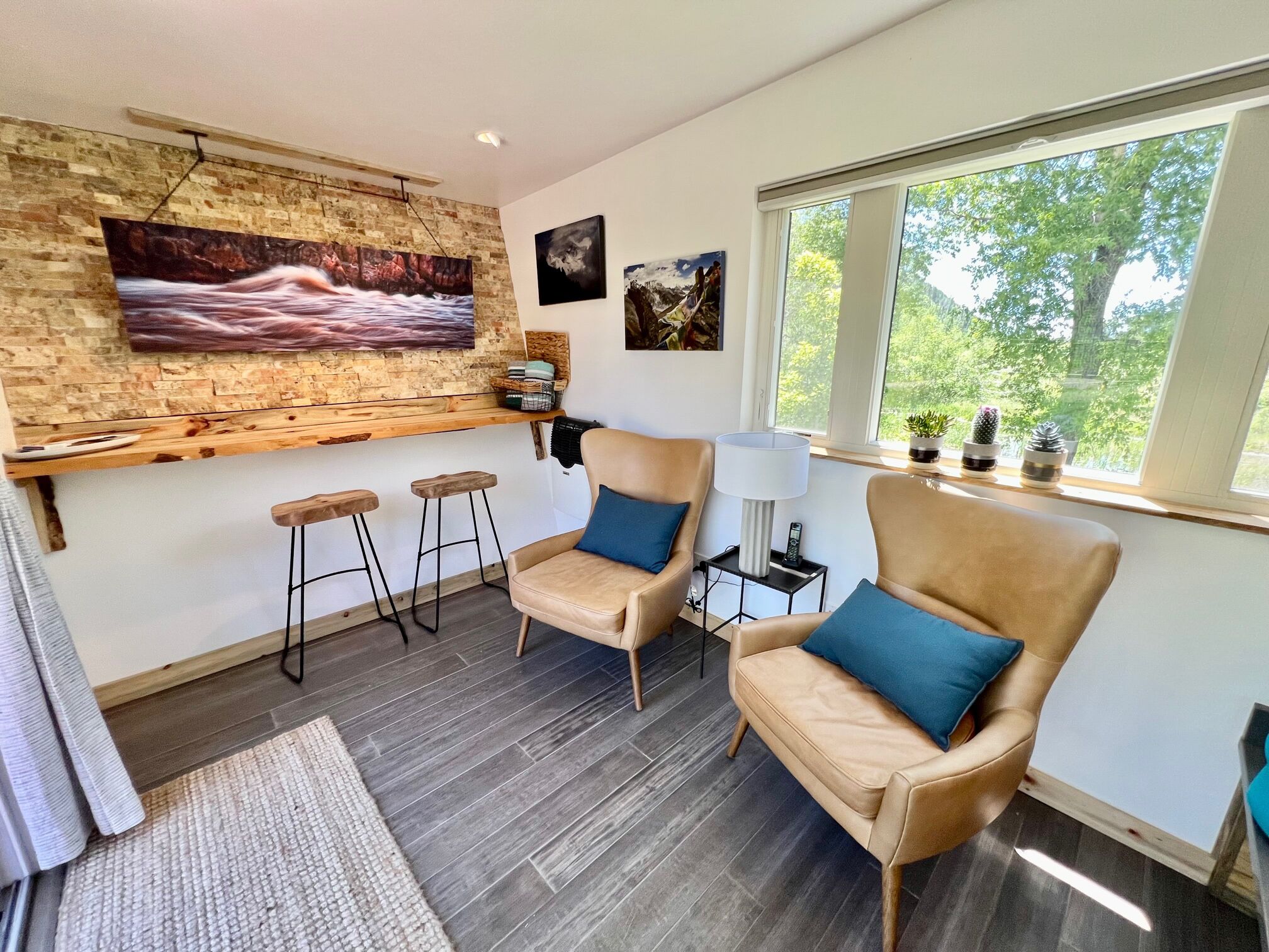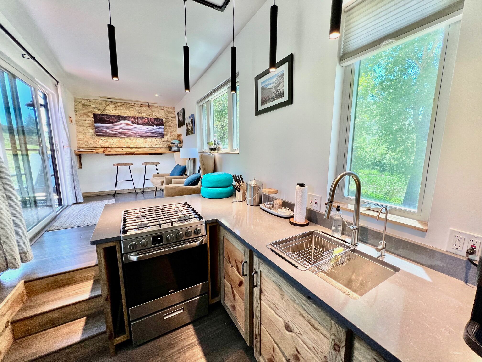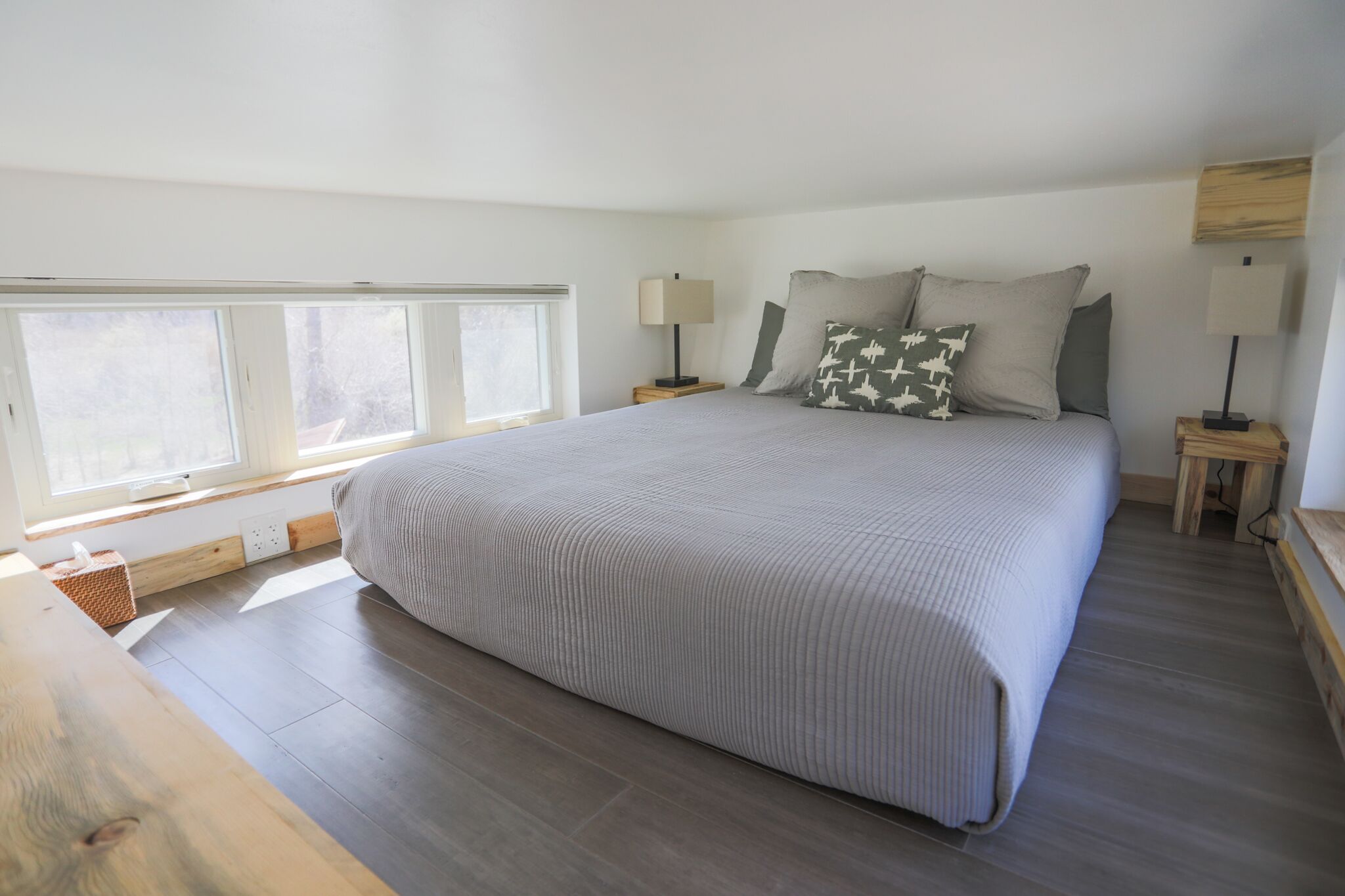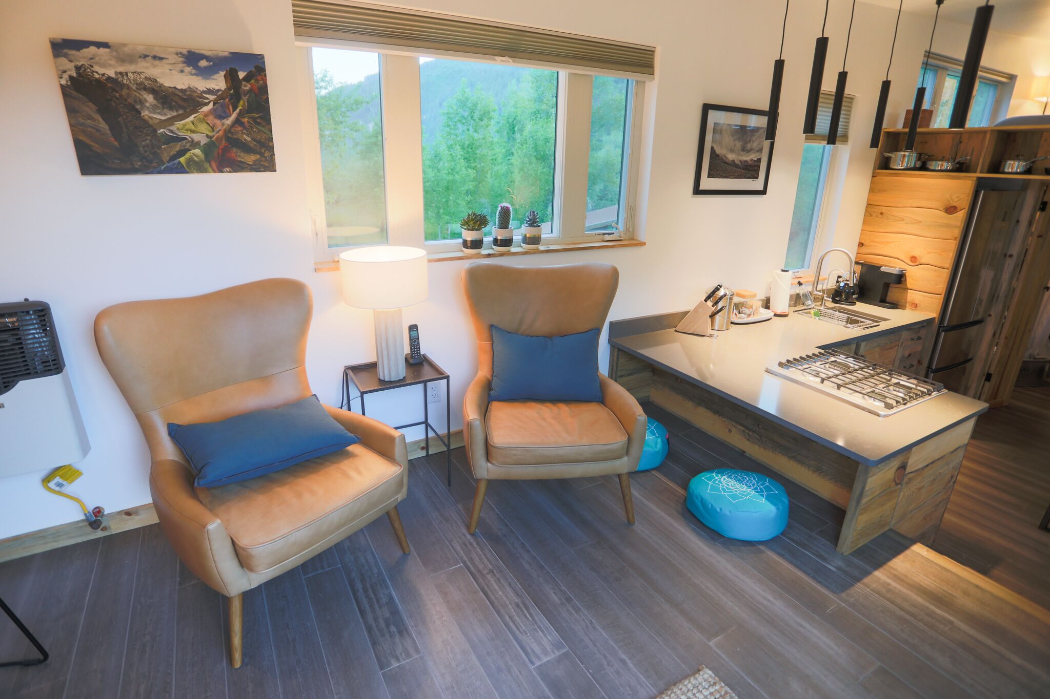 Celestial Sights in a Tiny House Getaway - Unit 1 Leave the hustle and bustle behind as you enter a realm where simplicity reigns supreme. This little gem has everything you need and nothing you don't, giving you the freedom to fully soak in the breathtaking beauty of the mountains. Listing is for one of two tiny houses on the same property. Tucked inside San Juan Nat'l Forest, 15 minutes to Bear Creek Trail. A 20 minute drive from Dolores, have the idyllic backcountry vacation of your dreams with views of the mountains in every direction.Listing is for Unit 1. If you'd like to book both houses, just reach out and we'll show you where to find the listing.Say “see you later” to all the buzzing distractions: no cell service or televisions here though high-speed internet keeps you connected even as you embrace the serenity of nature. Our tiny homes are the perfect place to unwind and escape city life for a while.Luxury meets small space wizardry in these modern, sleek tiny houses. The interior is carefully curated to create a tranquil space that puts your mind at ease. Our fully stocked kitchen makes the most of every nook and cranny, supplying everything you need without the clutter. Full fridge, 4 burner gas stove and oven, a hideaway microwave stashed in a cabinet, all the pots, pans, and cooking utensils you need, Keurig, and electric tea kettle.The living area features two leather chairs, a wood counter with stools for dining or working, and two floor cushions. Full bathroom features a shower, flushing toilet, and a surprisingly spacious vanity. Loft bed sleeps two lucky souls who aren’t afraid to embrace their inner minimalists. Sliding glass door lets the space expand onto the porch where you can breathe in that fresh mountain air. Keep an eye out for birds, deer, fox, and other playful critters that pass by our dwelling. When the sun sets, experience the sky like you’ve never seen it before. With virtually no light pollution, the night sky reveals its true magnificence, unveiling a tapestry of twinkling stars that will leave you breathless.So pack light, bring your adventurous spirit, and get ready to immerse yourself in the wonders of nature in our little slice of heaven. It’s time to surrender to the mountains.-**There is another tiny house that may be rented out by other guests. Houses share a long driveway, a walkway, and the outdoor space. We ask that you respect the privacy of your neighbors.Property has not been tested for Radon