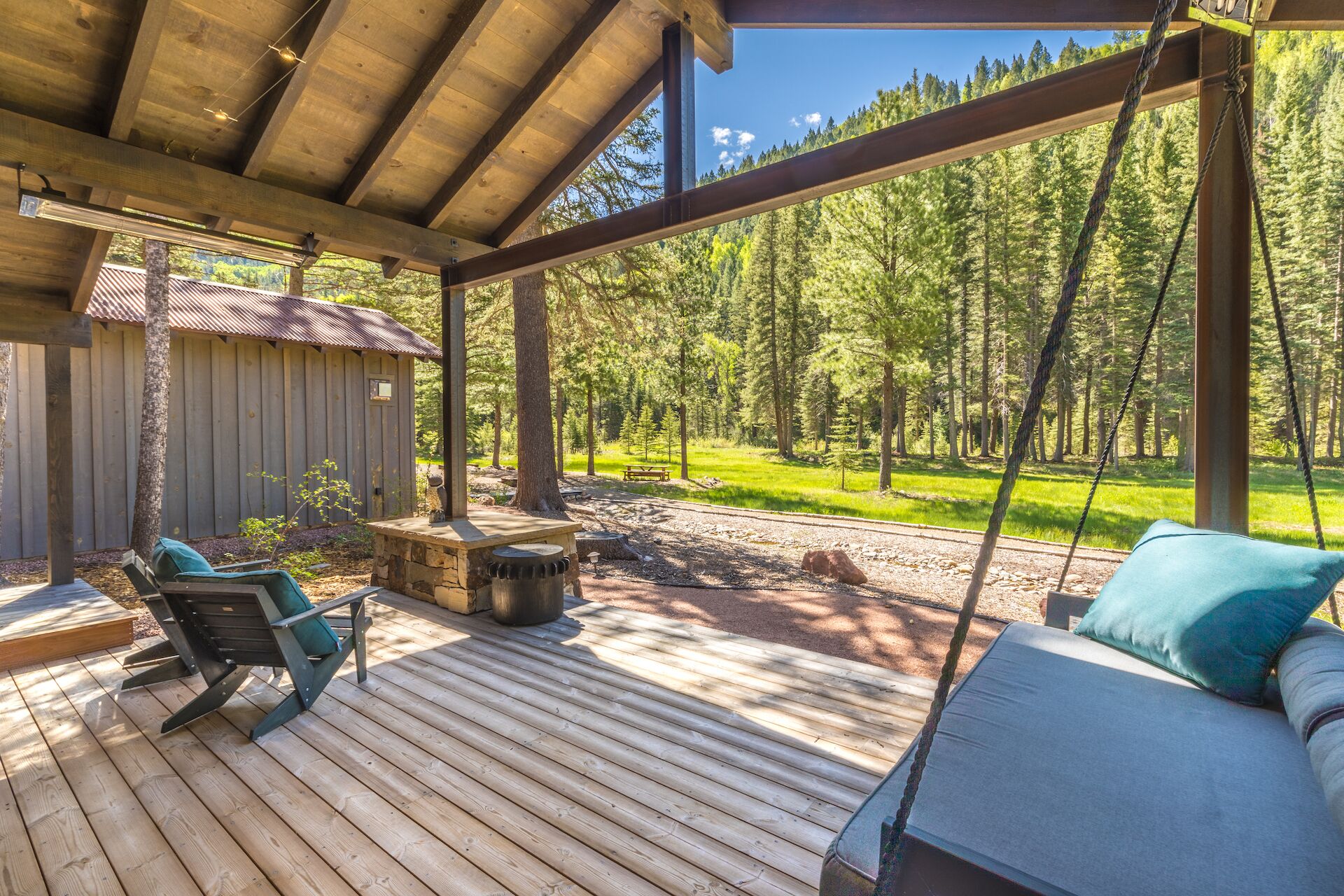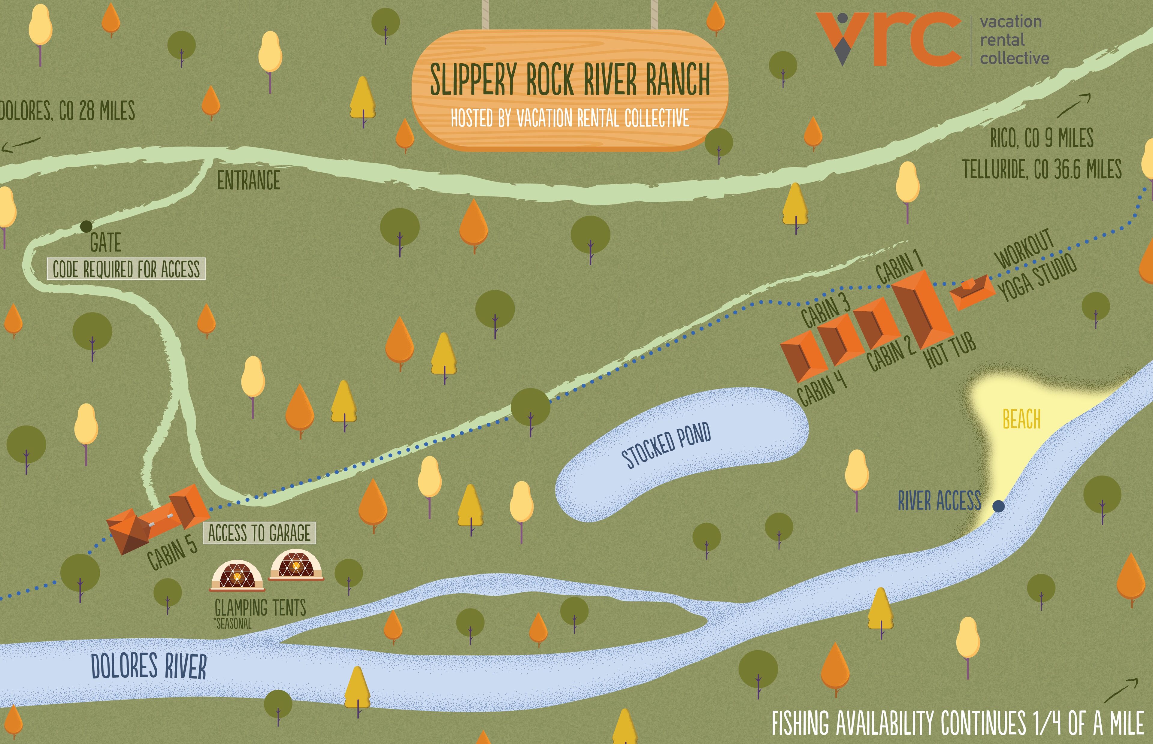 Secluded Luxury Nature Retreat- Private Cabins-Hot Tub-Fly Fishing-Sleeps 10 * Book Today for Only $300 Down at the Time of Booking *Nestled beside the scenic Dolores River, Slippery Rock River Ranch offers access to 40 acres of stunning Colorado wilderness and luxury lodging. This secluded mountain retreat is elevated by bright, airy accommodations that blend modern design with rustic details inspired by the rugged landscape and its storied American past.The Ranch’s sprawling property is easy to navigate with gravel pathways connecting three distinctly-styled contemporary cabins and a private apartment at varying distances from the main lodge. The main gathering lodge (no sleeping accommodations) features a gourmet kitchen with chef grade gas range, convention oven, microwave, two full-size refrigerators and two dishwashers. Prepare your favorite meal or hire a private chef to do the cooking for you and relax at the ultra comfortable formal dining table. After dinner retreat to the loft game room or the back deck with overhead electric heaters and standing heaters. Step off of the back deck to play a round of horse shoes or corn hole. Or sink into the private outdoor hot tub and soak under the stars. After a full day of adventure and an evening gathering with friends and/or family retreat back to your contemporary ultra-cozy cabin and elegant riverside apartment, complete with a gas fireplaces in all three cabins, full bathrooms, Keurig's and walk-in showers. During the summer, glamping tents are available for day use for those who desire a closer relationship to nature while enjoying a dedicated bathroom and all the amenities accessible at the main lodge.. The on-site workout studio offers free weights and yoga mats. Guests are welcome to exercise inside the studio or stretch out on the expansive deck. *Please note: the glamping tents are not available until after the spring mountain runoff concludes; typically by the beginning of July, snowpack levels permitting.With the Dolores River’s well-deserved reputation for trout fishing and rich hatches from mid-June to late October, there is ample opportunity for fly fishing right outside our front door. Looking for an off-property adventure? Explore the ancient cliff dwellings at Mesa Verde National Park, relax in the healing waters of Dunton Hot Springs, or head north to Telluride for gondola rides and world-class skiing, all under an hour away.Bed Configuration:Cabin 2: Queen Bed (Sleeps 2 - 1st Floor) with a gas fireplace, ceiling fan, walk-in shower, and KeurigCabin 3: Queen Bed (Sleeps 2 - 1st Floor) with a gas fireplace, ceiling fan, walk-in shower, and KeurigCabin 4: Queen Bed & Two Twin Beds (Sleeps 4 - 2nd Floor) with a gas fireplace, mini fridge, Keurig, and two walk-in showers and toiletsCabin 5: King Bed (Sleeps 2 - 2nd Floor) with an apartment kitchen including a mini fridge, microwave, two burner stove, sink, and Keurig.This home is pet-friendly. up to 2 well-behaved dogs welcome. Pet fee $40.00, per night/$250.00 max. Please confirm traveling with a dog(s) at time of booking. Review and follow the Pet Policy.Book at least a week and a 10% discount is automatically applied (Excludes Christmas/New Years).Cancellation Policy: Non-refundable payment of $300 required at time of booking. $300 payment is applied toward the total amount due and is only refundable within 72 hours of the time of the booking is made. If arrival date is within 30 days of booking, payment in full is required at the time of booking. Cancellations/changes to stay dates, including changes that result in a shortened stay, are not permitted within 30 days of arrival; any such changes will result in a penalty. Cancellations or changes made within thirty (30) days of the arrival date, forfeit the entire reservation amount while cancellations made more than thirty (30) days in advance of your arrival only forfeit $300 deposit. Reservations of at least thirty (30) nights, cancellation policy increases to sixty (60) days prior to the arrival date. Travel insurance is offered.
