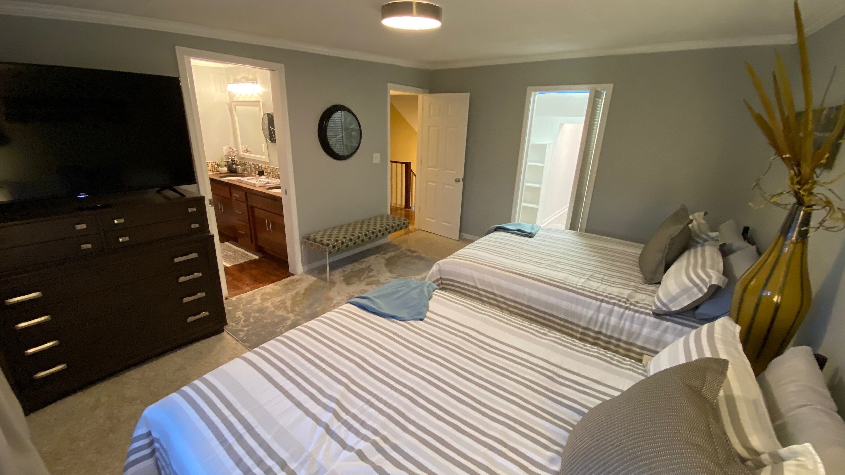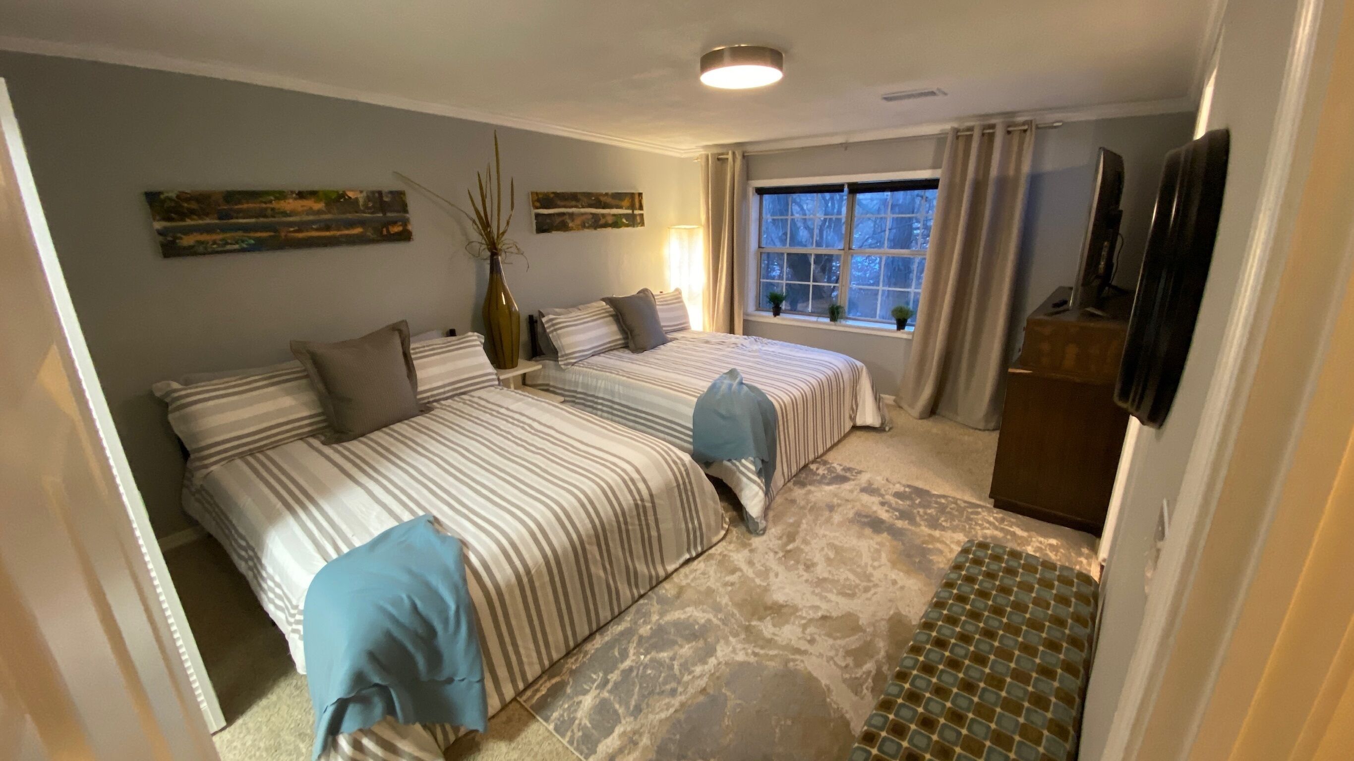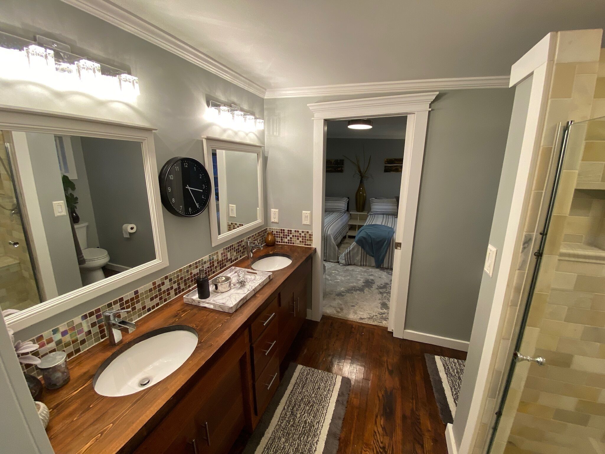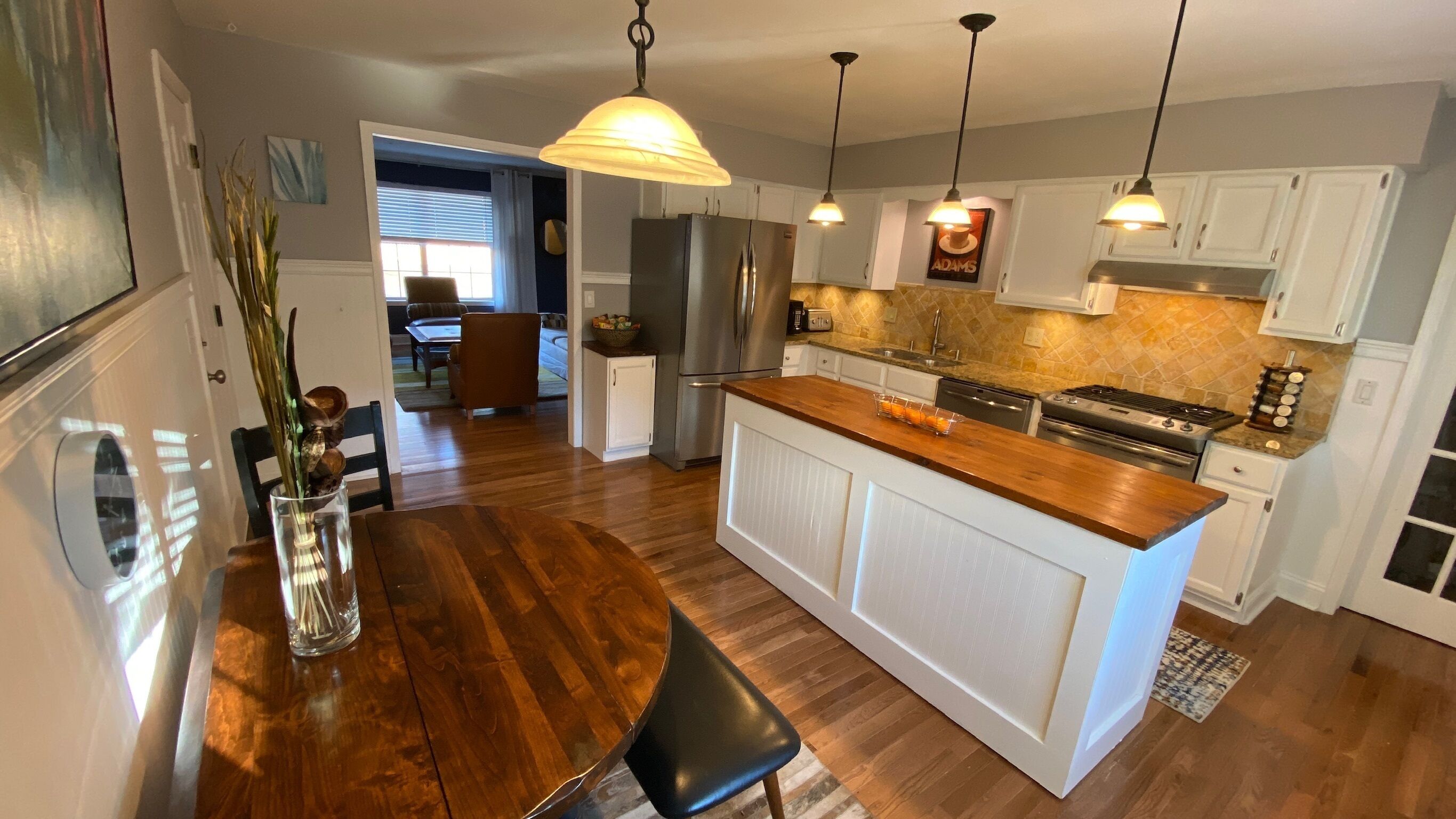 Look No Further! Cool Cape Cod-3 BR-2.5 Bath Relax and have fun with family and friends at this newly renovated, stylish Cape Cod (CC).22 mins to downtown KC; 12 to Garmin Olathe Soccer Complex; 28 to the Truman Sports Complex; 14 mins to OP Convention Center.Gourmet kitchen; linens & toiletries; 1st floor Master with ensuite full bath.On a secluded lot; covered backyard porch. Shops, entertainment, theaters and restaurants in walking distance at 119th and Blackbob.Driveway parking for four vehicles. Pets welcome.