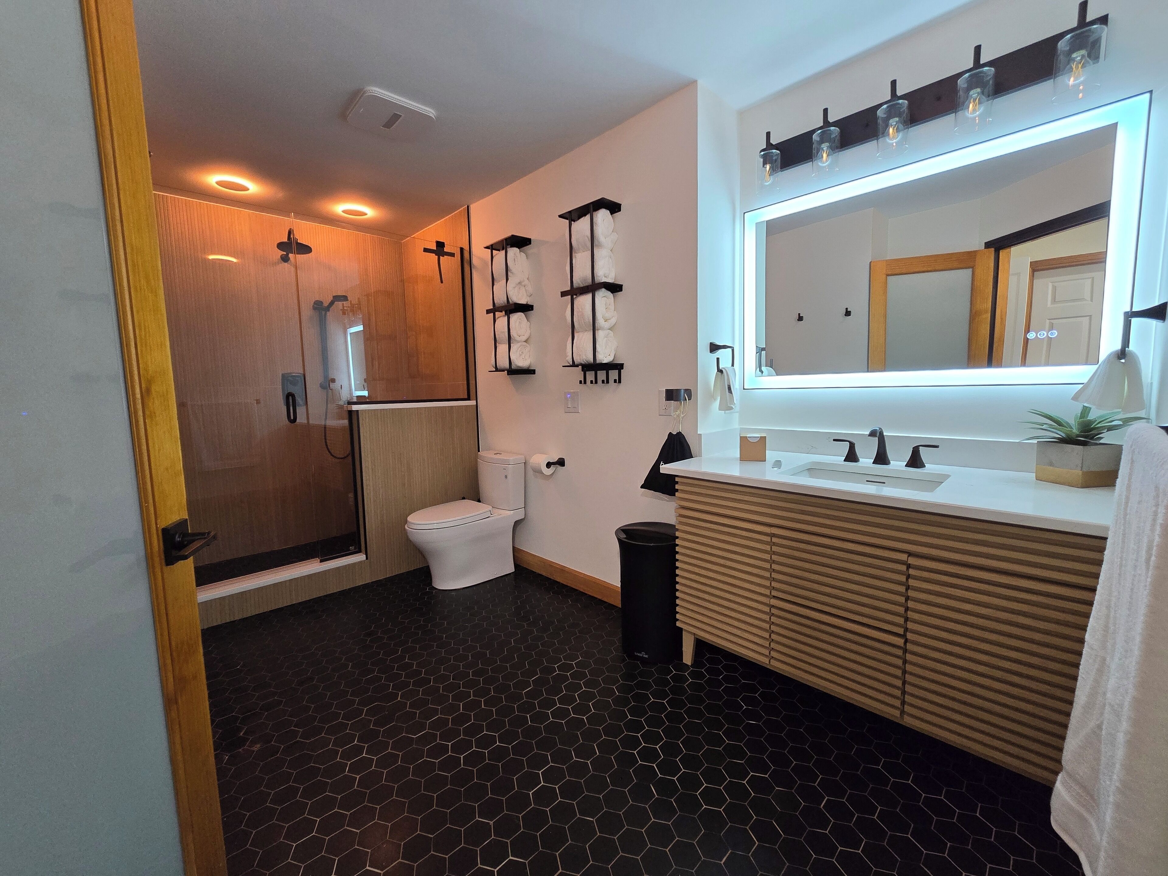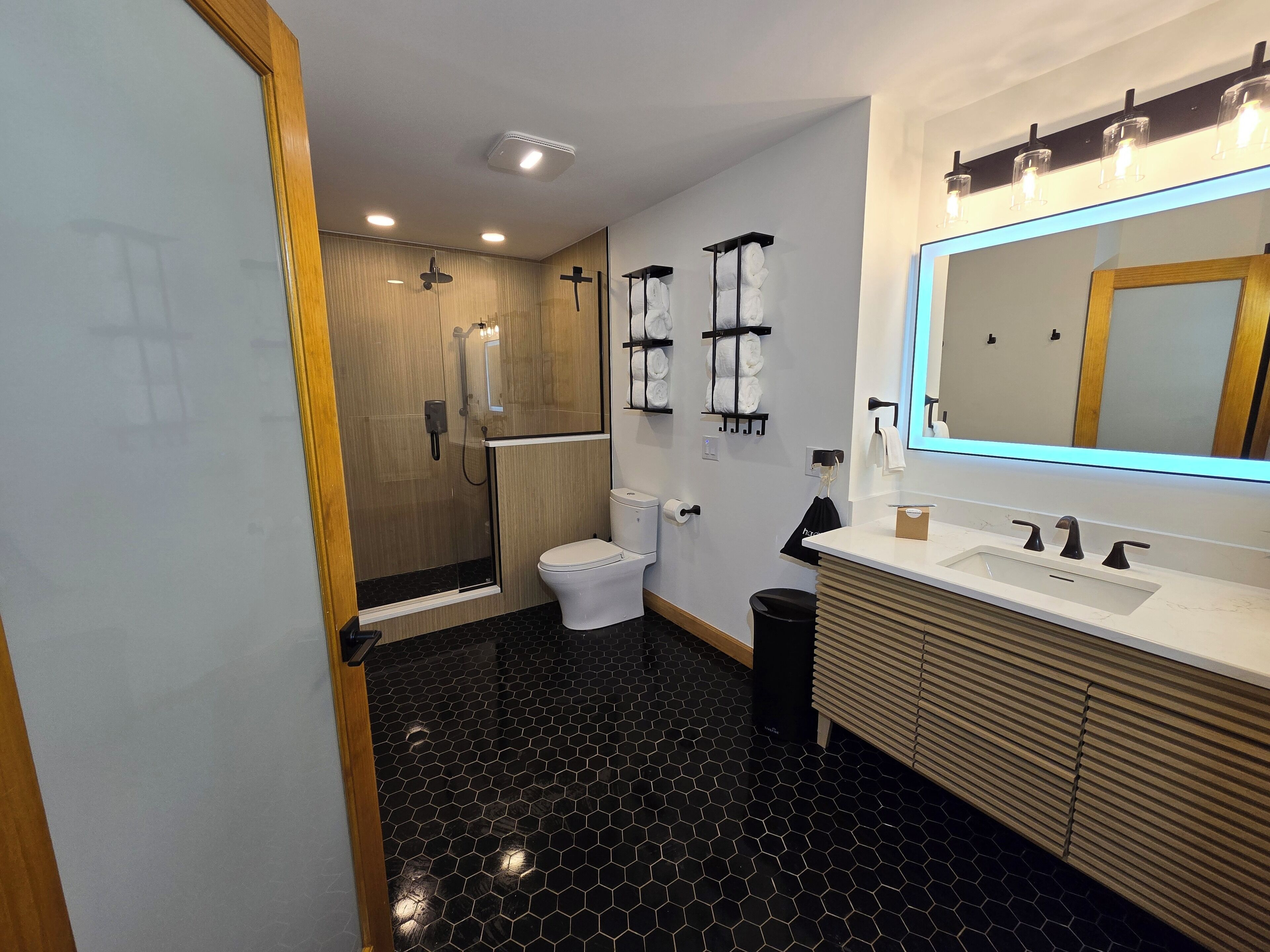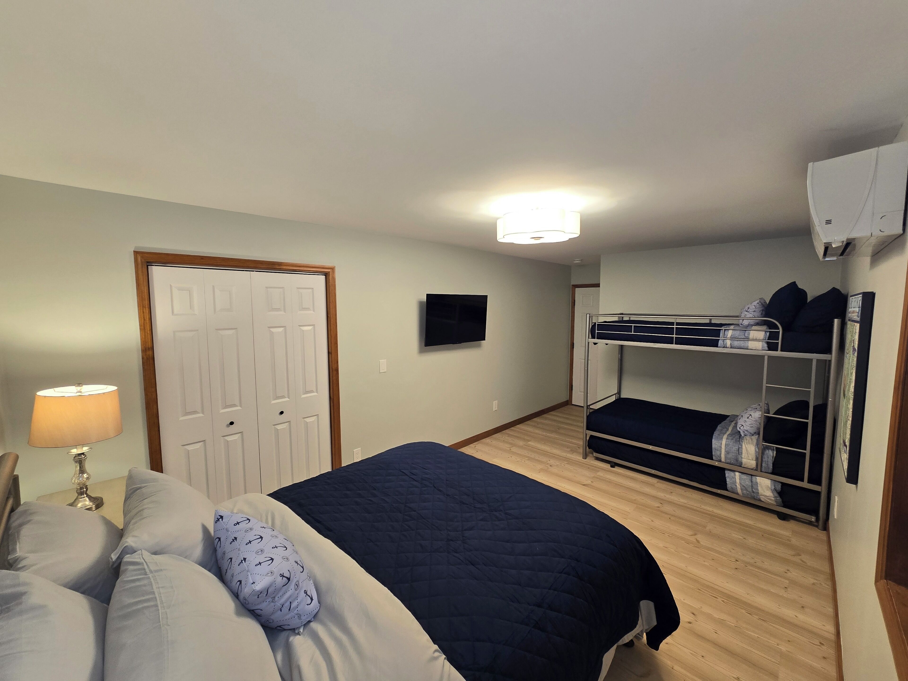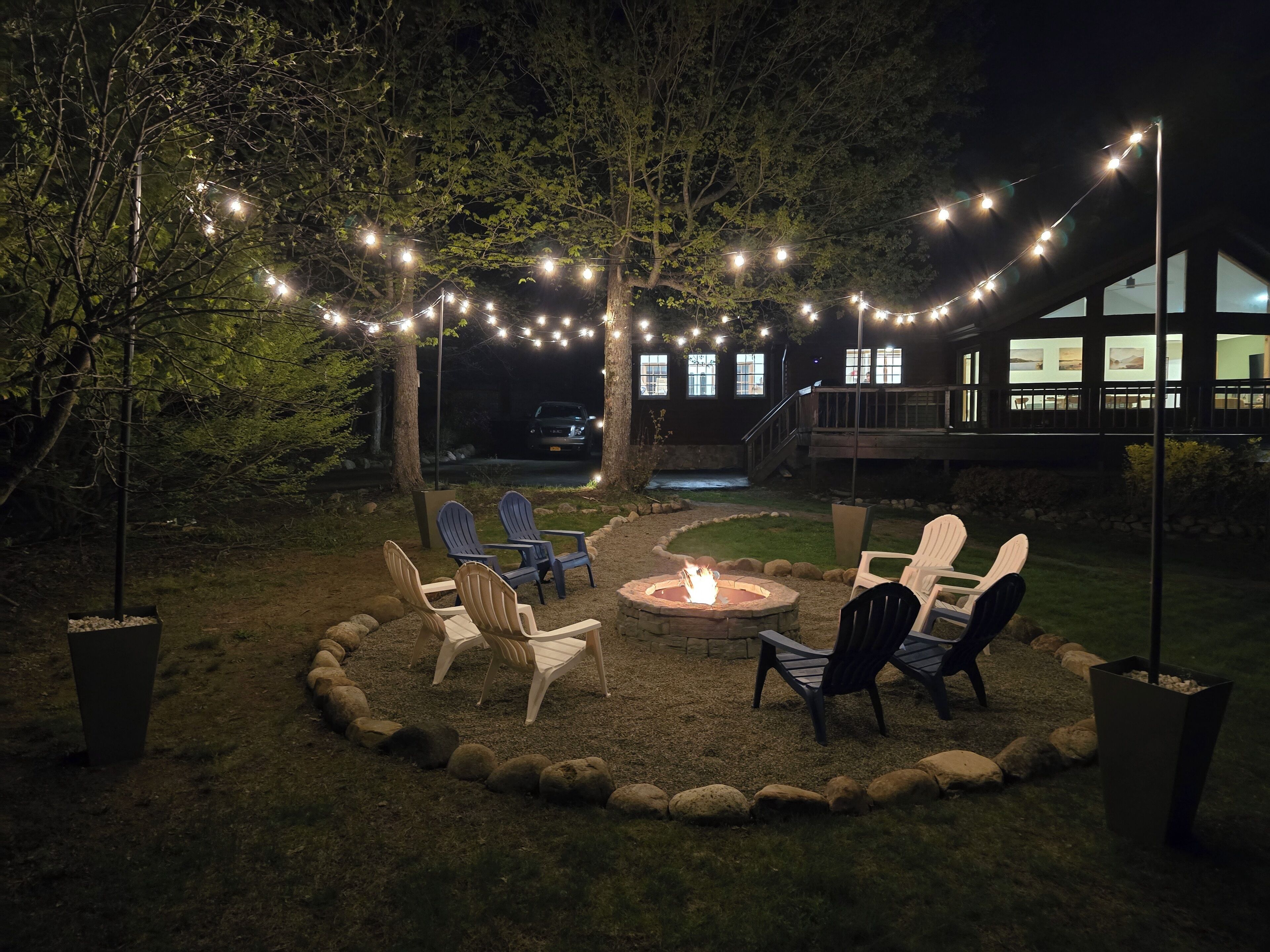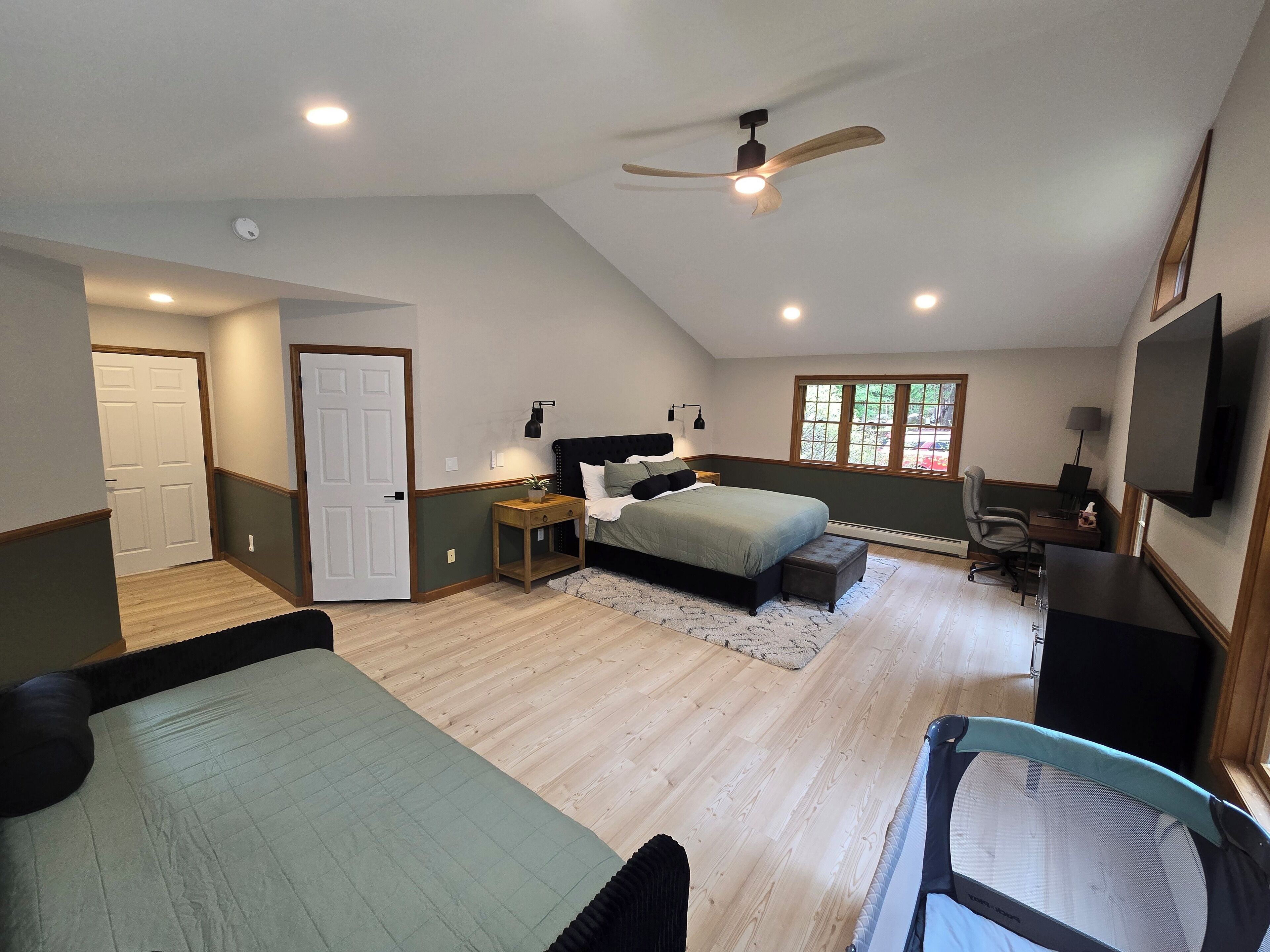 Pool Arcade Mtn Views Lake George Home Retreat WFH Welcome to Lake George Home Retreat (@LakeGeorgeHomeRetreat), a chalet style cabin nestled in the Adirondack mountains. A thoughtfully renovated home, sleeping 11 and designed to be the ultimate family destination for every season. We invite you to recharge and savor the delights a slower pace of life offers.✔ Just over 3 hours from NYC✔ Heated Inground pool✔ Outdoor fire pit with bistro lights✔ Basement arcade and projector theater✔ High Speed wifi✔ Smart TV in every bedroom✔ High end mattresses✔ Games, records & puzzles✔ Outdoor dining area w/ propane grill13 mins → Prospect Mountain21 mins → West Mountain30 mins → Gore Mountain14 mins → Lake George Steamboat Company 15 mins → Million Dollar Beach15 mins → Six Flags Great Escape18 mins →The SagamoreThe spaceMake yourself at home in this fully renovated three bedroom house. Every space was designed with intention, taking elements from its natural surroundings. Enjoy our grand living space– kitchen, dining and living room all flow from one to the next as natural sunlight fills every space. Welcome mornings from our expansive deck and close out nights listening to classics on the record player as you take in magnificent sunsets. Retreat to our basement game room and theater to play poker or classic arcade games. Our plush beds and spa like bathrooms invite you to recharge for the next day. Make a day in our backyard with a heated inground pool, grilling and firepit, or plan a day out with all that the Adironadacks has to offer. We’re minutes from hiking, boating, breweries and shopping, or explore further to Saratoga.Other amenities:➪ For families -Bassinet + high chair + Pack n Play + tamper resistant outlets + dollhouse/toys➪ Onsite washer + dryer➪ Ductless heating/cooling units and smart TV’s in every room➪ Dedicated working area➪ Fully stocked kitchen + 5 mins from supermarkets➪ Grandiose basement with projector and sofa recliners, arcade, poker table + game table➪ Backyard entertainment: life-sized Connect Four, Jenga, cornhole➪ Fire Pit + Seating Area➪ Spa-like bathroom with towel warmer, ambient lighting and heated floors➪ Self check-inGuest accessEntire space is included in this rental. Except for desginated owners closet and basement storage closets. Please, make yourself at home.If you are coming during winter or on snowy days, please consider driving a 4WD or AWD.Other things to notePlease remember that you're staying in a family house, not a hotel. We ask that you treat the space with the respect you would show your own home. If any problems arise, we will do our best to take action ASAP, but there is no one living on site 24/7.As an insurance company requirement, we request all guests to provide government issued IDs prior to check in.