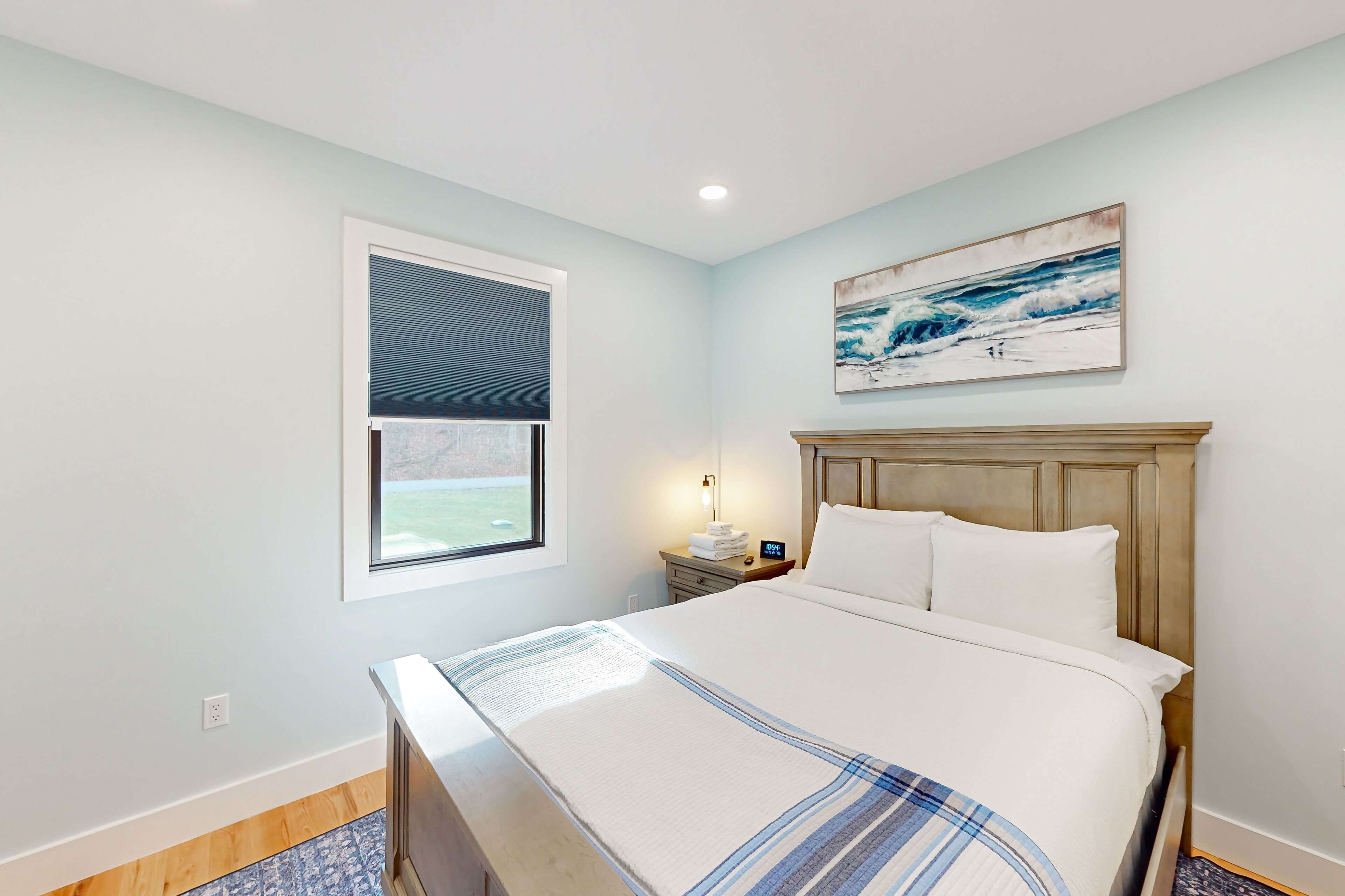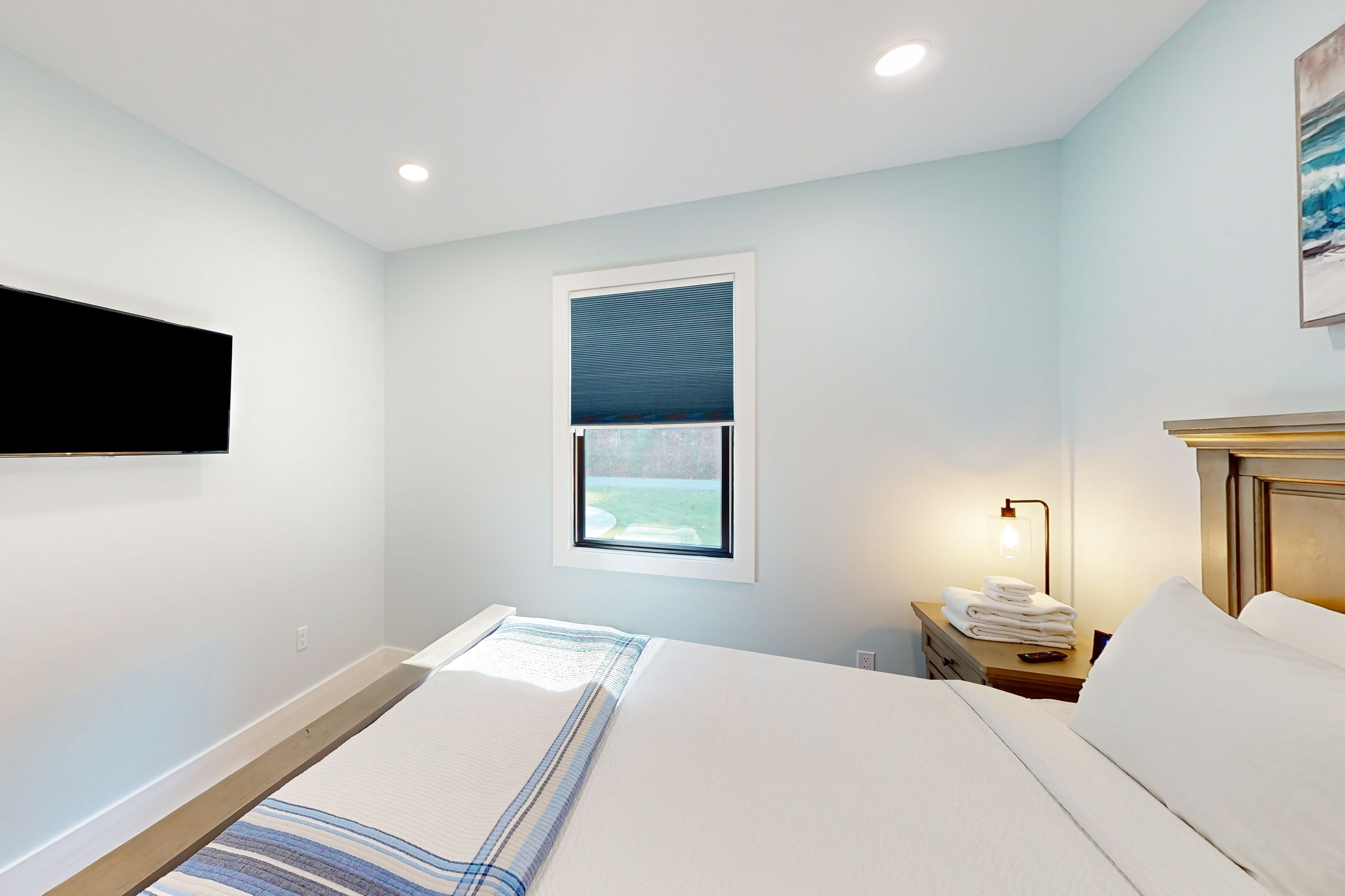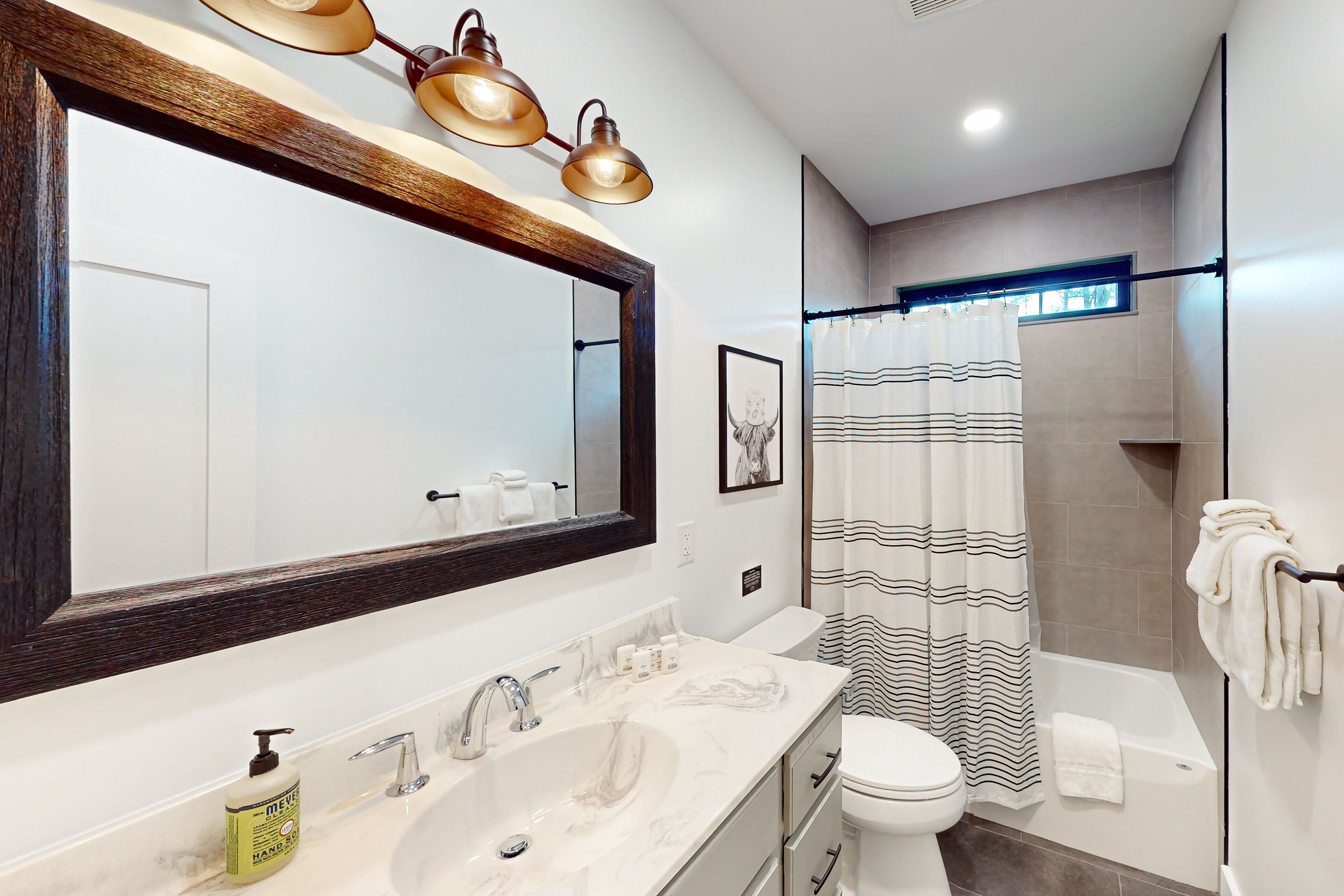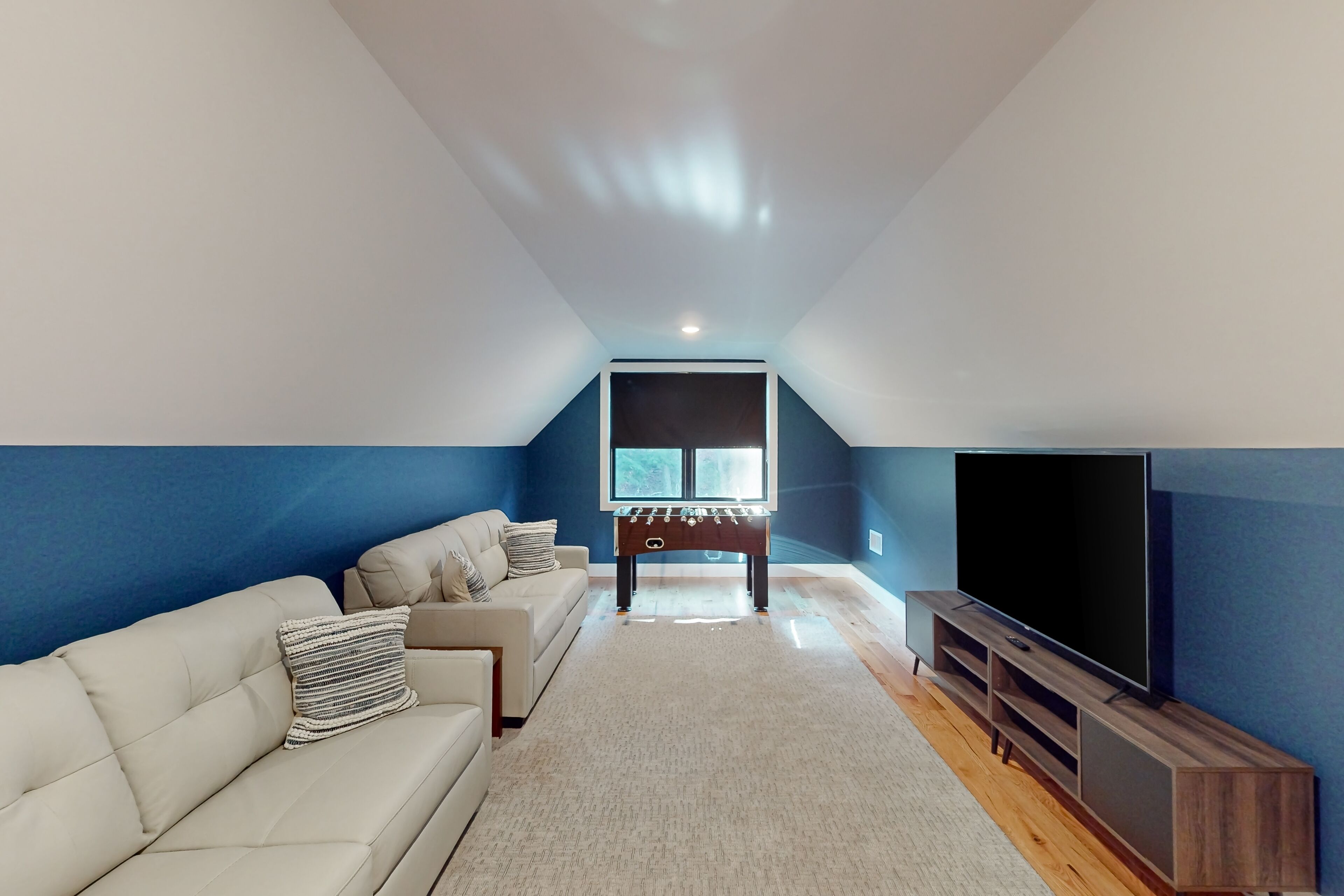 Newly built home with covered decks, large yard- great location Lake George GetawayOur calendar is updated in real-time & our nightly rates are accurately displayed. Simply enter your desired dates and click 'Book Now!'Nestled amidst a tranquil wooded landscape, this newly built home exudes an aura of serenity and privacy. Create lasting memories while preparing gourmet meals on the gas stove/oven. This well-equipped kitchen gleams with its farmhouse sink, stainless steel appliances, Keurig coffee machine, spacious center island, and other amenities.Take in the views from the top balcony or just relax on the outdoor furniture provided on both covered patios. Nearby, discover a world of exciting attractions, including breathtaking views of Lake George and Million Dollar Beach, mini golf courses, parasailing, boat rentals, fabulous restaurants, and plenty of shopping! Fort William Henry Historical Fortress & Museum and Prospect Mountain are within a mile's drive. Gore Mountain and West Mountain offer fantastic skiing for winter enthusiasts and are just a short drive away. Don't forget to book tickets for Winter Realms by Ice Castles and Winter's Dreams by Moment Factory.When seeking respite from the outdoors, retreat into your home away from home, where warm modern farmhouse wood finishes, wilderness-inspired décor, and plush furnishings create a welcoming ambience. Gather around the fireplace in the cozy living room for fun-filled family movie nights.Unwind in the primary bedroom, a private sanctuary with an en suite bathroom featuring a large vanity, walk-in shower, and a separate bathtub. Each bedroom provides a comfortable retreat with private smart TVs, soft linens, and central air-conditioning. The family loft boasts a foosball table and an additional smart 65" TV for added entertainment. A large laundry room has a new washer/dryer, and high-speed internet access completes the interior amenities.Embark on scenic hikes amidst breathtaking natural beauty, exploring trails that wind through forests and can lead to hidden waterfalls as you take in all that Lake George and the Adirondacks offer.Here is an opportunity to be one of the first guests to stay in this entirely brand-new home that offers a harmonious blend of tranquility, adventure, and spacious and clean amenities, making it the perfect destination for creating unforgettable memories.Things to KnowCheck-in time: 4:00 PM.Check-out time: 10:00 AM.All guests shall abide by Vacasa’s good neighbor policy and shall not engage in illegal activity. Quiet hours are from 10:00 PM to 8:00 AM.No smoking is permitted anywhere on the premises.Parking notes: There is free parking available for 6 vehicles.Security camera details: At exterior entries and garage, facing outwards.Damage waiver: The total cost of your reservation for this Property includes a nightly damage waiver fee, plus tax if applicable (the “Damage Waiver”). (A discount may be applied for stays of 28 nights or longer, if permitted.) The Damage Waiver covers you for up to $3,000 of accidental damage to the Property or its contents (such as furniture, fixtures, and appliances) as long as you report the incident to the host prior to checking out. The Damage Waiver fee eliminates the need for a traditional security deposit.More information can be downloaded from the "Rental Agreement" on the checkout page.Due to local laws or HOA requirements, guests must be at least 21 years of age to book. Guests under 21 must be accompanied by a parent or legal guardian for the duration of the reservation.