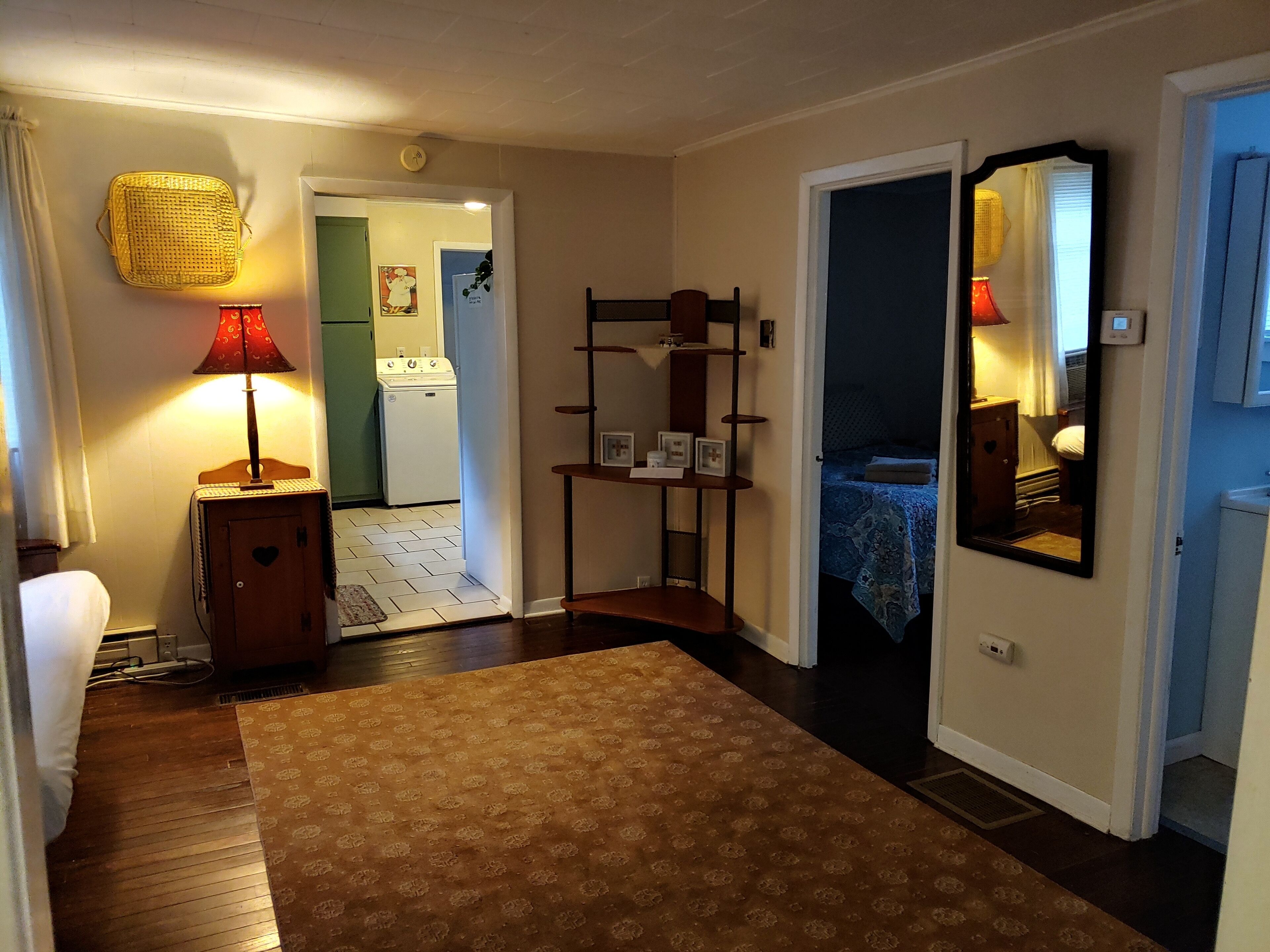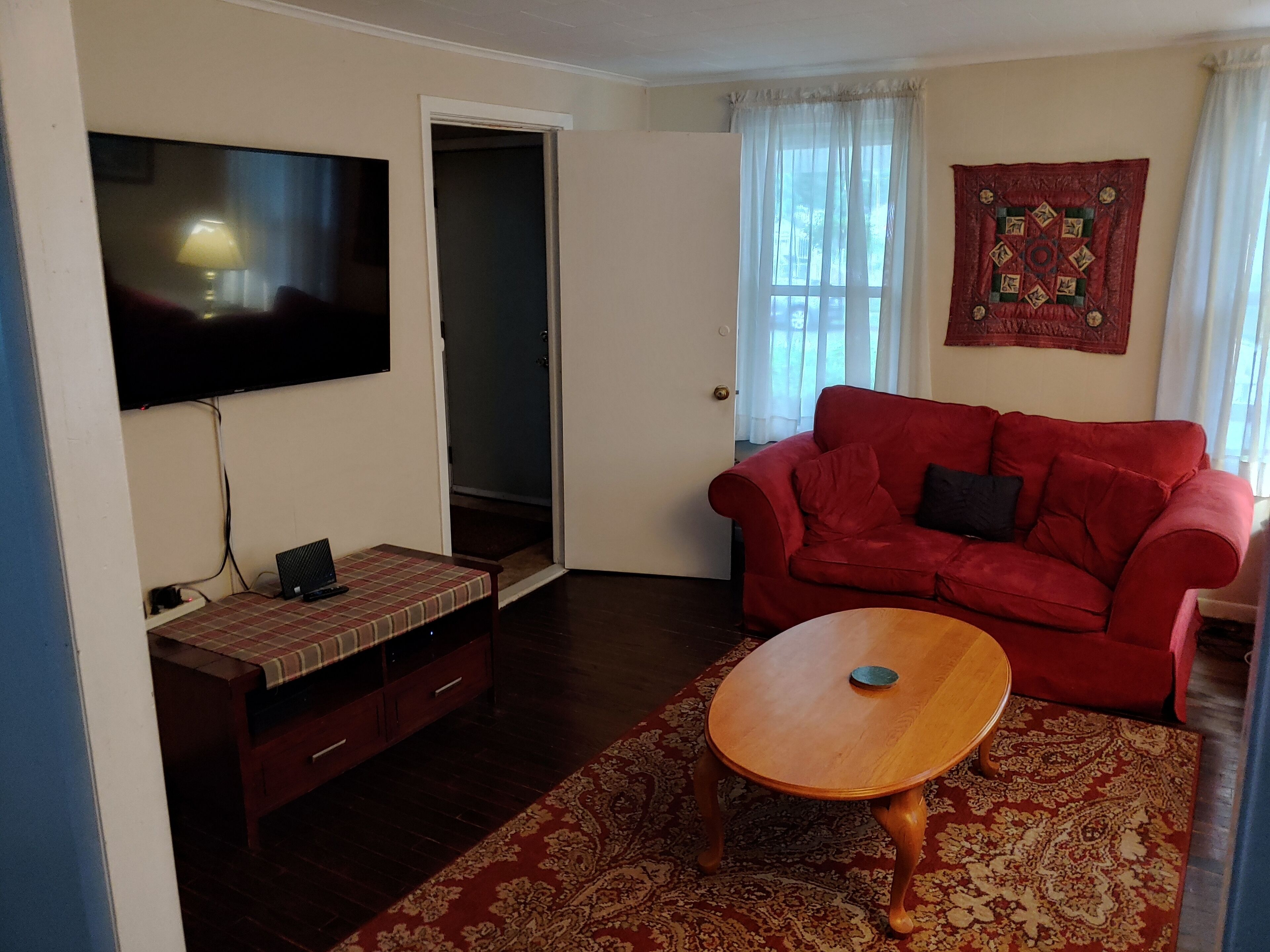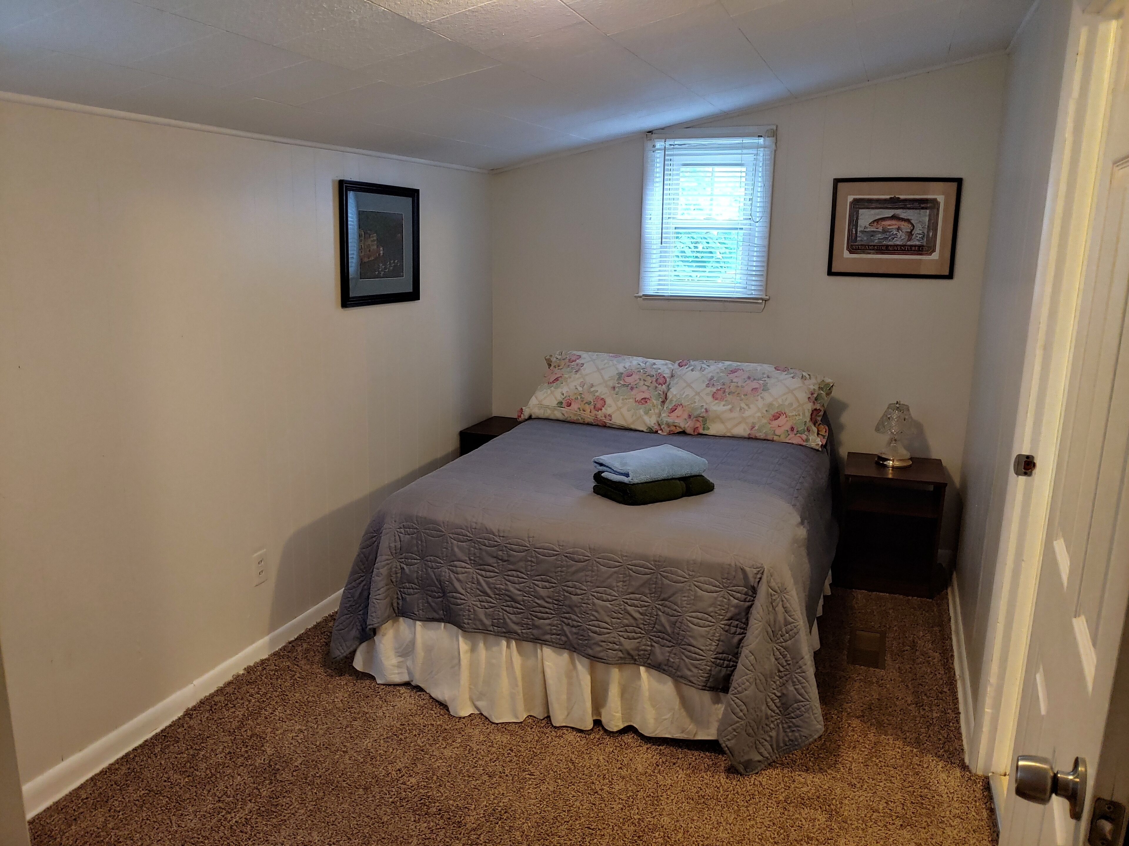 Perfectly located in the center of town. Walk to everything! Our wonderful rental property is located in the absolutely most ideal location in Lake George Village. Its just around the corner to the busiest block of Canada Street. The arcade is so close the kids can walk there without crossing the street. Shepards Park Beach is just on the other side of Canada Street where you can picnic, use the playground, sit on the beach and swim. There are also concerts held in the park. Restaurants and nightlife are all within walking distance. If you feel like exploring there are many activities in the area including hiking, The Great Escape, boat rentals, mini golf, etc. We will do our best to help you find activities that fit your needs.The house is 2 floors and the configuration is great. The downstairs has a full kitchen, 2 bedrooms each with a double bed, laundry and a bathroom. The living room has 2 couches (one of which is a pullout), and a large roku smart tv with cable. There is also a sitting room with a futon and a small computer desk with wifi. The upstairs has a separate entrance but is connected through the living room. The door can also be closed and locked which would be perfect for separate living spaces for 2 families, etc. Upstairs you will find 2 bedrooms one with queen and one with a double, a small living room with futon with a small tv with roku and cable, and small kitchenette and bath. The kitchen does not have a stove upstairs but there is a small refrigerator, sink and microwave. Outside the front door there is a large covered porch. On the side of the house there are 2 decks, one covered one uncovered. All are large enough for a few chairs to lounge around on. There is parking for 3 cars but you could probably squeeze in 4 if necessary. There is also a grill outside for your use. Linens and towels are provided but there is no daily housekeeping service.