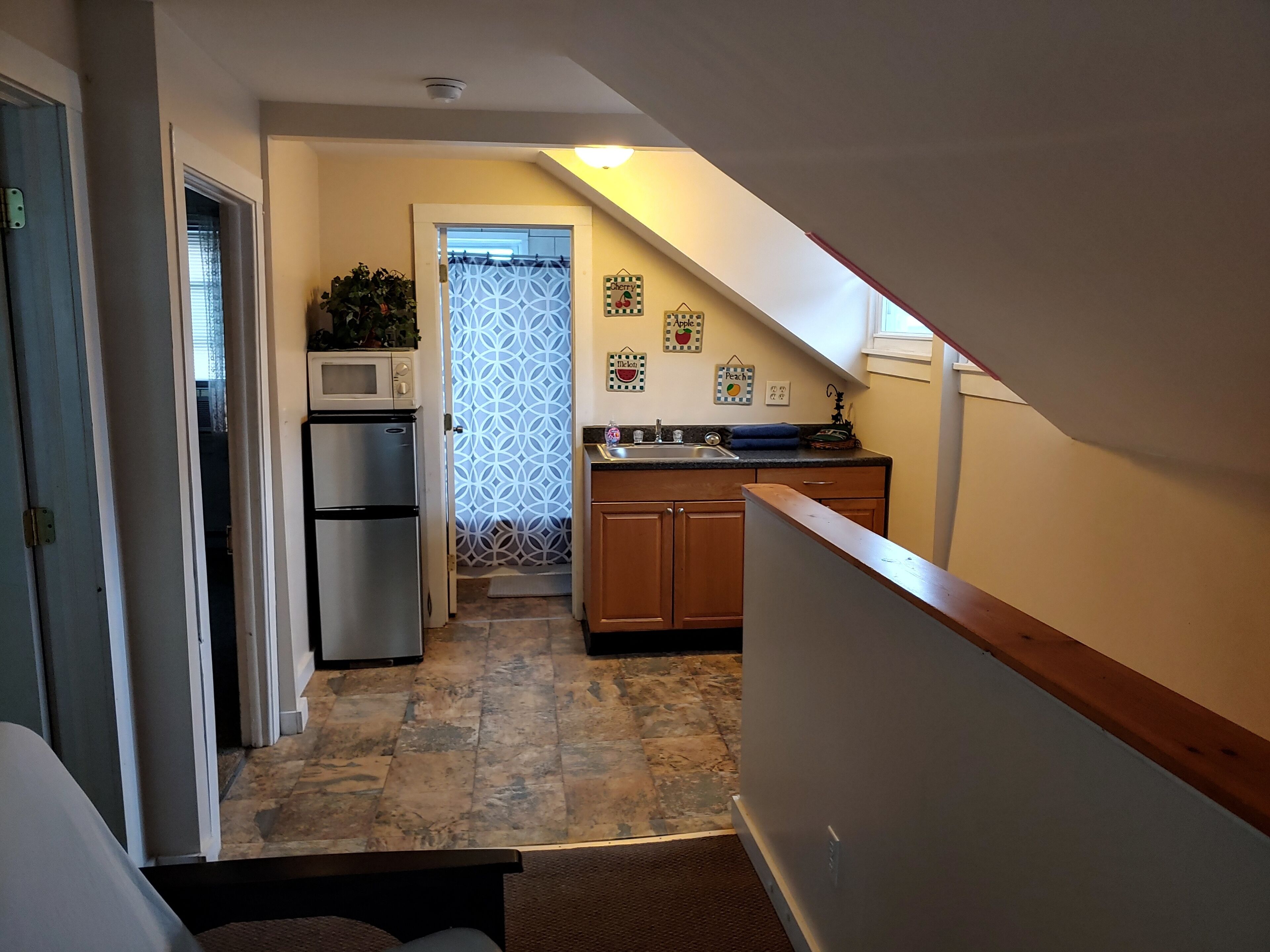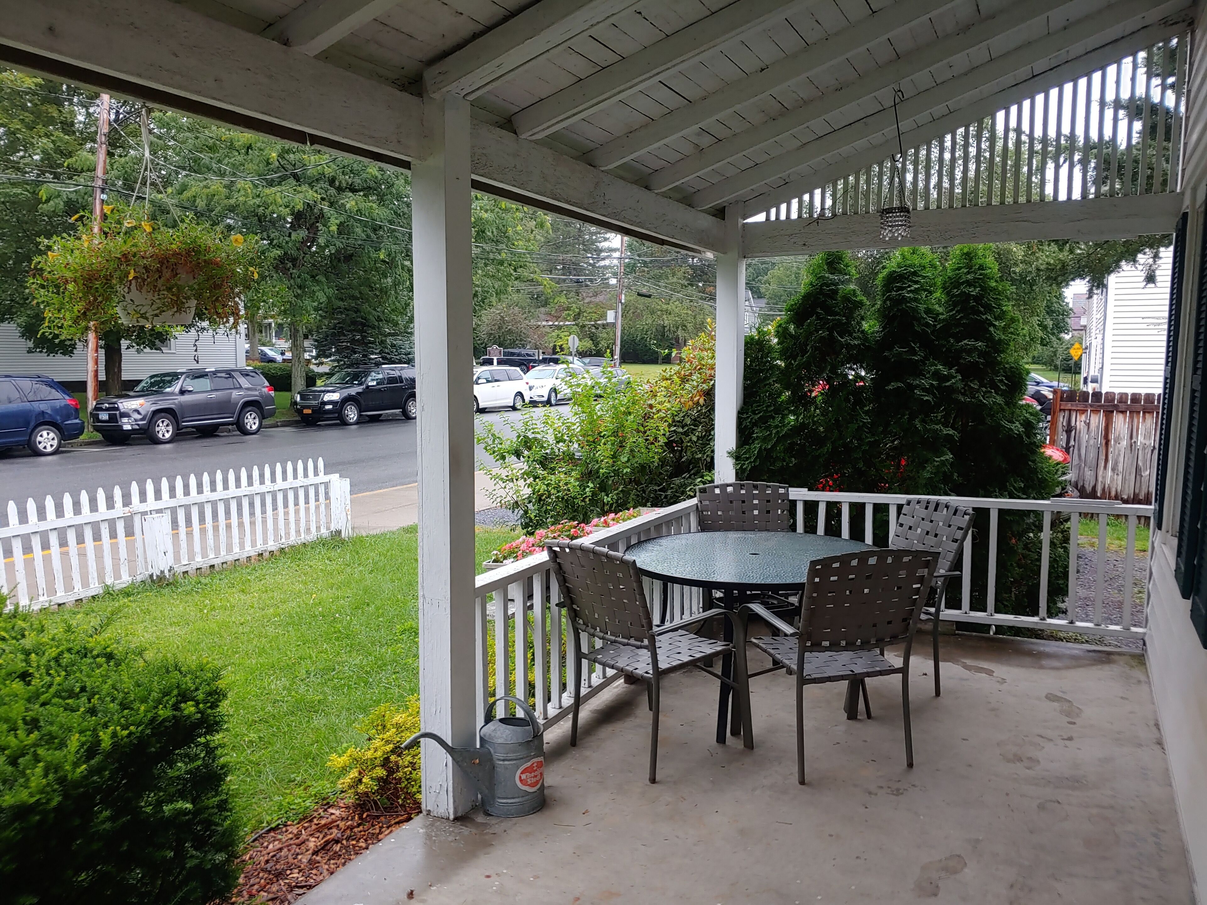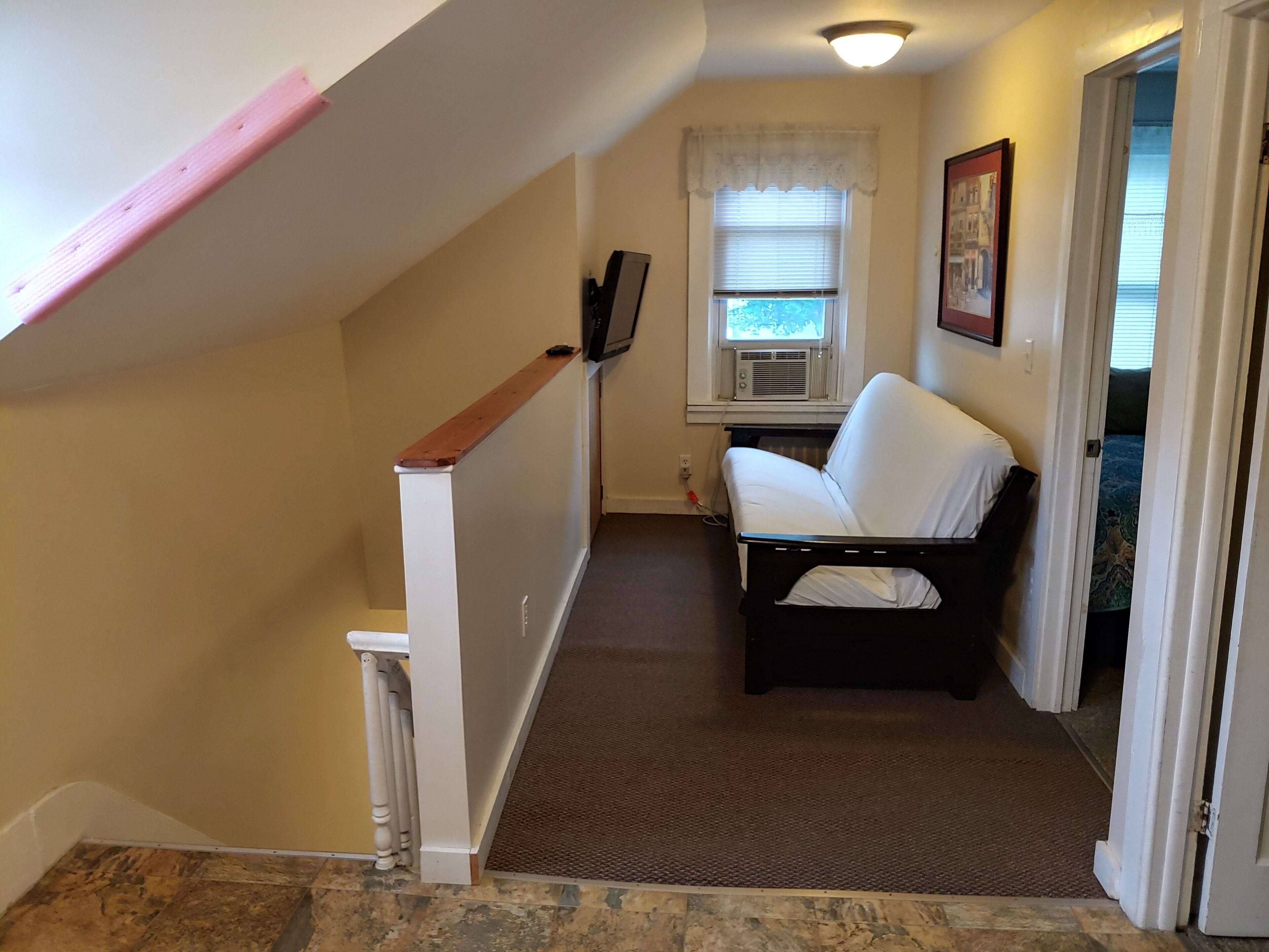 Perfectly located in the center of town. Walk to everything! Our wonderful rental property is located in the absolutely most ideal location in Lake George Village. Its just around the corner to the busiest block of Canada Street. The arcade is so close the kids can walk there without crossing the street. Shepards Park Beach is just on the other side of Canada Street where you can picnic, use the playground, sit on the beach and swim. There are also concerts held in the park. Restaurants and nightlife are all within walking distance. If you feel like exploring there are many activities in the area including hiking, The Great Escape, boat rentals, mini golf, etc. We will do our best to help you find activities that fit your needs.The house is 2 floors and the configuration is great. The downstairs has a full kitchen, 2 bedrooms each with a double bed, laundry and a bathroom. The living room has 2 couches (one of which is a pullout), and a large roku smart tv with cable. There is also a sitting room with a futon and a small computer desk with wifi. The upstairs has a separate entrance but is connected through the living room. The door can also be closed and locked which would be perfect for separate living spaces for 2 families, etc. Upstairs you will find 2 bedrooms one with queen and one with a double, a small living room with futon with a small tv with roku and cable, and small kitchenette and bath. The kitchen does not have a stove upstairs but there is a small refrigerator, sink and microwave. Outside the front door there is a large covered porch. On the side of the house there are 2 decks, one covered one uncovered. All are large enough for a few chairs to lounge around on. There is parking for 3 cars but you could probably squeeze in 4 if necessary. There is also a grill outside for your use. Linens and towels are provided but there is no daily housekeeping service.