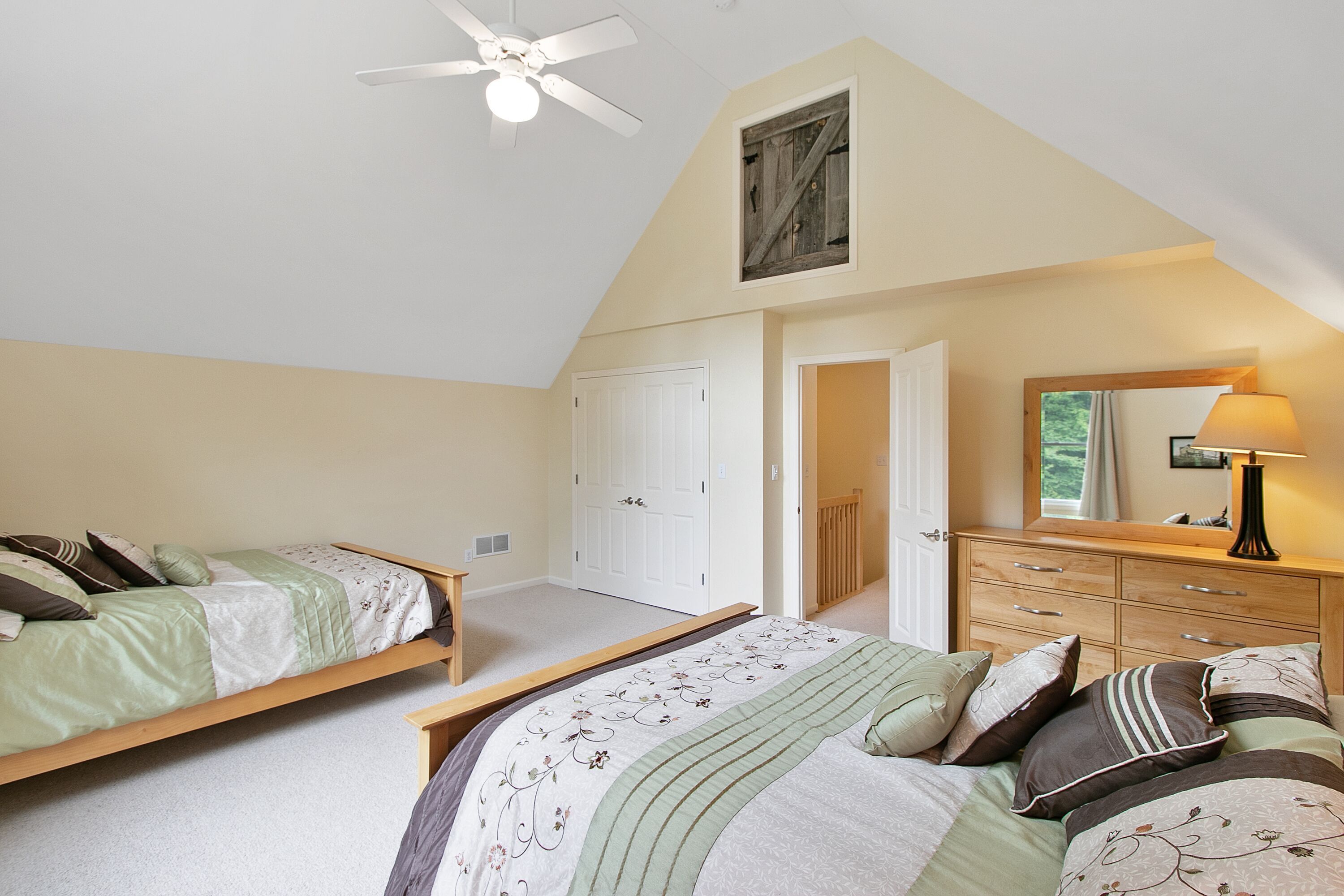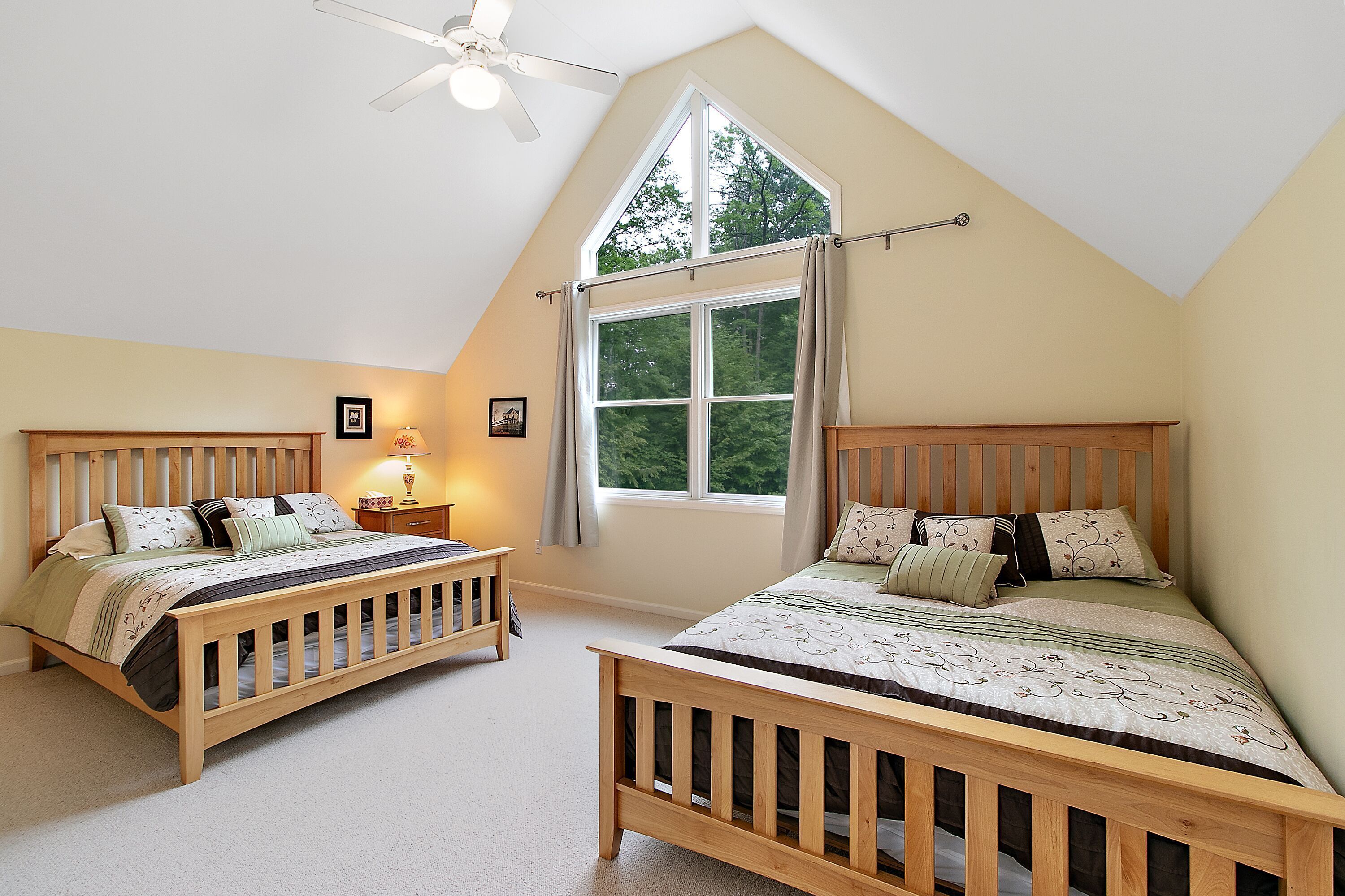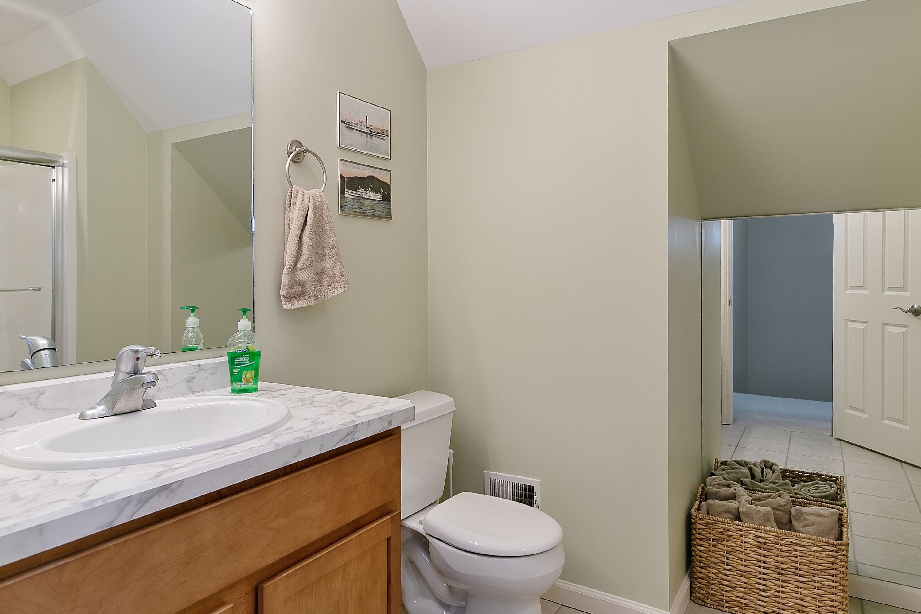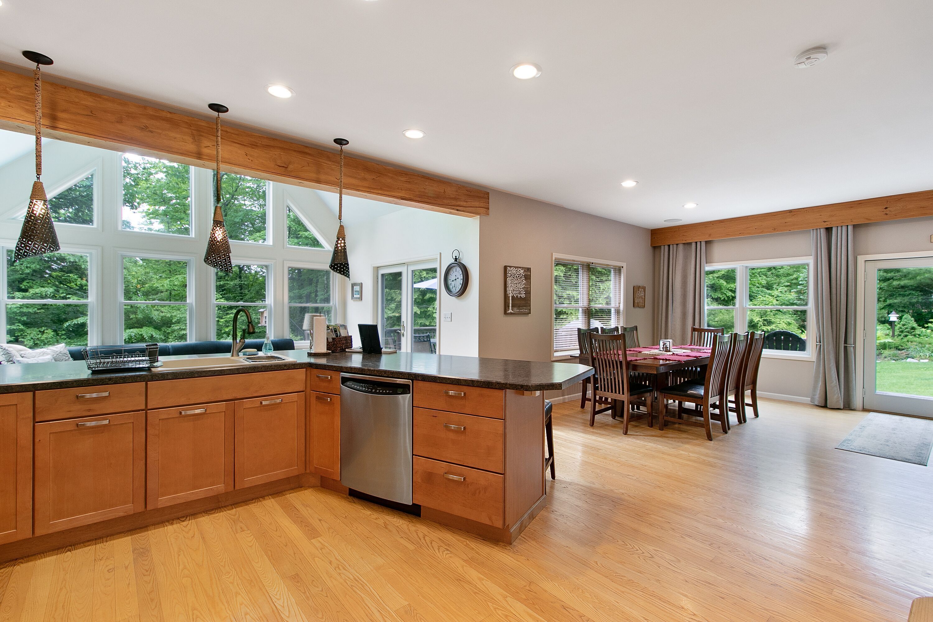 Lake George Mountain Retreat - Family And Pet Friendly *** SPECIAL OFFER *** Stay 8/16/24 - 8/22/24 minimum of 3 nights for $400 per night. Summer is typically a 7 night minimum at a rate of $450 per night *****Enjoy the best of both worlds! Experience a scenic, peaceful, private setting in the Adirondack mountains along with all the benefits of modern amenities (like Wifi and central air conditioning) and proximity to local Lake George attractions.Quickly access multiple beaches and water activities within a 5 to 10- minute drive. Delight in the hustle and bustle of Lake George Village just 1 mile away, or the slower pace of the quaint town of Bolton Landing in a 15 min car ride. Indoor and outdoor water parks, mini golf, amusement parks, horseback riding and more are all in your back yard. Serious shoppers, reach the Factory Outlets of Lake George in 15 minutes. Saratoga Springs and Gore Mountain are just a half an hour away.At home, relax on the 850 square foot wrap-around deck or huddle around the fire pit in this tranquil Adirondack paradise with a large yard surrounded by woods, providing a natural curtain for privacy. Hungry? Fire up the 4-burner gas grill and enjoy dinner on the patio set. Indoors, an open floor plan fosters quality time with family, friends and pets too! You will love the all-glass vaulted sunroom with a large sectional couch and wooden accents by local Adirondack artisans. Oversized windows bring the outside in with abundant natural light and full scale views of the landscape. The spacious, fully functioning, contemporary kitchen is a chef’s delight. Adjacent to both the sunroom and dining area, it has an eat-in bar area with plenty of counter space. It comes complete with refrigerator, induction stove, oven, dishwasher, microwave, coffee maker, toaster, blender, cooking utensils, pots and pans as well as service for 10 people. Prefer more formal dining? Set the long, mission-style dining room table with seating for eight.Kick back in the living room on the large reclining sectional sofa in front of a fieldstone gas fireplace. Watch your favorite shows on the 49" Smart LED TV or pipe your favorite tunes throughout the house with the state of the art stereo system. Xbox 360 Kinect, board games and cards are family room essentials, provided for fun-filled game nights. Enjoy a sound sleep on any one of the 5 brand new queen size mattresses/beds. Spoil yourselves in the master bedroom with walk-in closet, private entry to the deck and a full bath with Jacuzzi tub. The 2 additional bedrooms, one of which has a vaulted ceiling, are exceptionally spacious, contain two beds each and share a full bath. All bedrooms are equipped with ceiling fans. An additional half bath and laundry room with washer and dryer are conveniently located on the first floor. Iron and ironing board are provided to satisfy remaining laundry needs. Two car garage and long driveway provide ample guest parking.An idyllic Adirondack vacation awaits you at Lake George!