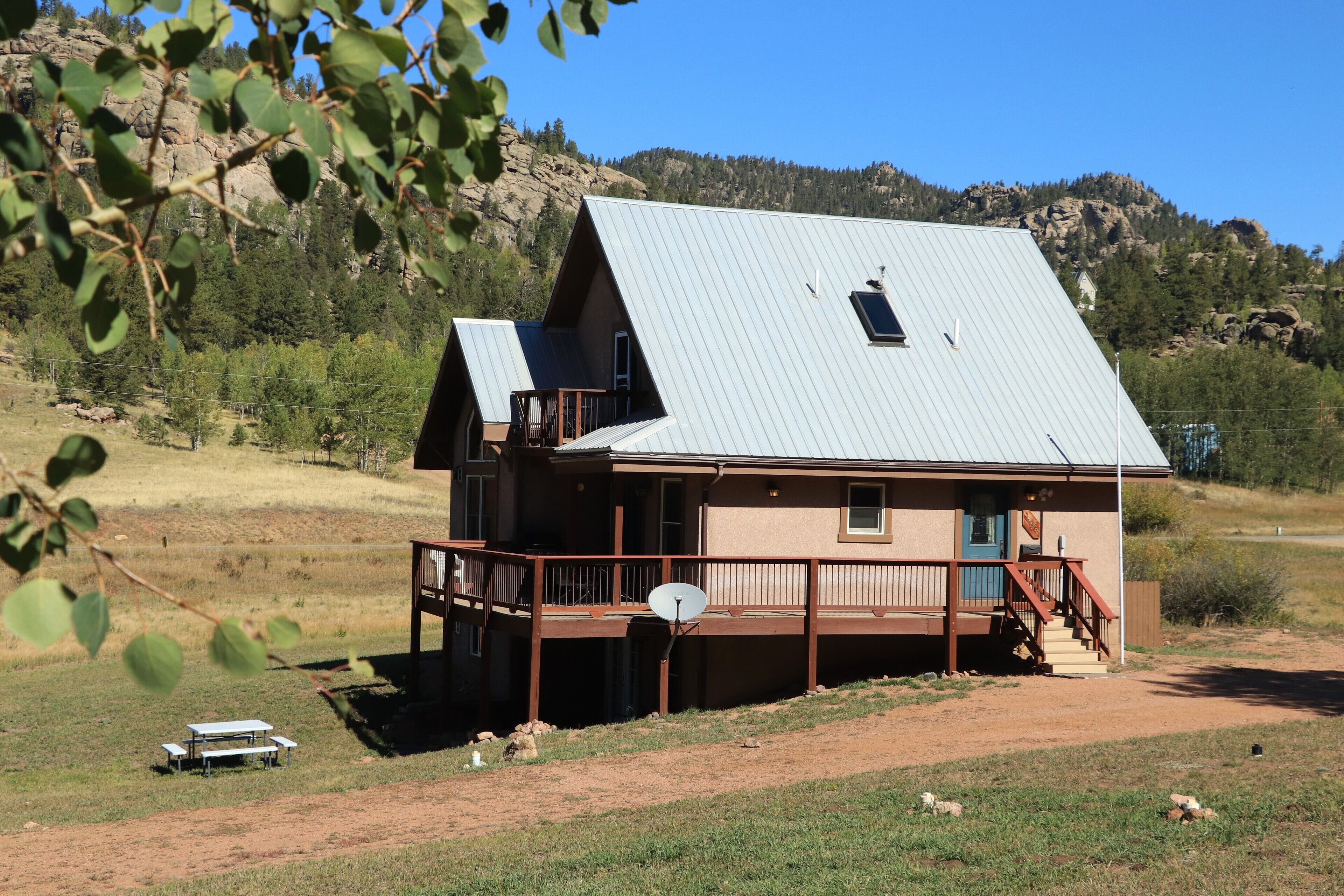 Aspen Grove Mtn Cabin: 4acres, Eleven Mile Village,30min to town, No CLtion Fees COVID-19 Update:In light of the recent COVID-19 outbreak, we are waiving our cancellation policy for any guest affected by the Coronavirus. Plan your summer vacation with confidence, knowing that you will not be penalized if you need to make a last minute change. We, at Property Management Specialists, want you to know that keeping our guests and staff healthy and safe is our absolute top priority. Our fabulous housekeeping staff is being extremely diligent in sanitizing our homes with hospital grade sanitizer. Disinfectant will be available for guest use during their stay as well. We invite you to remove yourself from the concentration of people and come enjoy some quiet time in the mountains. Several stores in Woodland Park offer online grocery orders and pick up; this is a wonderful way to stock up for your vacation, while still keeping some distance. We look forward to being able to provide your family a safe haven!Property Managements Specialists presents Pikes Peak Vacation Cabins! We are a locally owned and operated property management company, and it is our goal to provide the highest quality accommodations for our guests. Welcome to Aspen Grove Cabin! Sitting on 4 private acres, this amazing home is located in Eleven Mile Village only 1.5 miles from Eleven Mile Reservoir. Whether you are an angler or just someone seeking solitude, this is the home for you. The beautifully decorated bedrooms, gas log fireplaces, and adorable country kitchen are just a few of the amenities that make this a 5 star property.With just over 2300 square feet, this spacious home can comfortably accommodate 6 guests. Bring the whole family and give them a Colorado vacation they will never forget! This home is also large enough to share between two families, making it an affordable lodging choice.The upper level is the master suite with a loft sitting area, while the lower level is a completely private suite with living area, mini kitchen, and full bath. The 3rd bedroom is located on the main floor. There is also a sleeper sofa. This cabin does have internet. Due to the beautiful, rural location of this cabin, the internet available does not include unlimited data. The internet works well for tasks such as emails and browsing, but it is inadequate for streaming, gaming, and video chats.While Aspen Grove is obviously located near the lake, it is also only a 30 mile drive to Woodland Park or Cripple Creek for shopping, dining, and other attractions.