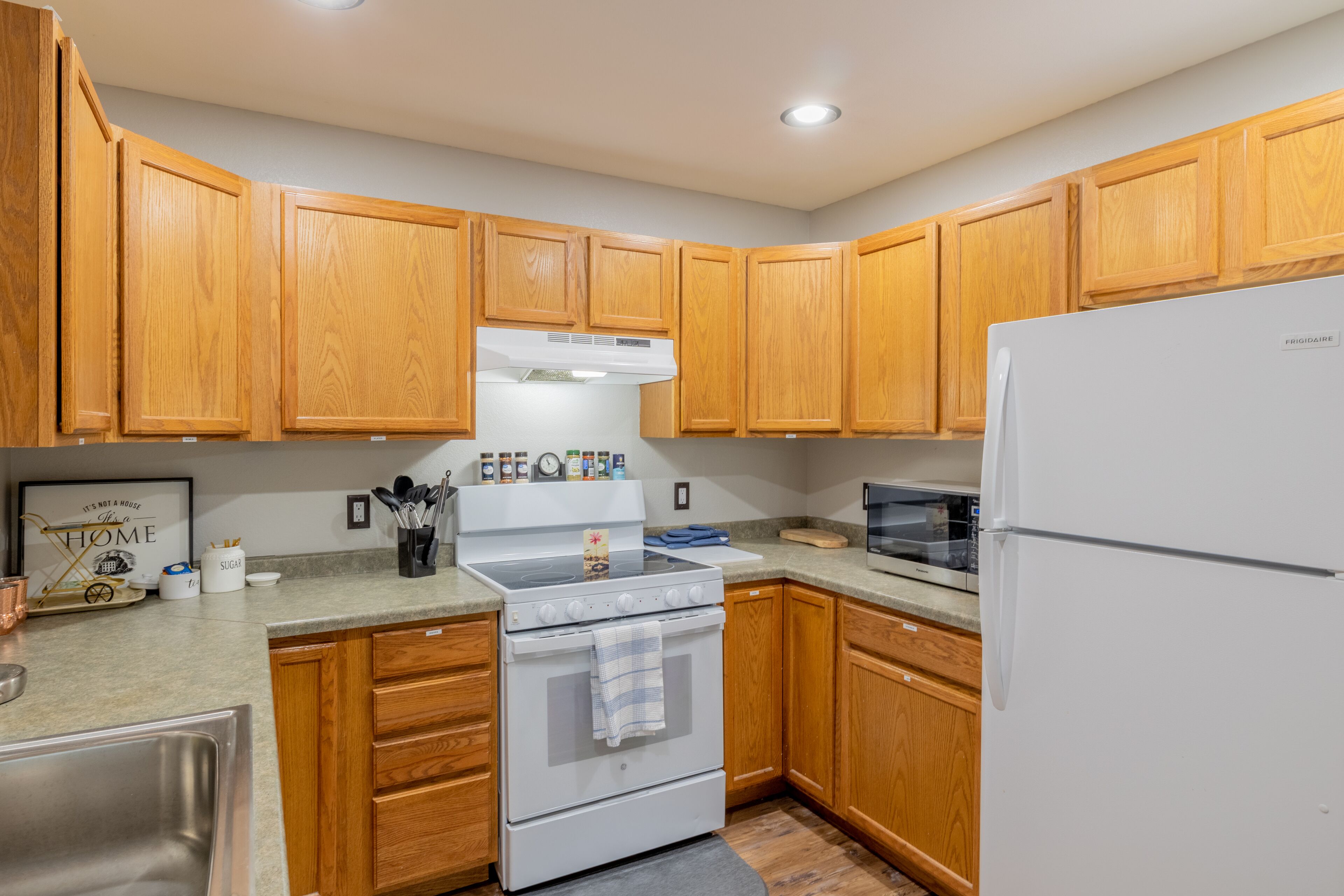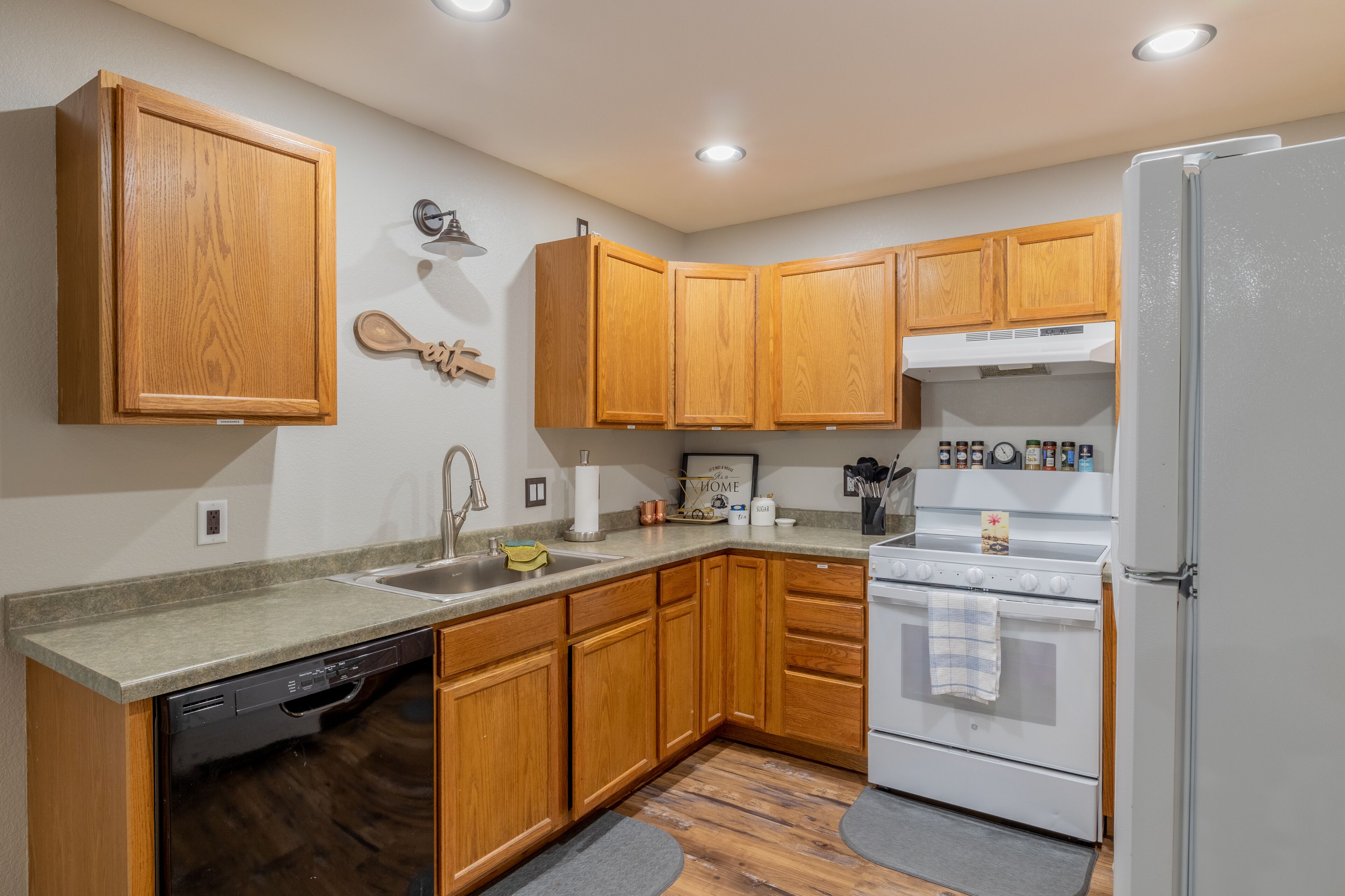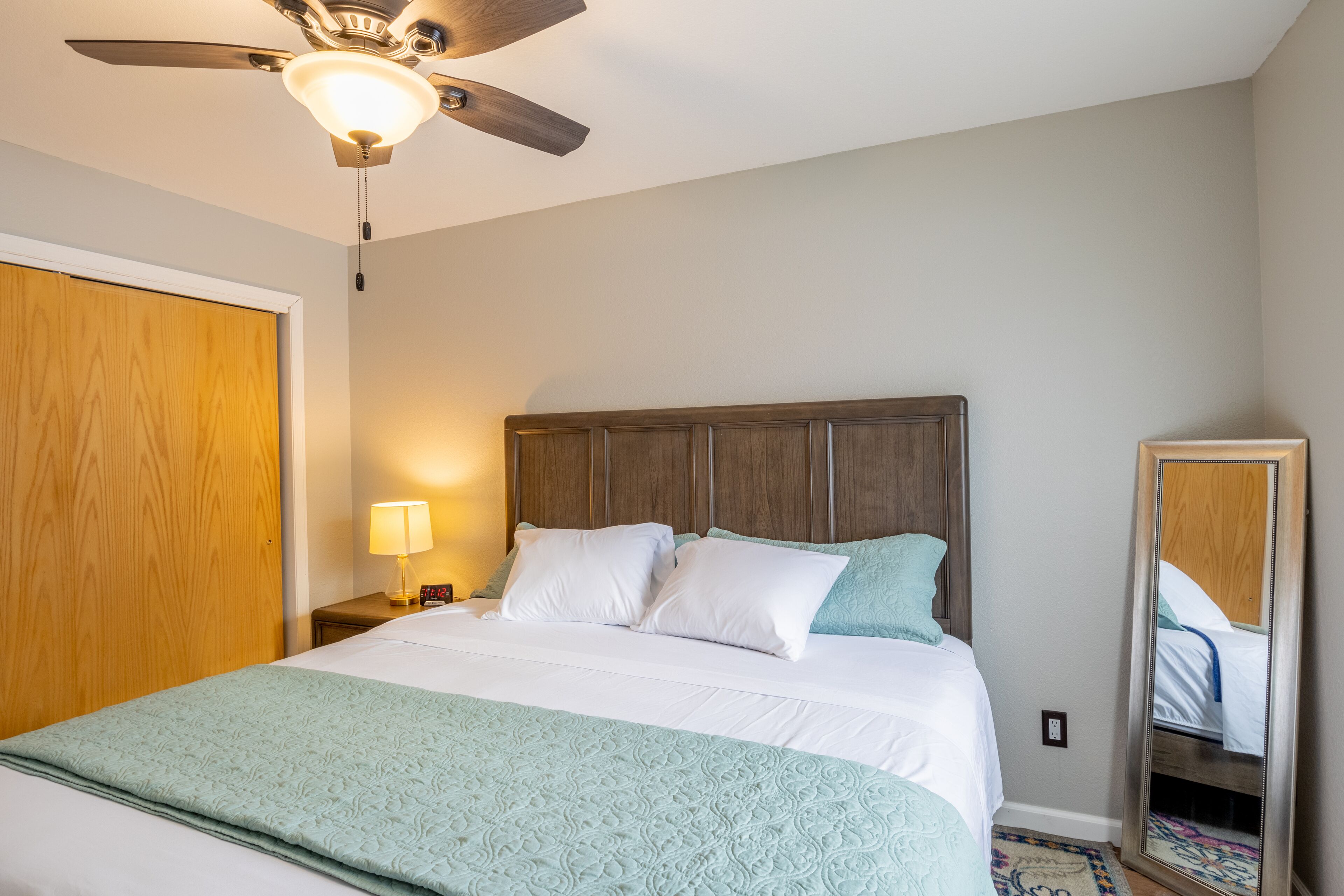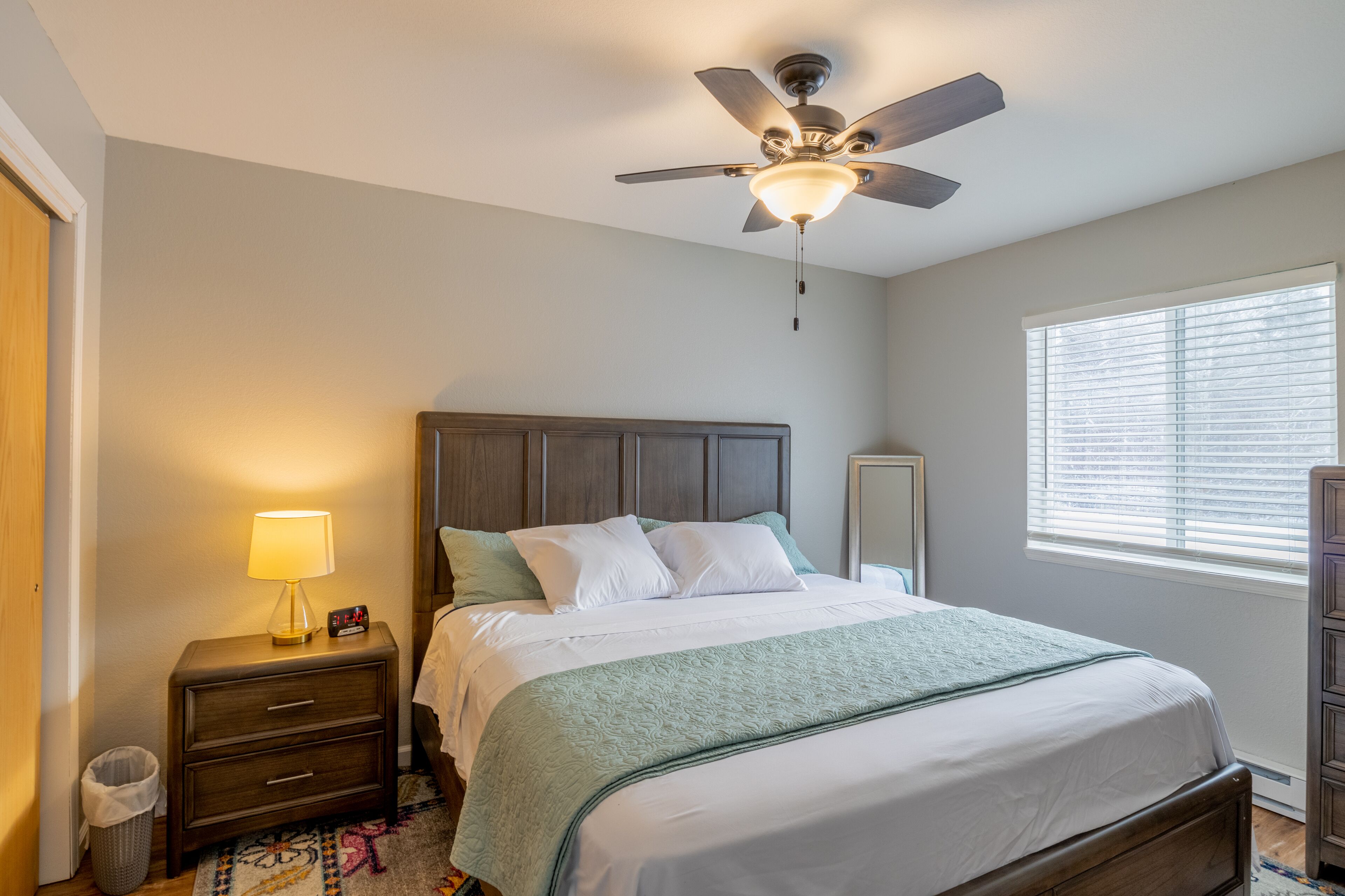 The Northwoods at Lake George, MN Welcome to The Northwoods. Come to get away from it all. Once you step through the doors, you will immediately feel a sense of comfortable and you are in for an enjoyable stay. Relax and watch TV on the most comfortable sectional, that can also sleep 2. If you feel like whipping up a meal- don't worry, the fully stocked kitchen has all that you would need- then sit around the dining table to enjoy.Long days requires a good sleep, settle in for a good night's rest in either of the 2 bedrooms- equipped with a King size bed and the 2nd room with a Queen size bed. You will have plenty of room to get ready for the next day in the spacious bathroom- that comes with hairdryer and toiletries. This unit is easy to access- sidewalk comes right off the driveway, leading to the unit.