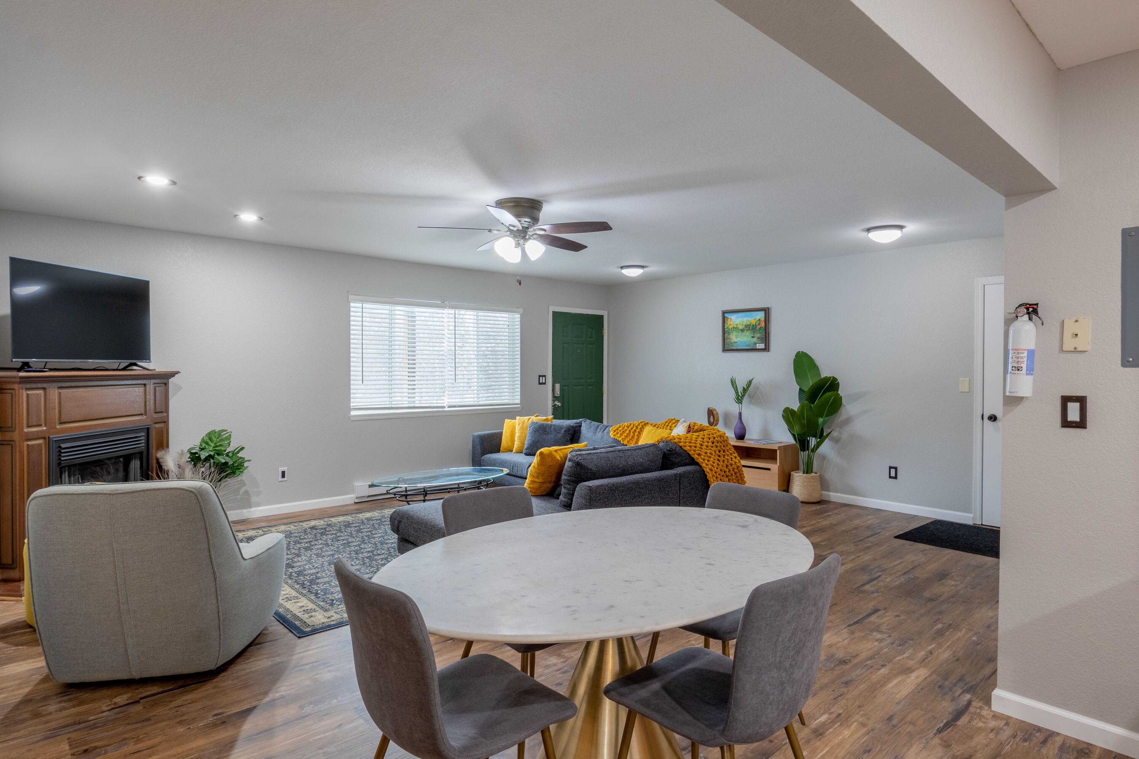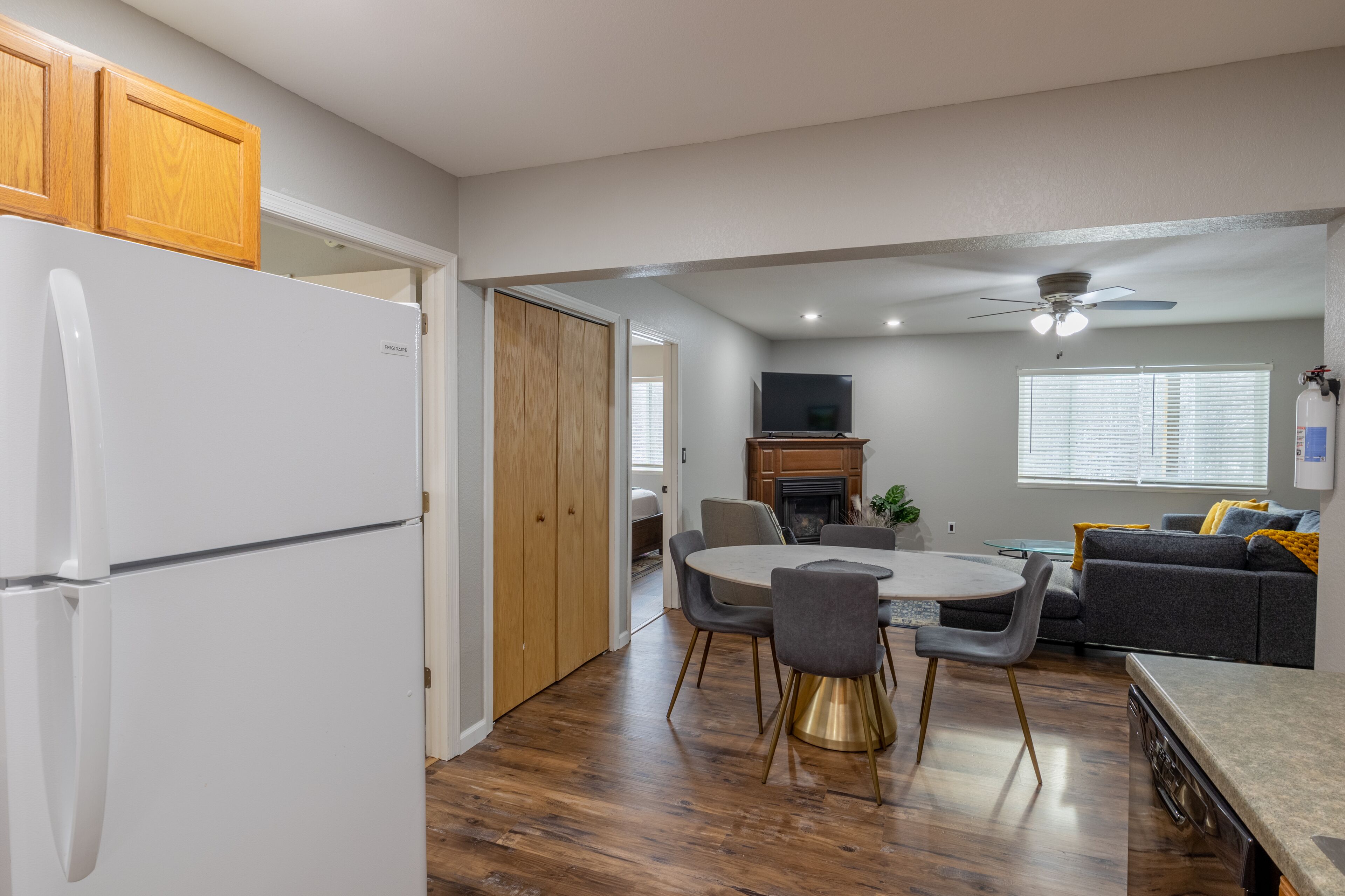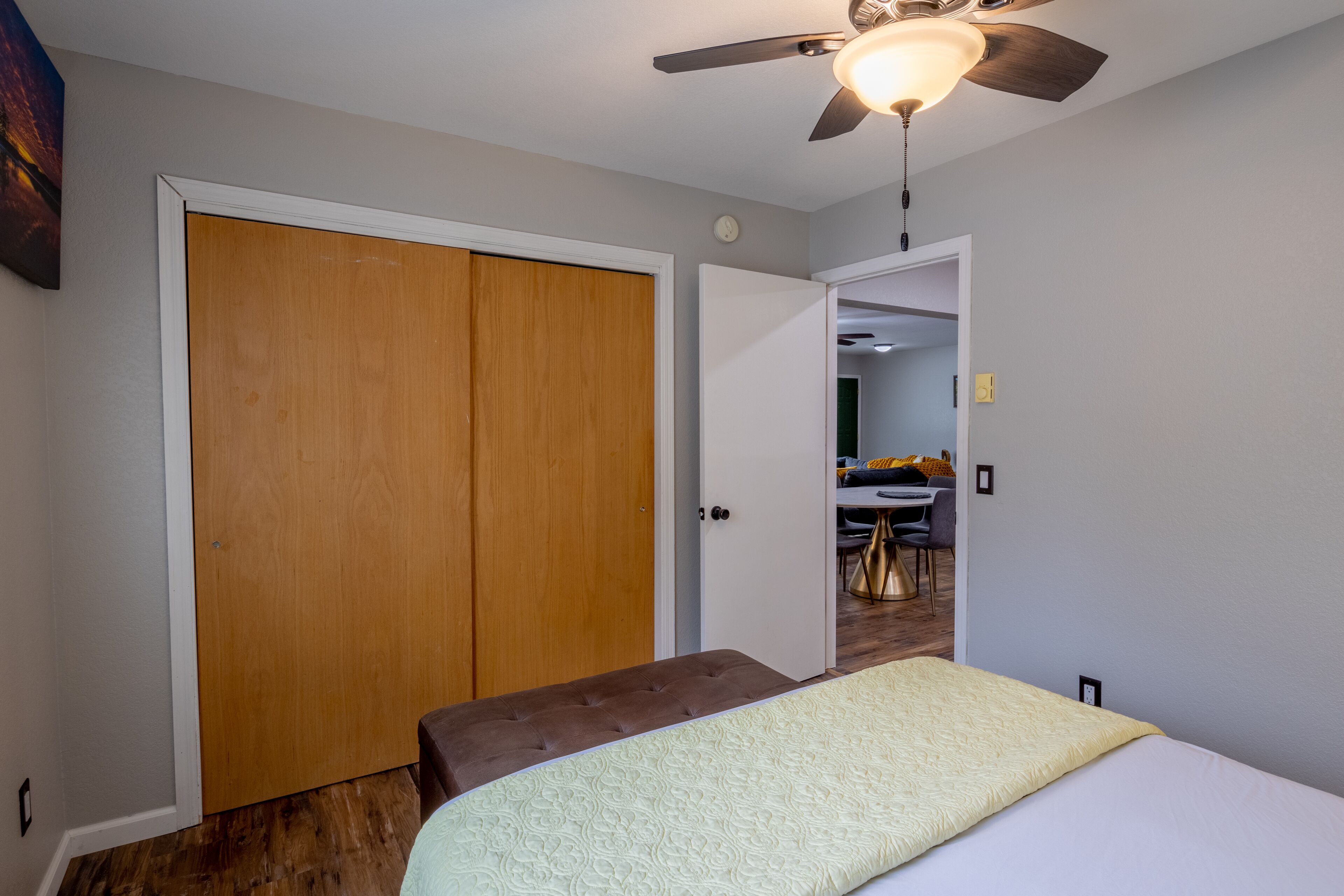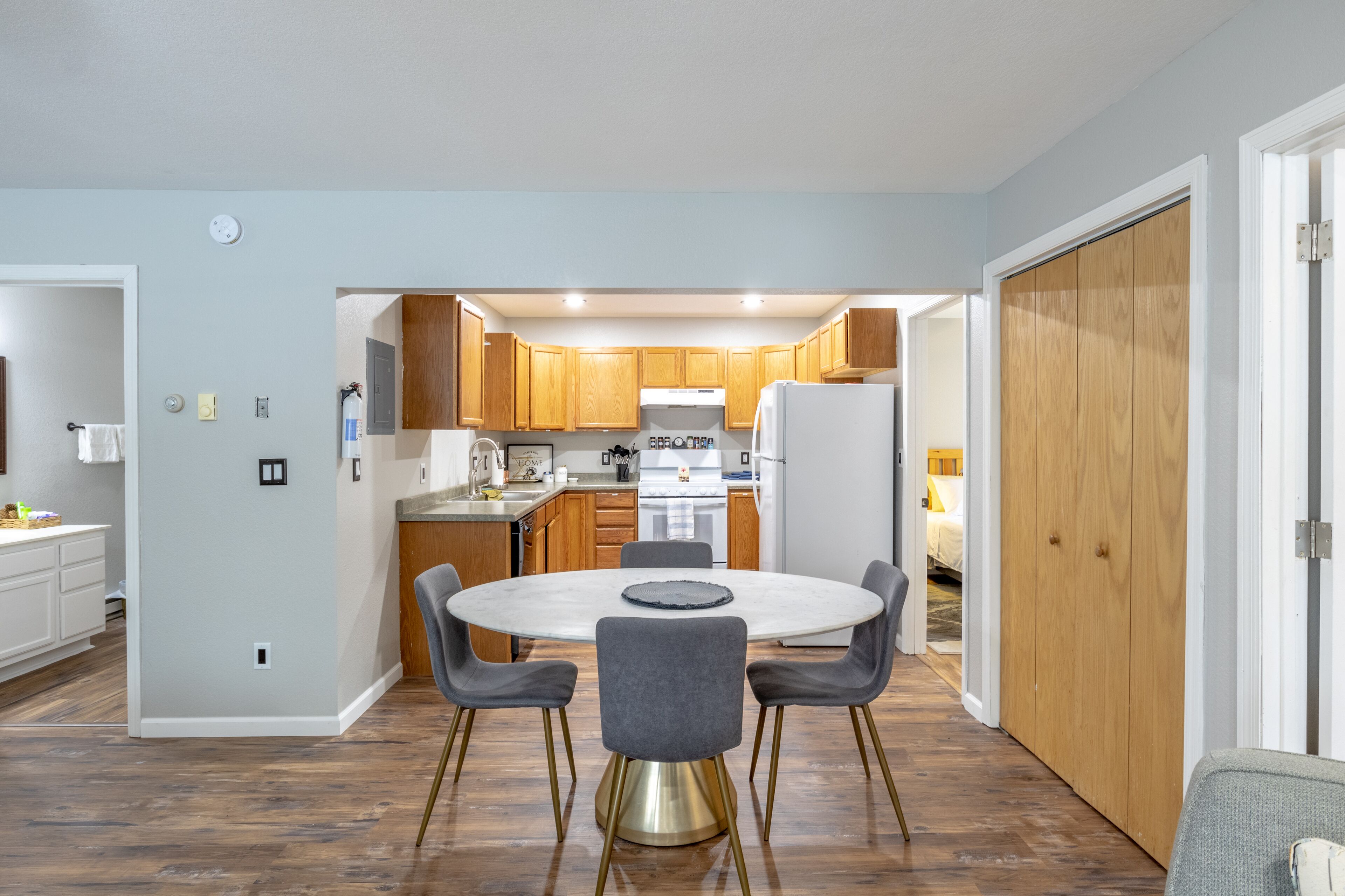 The Northwoods at Lake George, MN Welcome to The Northwoods. Come to get away from it all. Once you step through the doors, you will immediately feel a sense of comfortable and you are in for an enjoyable stay. Relax and watch TV on the most comfortable sectional, that can also sleep 2. If you feel like whipping up a meal- don't worry, the fully stocked kitchen has all that you would need- then sit around the dining table to enjoy.Long days requires a good sleep, settle in for a good night's rest in either of the 2 bedrooms- equipped with a King size bed and the 2nd room with a Queen size bed. You will have plenty of room to get ready for the next day in the spacious bathroom- that comes with hairdryer and toiletries. This unit is easy to access- sidewalk comes right off the driveway, leading to the unit.