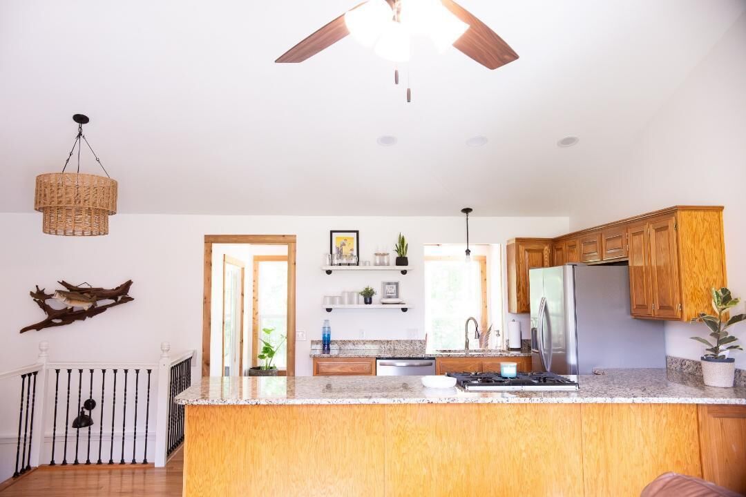 Waterfront 2-bedroom house in Noel on the Elk River This Noel house boasts 2 inviting bedrooms. The beautiful bedrooms include 1 king bed, 1 bunk bed, and 1 twin trundle bed, ensuring a comfortable stay for all guests. The house also features 2 bathrooms with showers, providing convenience and privacy. In addition, there is an additional space in the form of a welcoming living room with a cozy sof...