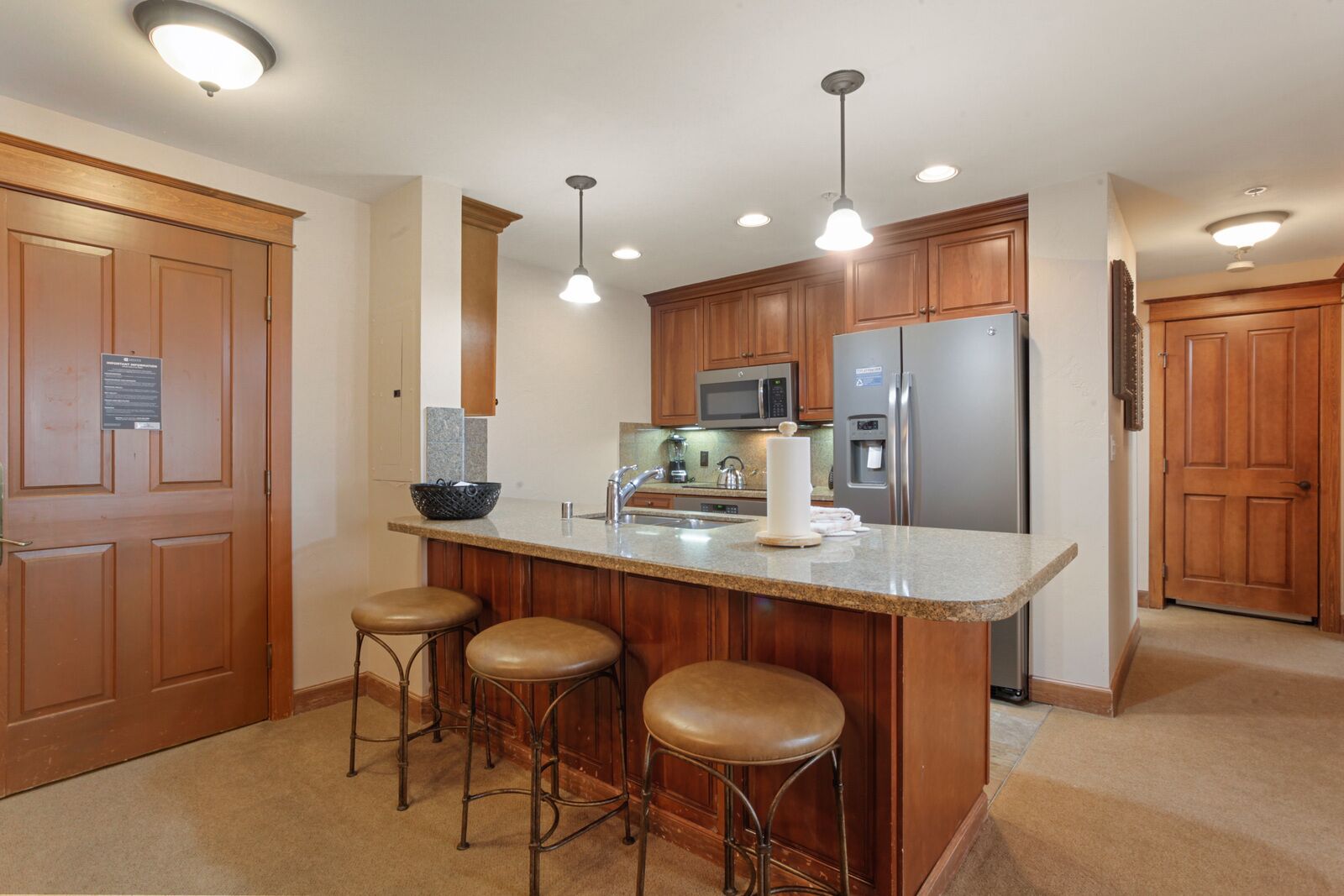 Mill Club 2 Bedroom Condo #305 by RedAwning Escape to the magnificent Copper Mountain Ski Resort and immerse yourself in the ultimate alpine retreat. This exceptional short-term rental condo, located in the vibrant Center Village, offers an unforgettable stay with breathtaking slope views.This spacious 2-bedroom, 2-bathroom condo is designed to comfortably accommodate up to 6 guests. The master bedroom features a king bed, providing a luxurious and restful haven. The second bedroom offers a queen bed, perfect for unwinding after a day of adventure. Additionally, the living room is equipped with a queen sleeper sofa, ensuring ample sleeping space for your group.Indulge your culinary desires in the fully equipped kitchen, where you can prepare delicious meals and snacks with ease. The gas burning fireplace in the living room creates a cozy and inviting atmosphere, perfect for warming up after a day on the slopes. Step out onto the balcony and marvel at the stunning slope views, breathing in the fresh mountain air.For your convenience, the condo includes a washer and dryer unit, allowing you to keep your ski gear fresh and your clothes clean throughout your stay. You'll also have access to one underground parking spot, ensuring secure storage for your vehicle.The building offers an array of amenities to enhance your stay. Take advantage of the indoor hot tub, where you can relax and rejuvenate your muscles while enjoying the beautiful surroundings. If relaxation is your priority, the steam room and sauna provide the perfect retreat. Additionally, the exercise room allows you to stay active and energized during your stay.Located just 50 yards from the nearest lift, this condo offers unrivaled convenience for accessing Copper Mountain's world-class slopes. Embrace the thrill of skiing or snowboarding, knowing that a comfortable and inviting retreat with stunning slope views awaits you at the end of each day. Create cherished memories and immerse yourself in the beauty of Copper Mountain Ski Resort during your stay in this remarkable rental condo.Building and unit amenities are subject to availability and never guaranteed.STR license #: BCA-74694