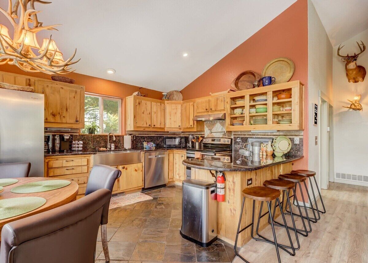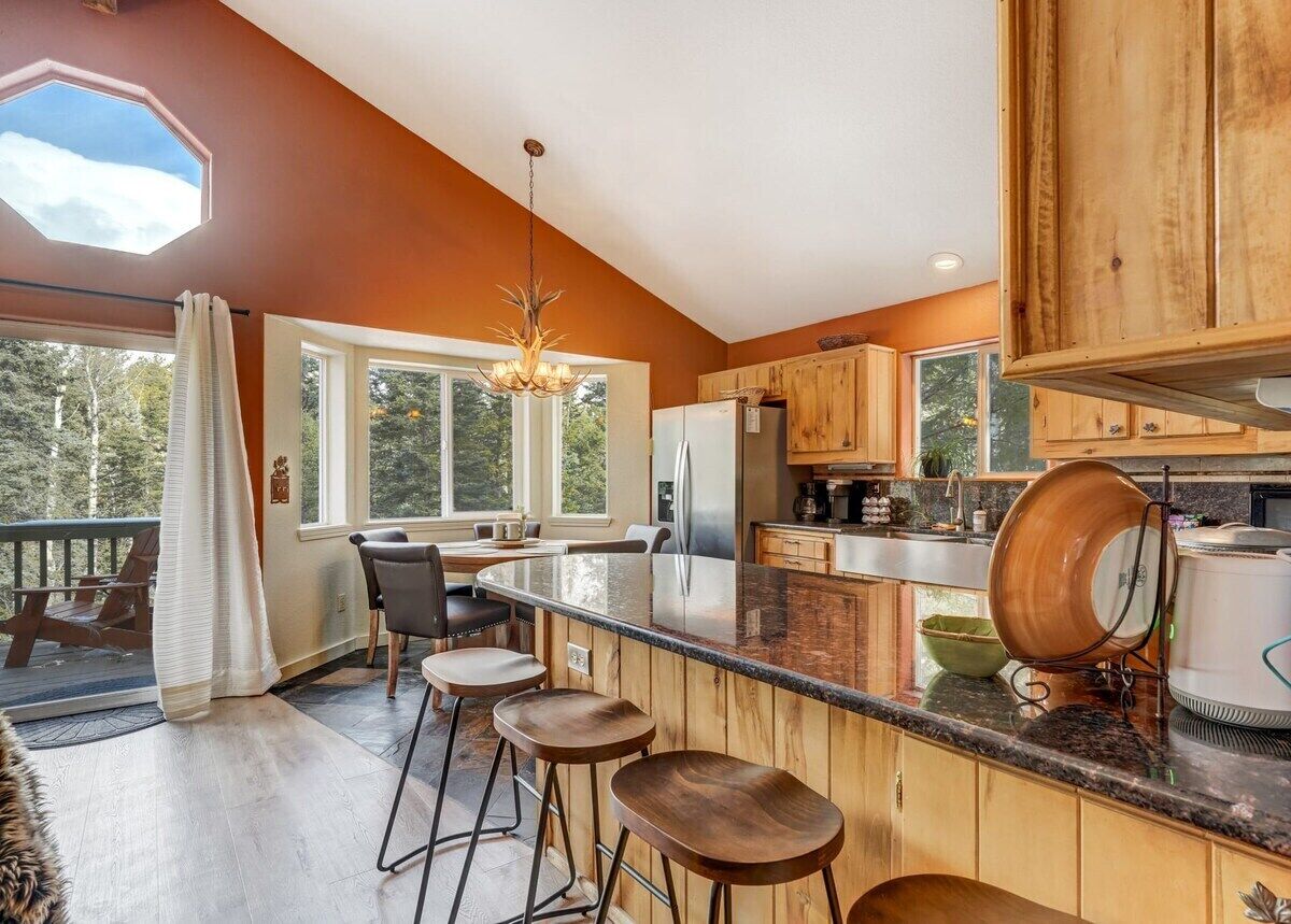Pinetop Cabin! Hot Tub BBQ Arcade Scenic Escape Summary:Welcome to Pinetop Cabin - a serene cabin in the mountains, surrounded by the quiet beauty of nature. Your go-to destination for an unforgettable vacation experience!🐺 Mins to CO wolf & wildlife center!🦴 Mins to Florissant Fossil Beds National Monument!🛁 Hot tub, fire pit, BBQ grill, & outdoor dining!🚀 Fast WiFi & Smart TVs!🕹️ Pac-man arcade🍽️ Fully-stocked kitchen👶 Pack-n-play for the tiniest adventurers!Are you ready for your next getaway?The Space:Escape to a cabin retreat nestled in nature's embrace. From the moment you step inside, you'll discover a world of comfort, adventure, and laid-back luxury.COZY LIVING ROOMUnwind in a spacious living room where you can sink into plush couches, enjoy movie nights on the smart TV, and let every corner become a hub for laughter and relaxation.CULINARY DELIGHTSThe fully-equipped kitchen beckons, featuring a granite island, modern appliances, and a coffee maker with a touch of Starbucks humor. Whether you're a culinary enthusiast or just want a quick bite, this space makes every meal a delight.BEDROOMS FOR SWEET DREAMSDiscover inviting bedrooms, each designed for comfort. From the king bed with cozy surroundings to the bunk room perfect for group adventures, every space is a cozy retreat after a day of exploration.SPA-LIKE RETREATThe bathroom is your private sanctuary, complete with a soothing bathtub, granite sink, and all the essentials. Freshen up surrounded by tranquility after your day's adventures.PLAY AND RELAXATIONEntertainment takes center stage with a Pac-Man arcade game, creating a playful vibe. Downstairs, find a versatile space with a dining table for six, a smart TV, and the perfect ambiance for family fun.OUTDOORStep outside onto the porch and patio, where outdoor dining meets the beauty of nature. Grill up delights, gather around the fire pit, or simply enjoy the outdoor seating surrounded by charm.HOT TUB BLISSTake a dip in the hot tub, surrounded by the serenity of towering pines. It's your private escape under the open sky.Your space in the mountains is not just a rental; it's an invitation to experience the perfect blend of comfort, adventure, and natural beauty. Your story in the mountains begins here!Guest Access:During your stay, you will have complete access to the property, including all its amenities and facilities. This includes bedrooms, living spaces, kitchen, backyard, and everything this house has to offer. You are welcome to make use of everything available to ensure a comfortable and enjoyable experience. Please feel free to let us know if there's anything specific you'd like to know about the property or if you have any special requests during your stay. We want to ensure that you have a wonderful time while you're here.The Neighborhood:Step outside and enjoy the calmness around your cozy home, surrounded by trees and nature. Take in the peaceful atmosphere and explore the beauty of the natural surroundings right at your doorstep.Getting Around:Getting around is a breeze! Whether you prefer a leisurely stroll or a quick ride, you're well-connected to your next adventure. Let's get you moving and on the way to new discoveries!Other Things to Note:For a seamless booking experience, a Rental Agreement is required for all reservations. Once your reservation is confirmed, we'll provide details for completing the agreement. We look forward to hosting you!For a seamless check-in experience, you'll receive a unique code via message along with your check-in instructions on the morning of your arrival. You'll use this code for keyless entry. We've also prepared a starter supply that includes paper towels, coffee K-cups, toilet paper, shampoo, body wash, and plush white towels! We hope these amenities add an extra touch of comfort to your stay.Interaction with Guests:Our Renjoy team is nearby and just one message away to help you with anything you could need for an amazing stay in Colorado!