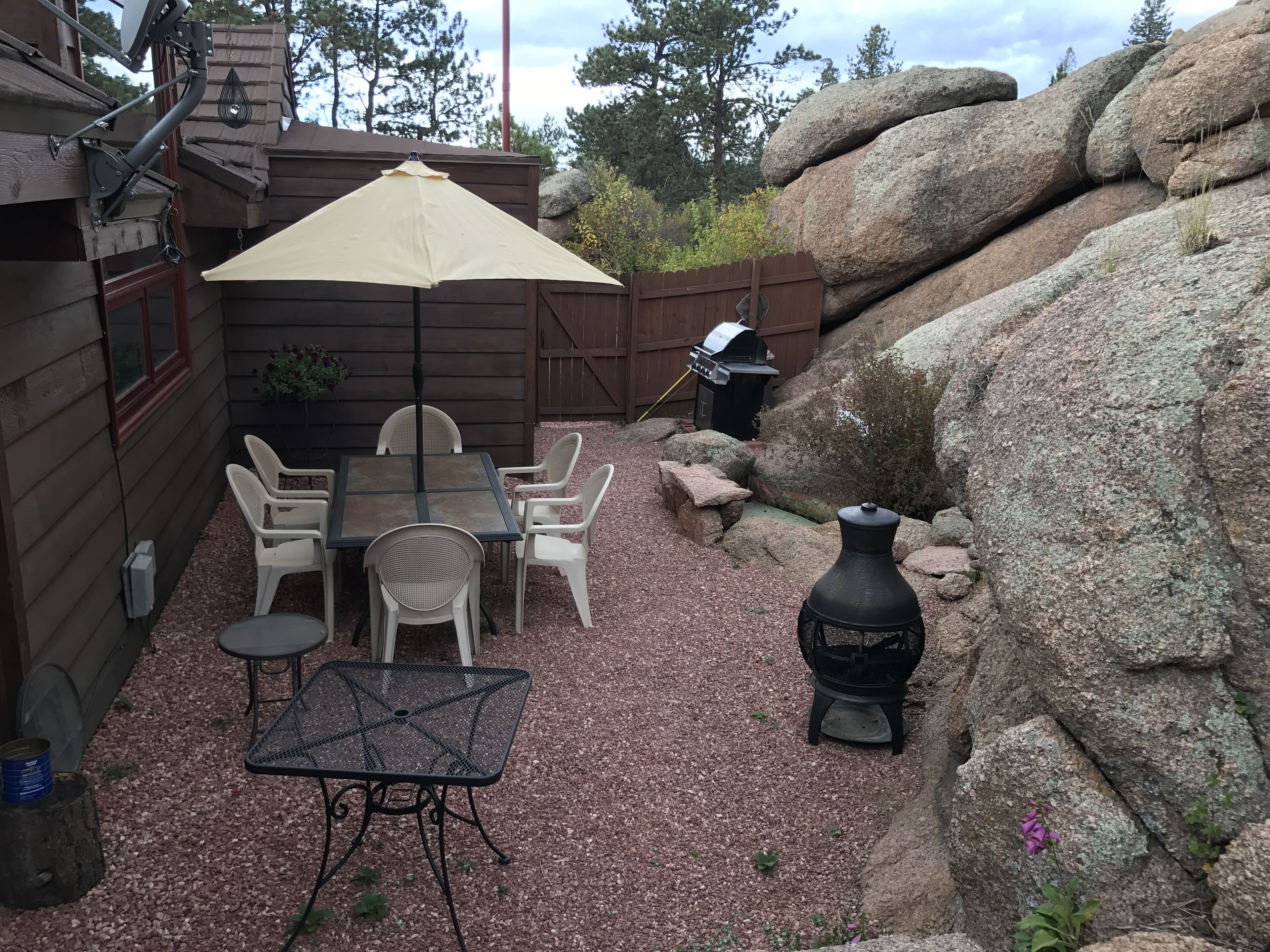 Twin Rock Cabin…Summertime in the Rocky Mountains. Family, Kids, Dog friendly. Historic Ranch Cabin. Dog-Friendly. Perfect just for you or a small family. We cut no corners with the beautiful western decor, leather furniture, Fully stocked kitchen with only the best amenities. Hike the landmark rock formation at the Cabin or the trails at the Fossil Beds National Monument just down the road. National forest access is only a few miles away. Local shopping and dining. Plus, it's only a short 40-minute drive to Colorado Springs. Come and enjoy the many outdoor activities that Colorado is so famous for. One mile from Hwy 24, 15 mins to Woodland Park, 45 mins to the Colorado Springs airport.Our guests have said..."The cabin is so lovely and cozy. The skylights in the bedroom provide a perfect stage for cuddly star gazing. Every little detail has been thought of, from the coffee, frosty beer mugs, n every kitchen tool you'll ever need""This peaceful cabin is a wonderful place to getaway. Perfect for a small family and private enough for a romantic weekend away from it all." Dog and horse-friendly!Free Wi-Fi and DIRECTV with local channels. The cabin comfortably sleeps, 4 people. The bedroom has a queen-size bed. There is a leather queen size sofa bed in the living room. There is also enough room in the bedroom to use our single blow up mattress for another guest. Please contact us if you have any questions.We have an eat-in kitchen that seats 5.The kitchen is fully stocked with beautiful dinnerware, glassware and a full set of quality cookware, pots, and pans. You will have all the utensils and serving dishes you may need for a simple meal or a gourmet romantic dinner. Out back in the private patio area, by the waterfall, you can grill your steaks and burgers on the large propane grill with all the utensils and propane you’ll need. The fireplace, next to the waterfall, is a great place to have a romantic evening or a special family time. Firewood is not provided. Your horses can stay in the two Horse pastures with covered stalls and water tanks. Parking is available for your Horse trailer. Hay is provided for a fee. This must be arranged ahead of time.You are welcome to hike the property and explore the unique granite rock formations. Please use care and limit your exploring to the lower rocks.Florissant Fossil Beds National Monument is 2 miles away. This is a wonderful place for Horse trail riding and Hiking, 18 miles south is Historic Cripple Creek. There you will find Gaming, Steam Locomotive train rides, Gold mine tours and many dining choices.Skiing is just a little over an hour away. Breckenridge or Monarch. Keystone, Arapahoe Basin, Copper, and Cooper are just an hour and 30 minutes. and there is virtually no traffic!Hiking our nation's tallest mountains. There are seven "14'ers" less than 1 1/2 hours away. Most of these are moderate hikes. You can easily drive to any of these, Hike, go to dinner and return home in a day. The largest granite, the freestanding natural arch is just 20 miles from here. Harmonica Arch is a great hike in the Lost Creek Wilderness Area. Pikes Peak Highway and Santa's Workshop are only 30 minutes away. Or the Crags trailhead is 20 minutes from the cabin. There you will find a beautiful hike to Devils Playground and on to the summit of Pikes Peak.There many places to go fly fishing, including several Blue Ribbon streams and the " Dream Stream". This area has some of the best Elk, Mule deer and Pronghorn hunting around.• ALL dogs must be pre-approved. Dogs may never be left unattended in the cabin unless crated. Guests let us know that they are bringing their dog during the booking communications.• There is a $25 charge for each dog or horse. Out of respect for the next guests, dogs may not be on any furniture, bedding or pillows at any time.• Cats are never permitted.We live close to the Cabin, so we are usually available should you need something or have questions. We are just a phone call or text away. We want you to have the best vacation possible!David & Renee