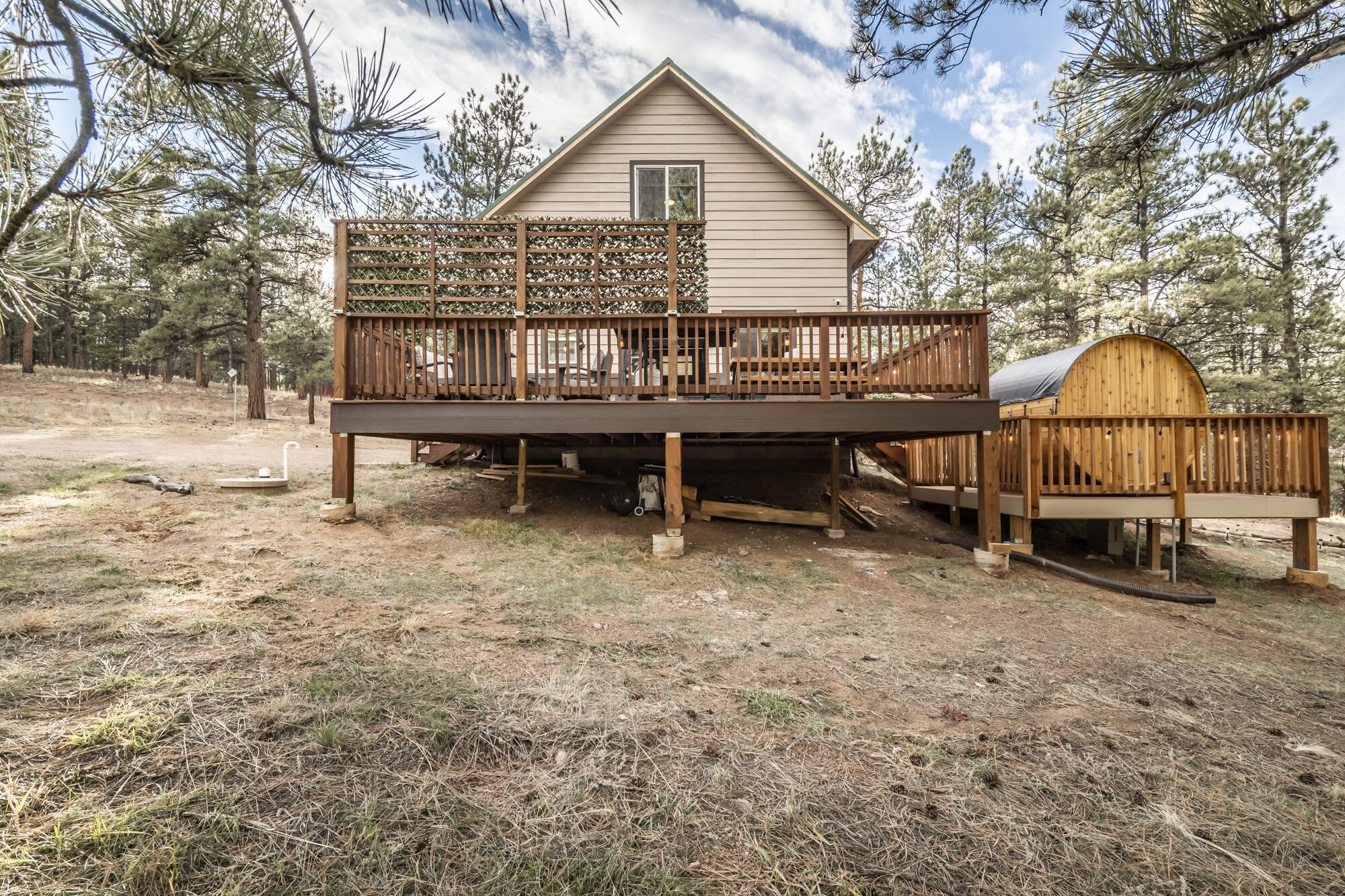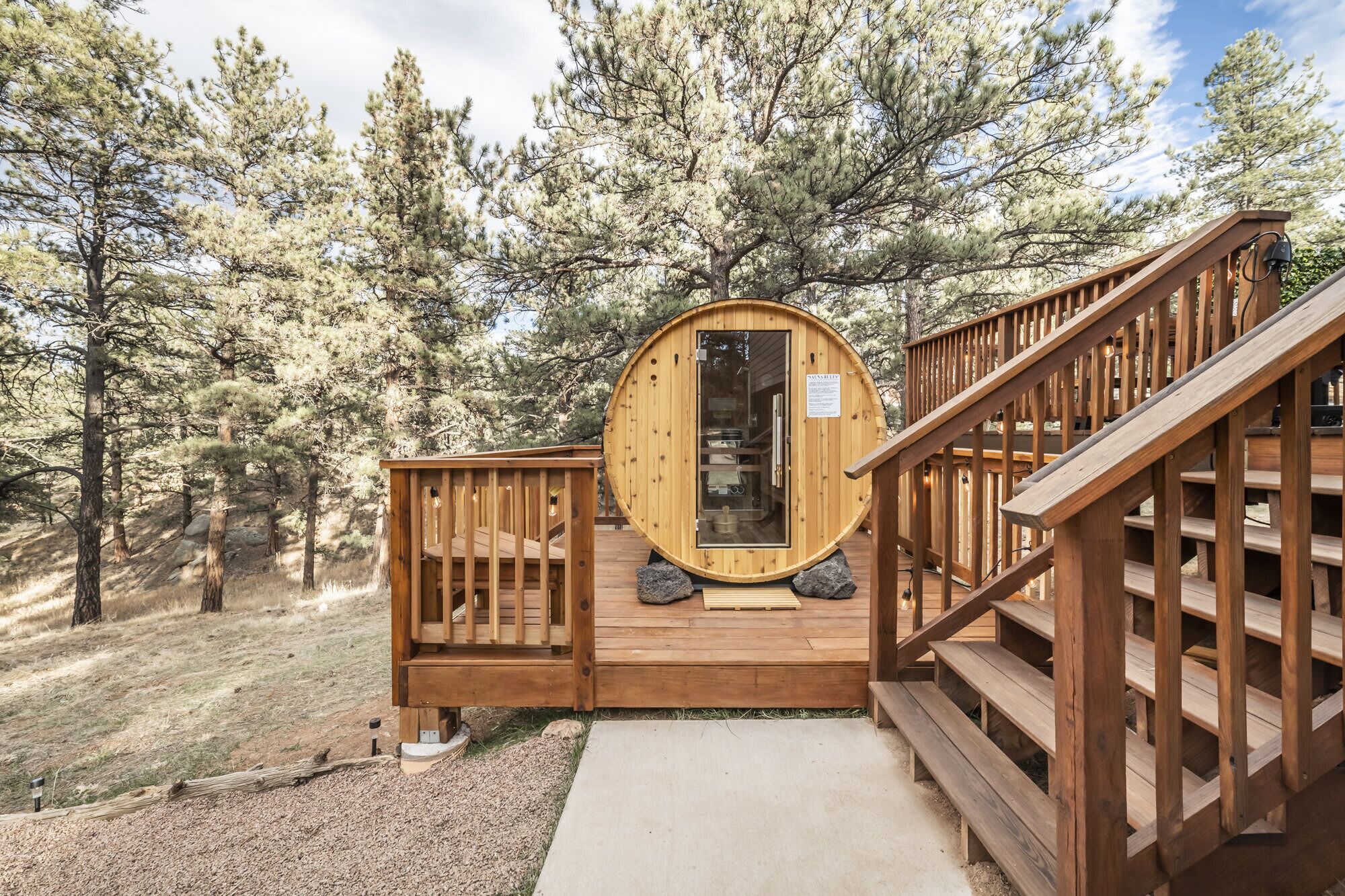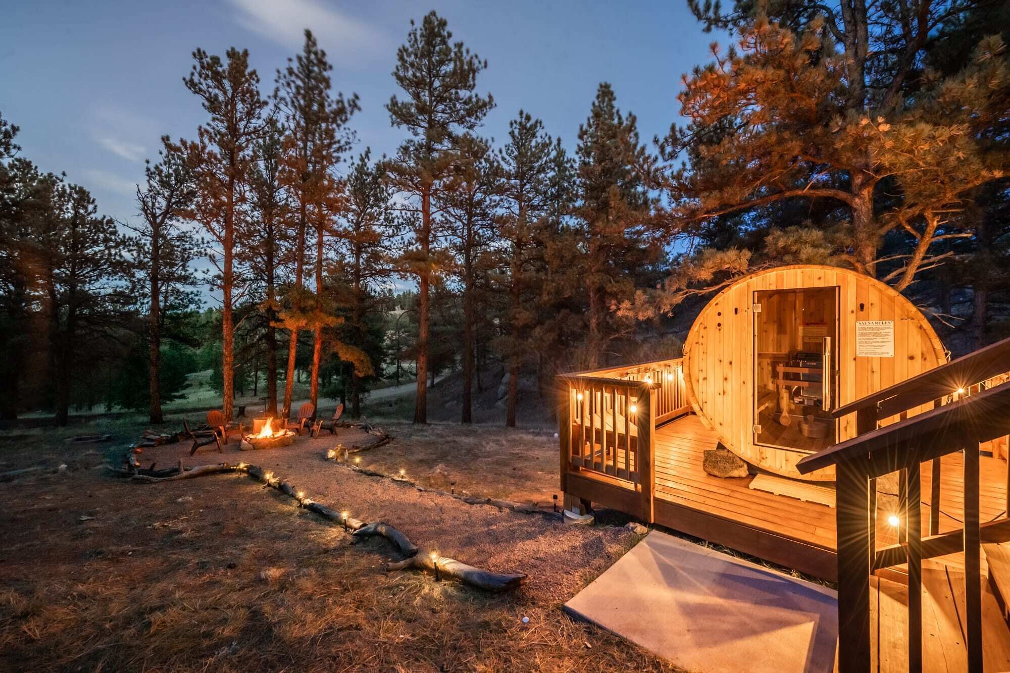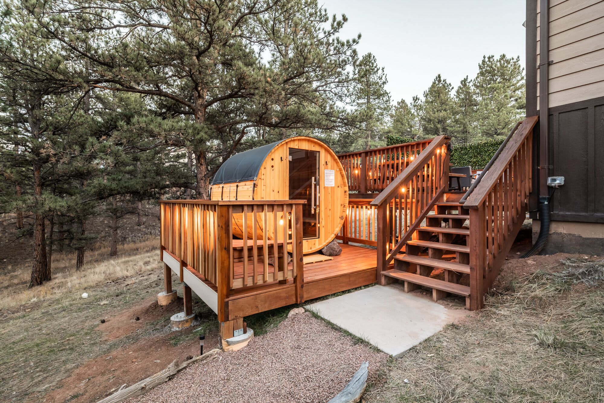 Dark Sky Views w. Firepit - Sauna - Grill - Fishing Summary:Our cabin is nestled on an acre near Pikes National Forest with access to fishing, hiking & adventure all around. With all the amenities, 45min to Colorado Springs, 10 min to the S. Platte River Dream Stream, world class fishing, Mueller State Park, Pike's Peak & ATV-ing. A tranquil location in the woods w/ incredible views of the Milky Way, evening fires outdoors, great times w/ friends on the deck, hot coffee, wildlife, relaxation in the sauna, you’re sure to unwind from the daily grind.The Space:We proudly and directly manage a 5-star cleaning team that has been thoroughly coached in disinfection and sanitation following CDC guidelines. All touch points, surfaces, kitchenware, and linens, including upholstery, are being disinfected and sanitized on a routine basis. Our guests' health and safety are our top priority.Our cabin is perfectly nestled amongst the trees in Florissant Colorado, yet convenient to all the adventure you can dream of. Florissant Fossil Beds National Monument, less than 3 miles away, has been named an International Dark Sky Park, so you can enjoy stellar views of the Milky Way. Sit in the cedarwood sauna to jumpstart your day, soak up the Colorado sunshine while grilling, dining, and relaxing on the deck after your adventures. We have prepared this space with you in mind, so you will have the most amazing stay possible. Thank you for allowing us to host you!Find us @florissantfishingcabin and follow along!The Great OutdoorsThe cabin sits on a large property with seemingly endless activities to keep you entertained. There is a wood firepit and chairs, and there are yard games like frisbee golf, yard dice, and giant jenga. There is a large deck wrapped in string lights with a grill, rustic picnic table for outdoor dining, and a patio furniture set. There is a gorgeous cedar barrel sauna for relaxing.The Joe Wilson Reservoir is currently closed to guests, but there are miles of BLM hiking through the unmarked entrance at the back of the lake towards the inlet (hike at your own risk). Other nearby attractions include Elevenmile Canyon and Eleven Mile State Park, Lake George, Tarryall Mountains, Colorado Wolf and Wildlife Center, Florissant Fossil Beds National Monument, Mueller State Park, Raspberry Mountain, Pikes Peak, and many more!Business TravelersWorking remotely is a new way of life for some. We’ve kept this in mind for those who are traveling for work. Enjoy the ease of keyless entry, fast Wi-Fi, there is a desk and chair in the master bedroom with nature views through expansive windows. There are ample power outlets, USB charging ports for connecting devices, and an Alexa smart speaker for playing music or asking questions about the local area.KiddosFor those traveling with little ones, we've got a pack n play, highchair, baby bath, baby monitor set. There is a retractable baby gate installed at the bottom of the stairs, and there are children’s plates, bowls, cups, and silverware.Living RoomKick back on the comfortable leather sofa with chaise lounge while enjoying your favorite shows on the 65” Smart TV with streaming apps so you can login to your accounts. We provide complimentary Hulu for you to enjoy, and the TV has Samsung TV Plus which is a streaming service with live TV channels like cable.KitchenThe chef in your group will be thrilled to prepare some meals in the fully loaded kitchen. There is a stainless-steel fridge, 5 burner electric range and oven, microwave, toaster, blender, mixer, rice cooker and waffle maker.There is a standard drip coffee make, as well as a French press, stovetop espresso maker, and a milk frother, and we provide coffee, tea, creamer, sugar, sugar-free sweetener, and a few complimentary snacks.There are pots, pans, bakeware, baking sheets, mixing bowls, knives, cutting boards, strainers, measuring cups, measuring spoons, a mixing spoon, slotted spoon, spatula, tongs, a masher, peeler, grater, pizza cutter, ice cream scoop, oven mitts, kitchen towels, a can opener, bottle opener, and a wine opener. There are tools for the grill and toasting forks for roasting marshmallows by the fire.There are plates, bowls, silverware, placemats, coffee mugs, water glasses, wine glasses, and beer glasses. There are children’s plates, bowls, cups, and silverware for your little ones.There are some basic cleaning supplies such as all-purpose cleaning spray, sponges, hand soap, dish soap, and extra trash bags. There is a broom and dustpan, mop and bucket, and a vacuum. There is a fire extinguisher and first aid kit onsite as well.BedroomsThere are 2 bedrooms in the cabin. They both feature super comfortable beds with brand new mattresses, high quality bedding, plenty of pillows and we provide fresh linens for your comfort.The master bedroom is upstairs and overlooks the main space. It has a king bed, nightstands with lamps, a sound machine, and a wall-mounted Roku TV with apps like Hulu and Netflix. There is a desk and chair against the railing with nature views out the expansive windows. There is a closet with a dresser, hangers for your clothes, a hamper, and a safe. There are also robes and towels for use with the sauna. The master also has a cozy nook with two armchairs, several live-edge shelves with a selection of books, games, and vintage décor, and there is a coffee tray with a coffee maker and fixings for enjoying your first morning cup.The downstairs bedroom has a queen bed, nightstands with lamps, a mirror, and a few books on the shelves in the corner. There are robes and towels for use with the sauna.Laundry RoomThere is an updated washer and dryer onsite, and we provide a few complimentary laundry pods. There is an iron and ironing board available as well.BathroomThe bathroom is sparkling clean and has a full-size tub with shower, and we provide fresh towels, washcloths, hand towels, makeup cloths and spa quality shampoo, conditioner, and body wash. We also prov