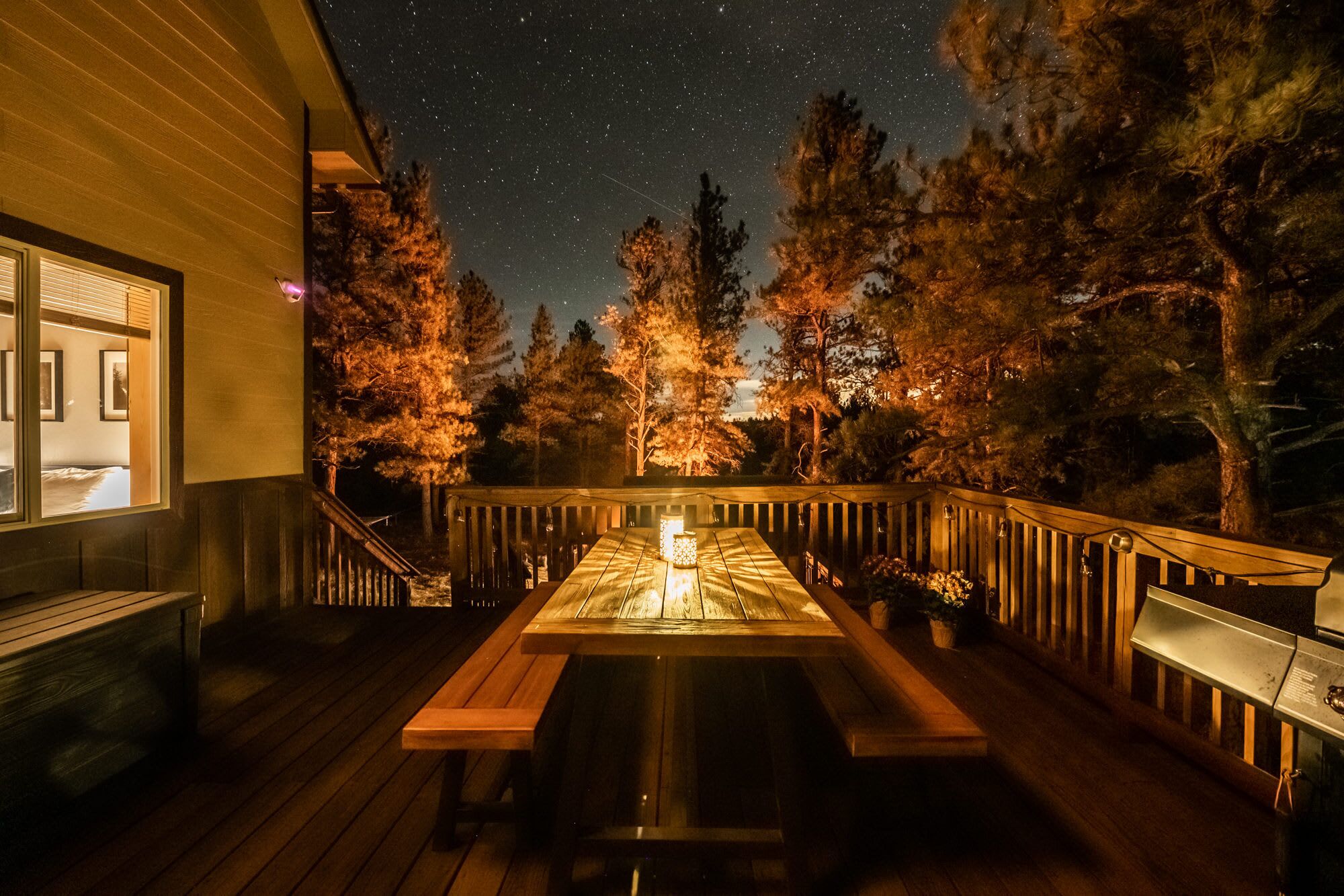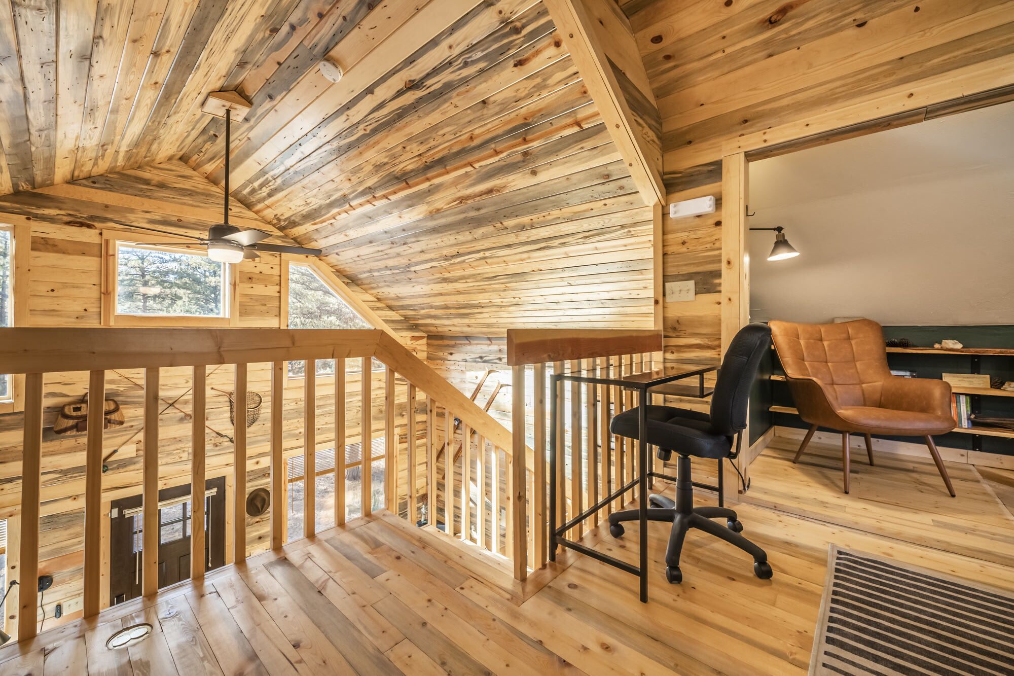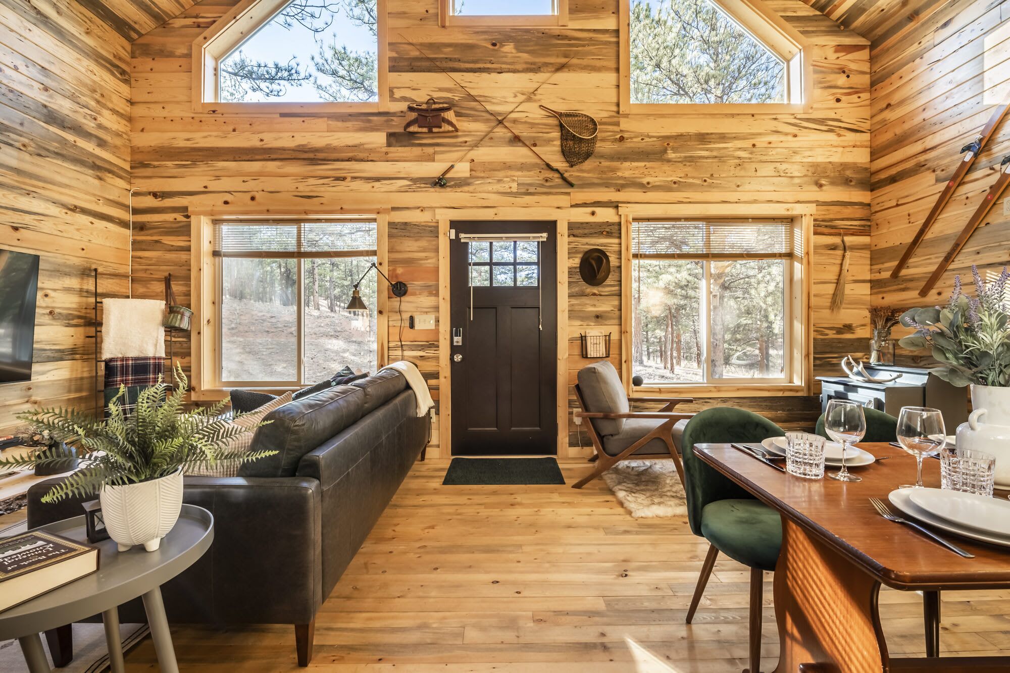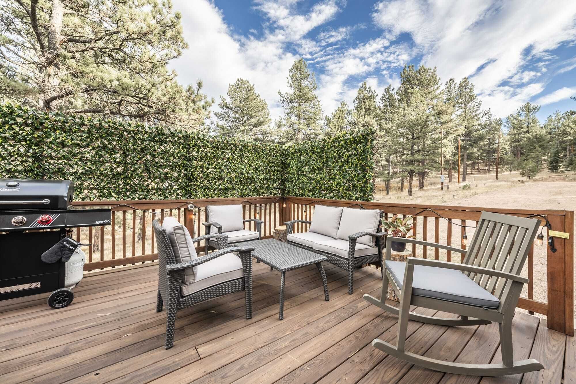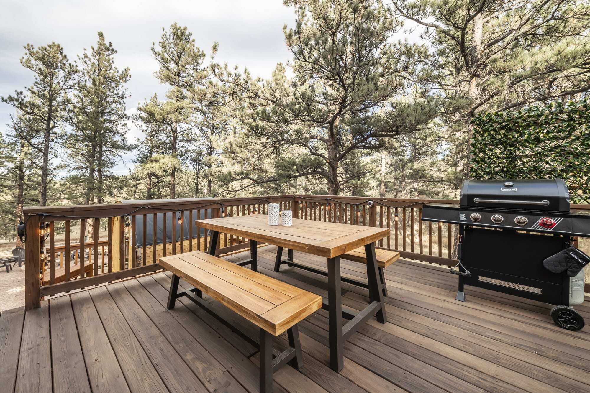 Dark Sky Views w. Firepit - Sauna - Grill - Fishing Summary:Our cabin is nestled on an acre near Pikes National Forest with access to fishing, hiking & adventure all around. With all the amenities, 45min to Colorado Springs, 10 min to the S. Platte River Dream Stream, world class fishing, Mueller State Park, Pike's Peak & ATV-ing. A tranquil location in the woods w/ incredible views of the Milky Way, evening fires outdoors, great times w/ friends on the deck, hot coffee, wildlife, relaxation in the sauna, you’re sure to unwind from the daily grind.The Space:We proudly and directly manage a 5-star cleaning team that has been thoroughly coached in disinfection and sanitation following CDC guidelines. All touch points, surfaces, kitchenware, and linens, including upholstery, are being disinfected and sanitized on a routine basis. Our guests' health and safety are our top priority.Our cabin is perfectly nestled amongst the trees in Florissant Colorado, yet convenient to all the adventure you can dream of. Florissant Fossil Beds National Monument, less than 3 miles away, has been named an International Dark Sky Park, so you can enjoy stellar views of the Milky Way. Sit in the cedarwood sauna to jumpstart your day, soak up the Colorado sunshine while grilling, dining, and relaxing on the deck after your adventures. We have prepared this space with you in mind, so you will have the most amazing stay possible. Thank you for allowing us to host you!Find us @florissantfishingcabin and follow along!The Great OutdoorsThe cabin sits on a large property with seemingly endless activities to keep you entertained. There is a wood firepit and chairs, and there are yard games like frisbee golf, yard dice, and giant jenga. There is a large deck wrapped in string lights with a grill, rustic picnic table for outdoor dining, and a patio furniture set. There is a gorgeous cedar barrel sauna for relaxing.The Joe Wilson Reservoir is currently closed to guests, but there are miles of BLM hiking through the unmarked entrance at the back of the lake towards the inlet (hike at your own risk). Other nearby attractions include Elevenmile Canyon and Eleven Mile State Park, Lake George, Tarryall Mountains, Colorado Wolf and Wildlife Center, Florissant Fossil Beds National Monument, Mueller State Park, Raspberry Mountain, Pikes Peak, and many more!Business TravelersWorking remotely is a new way of life for some. We’ve kept this in mind for those who are traveling for work. Enjoy the ease of keyless entry, fast Wi-Fi, there is a desk and chair in the master bedroom with nature views through expansive windows. There are ample power outlets, USB charging ports for connecting devices, and an Alexa smart speaker for playing music or asking questions about the local area.KiddosFor those traveling with little ones, we've got a pack n play, highchair, baby bath, baby monitor set. There is a retractable baby gate installed at the bottom of the stairs, and there are children’s plates, bowls, cups, and silverware.Living RoomKick back on the comfortable leather sofa with chaise lounge while enjoying your favorite shows on the 65” Smart TV with streaming apps so you can login to your accounts. We provide complimentary Hulu for you to enjoy, and the TV has Samsung TV Plus which is a streaming service with live TV channels like cable.KitchenThe chef in your group will be thrilled to prepare some meals in the fully loaded kitchen. There is a stainless-steel fridge, 5 burner electric range and oven, microwave, toaster, blender, mixer, rice cooker and waffle maker.There is a standard drip coffee make, as well as a French press, stovetop espresso maker, and a milk frother, and we provide coffee, tea, creamer, sugar, sugar-free sweetener, and a few complimentary snacks.There are pots, pans, bakeware, baking sheets, mixing bowls, knives, cutting boards, strainers, measuring cups, measuring spoons, a mixing spoon, slotted spoon, spatula, tongs, a masher, peeler, grater, pizza cutter, ice cream scoop, oven mitts, kitchen towels, a can opener, bottle opener, and a wine opener. There are tools for the grill and toasting forks for roasting marshmallows by the fire.There are plates, bowls, silverware, placemats, coffee mugs, water glasses, wine glasses, and beer glasses. There are children’s plates, bowls, cups, and silverware for your little ones.There are some basic cleaning supplies such as all-purpose cleaning spray, sponges, hand soap, dish soap, and extra trash bags. There is a broom and dustpan, mop and bucket, and a vacuum. There is a fire extinguisher and first aid kit onsite as well.BedroomsThere are 2 bedrooms in the cabin. They both feature super comfortable beds with brand new mattresses, high quality bedding, plenty of pillows and we provide fresh linens for your comfort.The master bedroom is upstairs and overlooks the main space. It has a king bed, nightstands with lamps, a sound machine, and a wall-mounted Roku TV with apps like Hulu and Netflix. There is a desk and chair against the railing with nature views out the expansive windows. There is a closet with a dresser, hangers for your clothes, a hamper, and a safe. There are also robes and towels for use with the sauna. The master also has a cozy nook with two armchairs, several live-edge shelves with a selection of books, games, and vintage décor, and there is a coffee tray with a coffee maker and fixings for enjoying your first morning cup.The downstairs bedroom has a queen bed, nightstands with lamps, a mirror, and a few books on the shelves in the corner. There are robes and towels for use with the sauna.Laundry RoomThere is an updated washer and dryer onsite, and we provide a few complimentary laundry pods. There is an iron and ironing board available as well.BathroomThe bathroom is sparkling clean and has a full-size tub with shower, and we provide fresh towels, washcloths, hand towels, makeup cloths and spa quality shampoo, conditioner, and body wash. We also prov