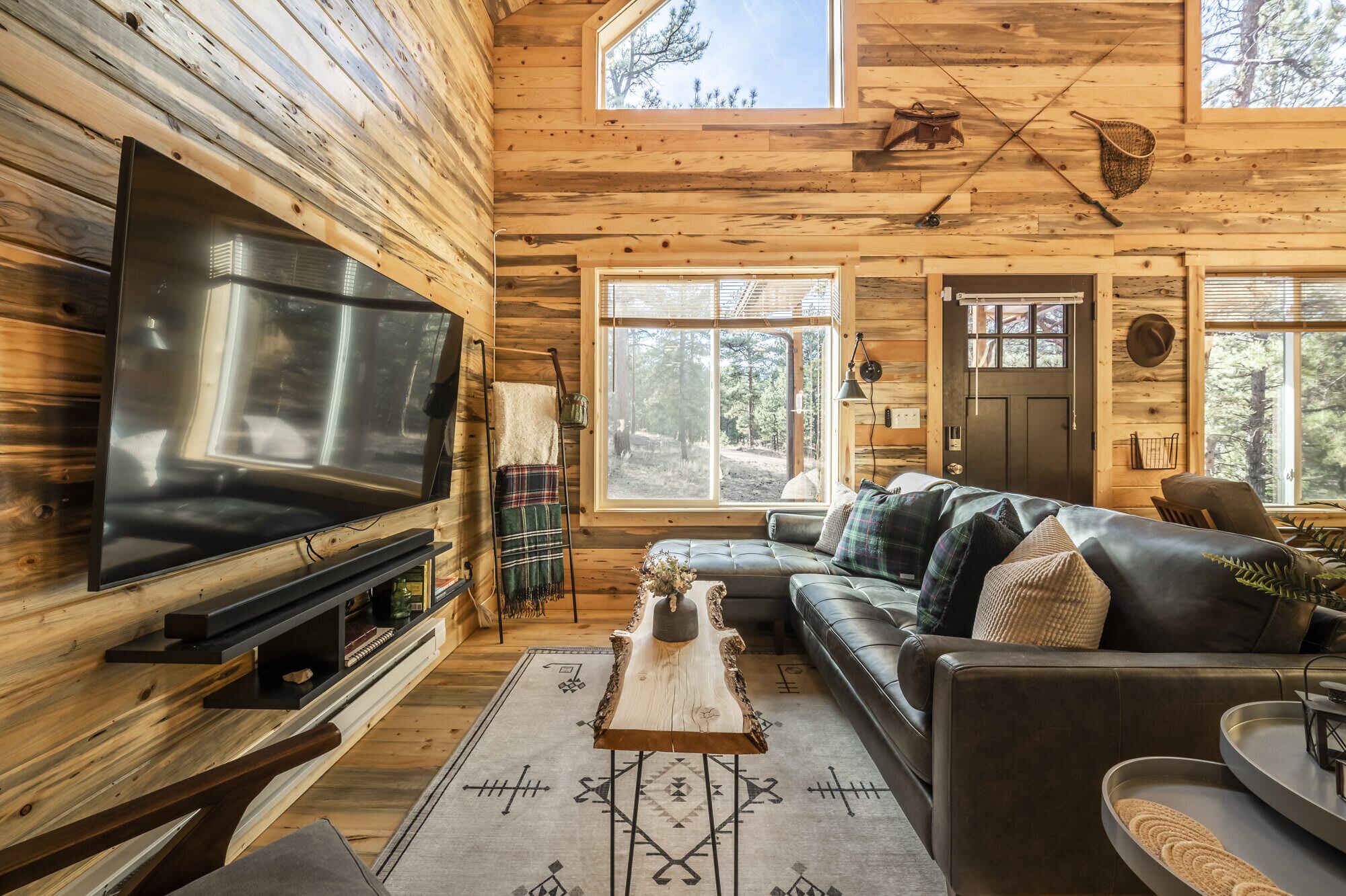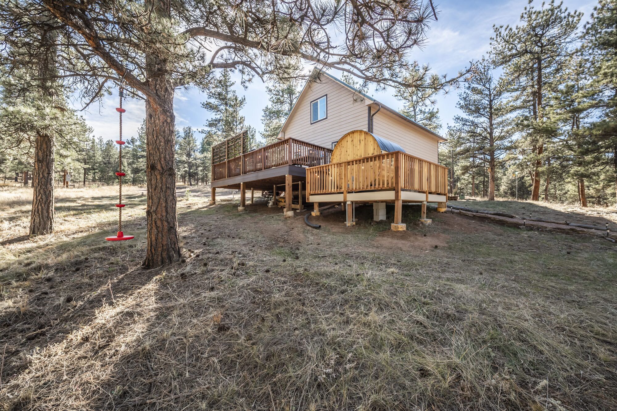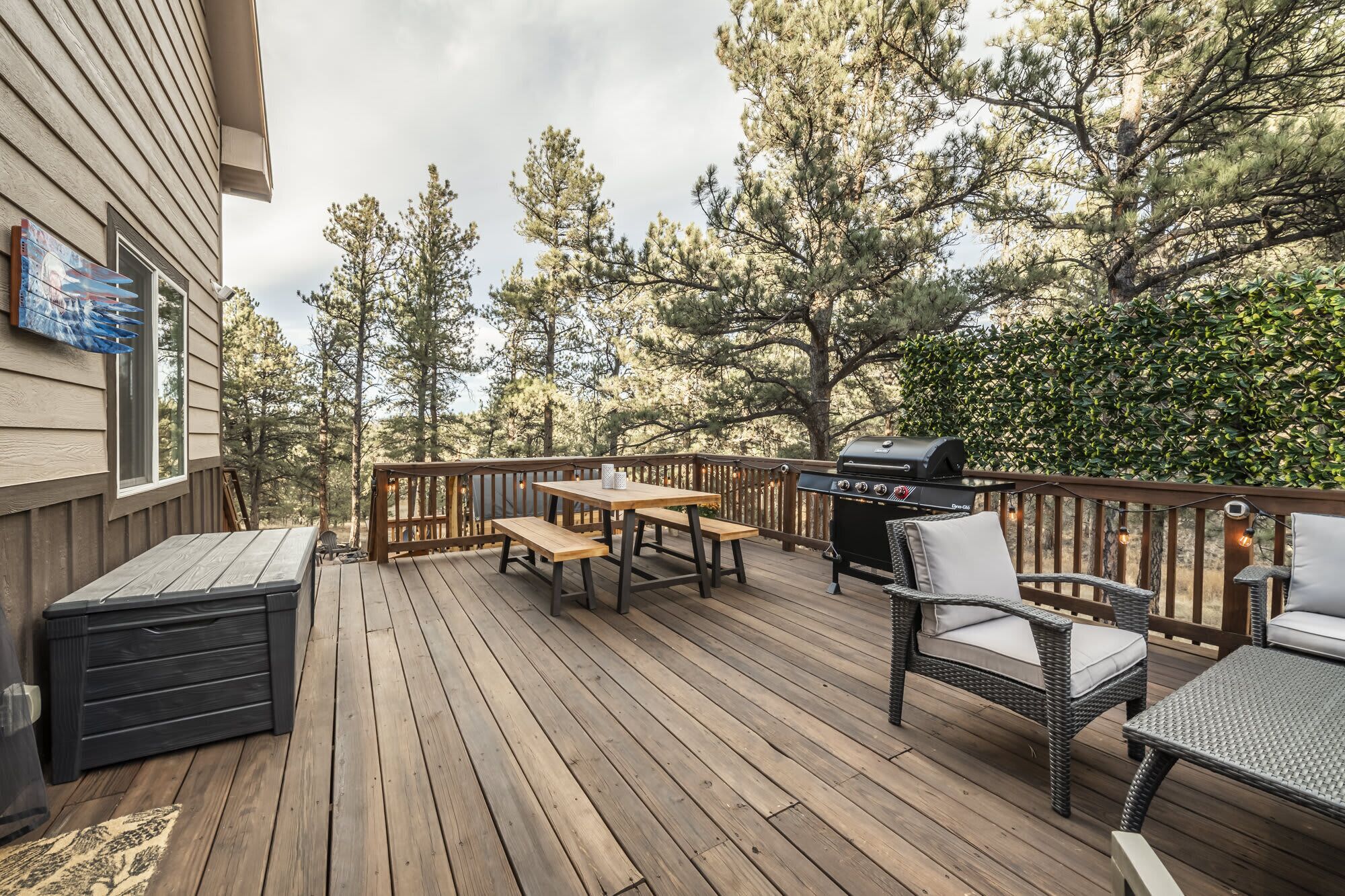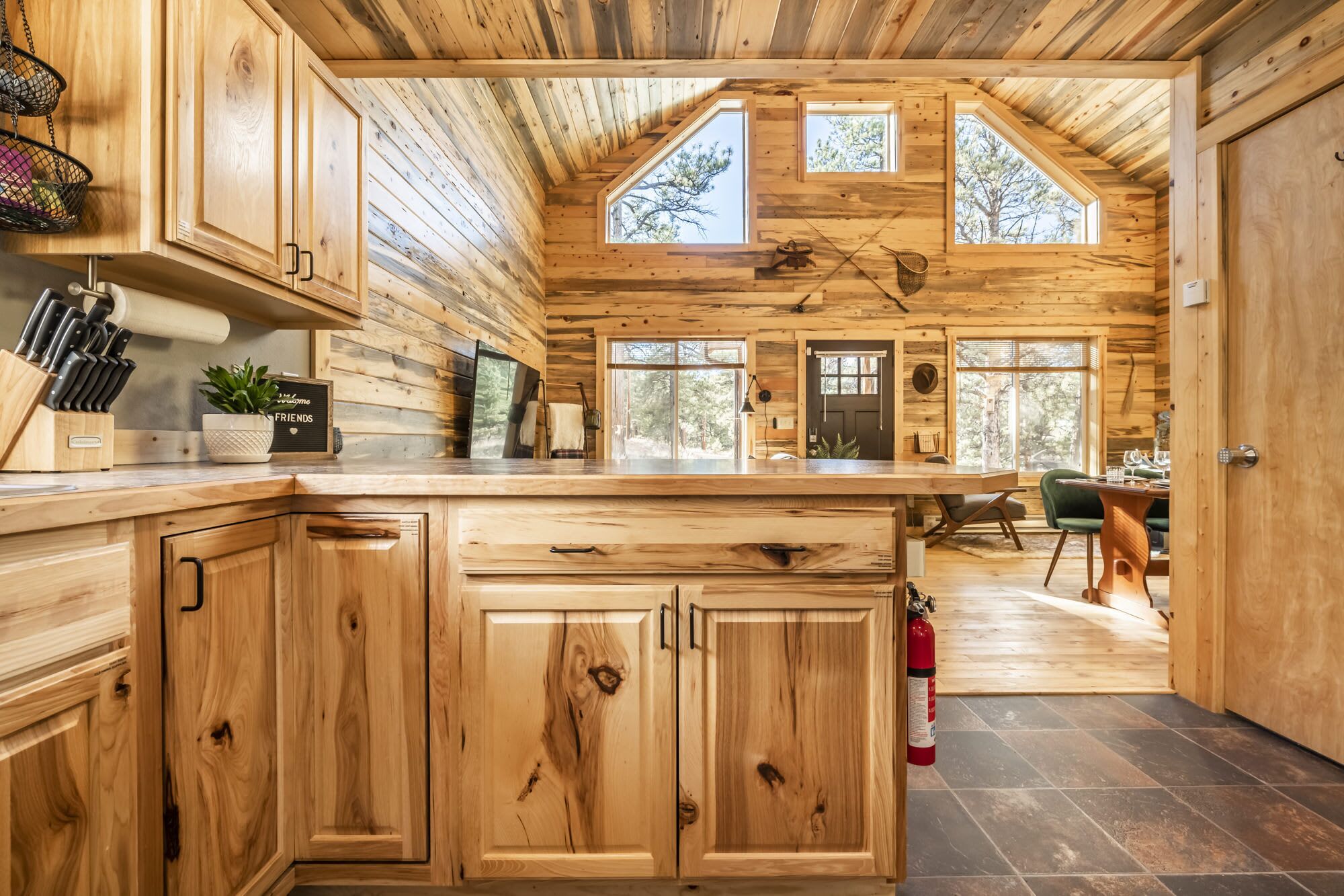 Dark Sky Views w. Firepit - Sauna - Grill - Fishing Summary:Our cabin is nestled on an acre near Pikes National Forest with access to fishing, hiking & adventure all around. With all the amenities, 45min to Colorado Springs, 10 min to the S. Platte River Dream Stream, world class fishing, Mueller State Park, Pike's Peak & ATV-ing. A tranquil location in the woods w/ incredible views of the Milky Way, evening fires outdoors, great times w/ friends on the deck, hot coffee, wildlife, relaxation in the sauna, you’re sure to unwind from the daily grind.The Space:We proudly and directly manage a 5-star cleaning team that has been thoroughly coached in disinfection and sanitation following CDC guidelines. All touch points, surfaces, kitchenware, and linens, including upholstery, are being disinfected and sanitized on a routine basis. Our guests' health and safety are our top priority.Our cabin is perfectly nestled amongst the trees in Florissant Colorado, yet convenient to all the adventure you can dream of. Florissant Fossil Beds National Monument, less than 3 miles away, has been named an International Dark Sky Park, so you can enjoy stellar views of the Milky Way. Sit in the cedarwood sauna to jumpstart your day, soak up the Colorado sunshine while grilling, dining, and relaxing on the deck after your adventures. We have prepared this space with you in mind, so you will have the most amazing stay possible. Thank you for allowing us to host you!Find us @florissantfishingcabin and follow along!The Great OutdoorsThe cabin sits on a large property with seemingly endless activities to keep you entertained. There is a wood firepit and chairs, and there are yard games like frisbee golf, yard dice, and giant jenga. There is a large deck wrapped in string lights with a grill, rustic picnic table for outdoor dining, and a patio furniture set. There is a gorgeous cedar barrel sauna for relaxing.The Joe Wilson Reservoir is currently closed to guests, but there are miles of BLM hiking through the unmarked entrance at the back of the lake towards the inlet (hike at your own risk). Other nearby attractions include Elevenmile Canyon and Eleven Mile State Park, Lake George, Tarryall Mountains, Colorado Wolf and Wildlife Center, Florissant Fossil Beds National Monument, Mueller State Park, Raspberry Mountain, Pikes Peak, and many more!Business TravelersWorking remotely is a new way of life for some. We’ve kept this in mind for those who are traveling for work. Enjoy the ease of keyless entry, fast Wi-Fi, there is a desk and chair in the master bedroom with nature views through expansive windows. There are ample power outlets, USB charging ports for connecting devices, and an Alexa smart speaker for playing music or asking questions about the local area.KiddosFor those traveling with little ones, we've got a pack n play, highchair, baby bath, baby monitor set. There is a retractable baby gate installed at the bottom of the stairs, and there are children’s plates, bowls, cups, and silverware.Living RoomKick back on the comfortable leather sofa with chaise lounge while enjoying your favorite shows on the 65” Smart TV with streaming apps so you can login to your accounts. We provide complimentary Hulu for you to enjoy, and the TV has Samsung TV Plus which is a streaming service with live TV channels like cable.KitchenThe chef in your group will be thrilled to prepare some meals in the fully loaded kitchen. There is a stainless-steel fridge, 5 burner electric range and oven, microwave, toaster, blender, mixer, rice cooker and waffle maker.There is a standard drip coffee make, as well as a French press, stovetop espresso maker, and a milk frother, and we provide coffee, tea, creamer, sugar, sugar-free sweetener, and a few complimentary snacks.There are pots, pans, bakeware, baking sheets, mixing bowls, knives, cutting boards, strainers, measuring cups, measuring spoons, a mixing spoon, slotted spoon, spatula, tongs, a masher, peeler, grater, pizza cutter, ice cream scoop, oven mitts, kitchen towels, a can opener, bottle opener, and a wine opener. There are tools for the grill and toasting forks for roasting marshmallows by the fire.There are plates, bowls, silverware, placemats, coffee mugs, water glasses, wine glasses, and beer glasses. There are children’s plates, bowls, cups, and silverware for your little ones.There are some basic cleaning supplies such as all-purpose cleaning spray, sponges, hand soap, dish soap, and extra trash bags. There is a broom and dustpan, mop and bucket, and a vacuum. There is a fire extinguisher and first aid kit onsite as well.BedroomsThere are 2 bedrooms in the cabin. They both feature super comfortable beds with brand new mattresses, high quality bedding, plenty of pillows and we provide fresh linens for your comfort.The master bedroom is upstairs and overlooks the main space. It has a king bed, nightstands with lamps, a sound machine, and a wall-mounted Roku TV with apps like Hulu and Netflix. There is a desk and chair against the railing with nature views out the expansive windows. There is a closet with a dresser, hangers for your clothes, a hamper, and a safe. There are also robes and towels for use with the sauna. The master also has a cozy nook with two armchairs, several live-edge shelves with a selection of books, games, and vintage décor, and there is a coffee tray with a coffee maker and fixings for enjoying your first morning cup.The downstairs bedroom has a queen bed, nightstands with lamps, a mirror, and a few books on the shelves in the corner. There are robes and towels for use with the sauna.Laundry RoomThere is an updated washer and dryer onsite, and we provide a few complimentary laundry pods. There is an iron and ironing board available as well.BathroomThe bathroom is sparkling clean and has a full-size tub with shower, and we provide fresh towels, washcloths, hand towels, makeup cloths and spa quality shampoo, conditioner, and body wash. We also prov